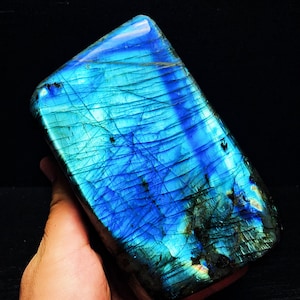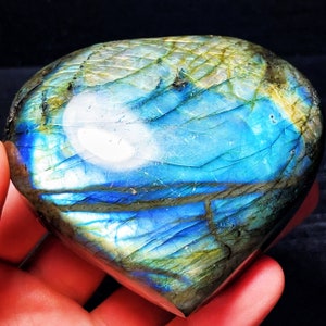 Rainbow Labradorite Heart Crystal: Gold Flash Gemstone Palm Stone