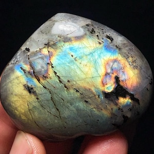 Natural Rainbow Flash Labradorite Crystal Palm Stone: Polished Gemstone