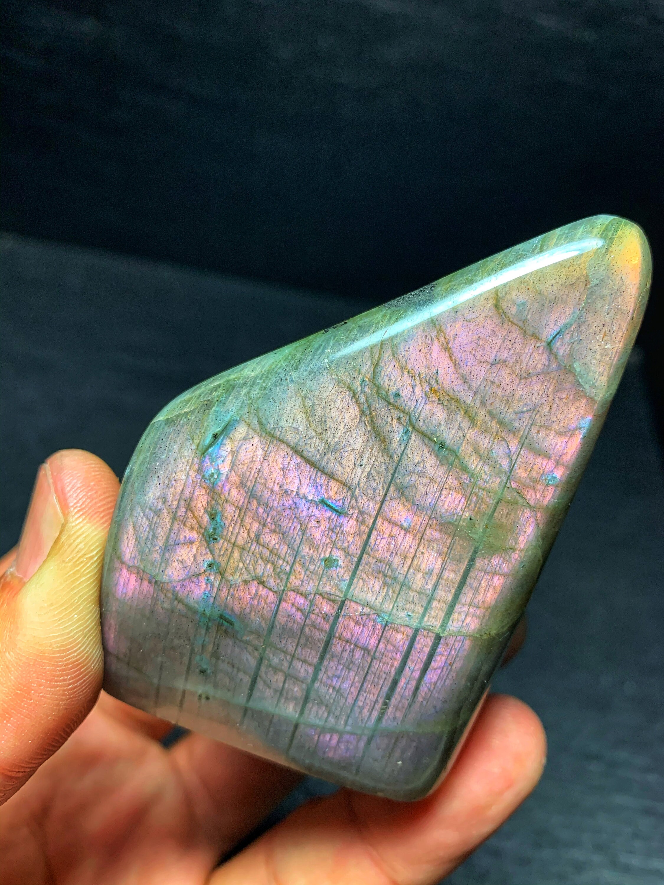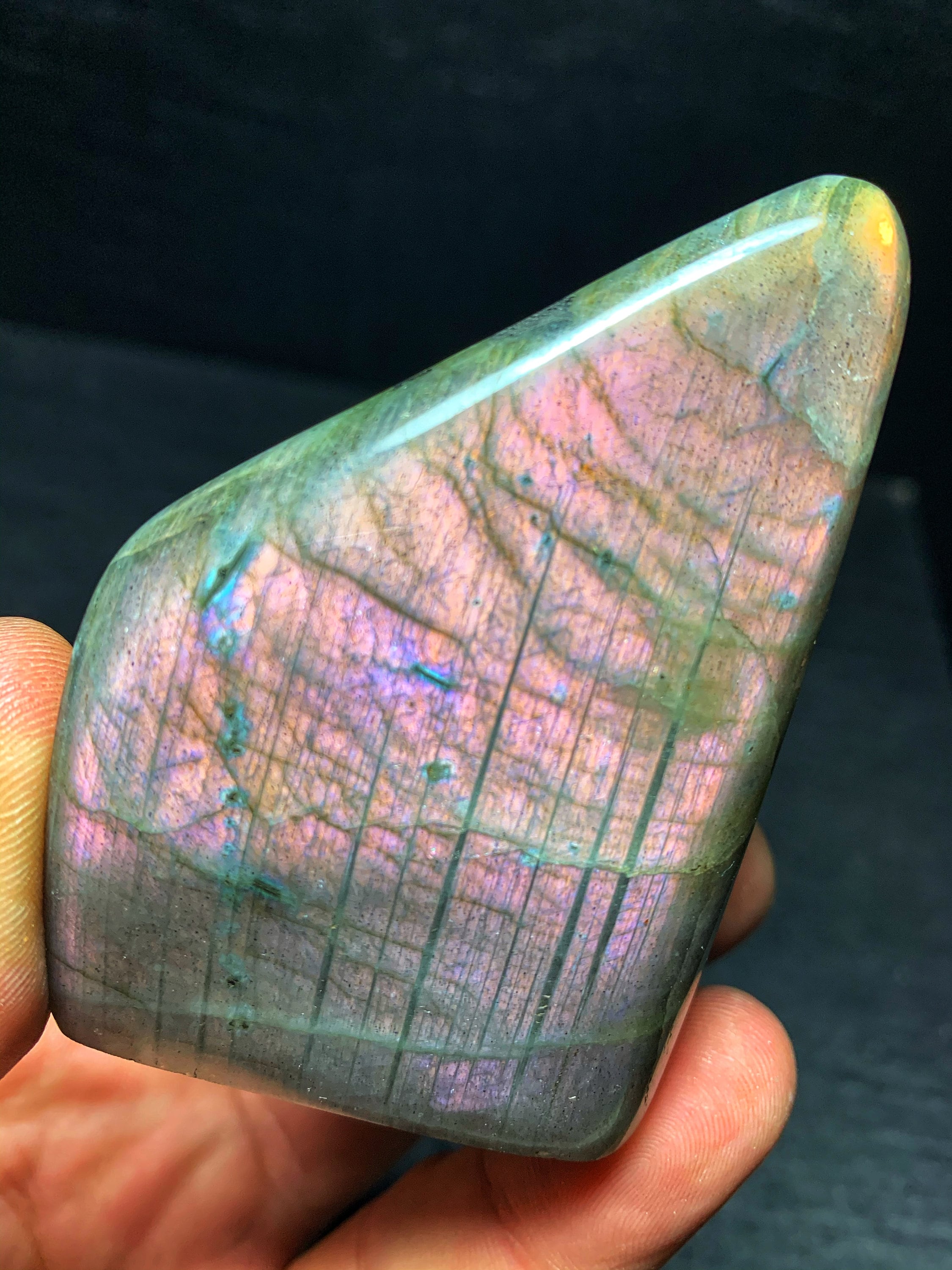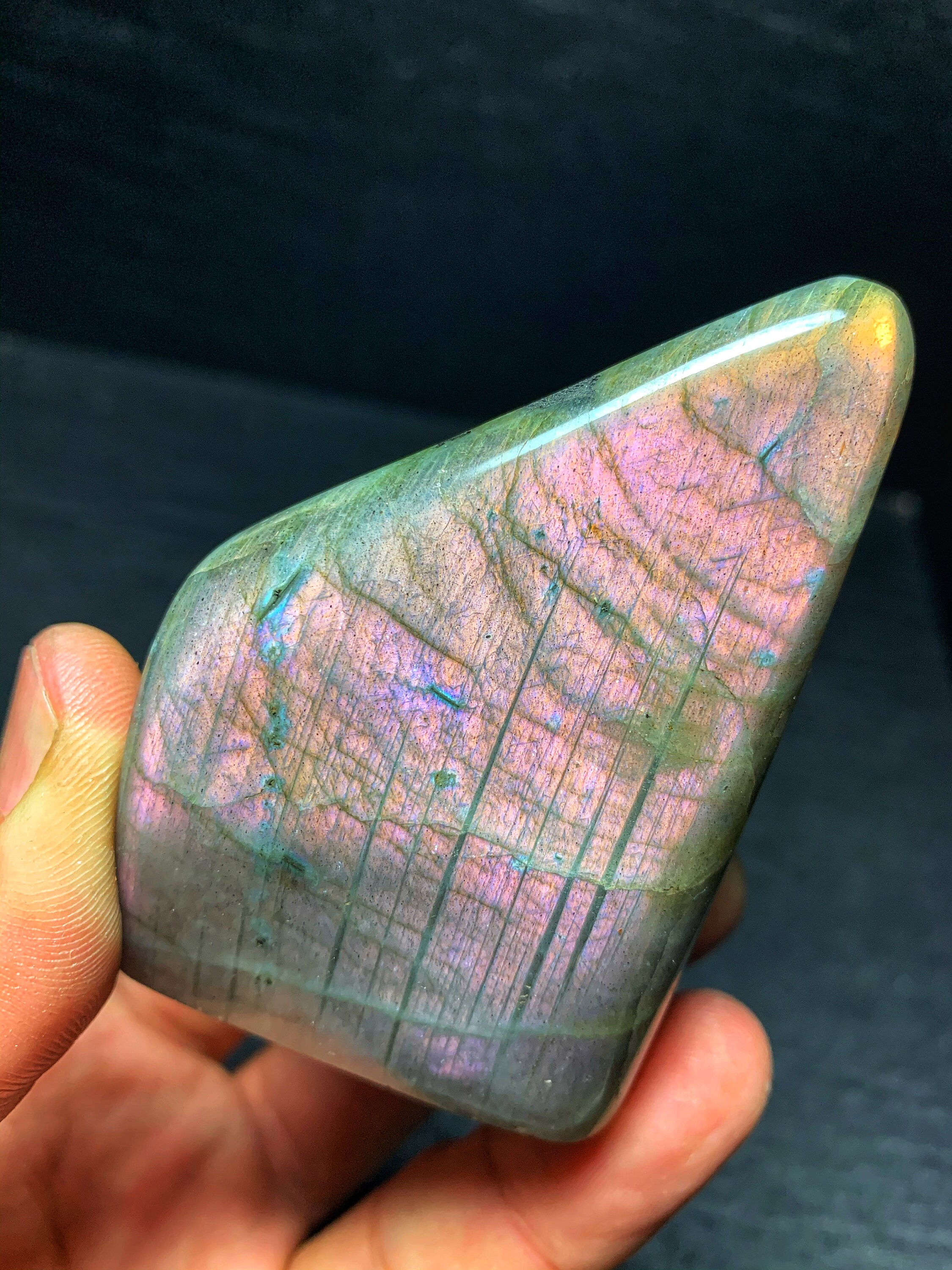 Natural Purple Flash Labradorite Palm Stone: Polished Crystal Heart
