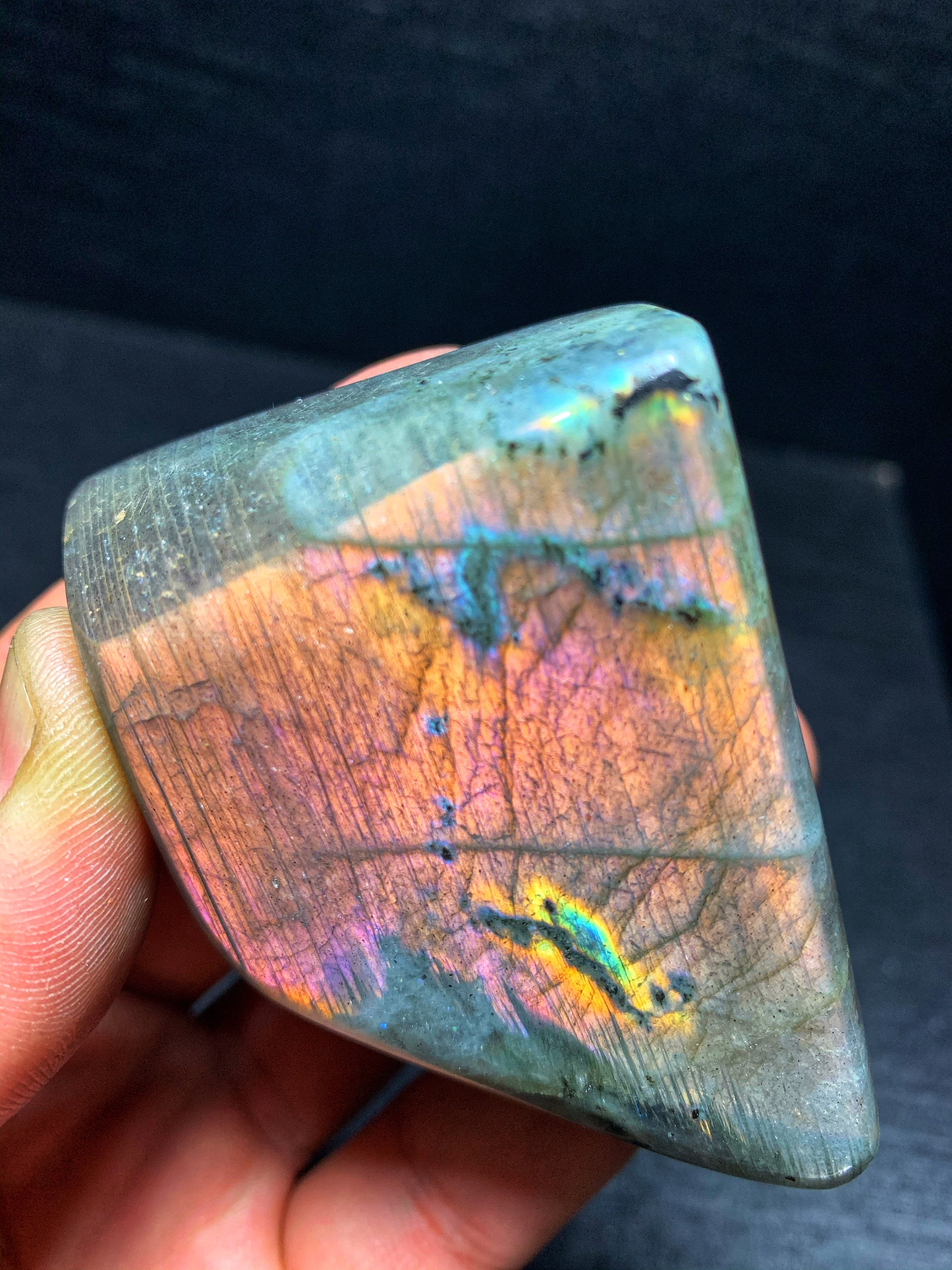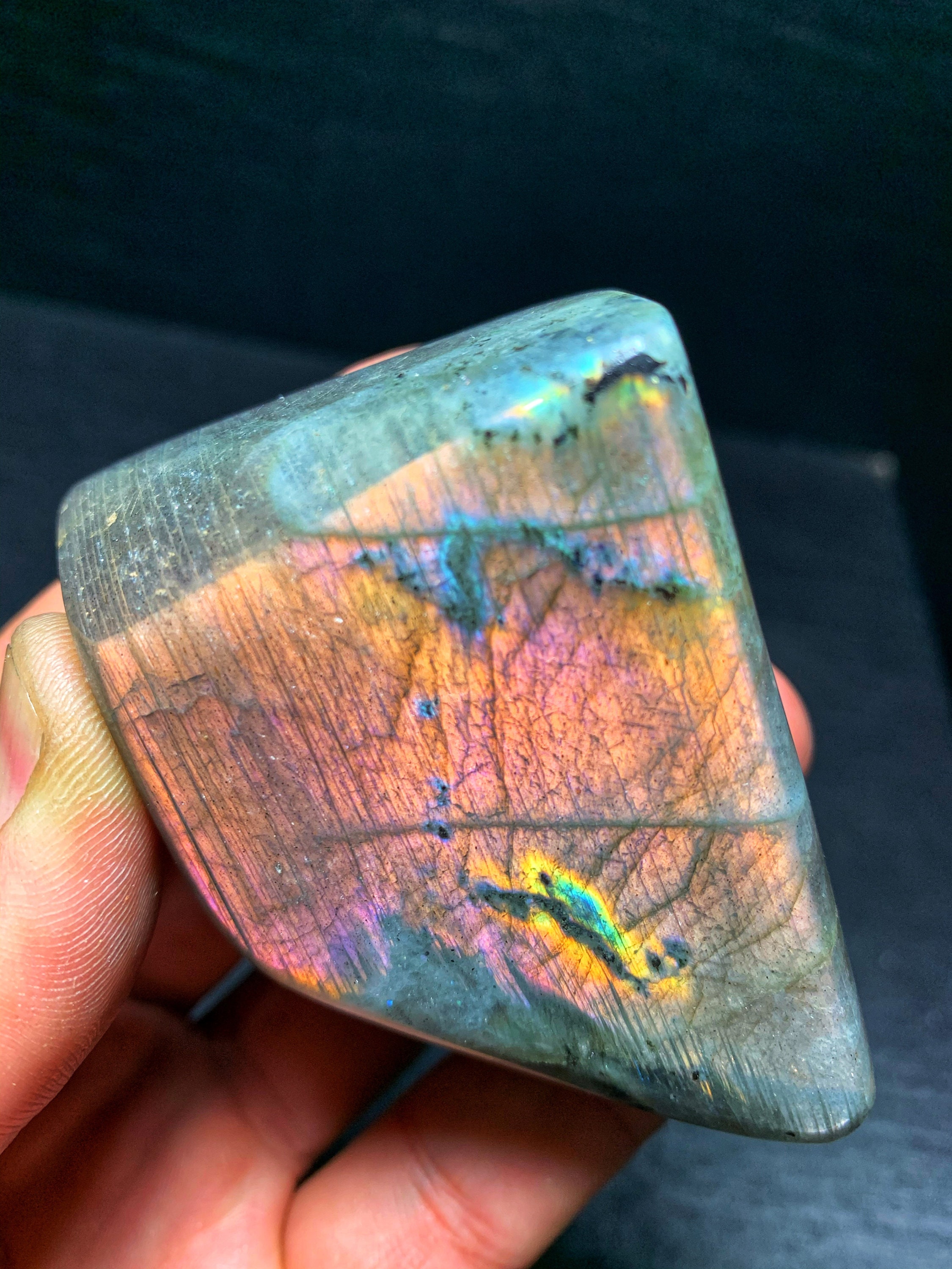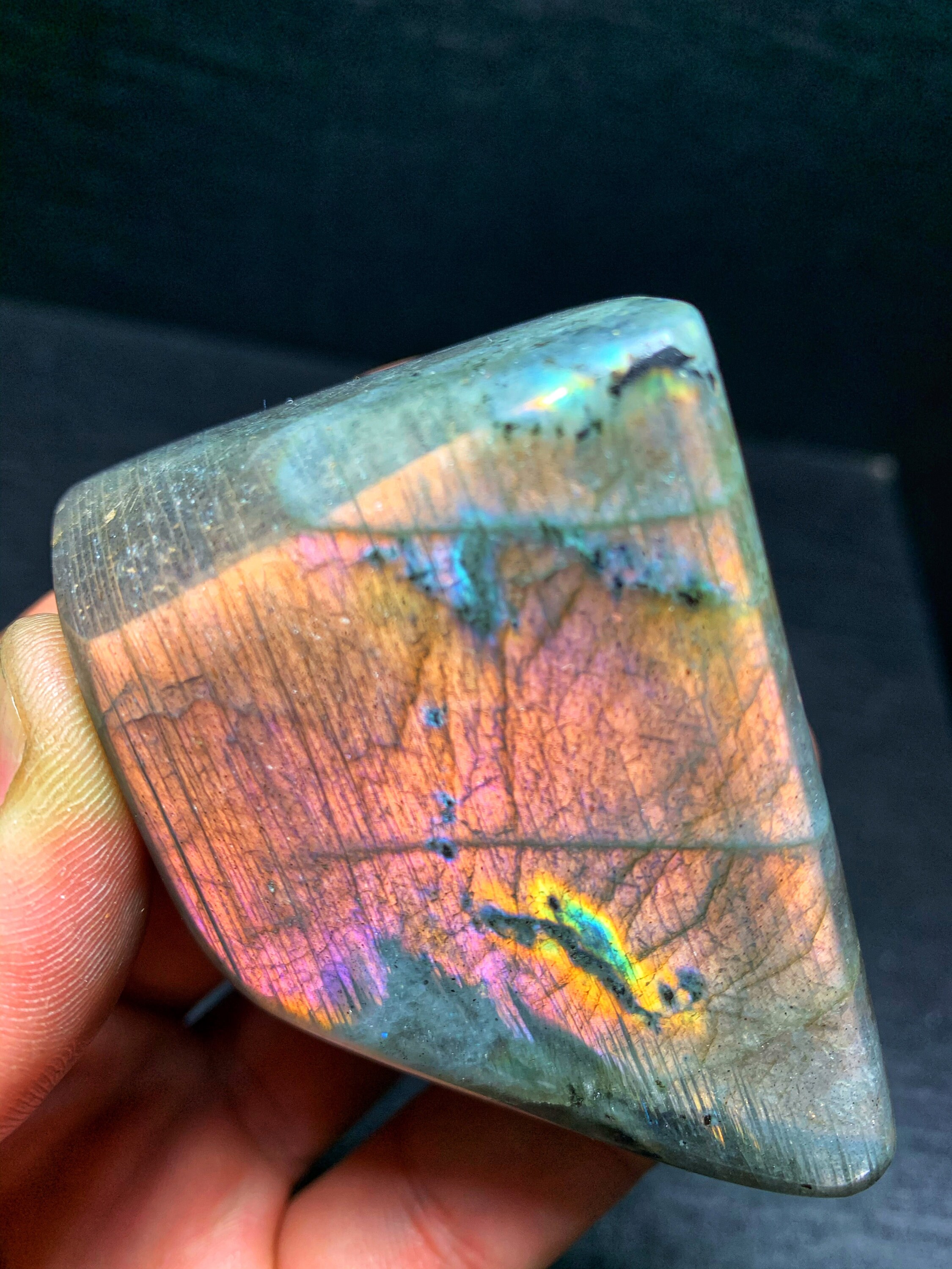 Natural Purple Flash Labradorite Palm Stone: Polished Crystal Heart