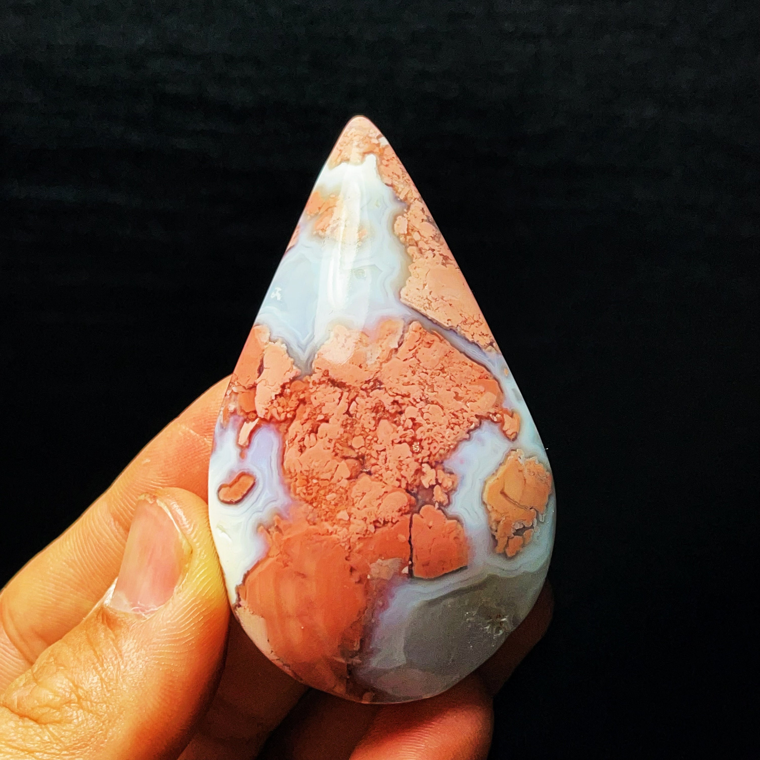 Handmade Agate Droplet: Natural Carved Quartz Crystal Ornament (1.77")