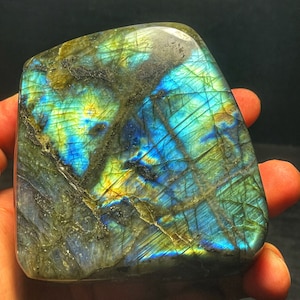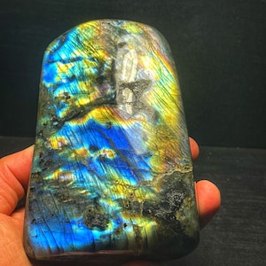Natural Labradorite Heart Crystal: Polished Gemstone Palm Stone