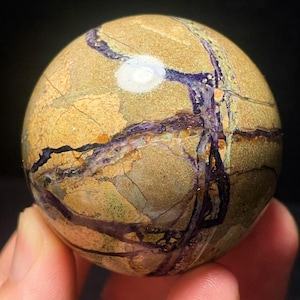 Gobi Agate Stone Ball: Silk Agate, Madagascar Crystal (63mm)