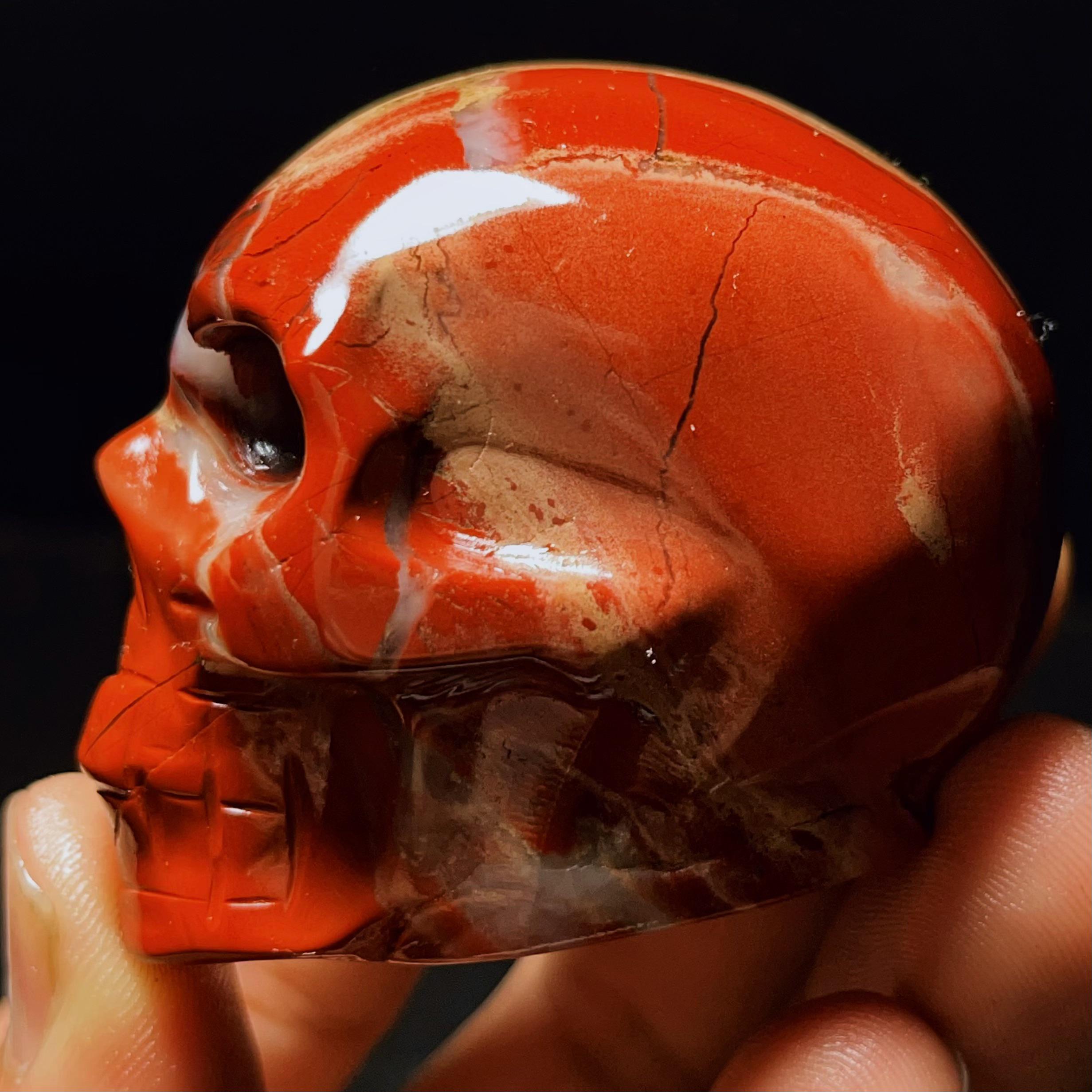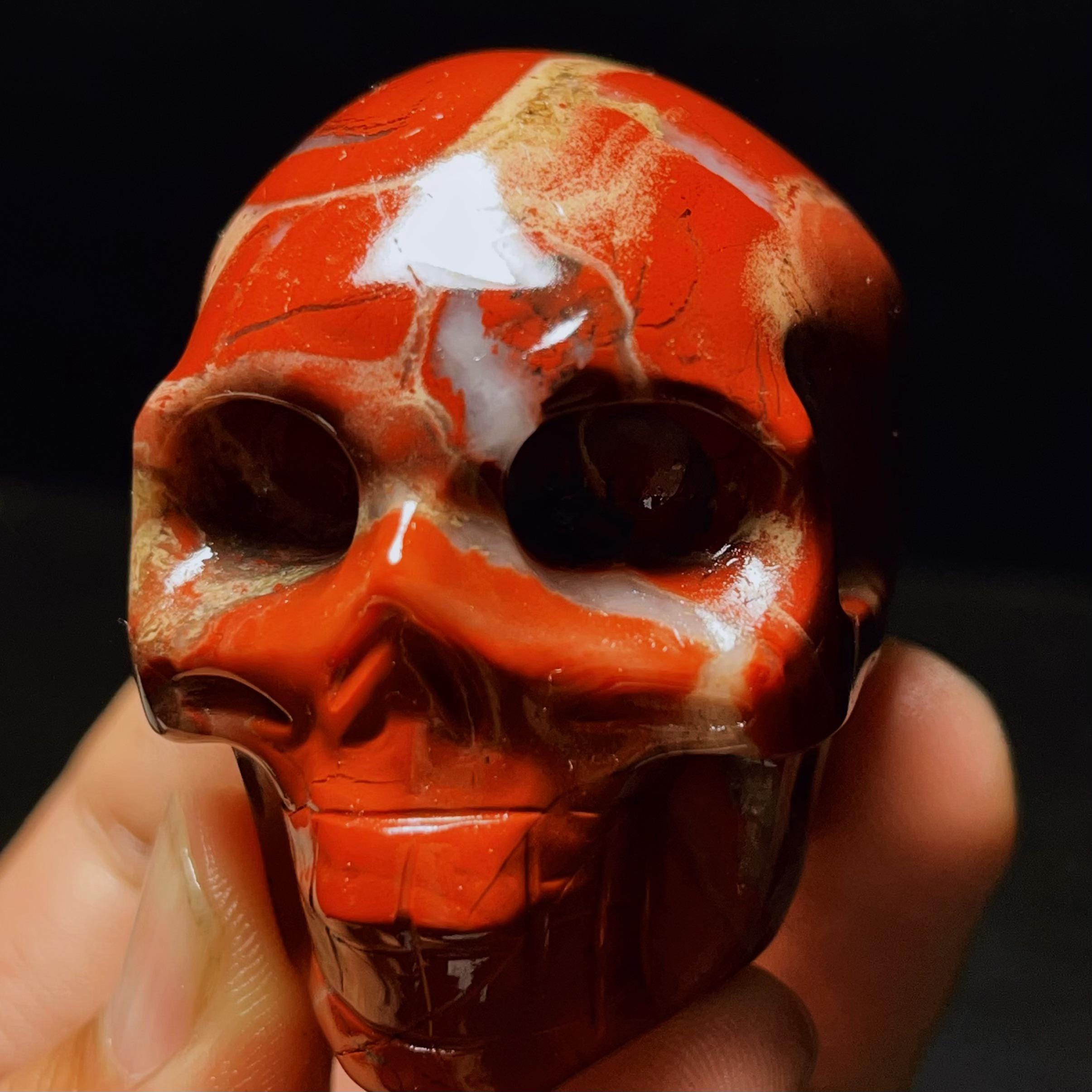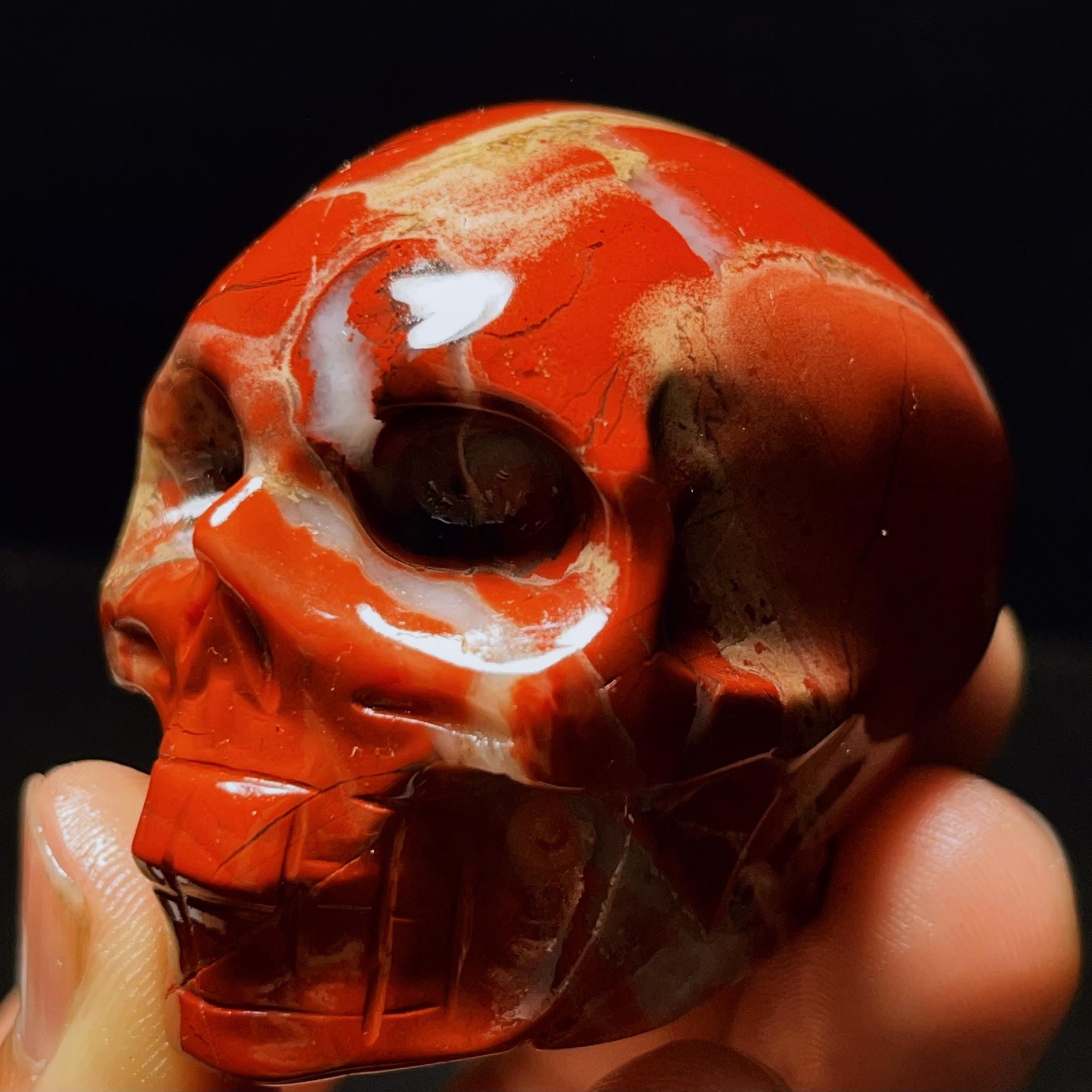 Hand Carved Red Agate Crystal Skull: Reiki Healing Statue