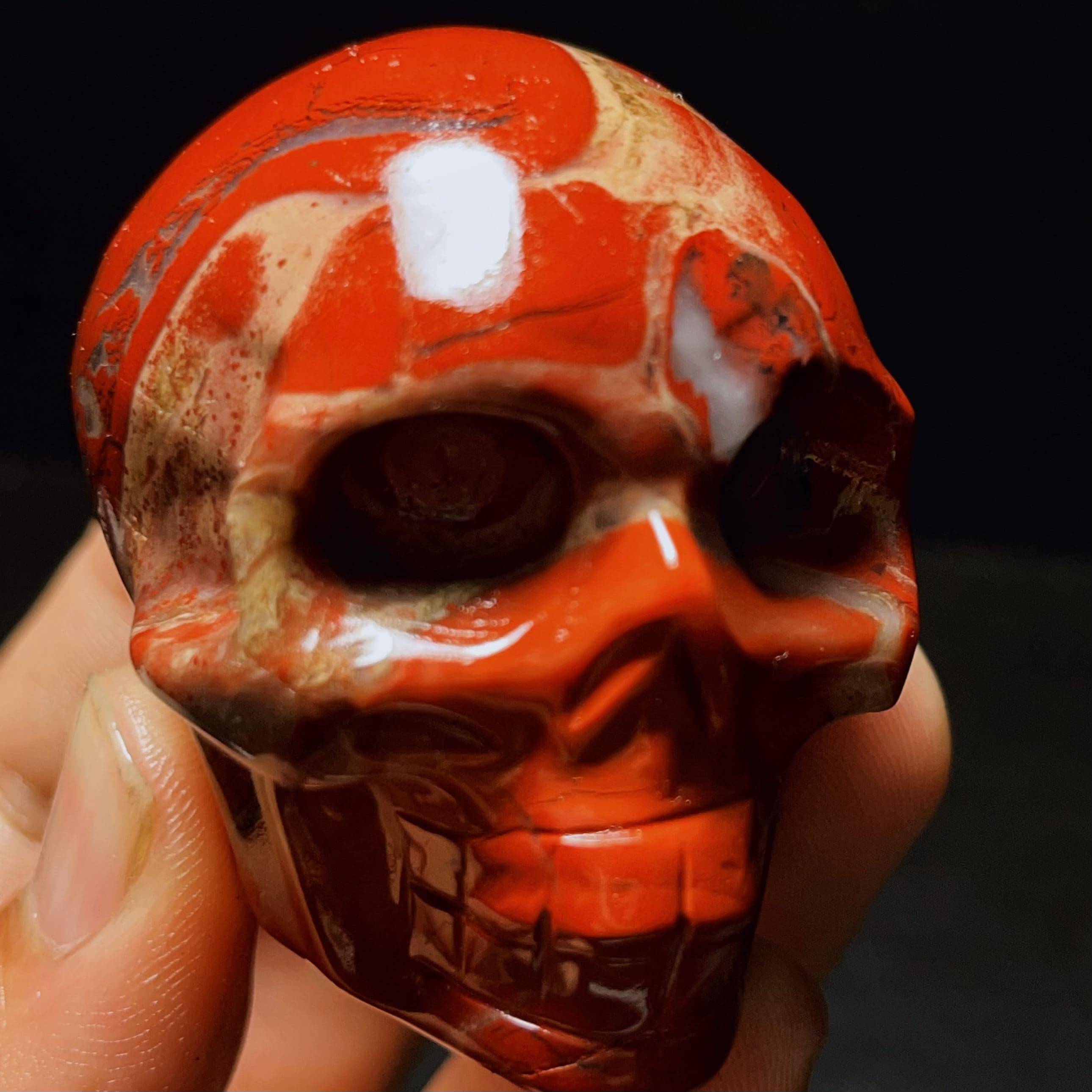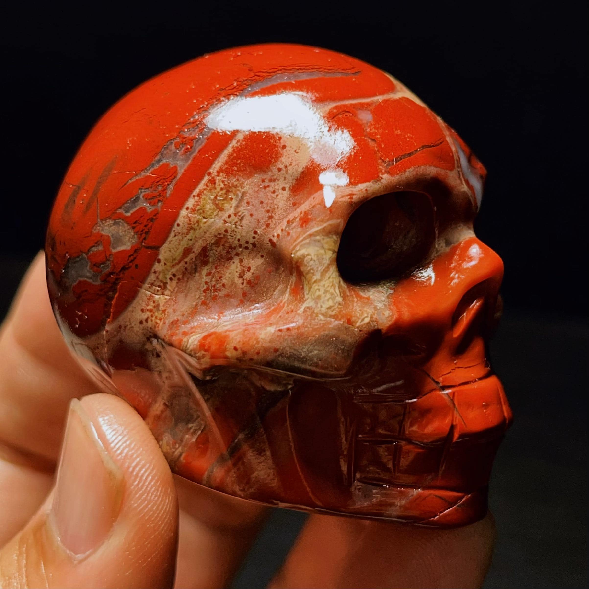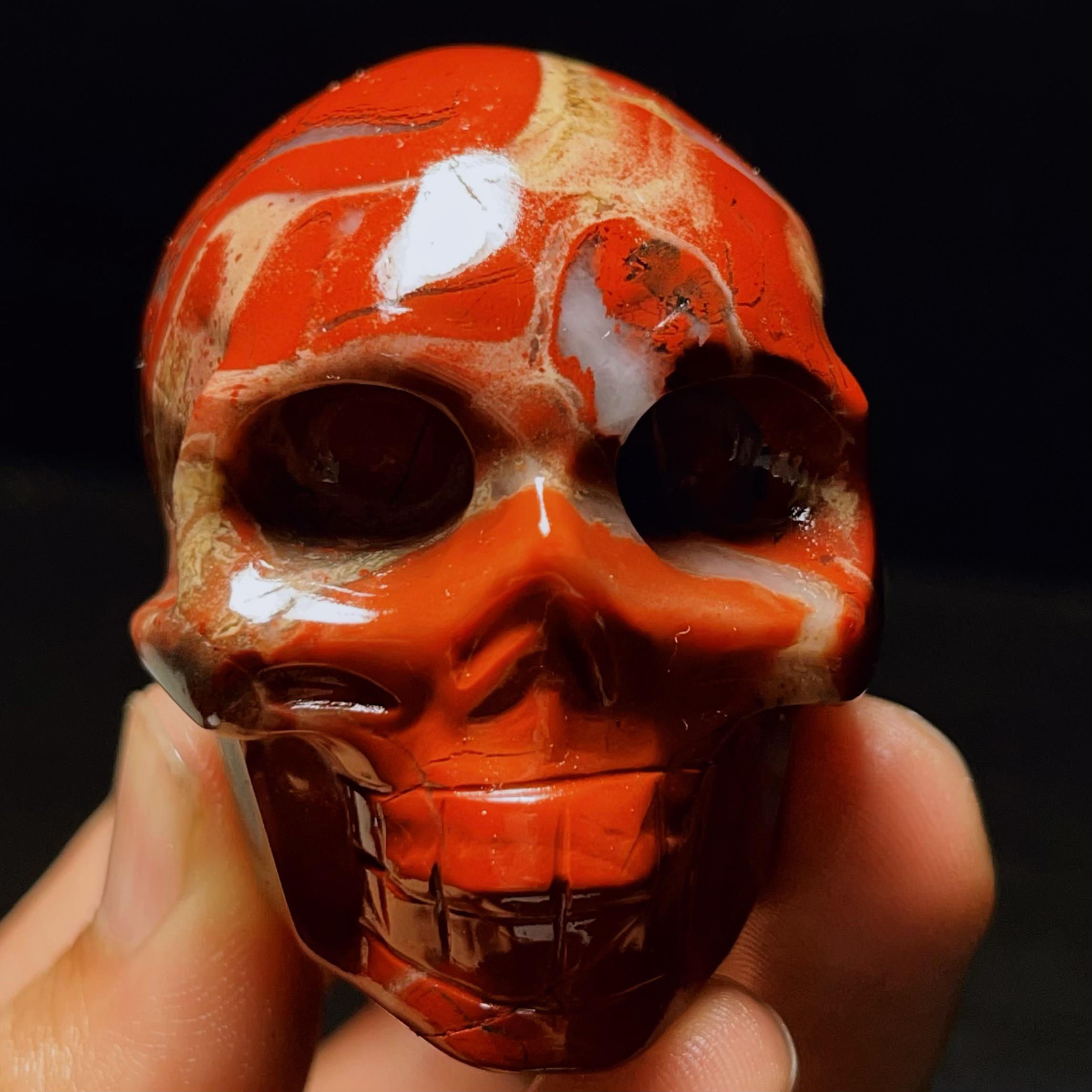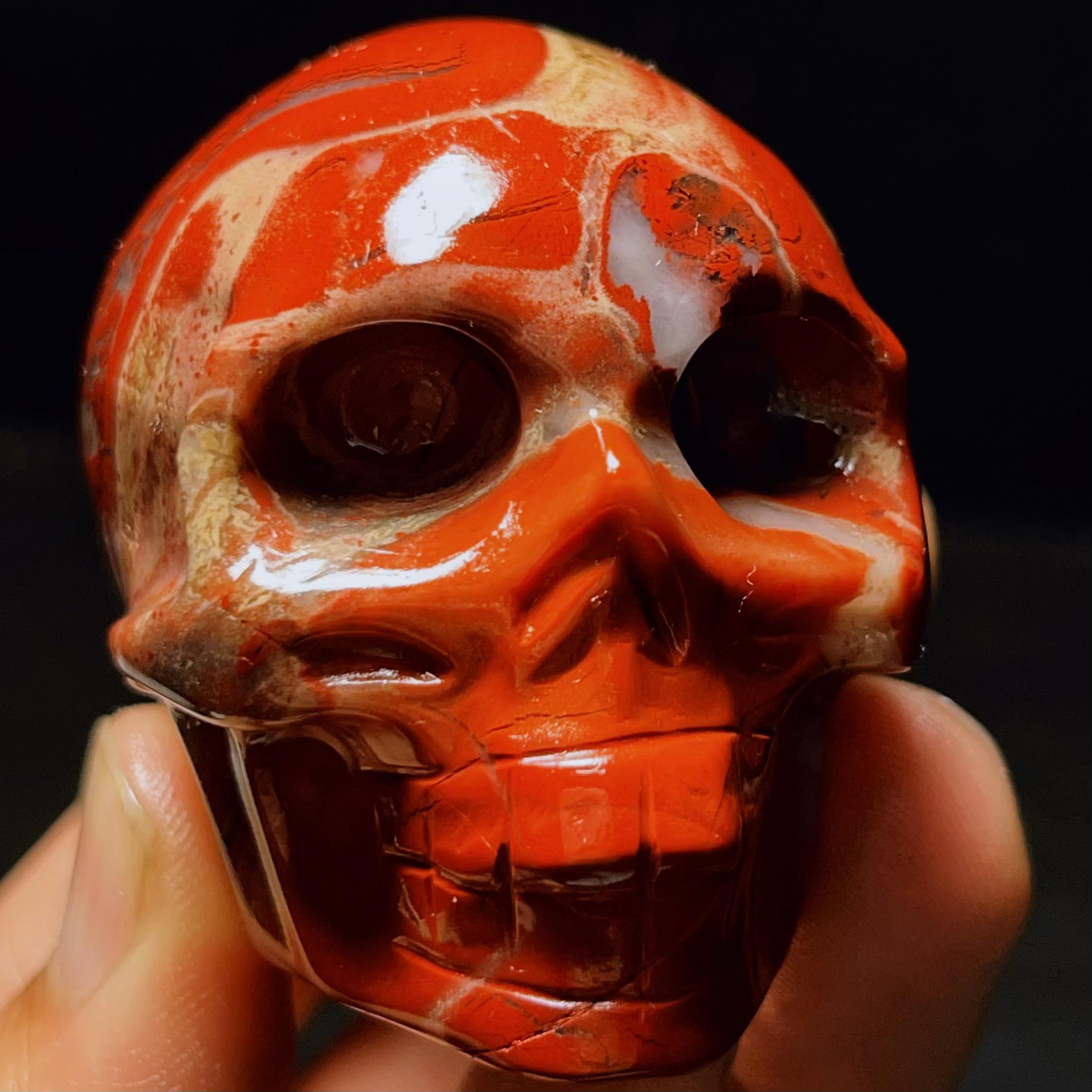 Hand Carved Red Agate Crystal Skull: Reiki Healing Statue