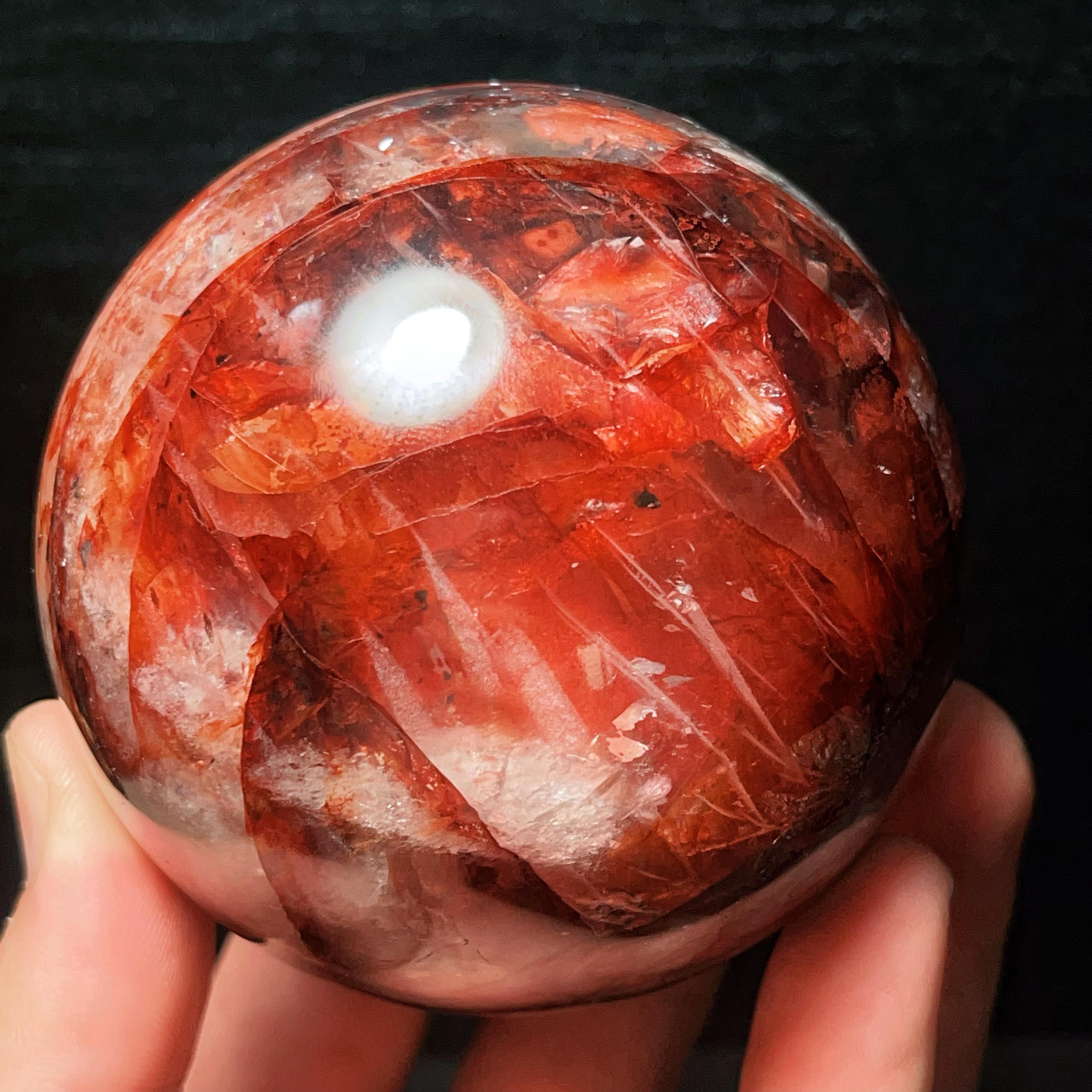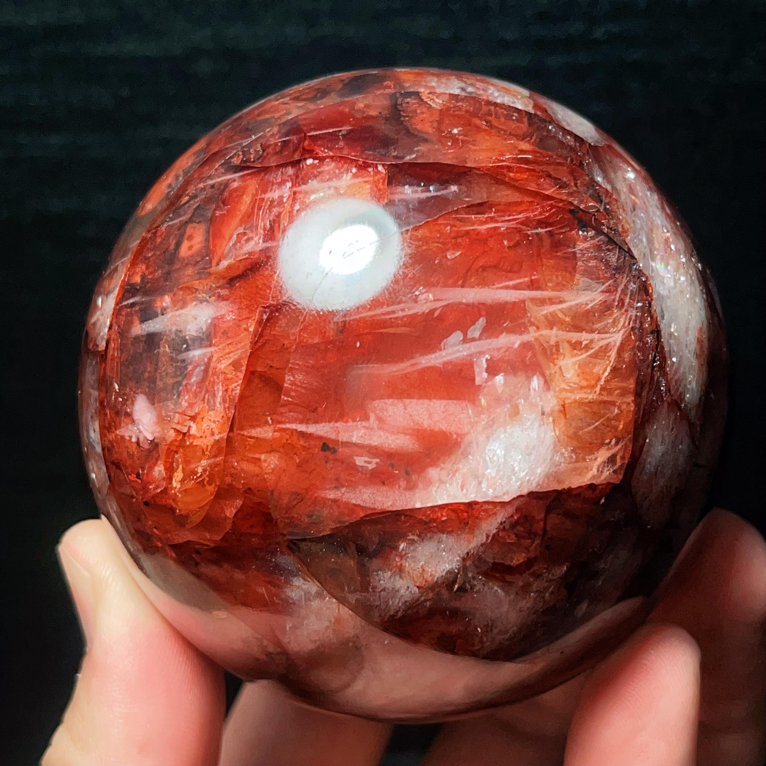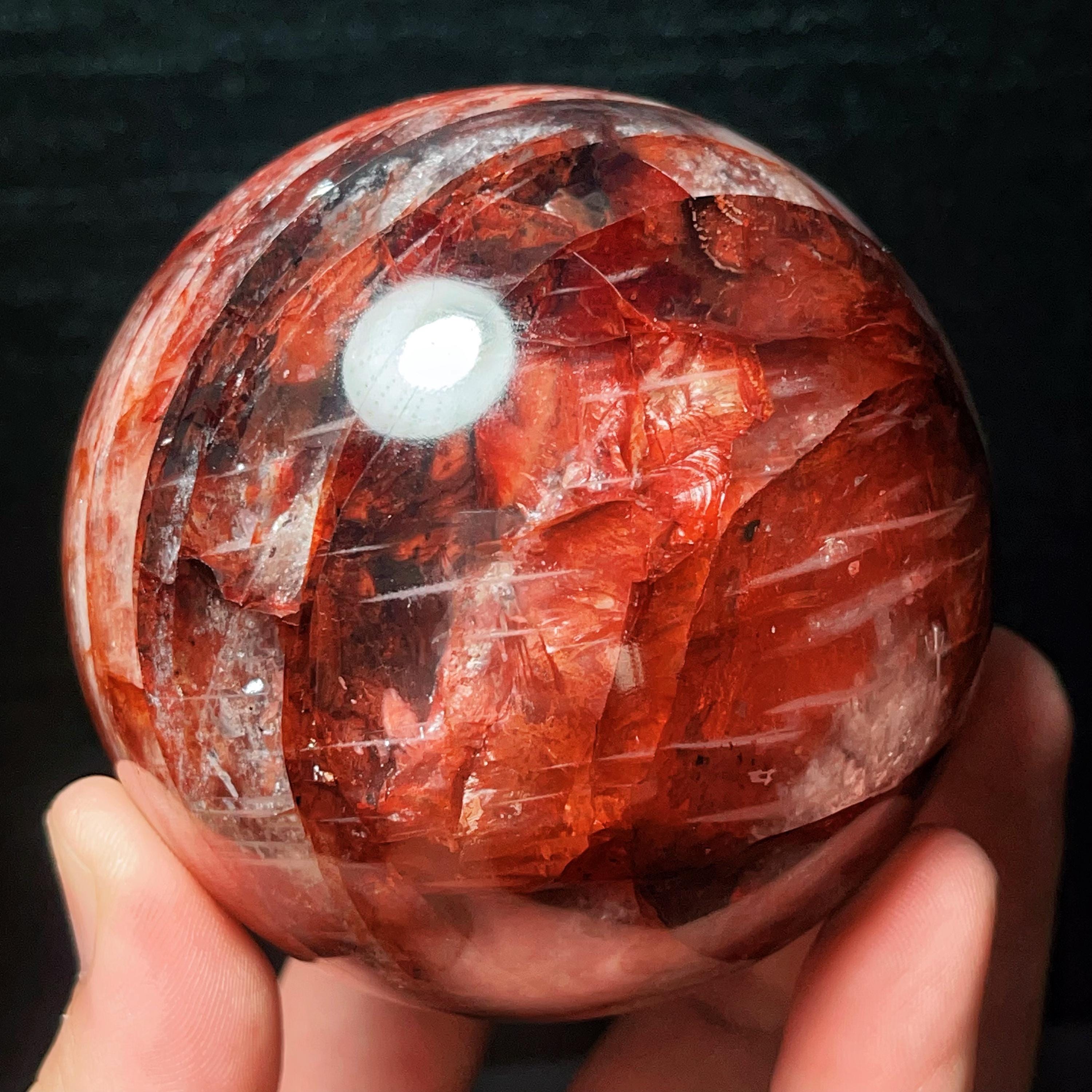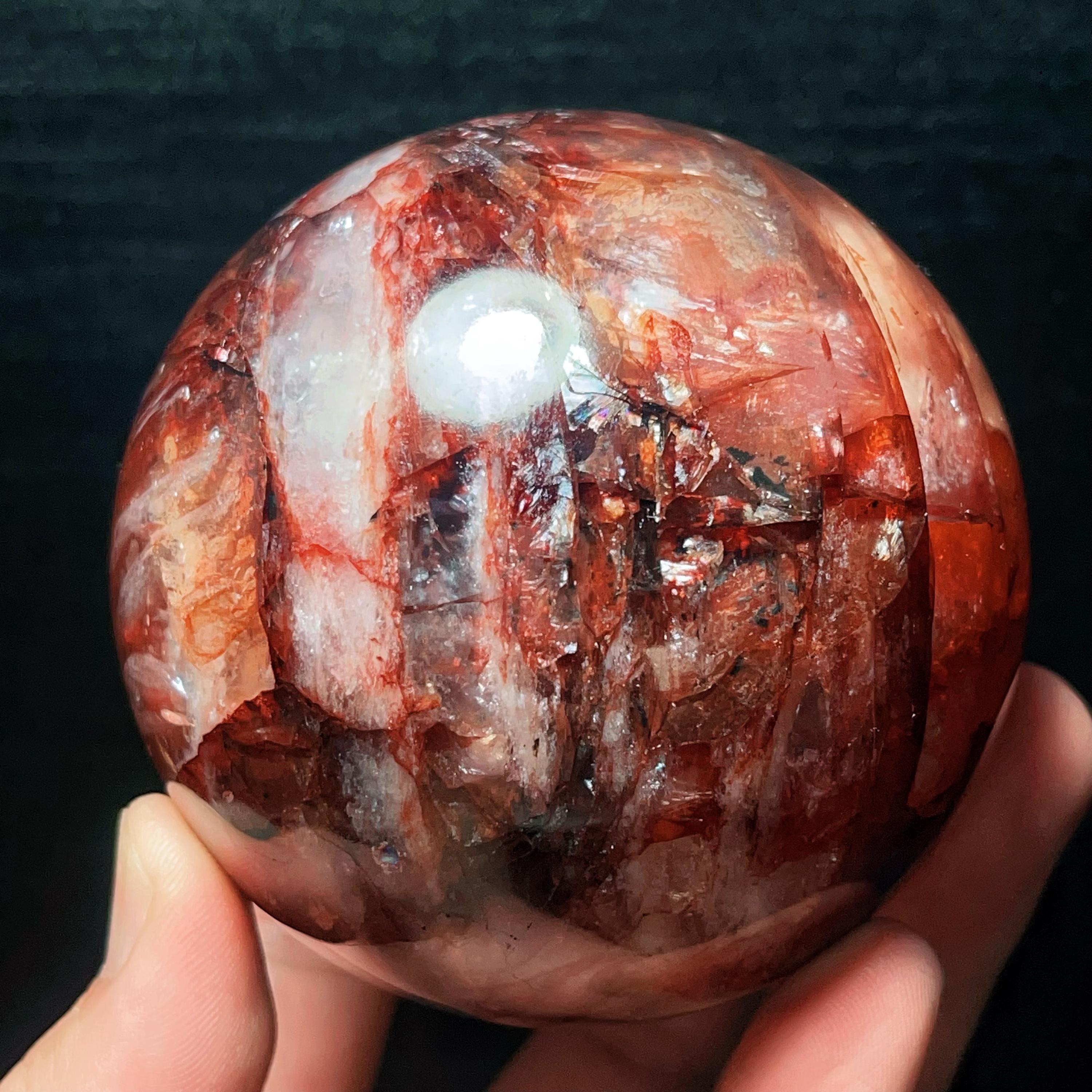 Red Gum Flower Crystal Quartz Sphere: Chakra Reiki Meditation Stone (784g, 82mm)