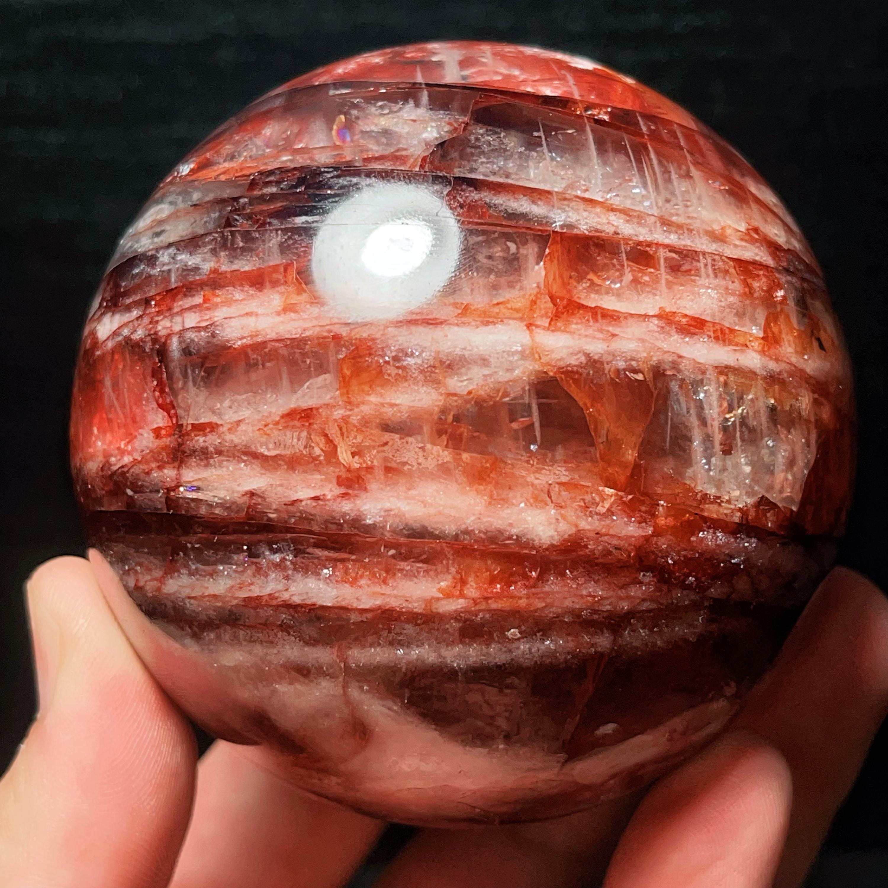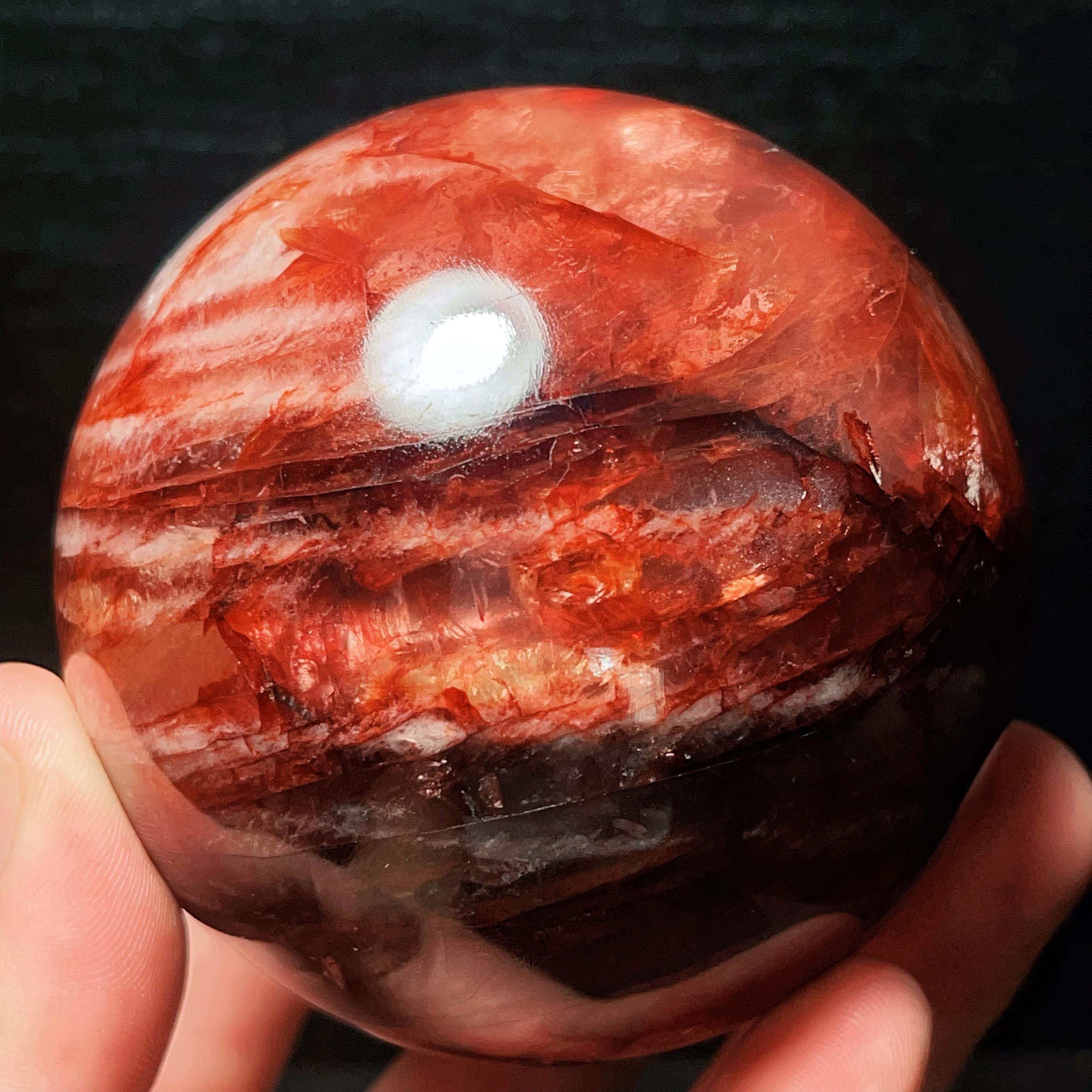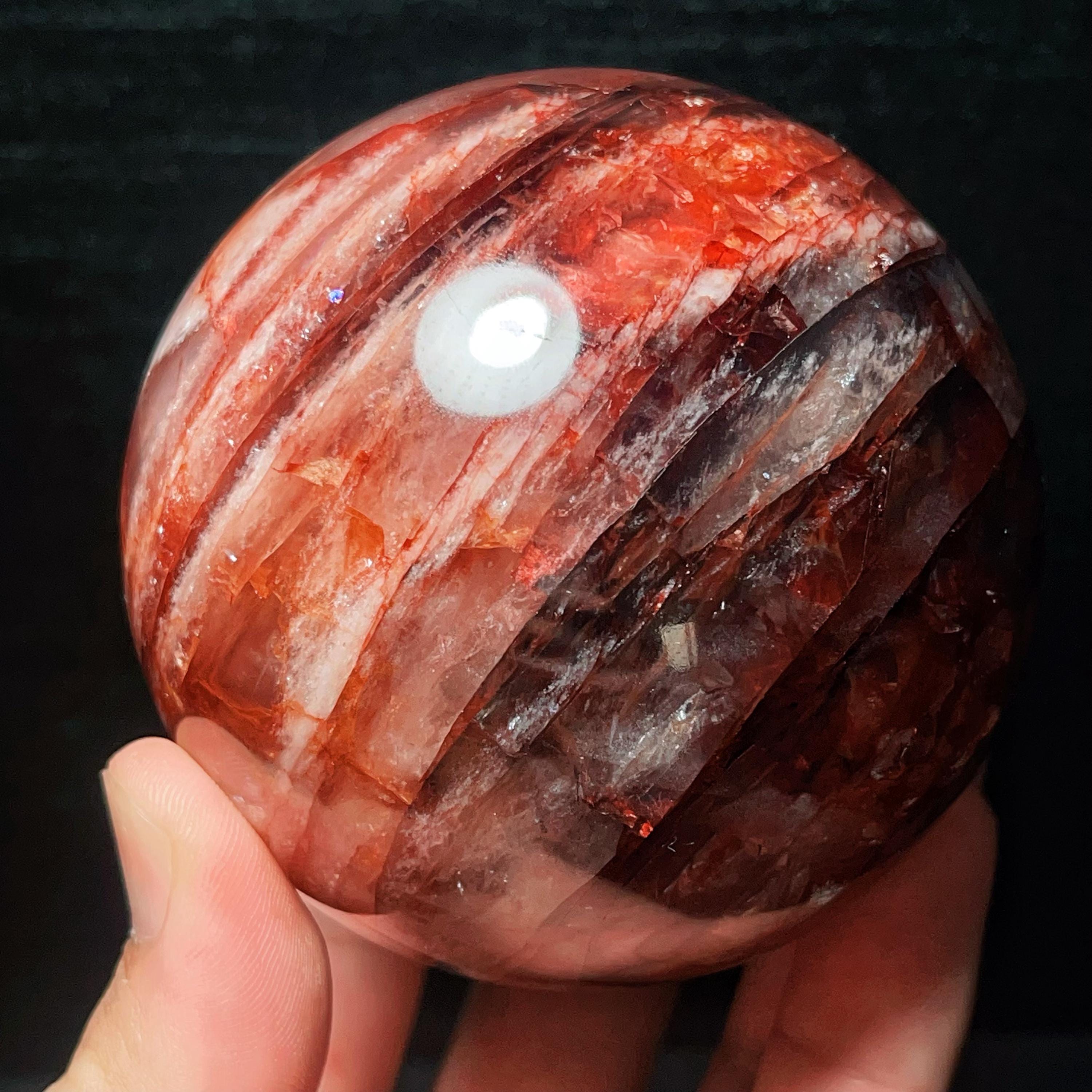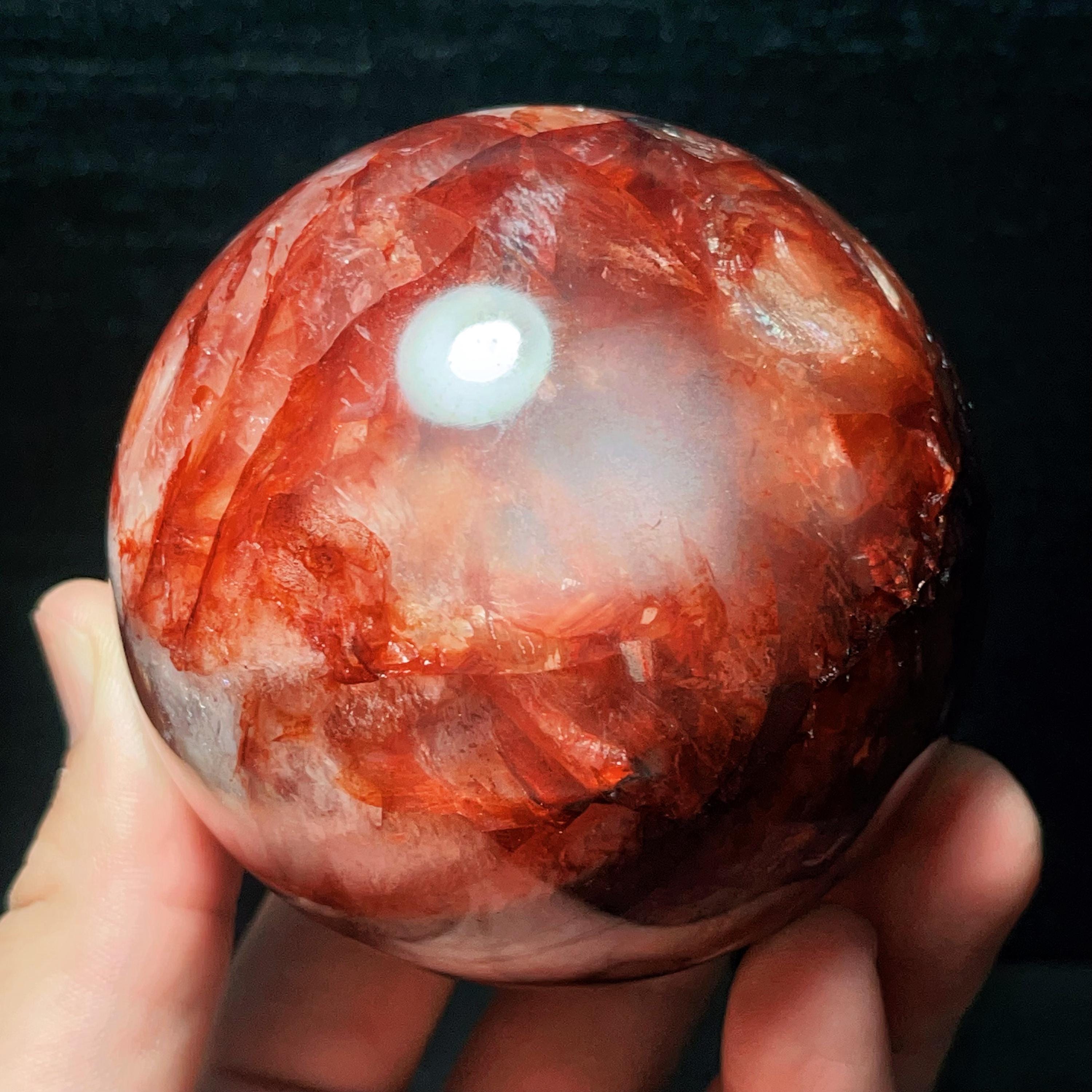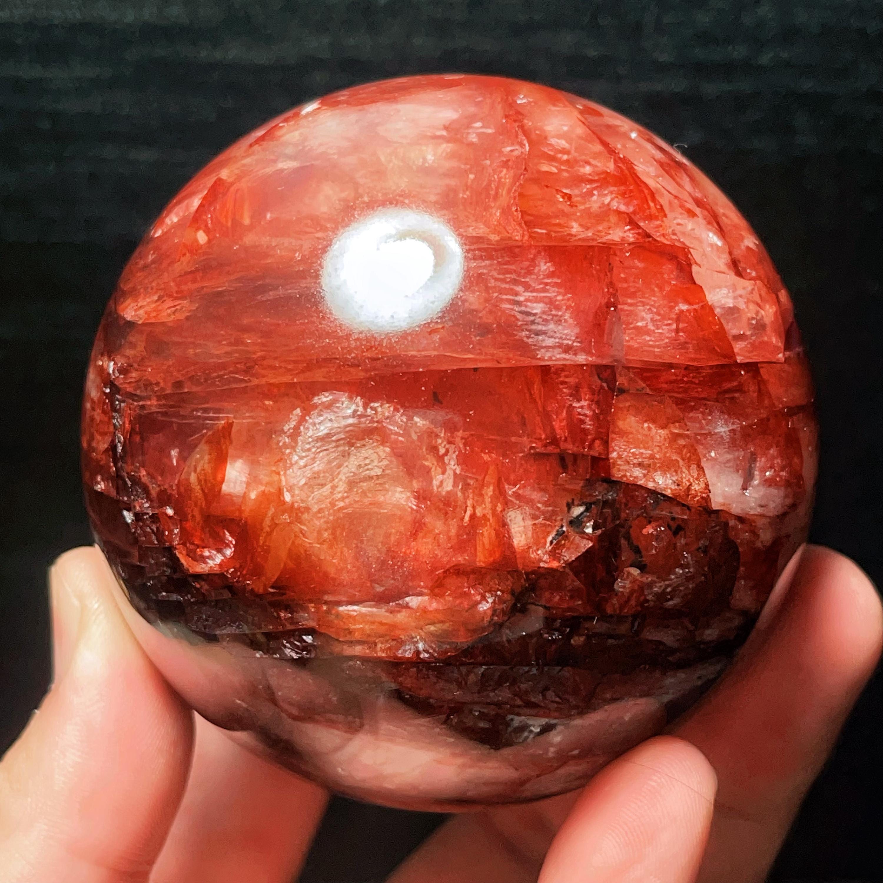 Red Gum Flower Crystal Quartz Sphere: Chakra Reiki Meditation Stone (784g, 82mm)