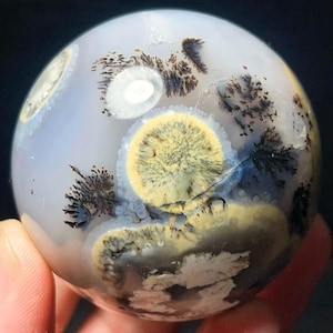 Natural Aquatic Agate Sphere: Carved Crystal Palm Stone, Energy Healing