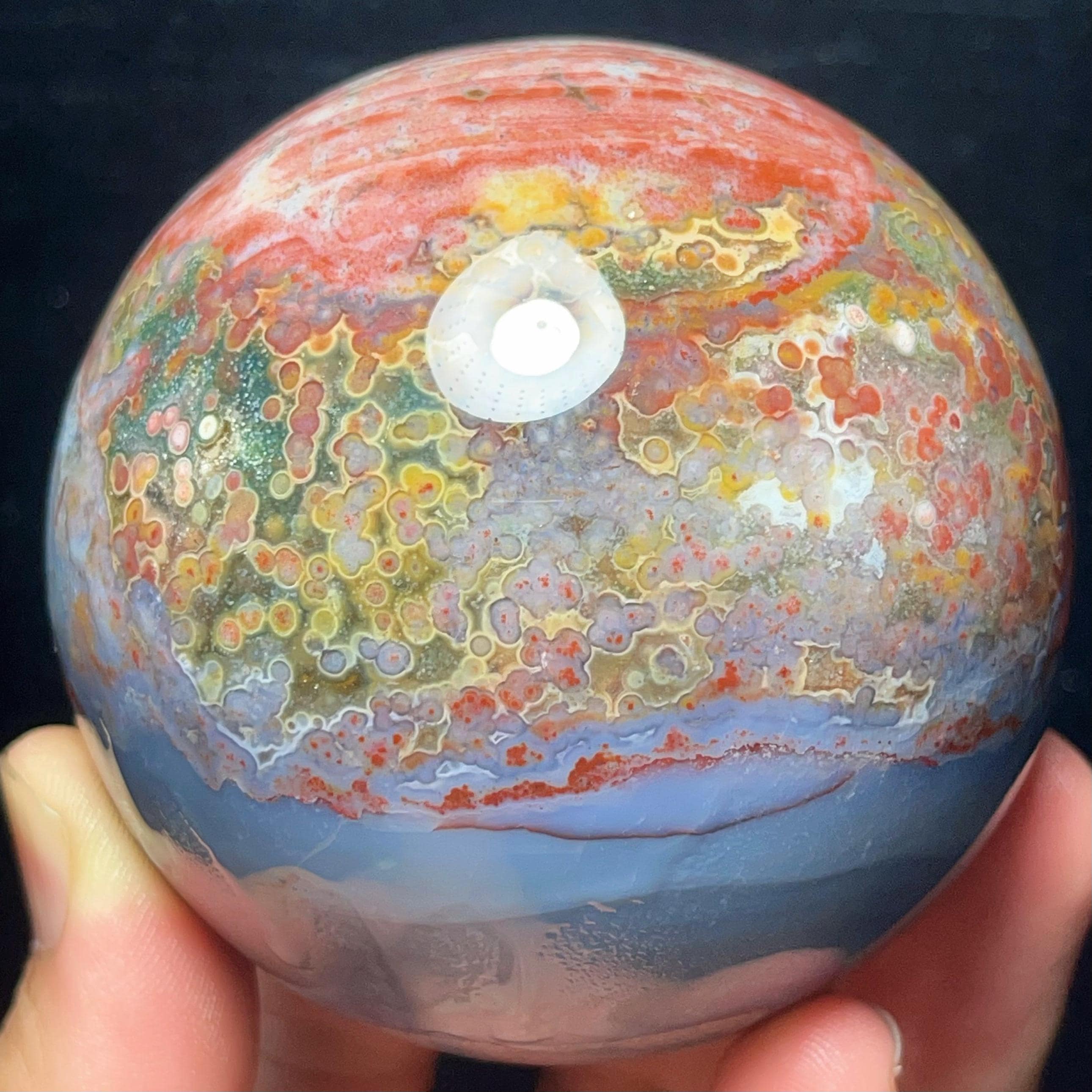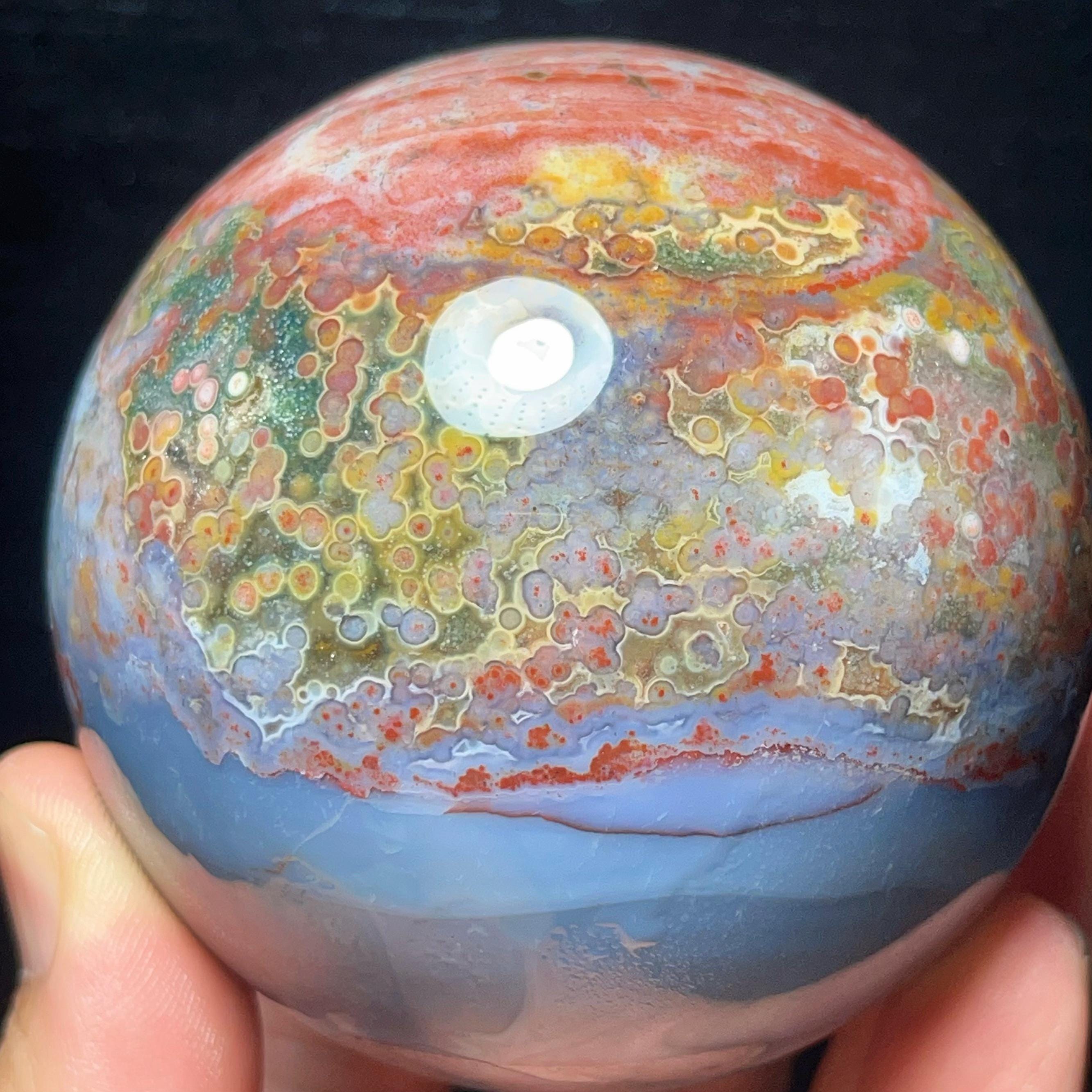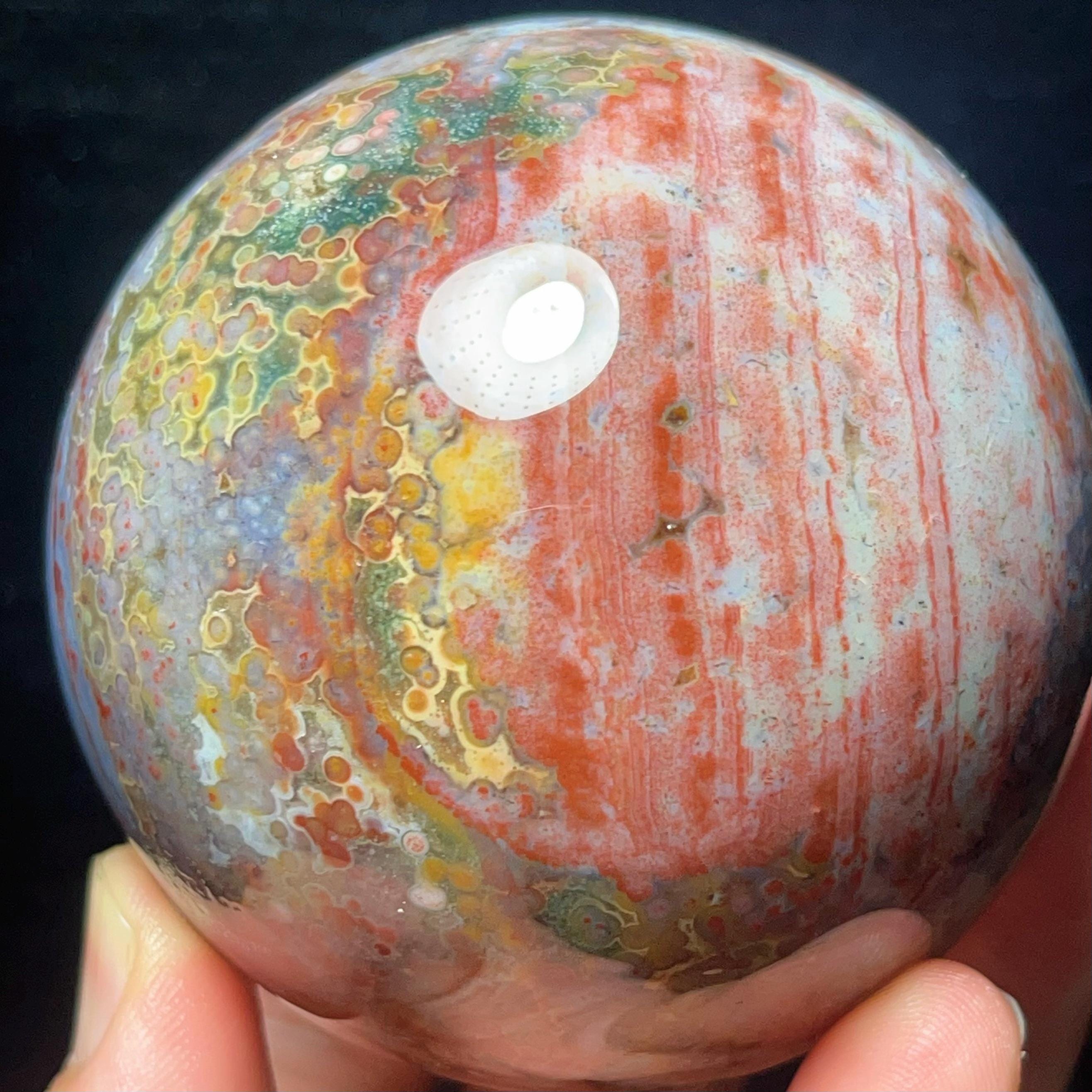 Natural Orbicular Ocean Jasper Sphere: Chakra Reiki Meditation Stone