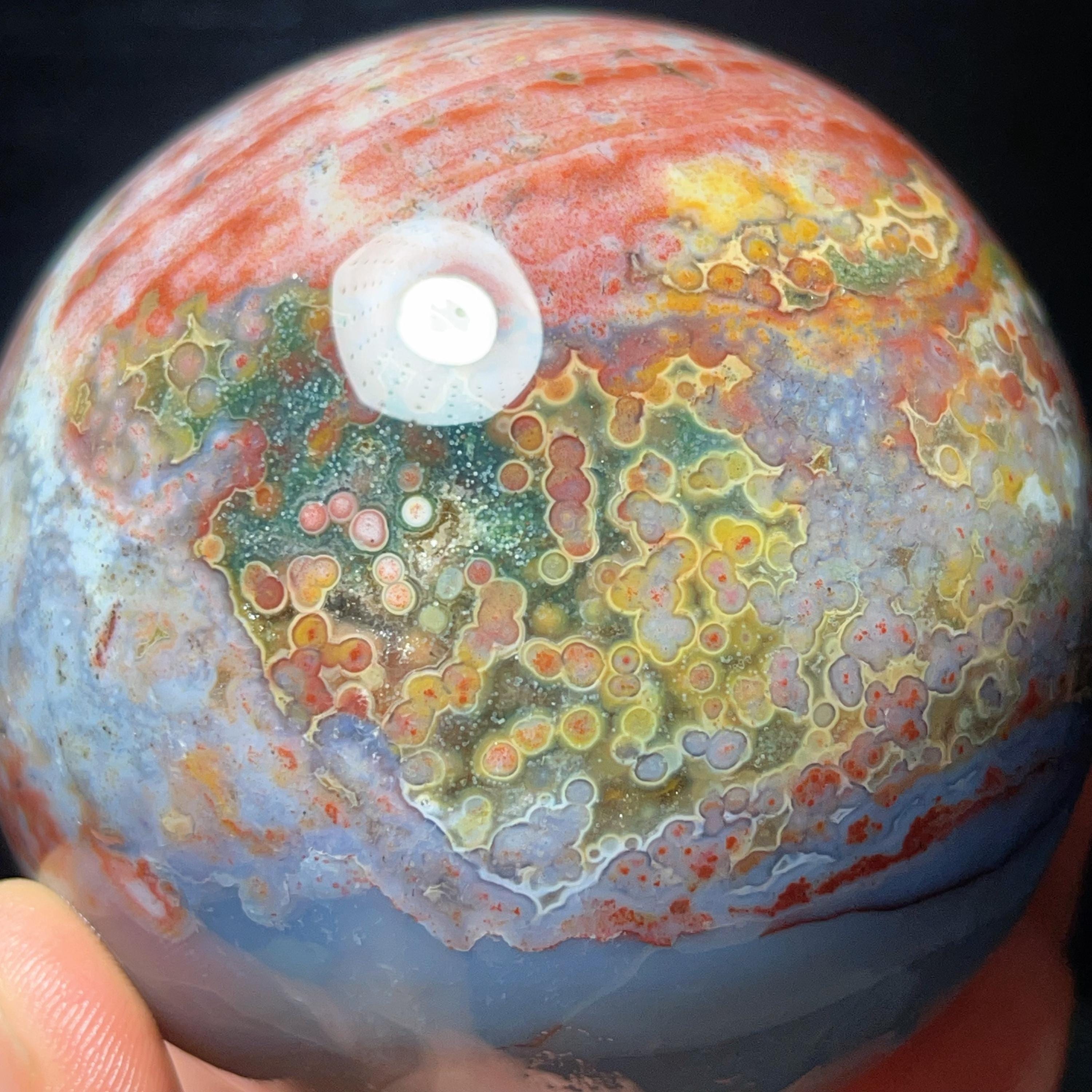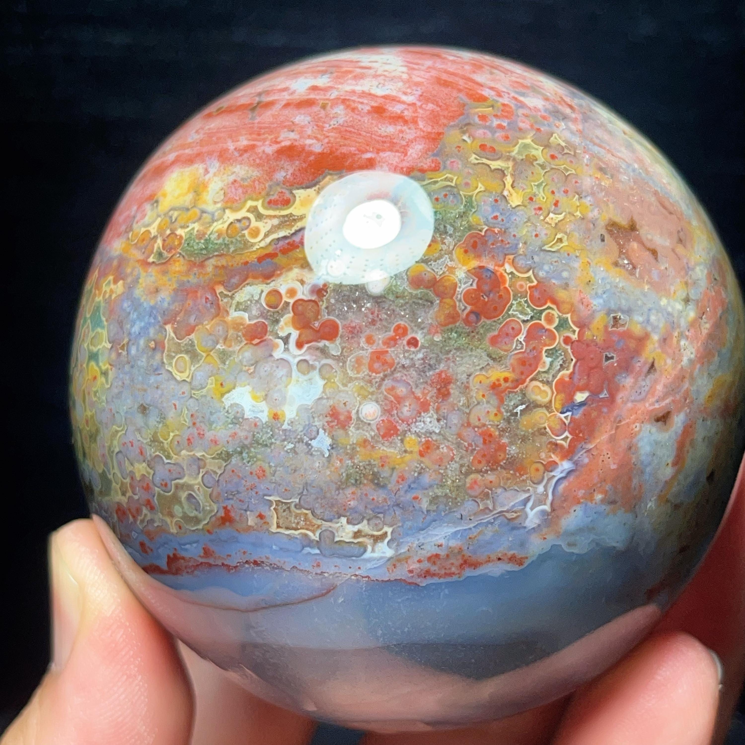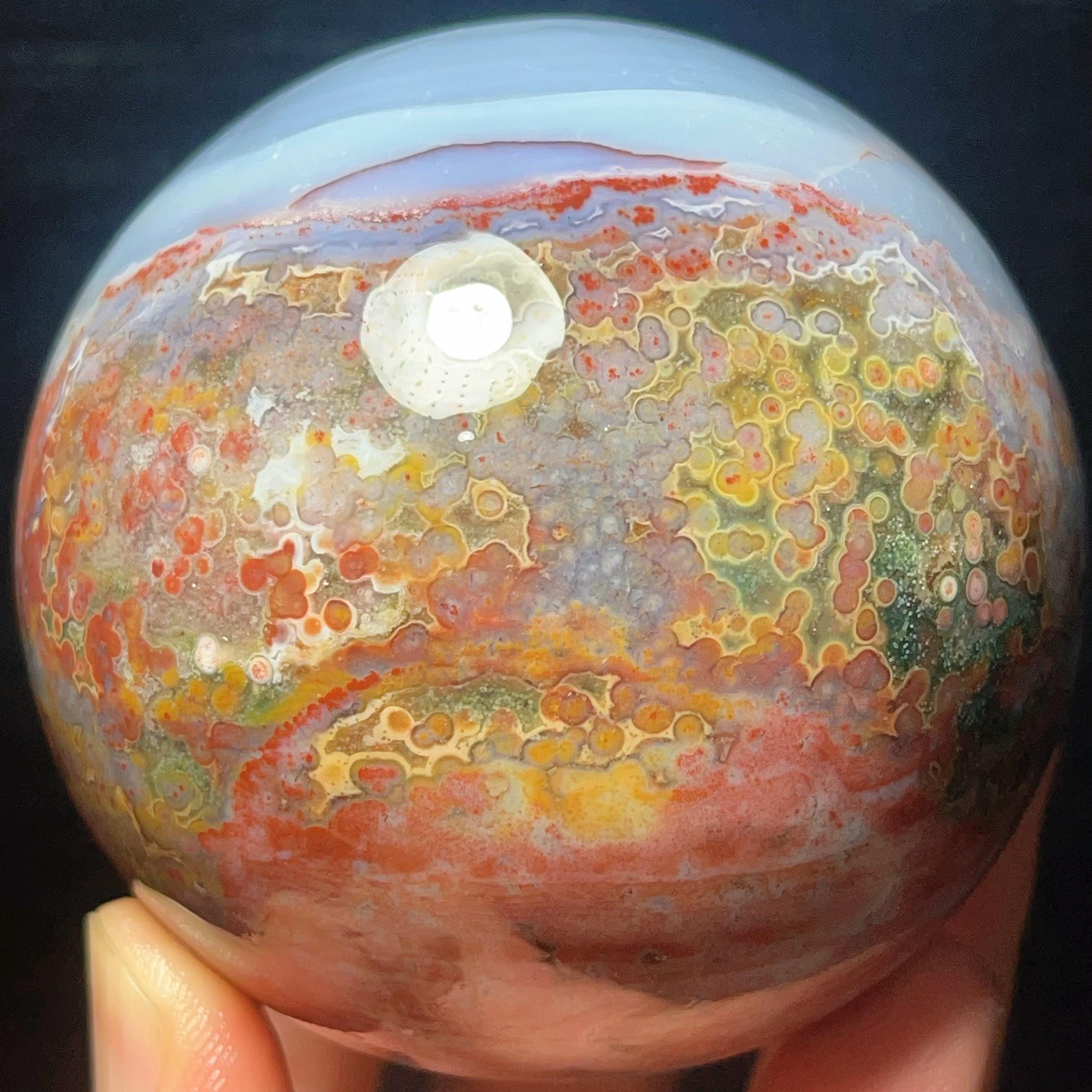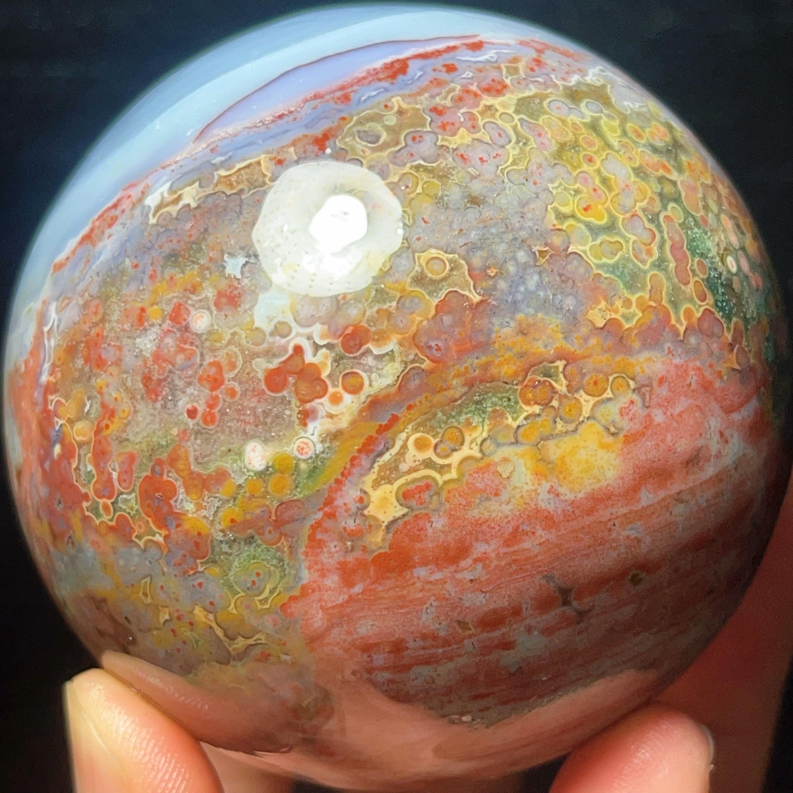 Natural Orbicular Ocean Jasper Sphere: Chakra Reiki Meditation Stone