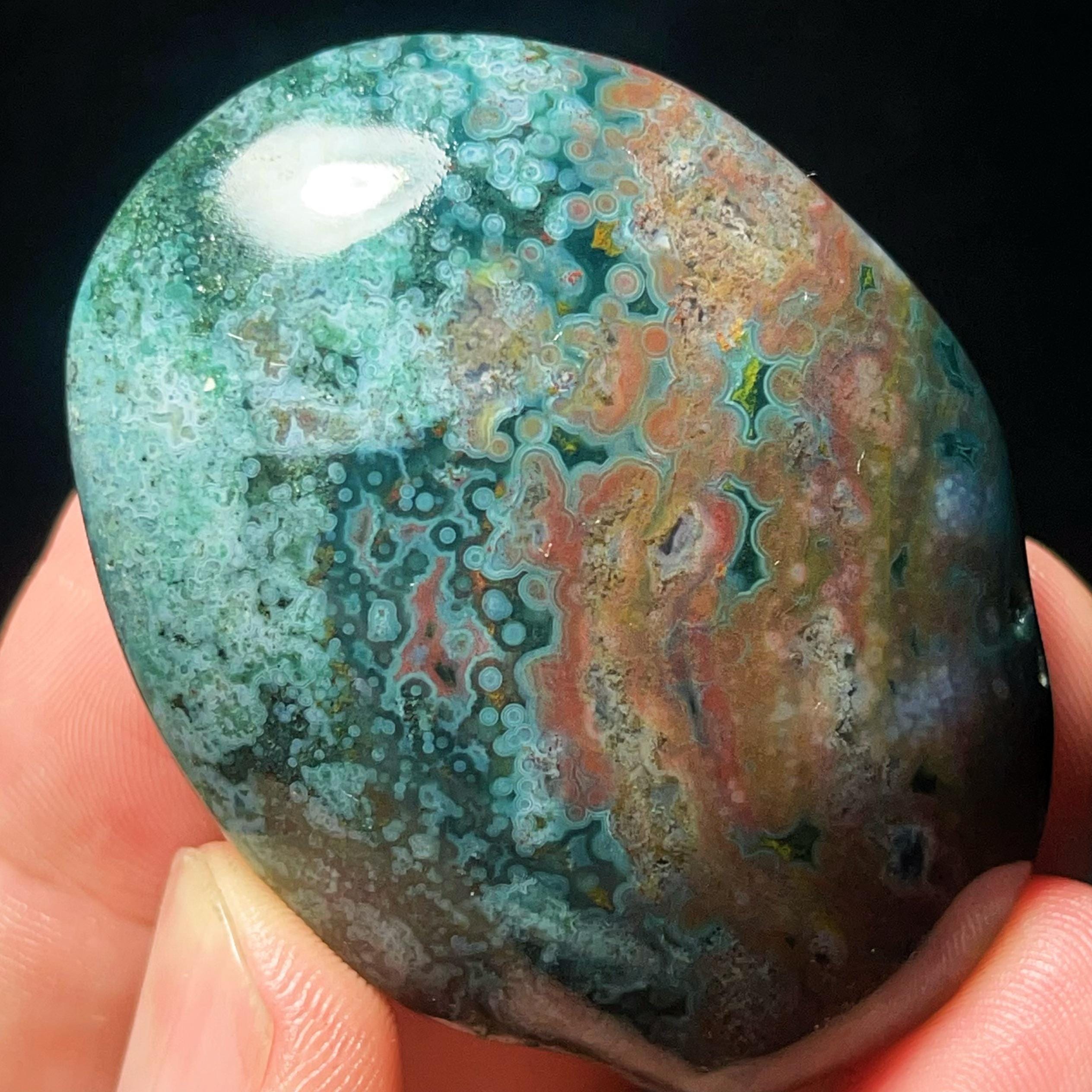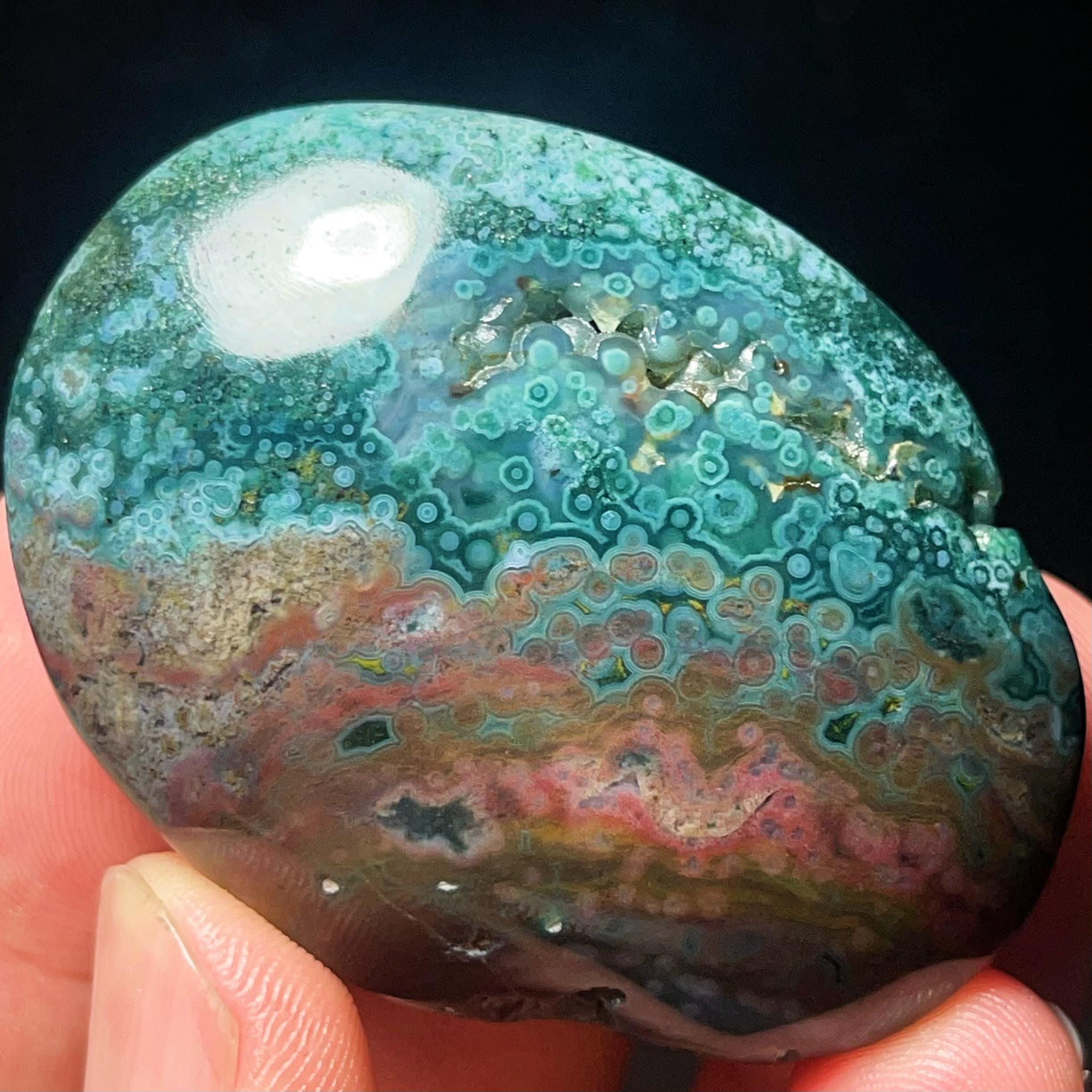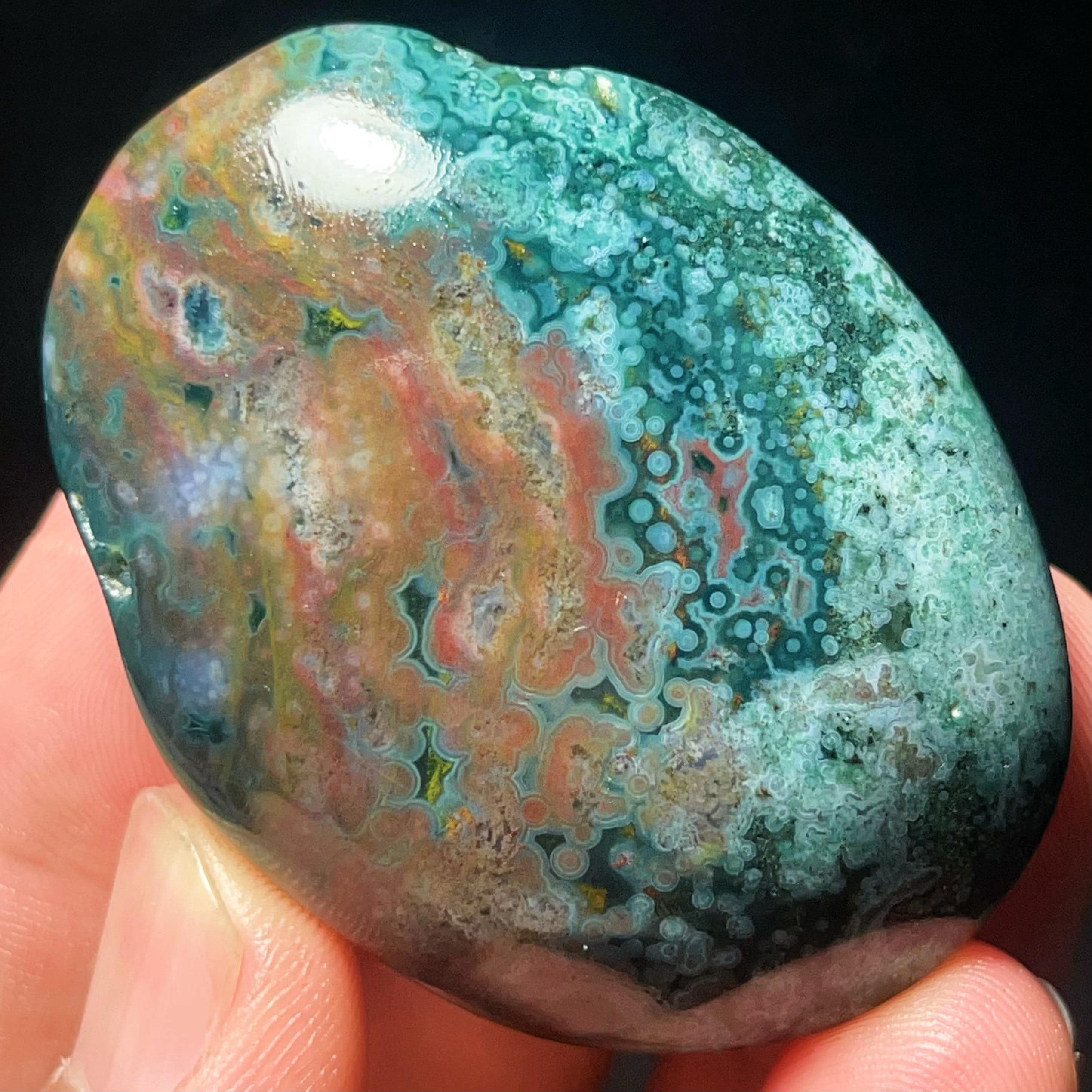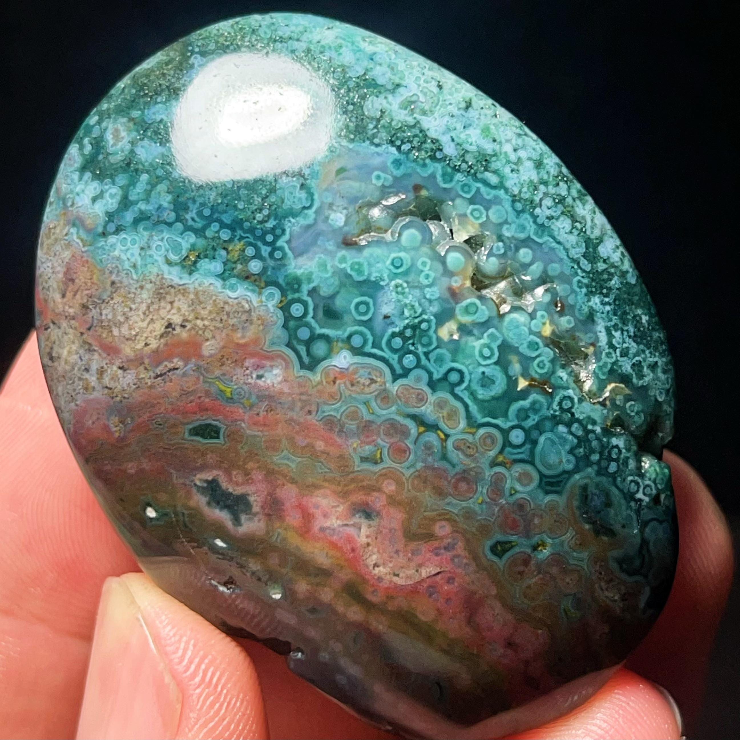 Natural Orbicular Ocean Jasper: Carved Reiki Meditation Stone L6337
