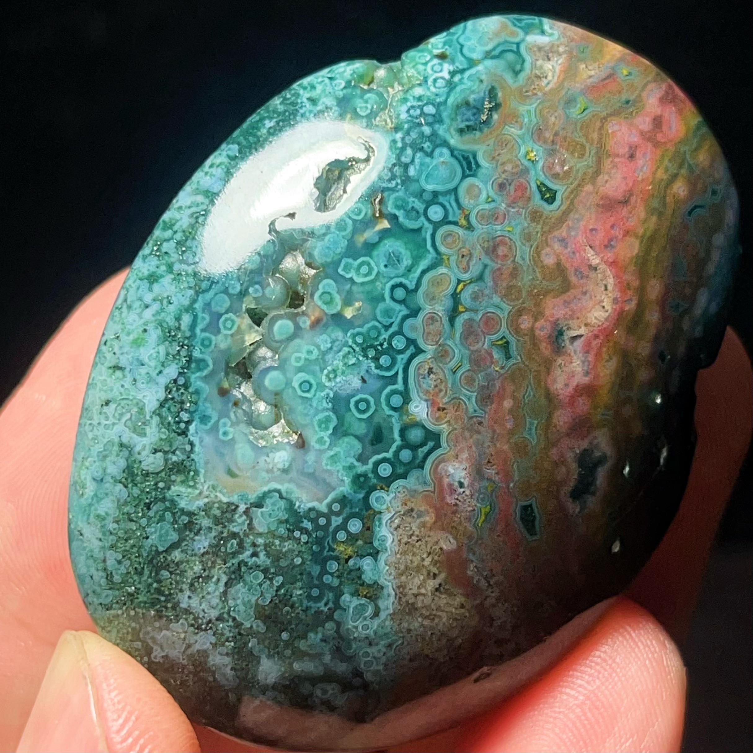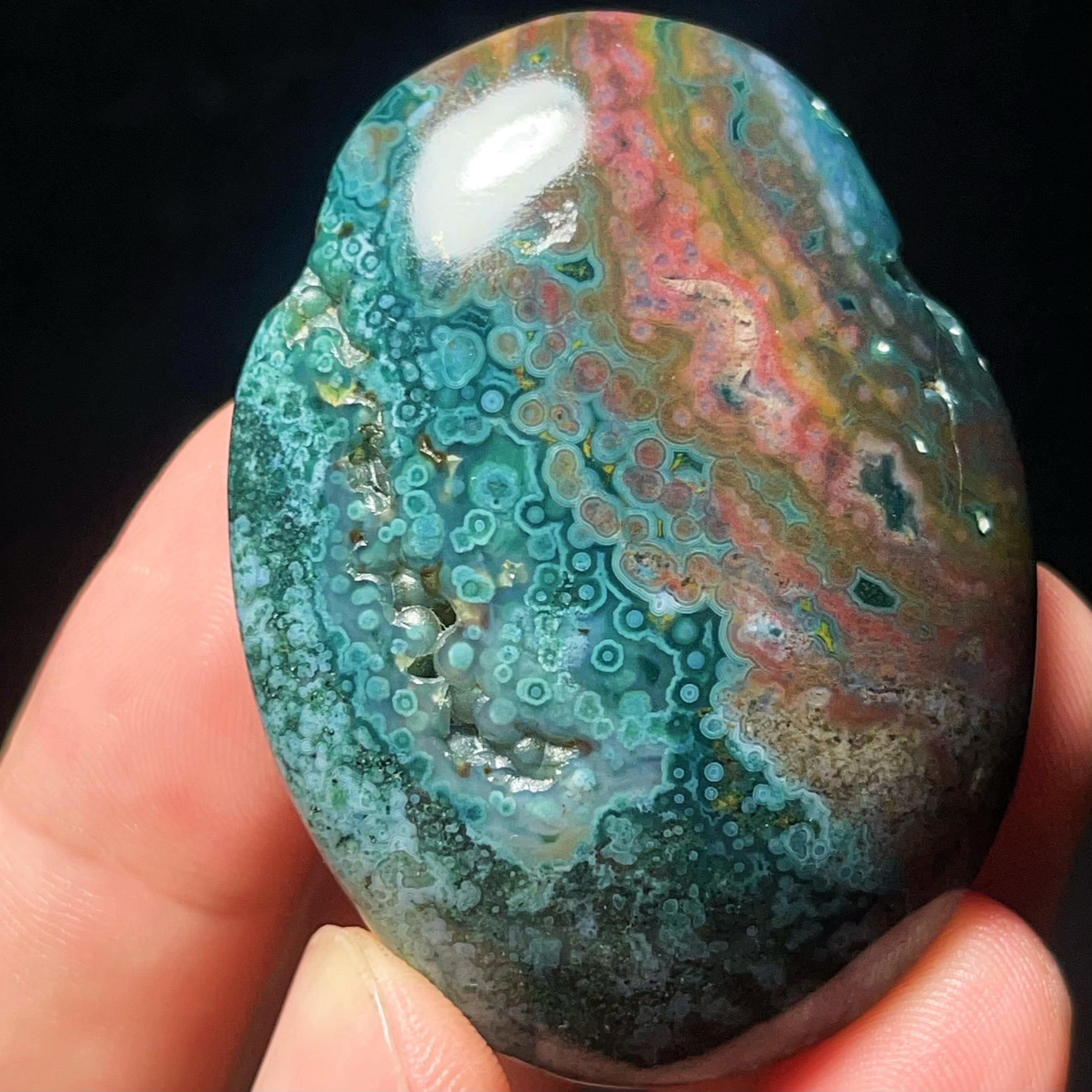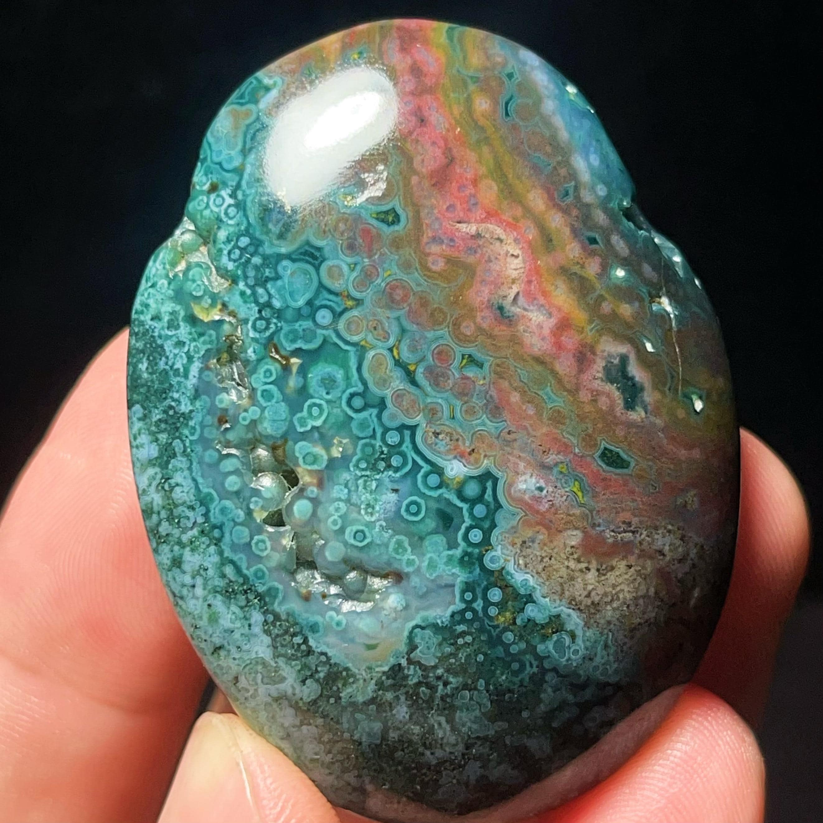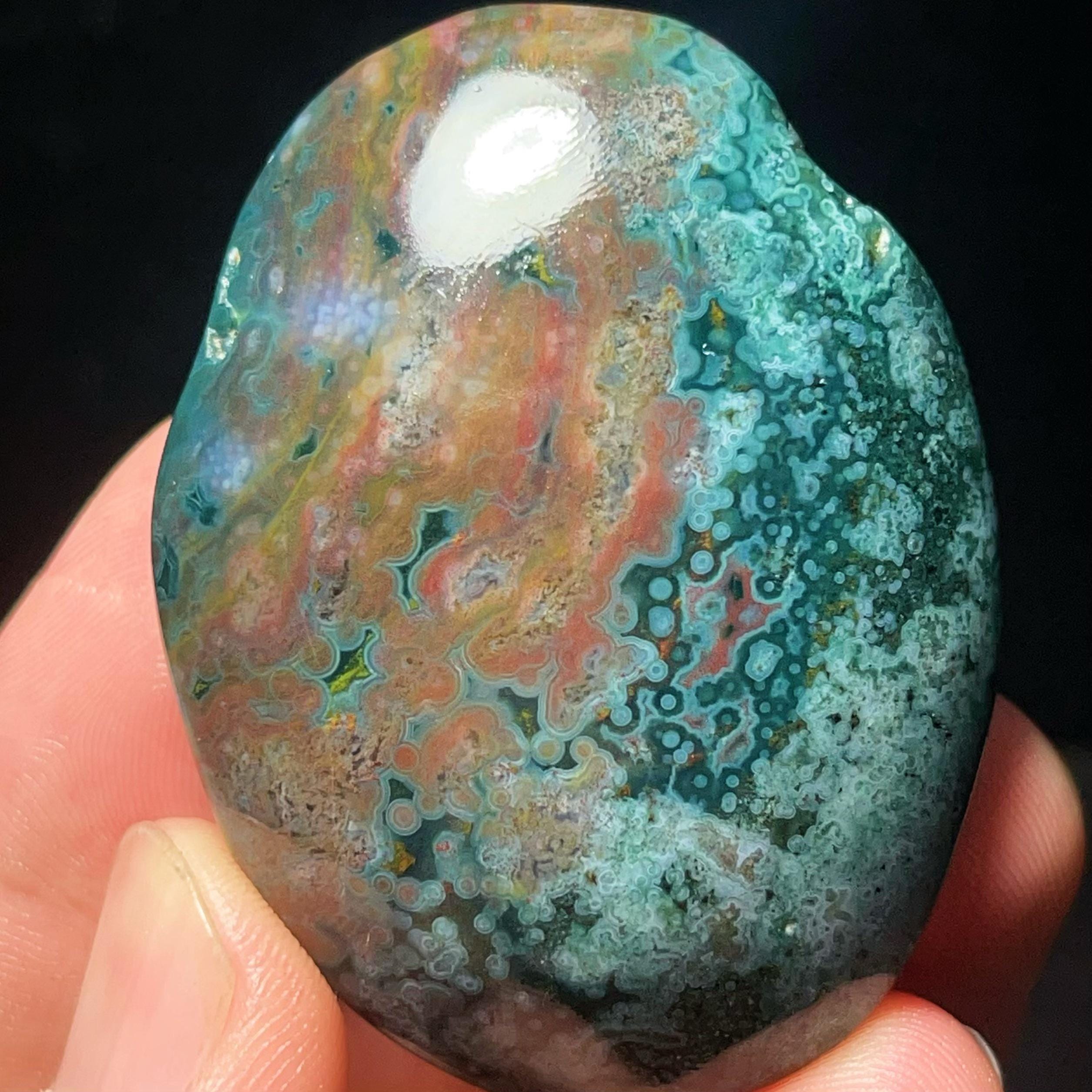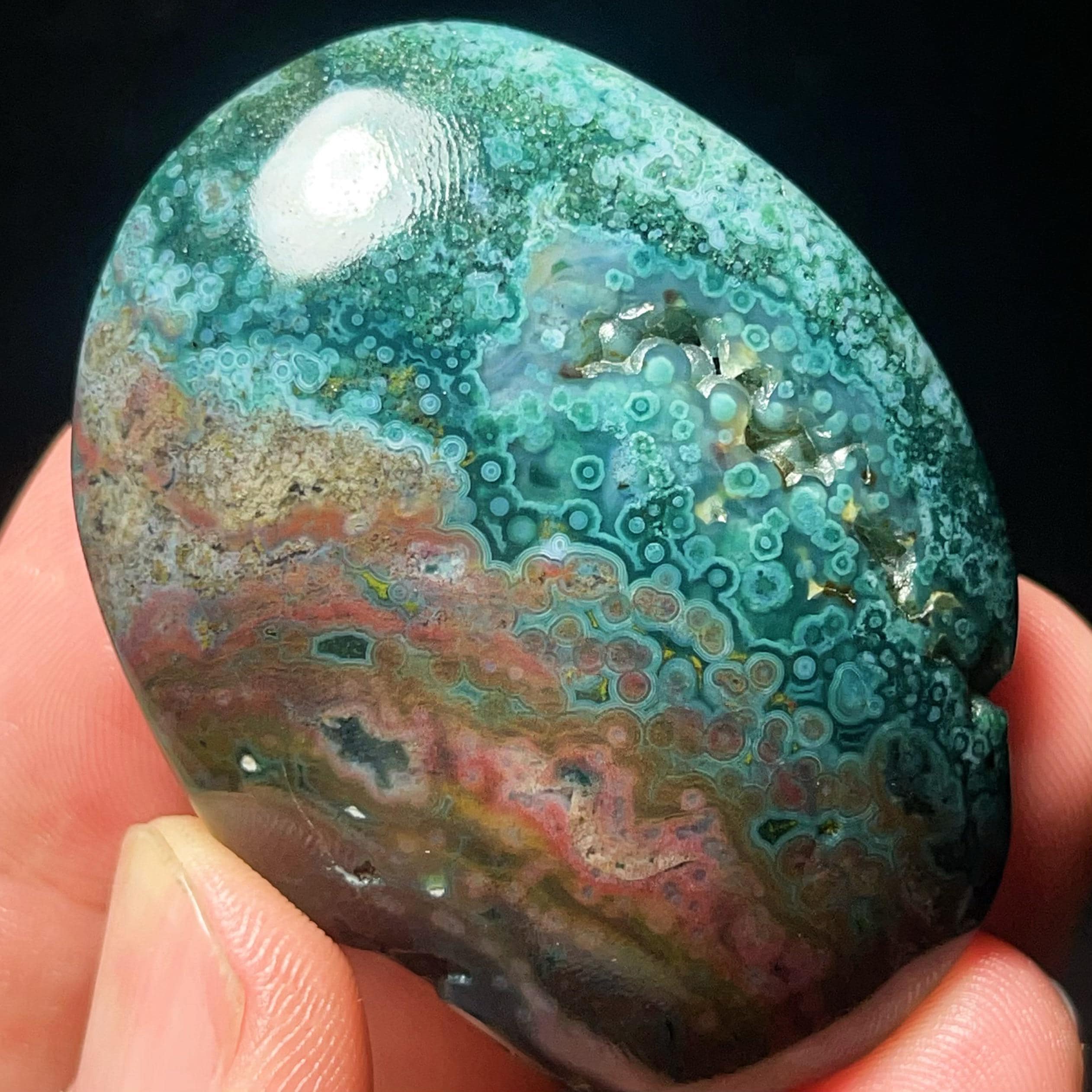 Natural Orbicular Ocean Jasper: Carved Reiki Meditation Stone L6337