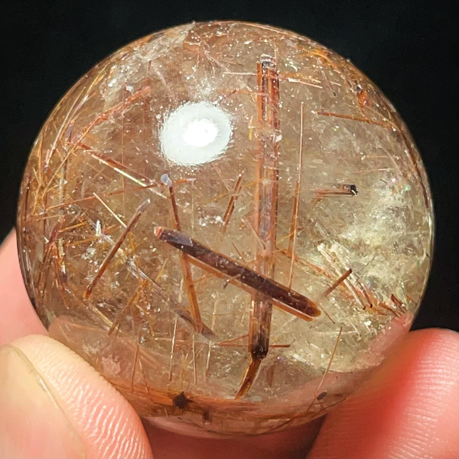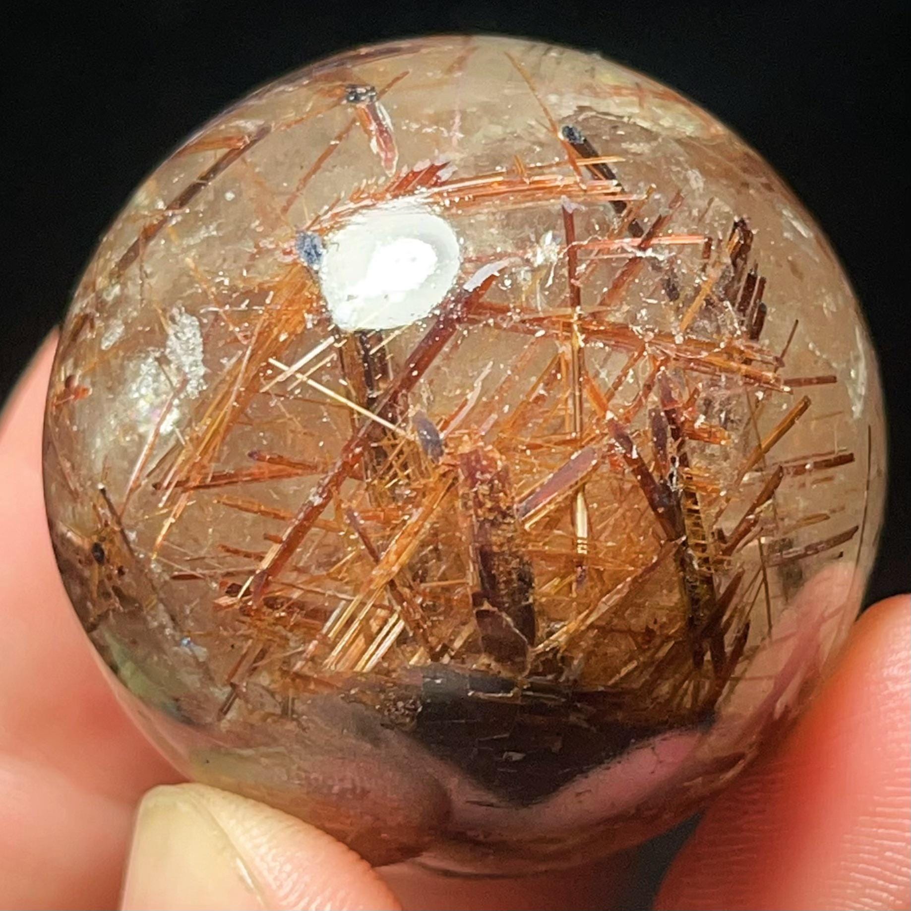 Red Rutilated Quartz Crystal Sphere: Healing Stone, Energy Gift (37mm, 73g) L6338