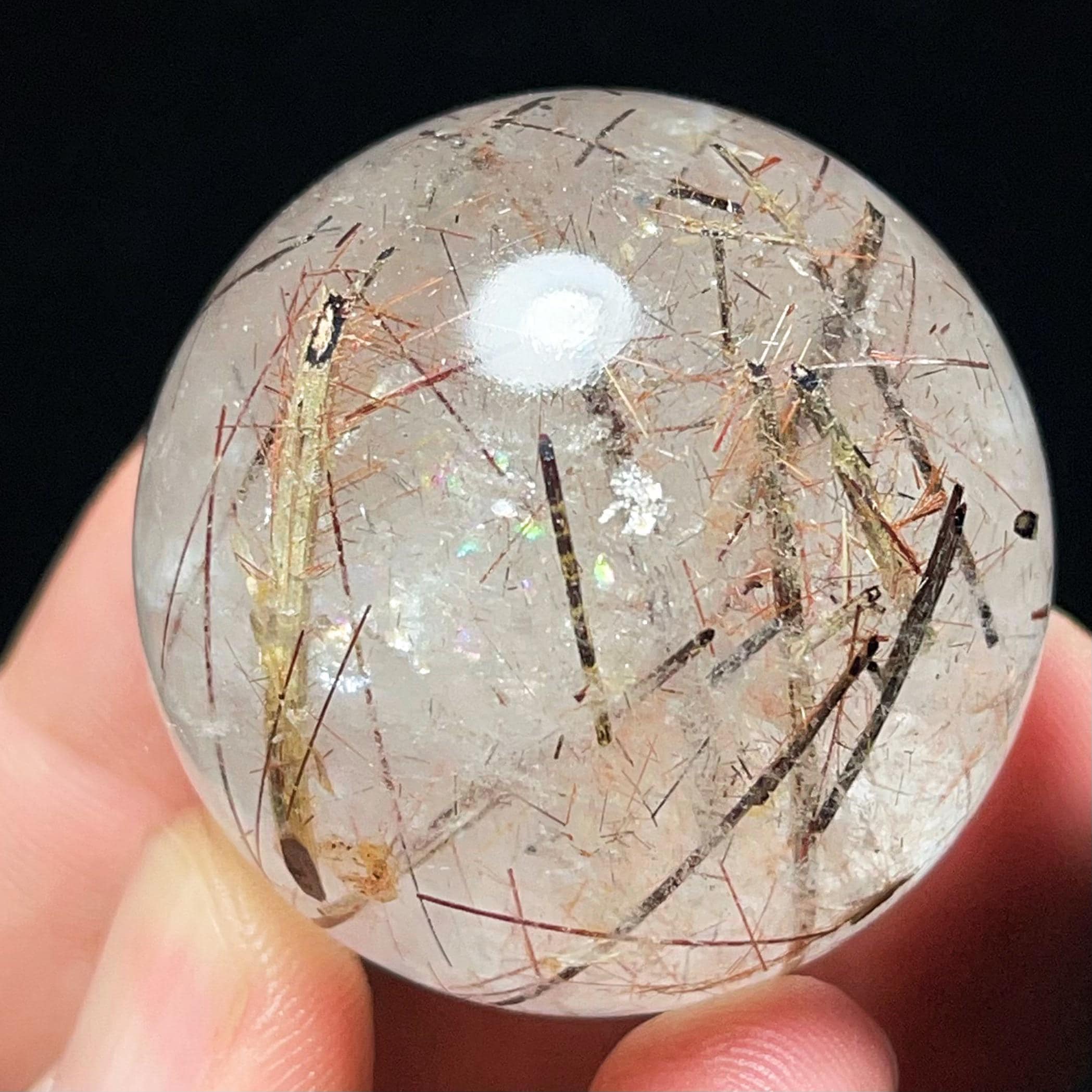 Red Rutilated Quartz Crystal Sphere: Chakra Reiki Meditation Stone L6495