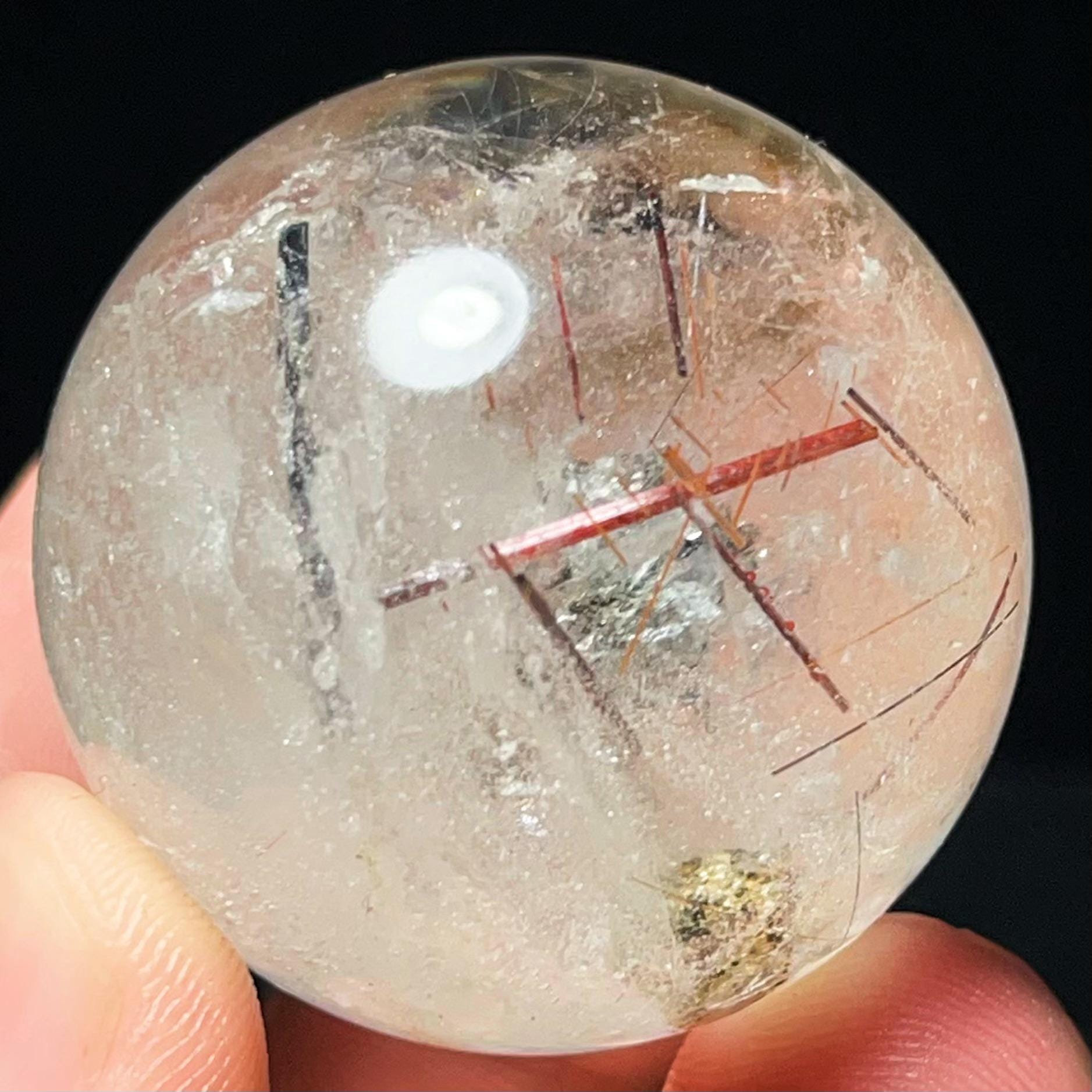 Red Rutilated Quartz Crystal Sphere: Chakra Reiki Meditation Stone L6501