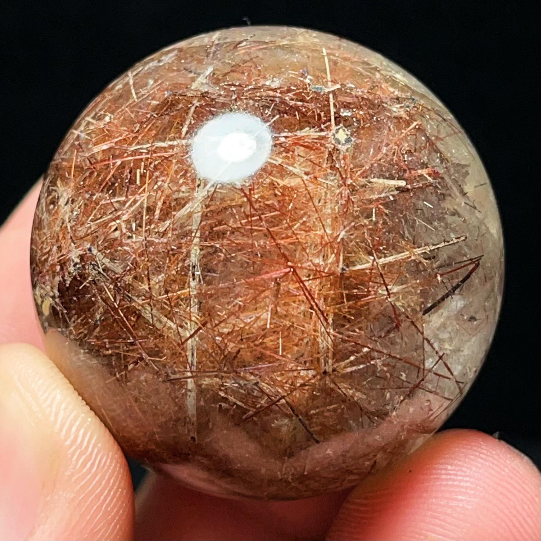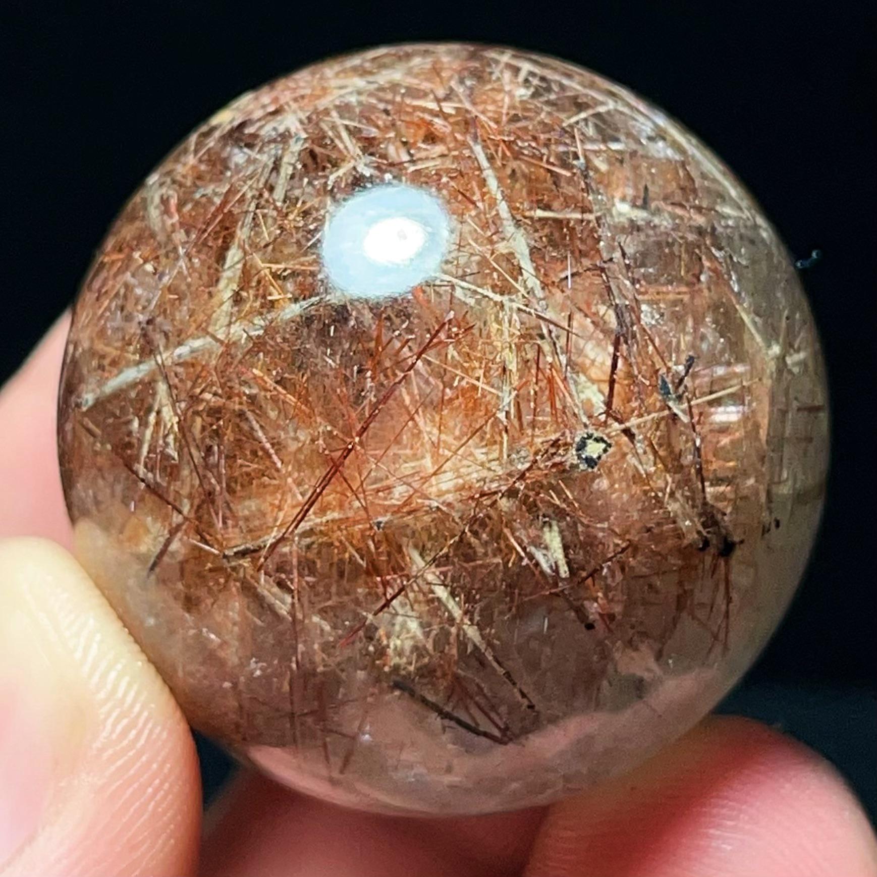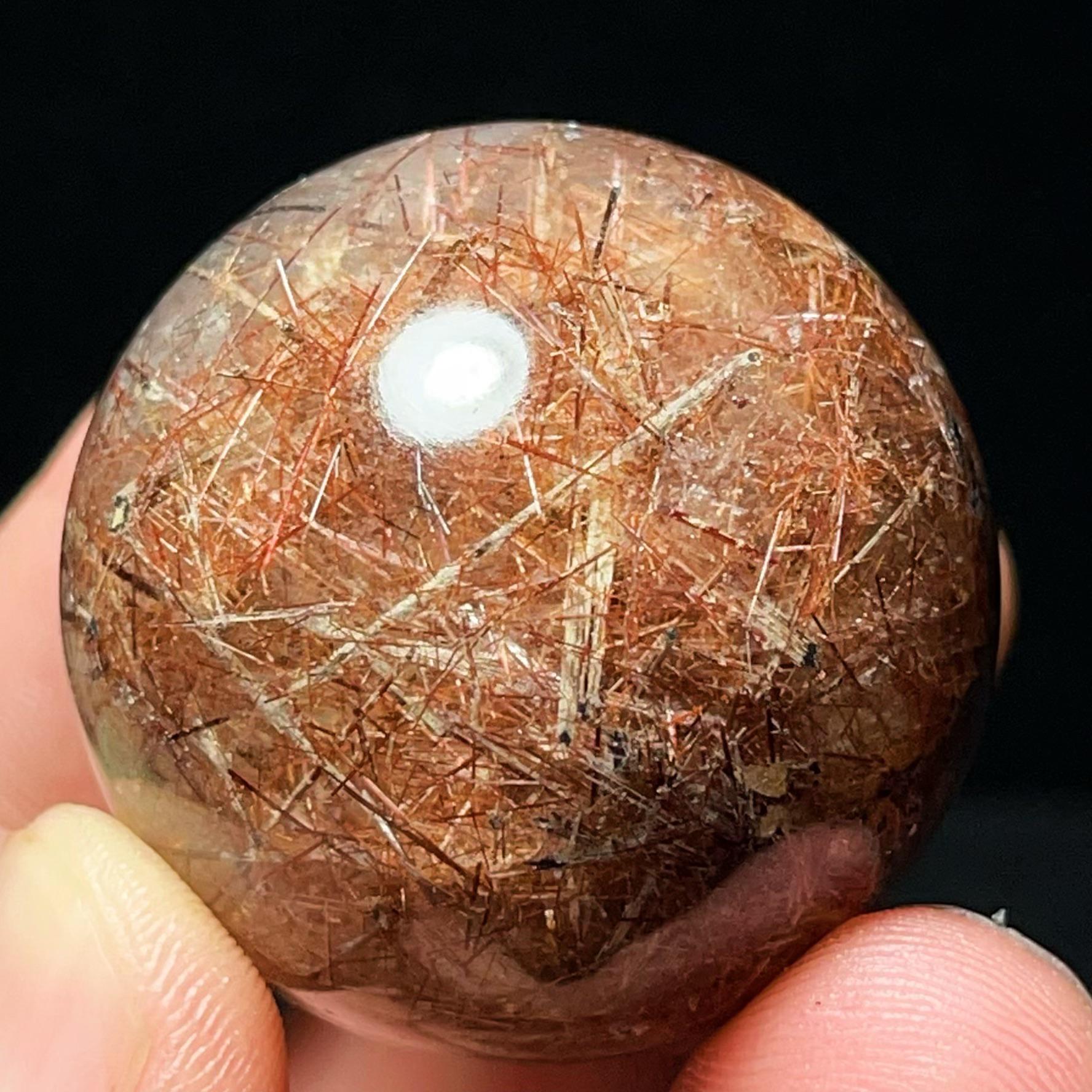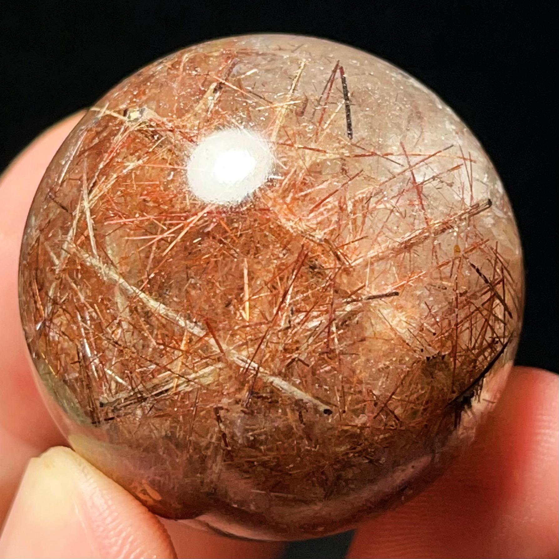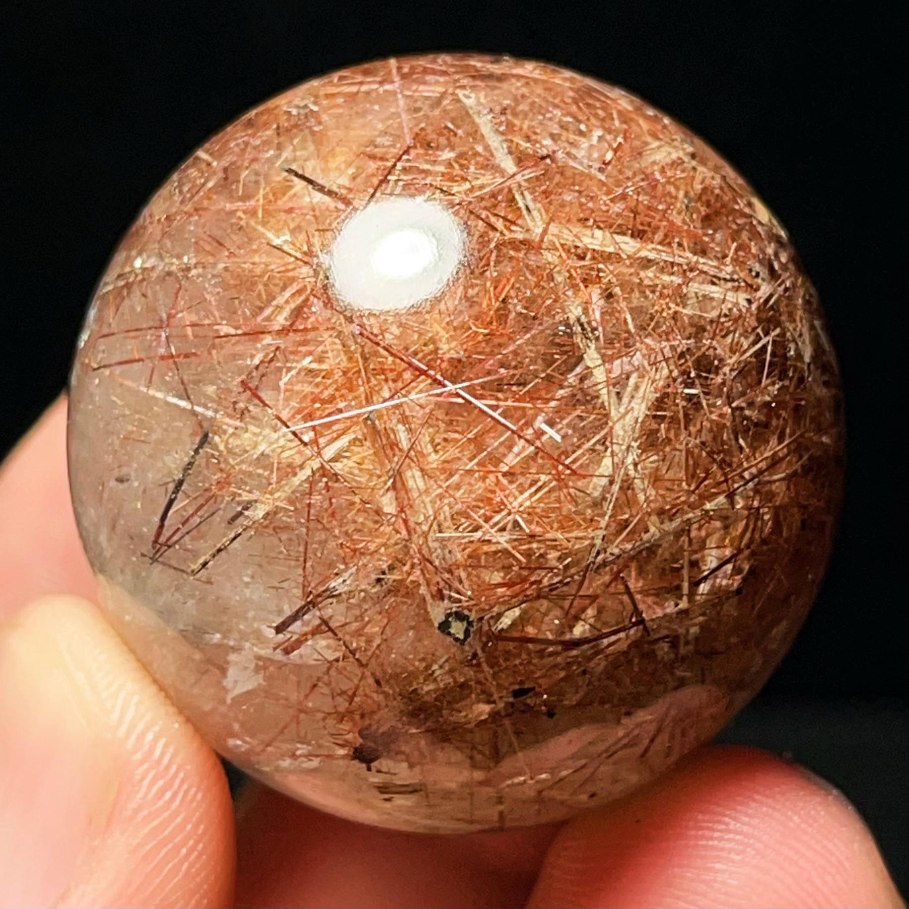 Red Hair Rutilated Quartz Crystal Sphere: Healing Stone, Energy Gift L6496