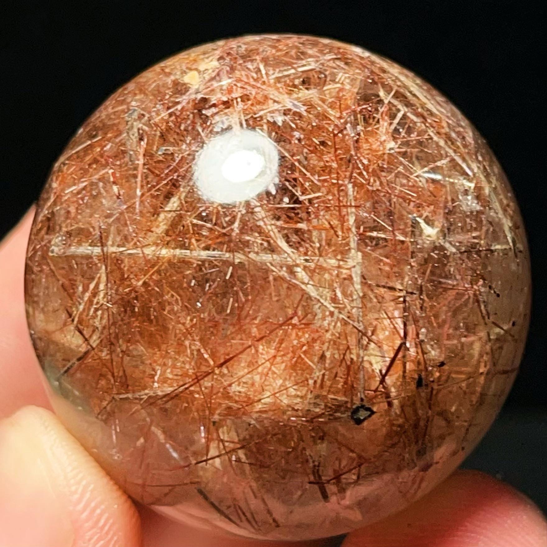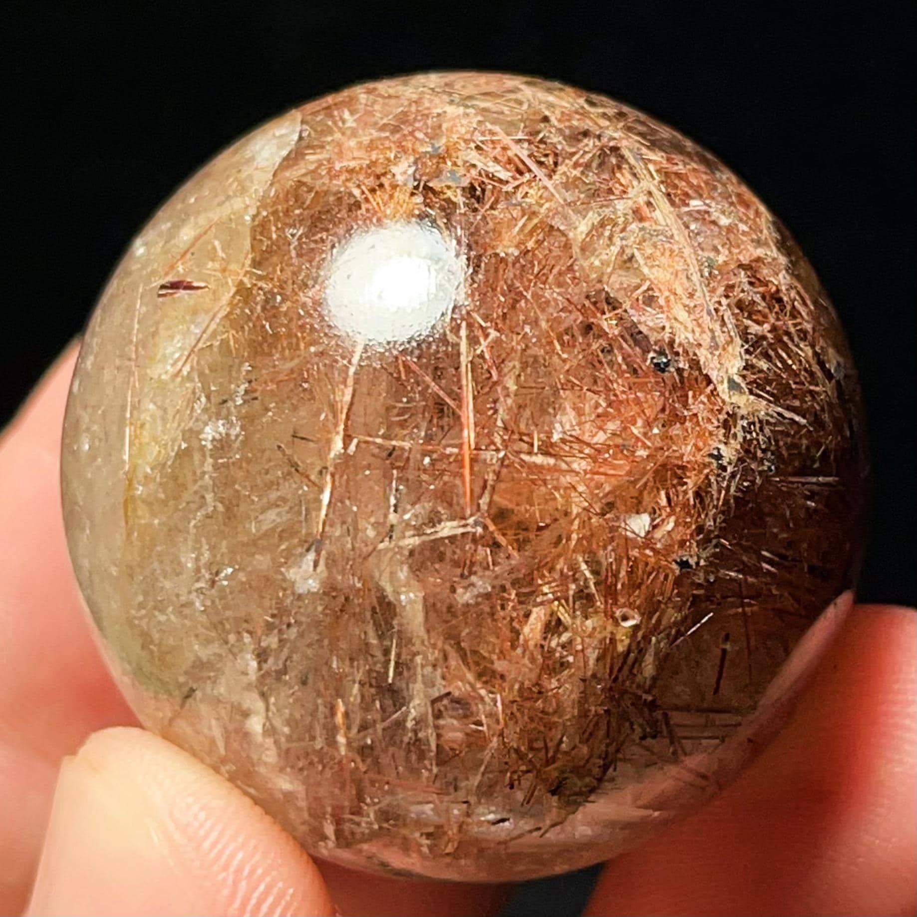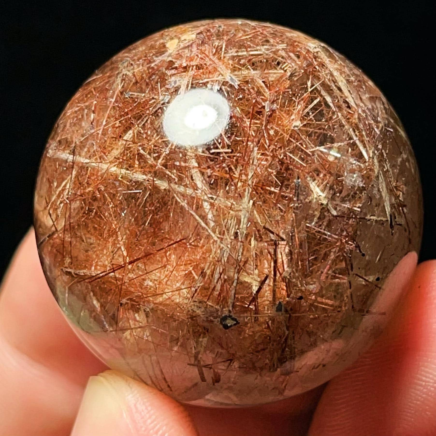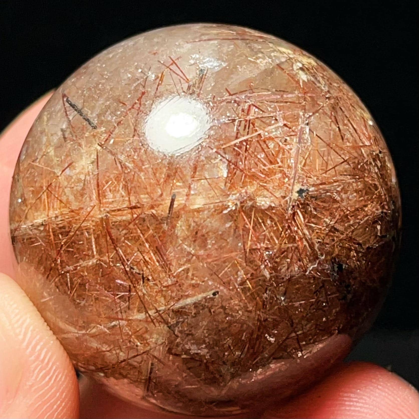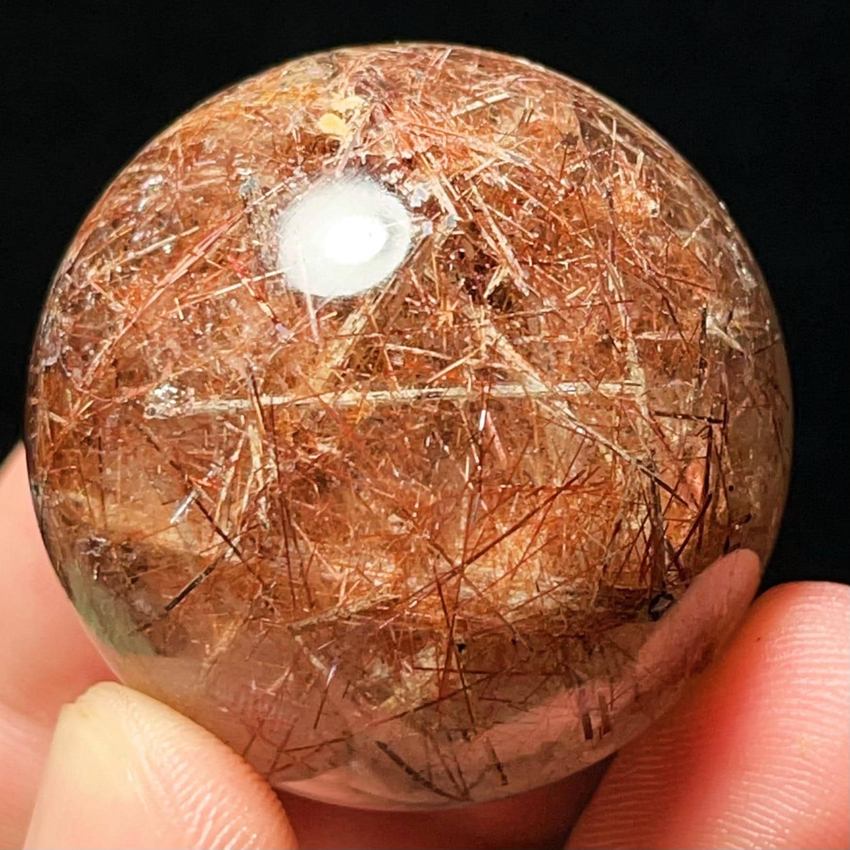 Red Hair Rutilated Quartz Crystal Sphere: Healing Stone, Energy Gift L6496