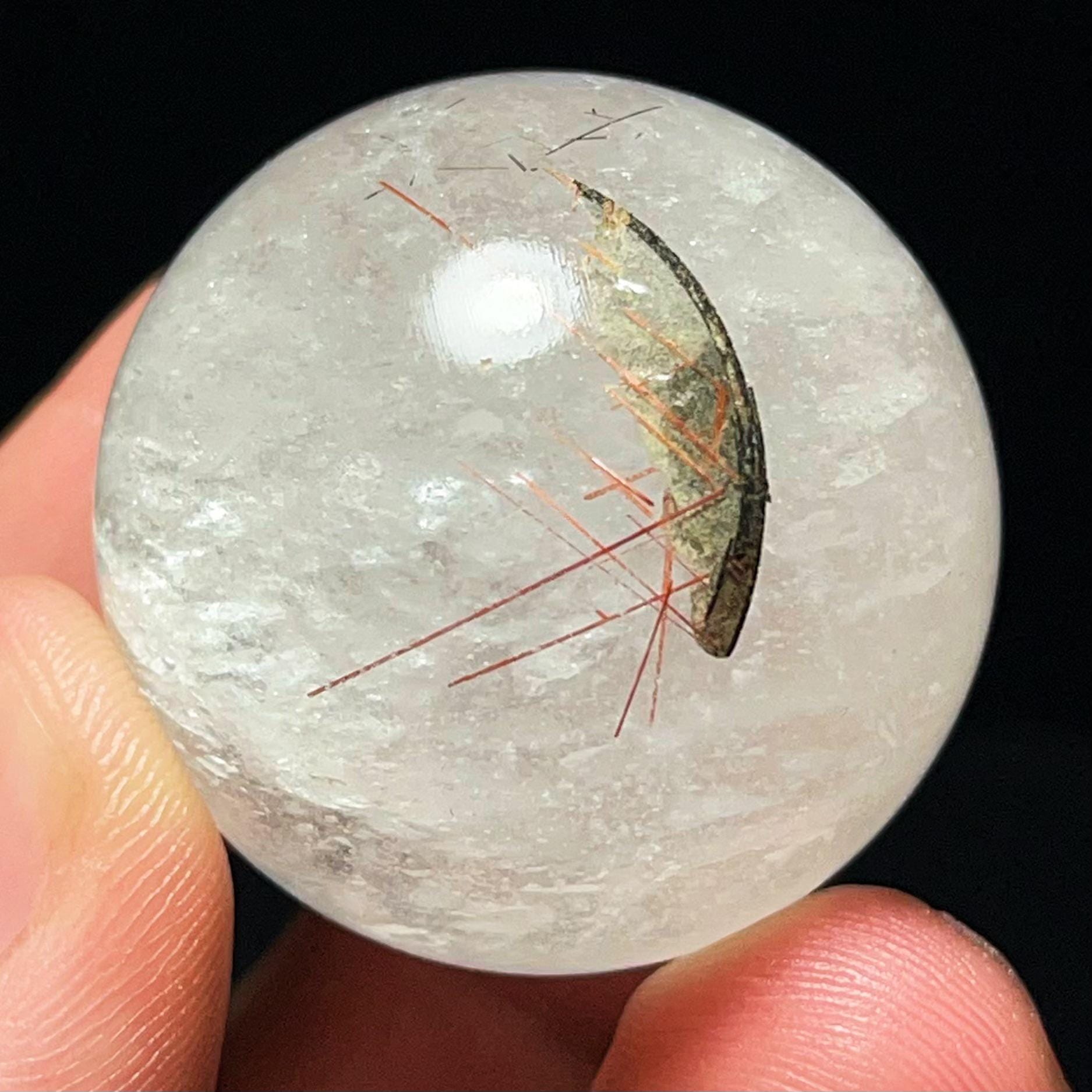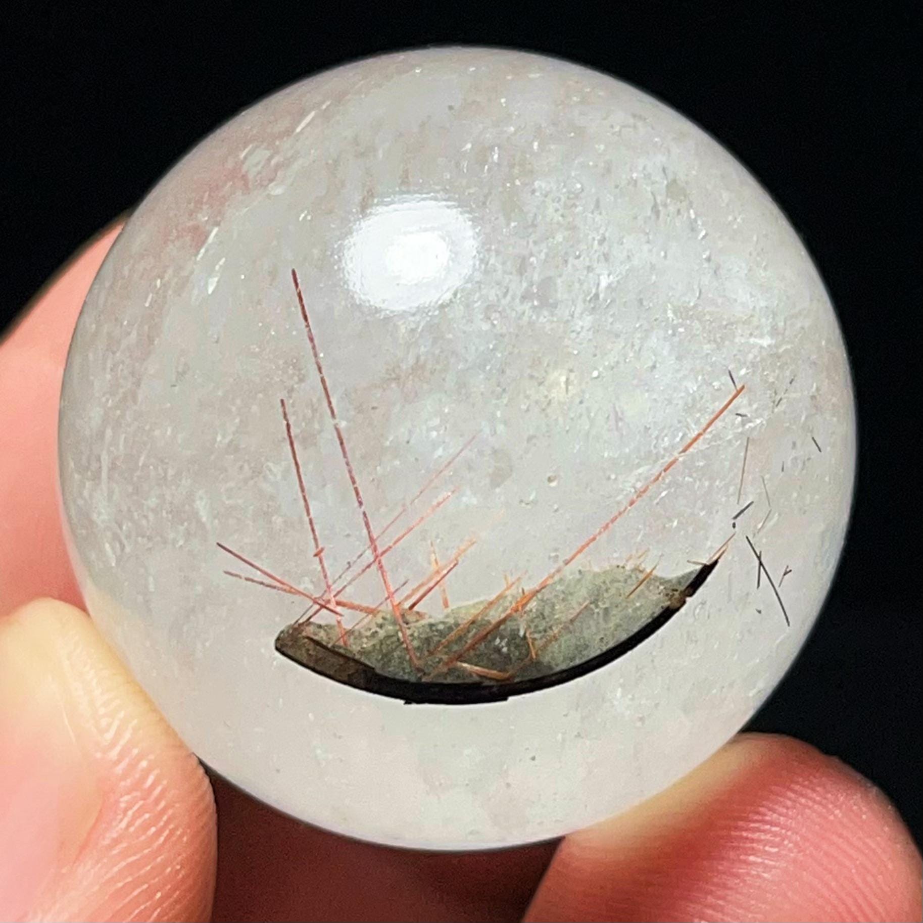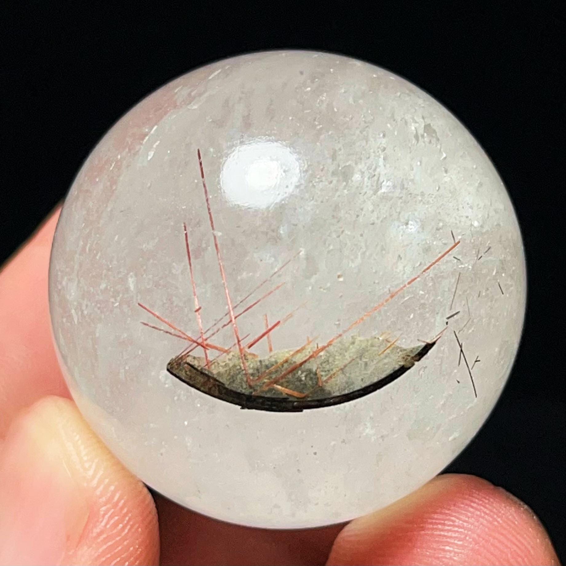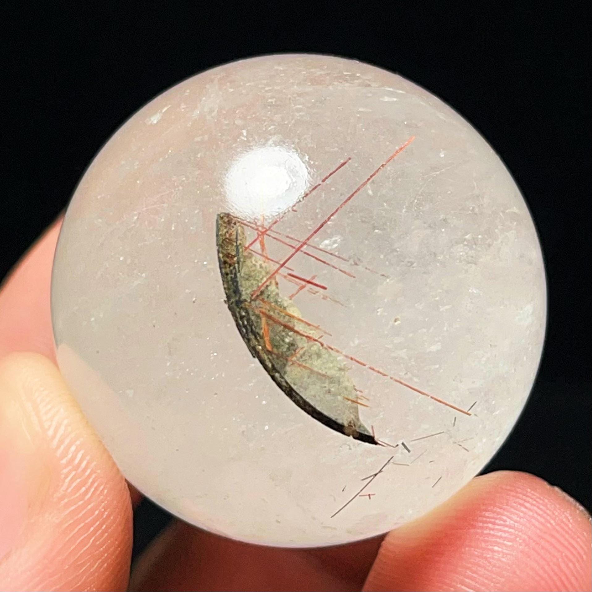 Red Hair Rutilated Quartz Crystal Sphere: Healing Stone, Energy Gift L6503