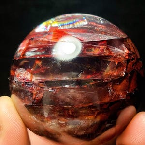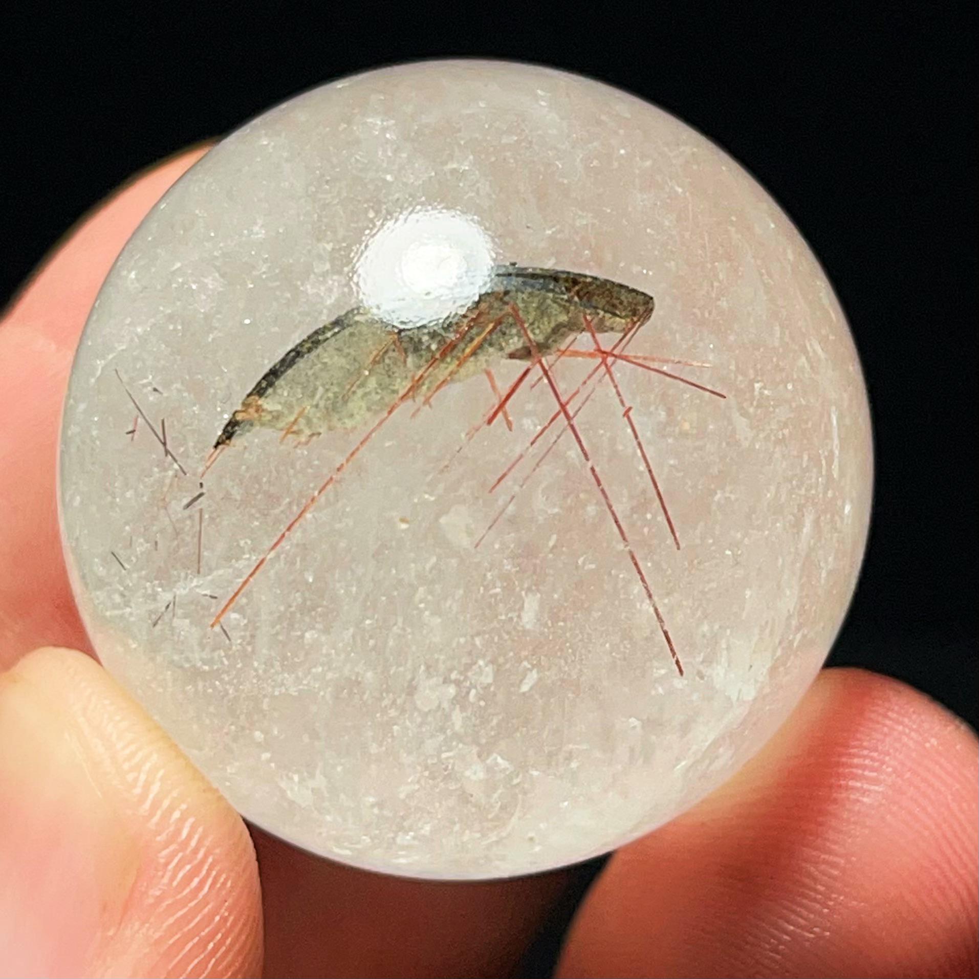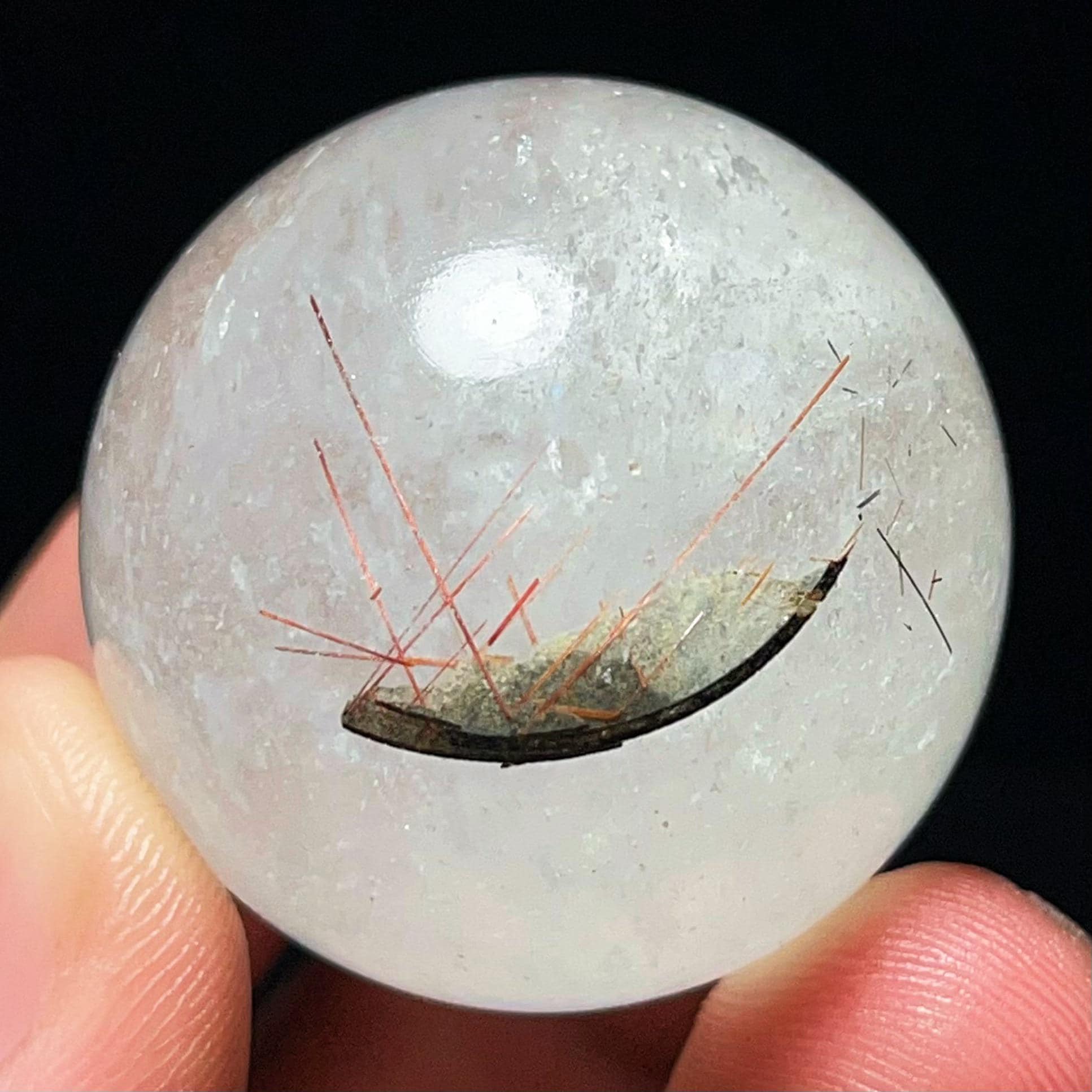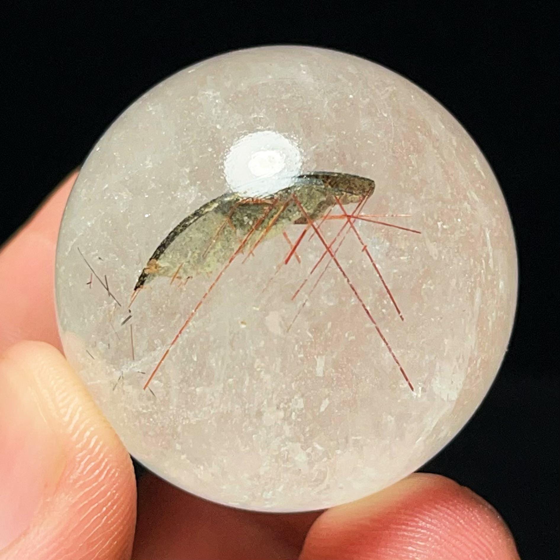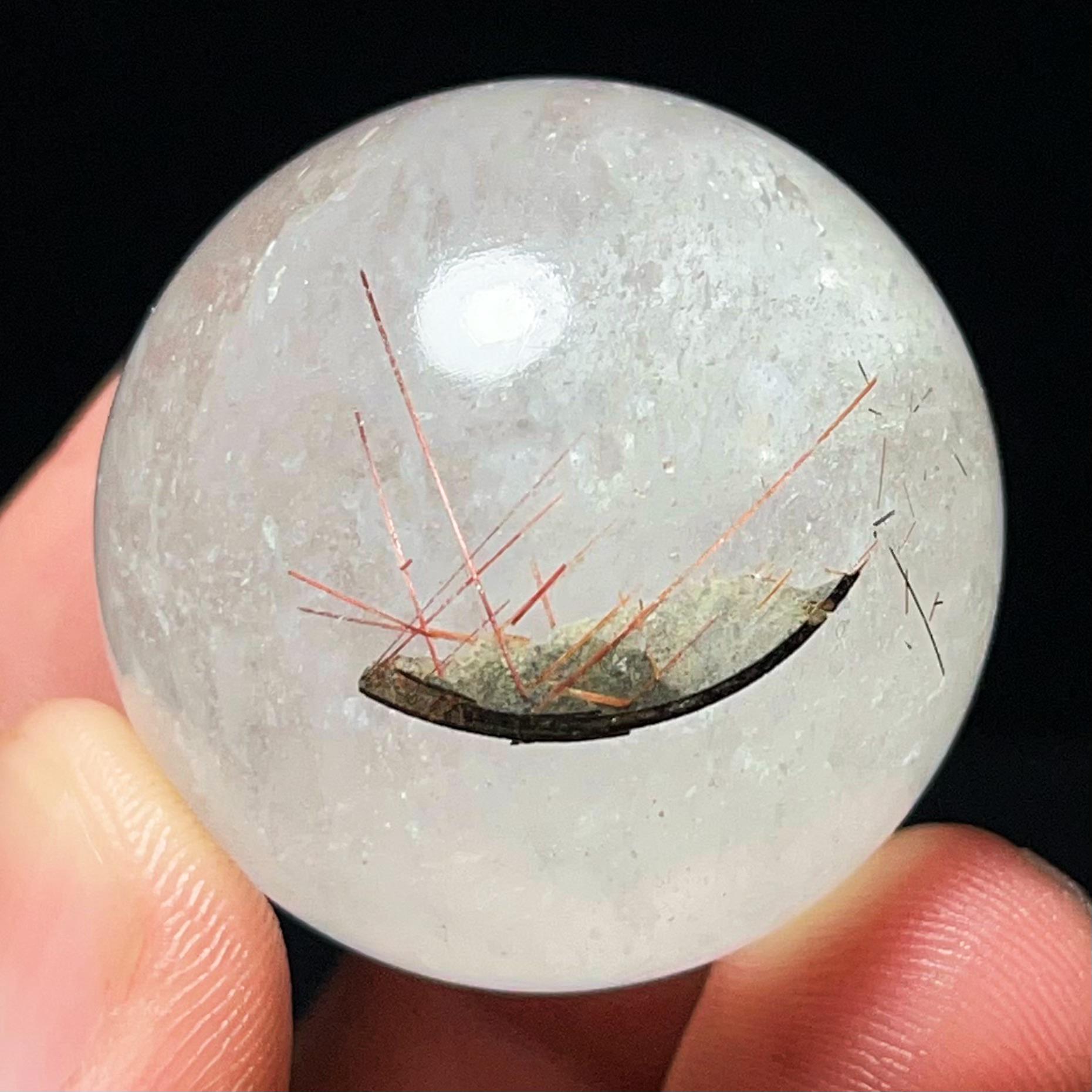 Red Hair Rutilated Quartz Crystal Sphere: Healing Stone, Energy Gift L6503