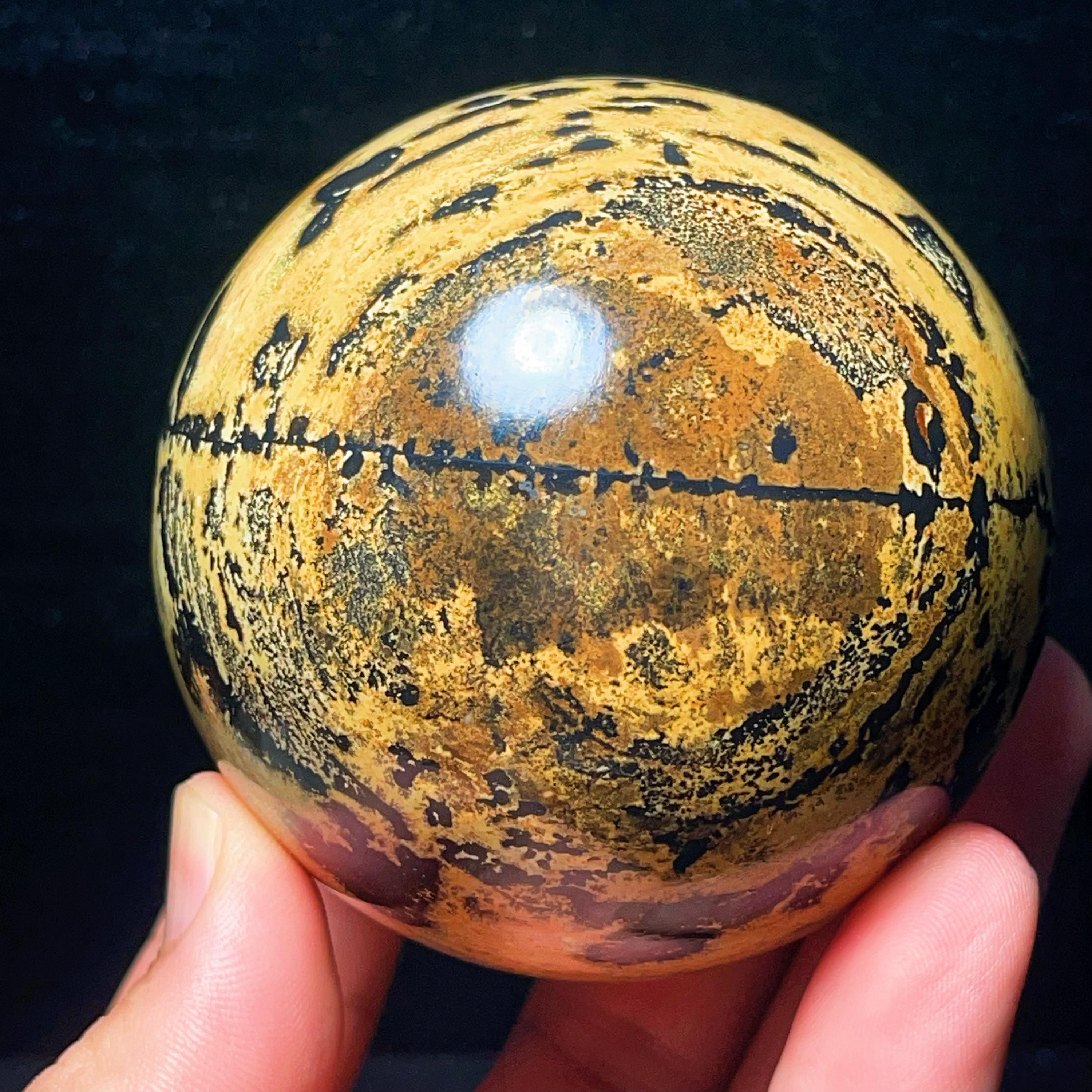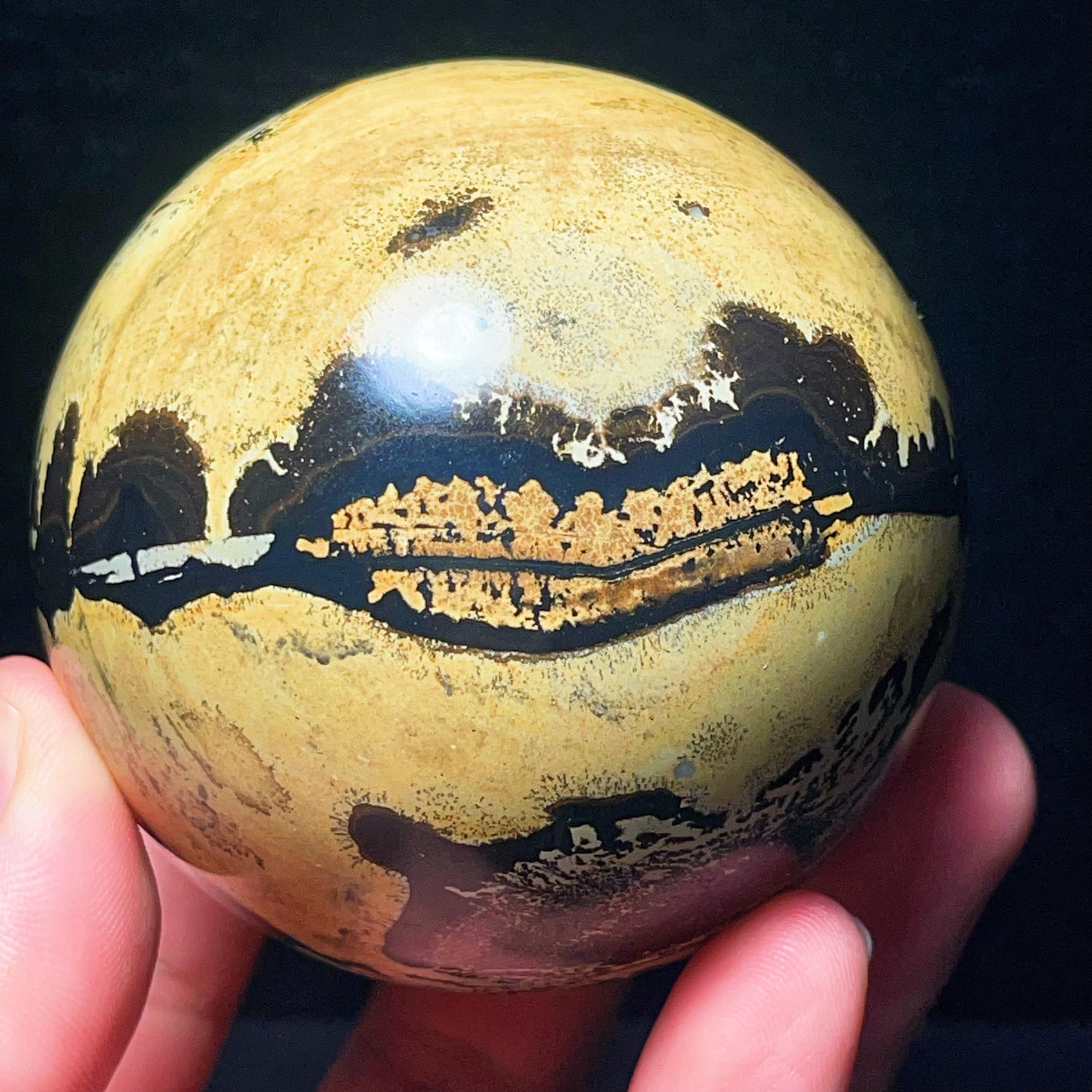 Natural Aquatic Agate Sphere: Carved Crystal Palm Stone, Energy Healing L6565