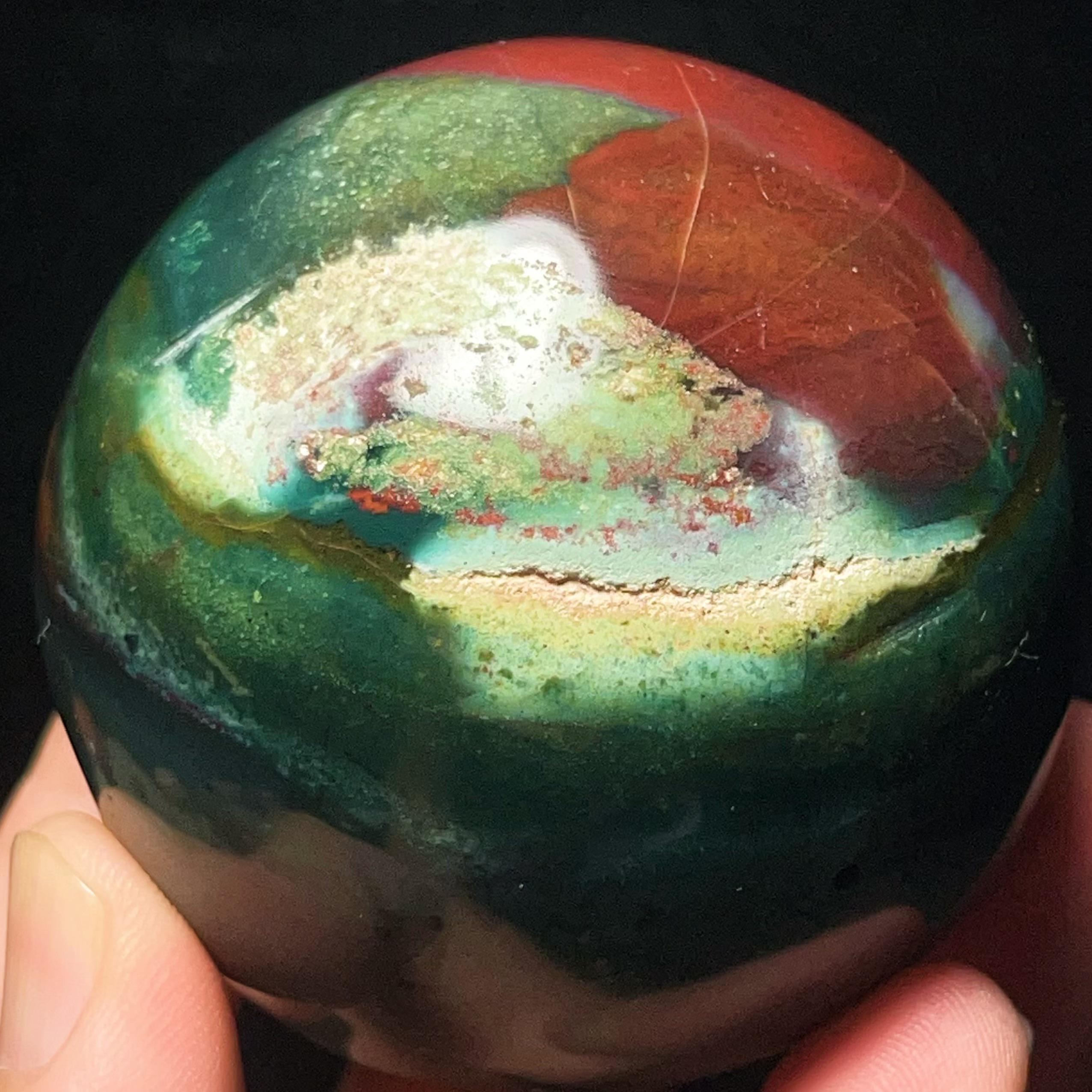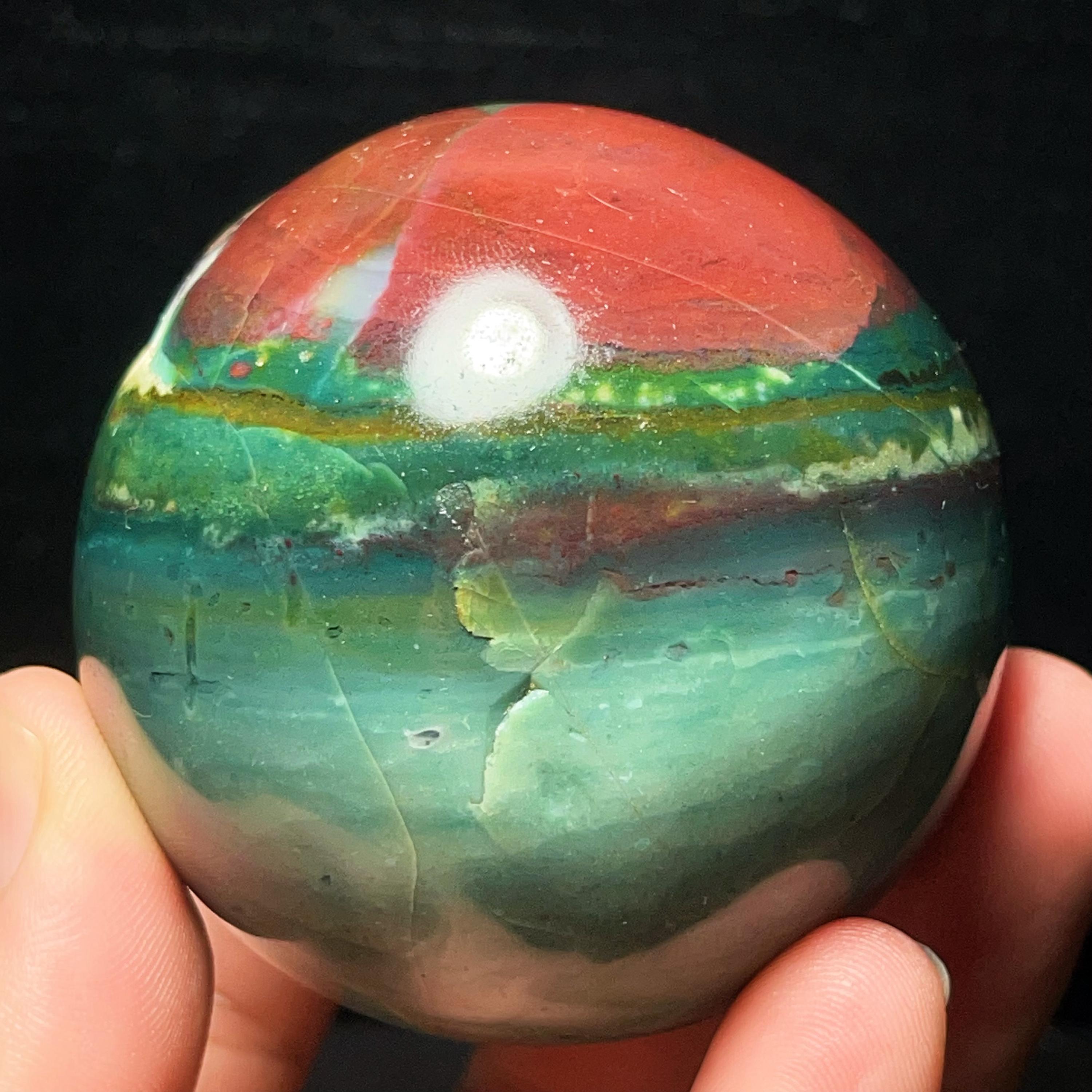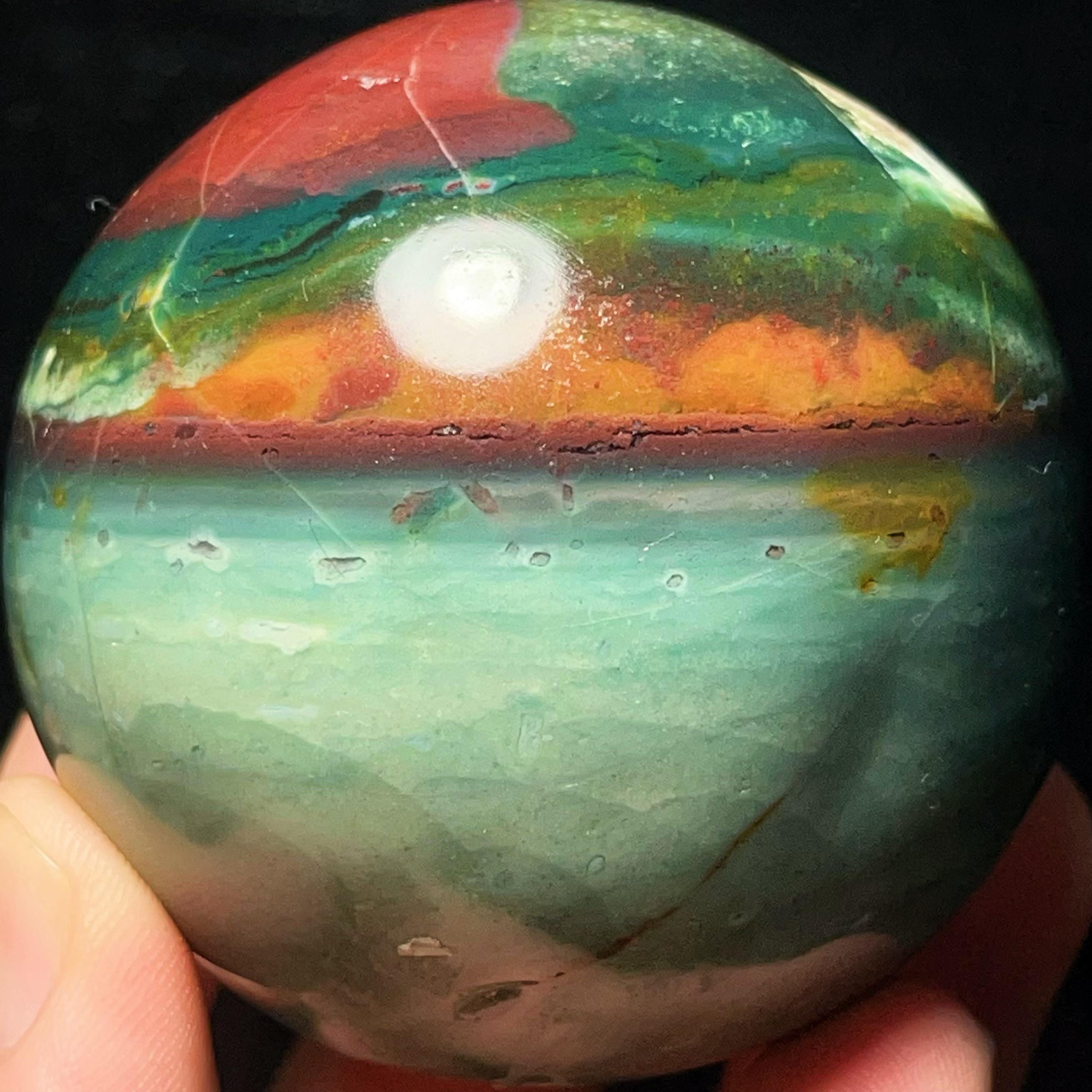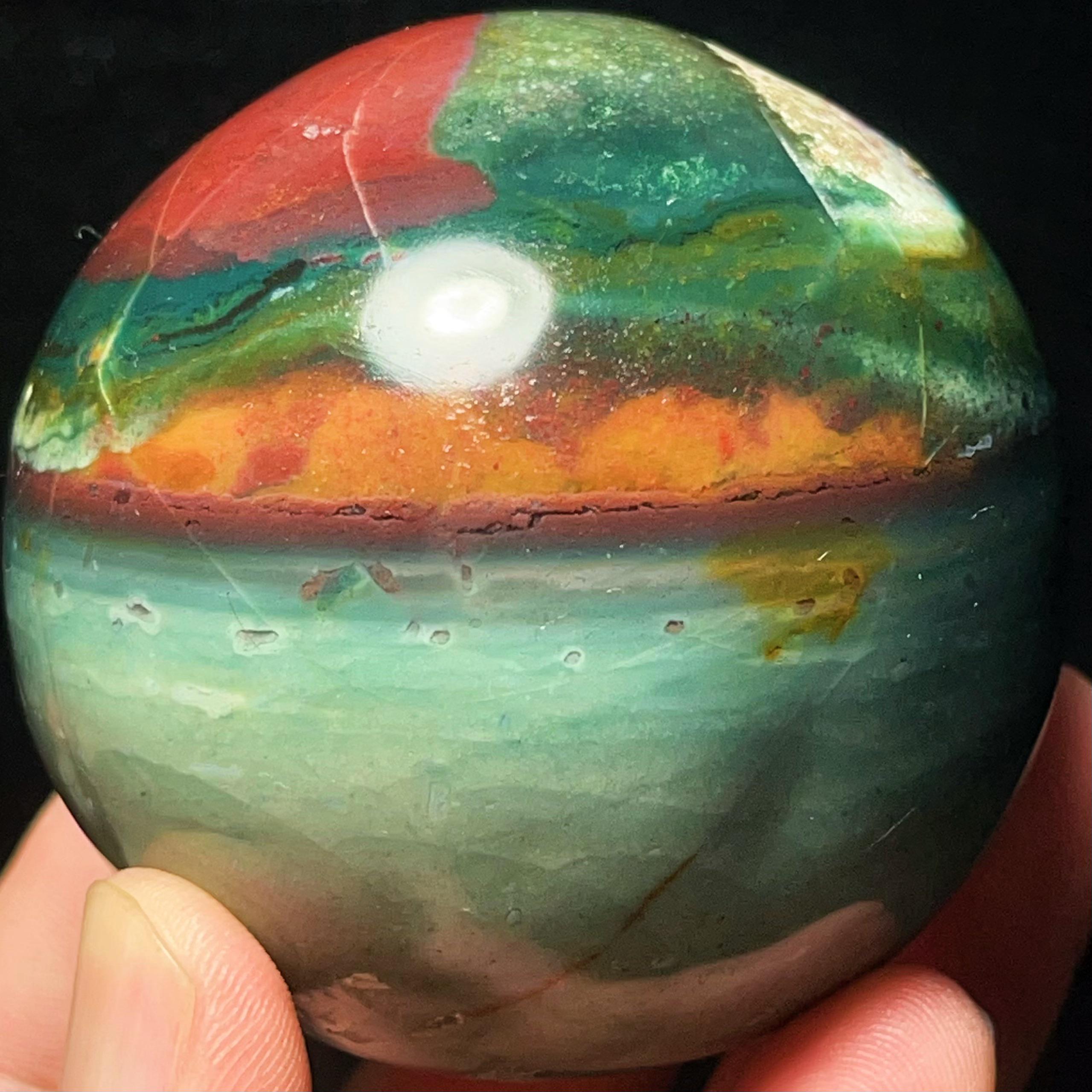 Natural Orbicular Ocean Jasper Sphere: Chakra Reiki Meditation Stone L6570