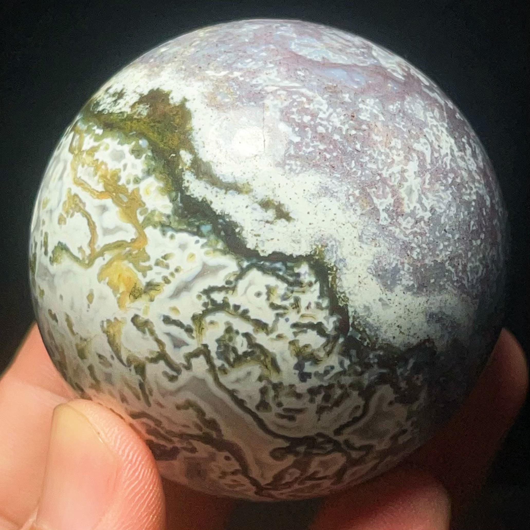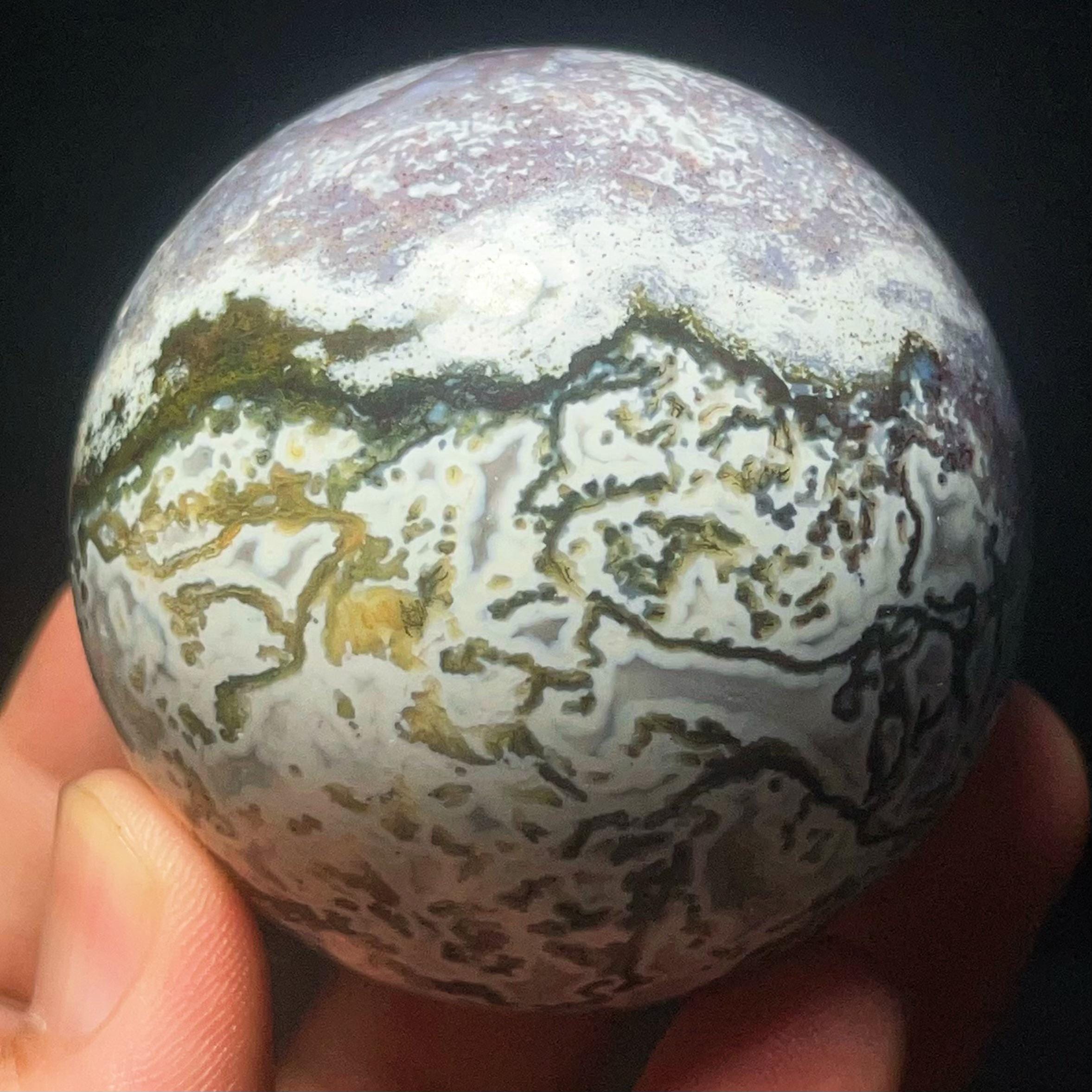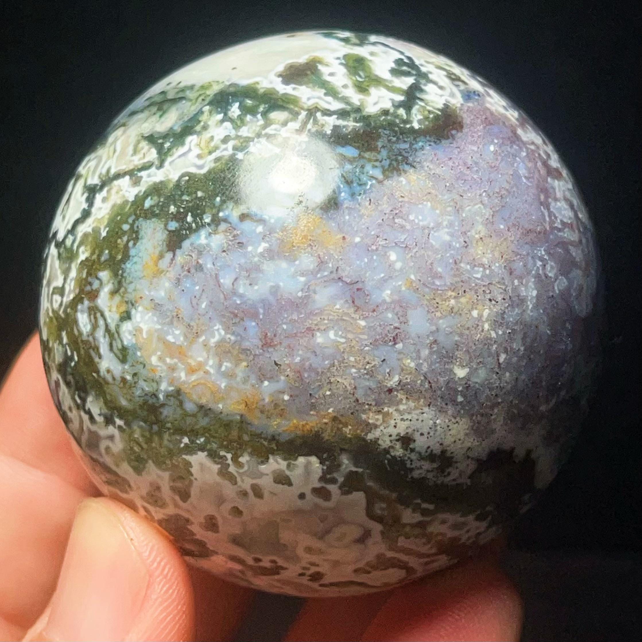 Natural Aquatic Agate Sphere: Carved Crystal Palm Stone, Energy Healing L6606