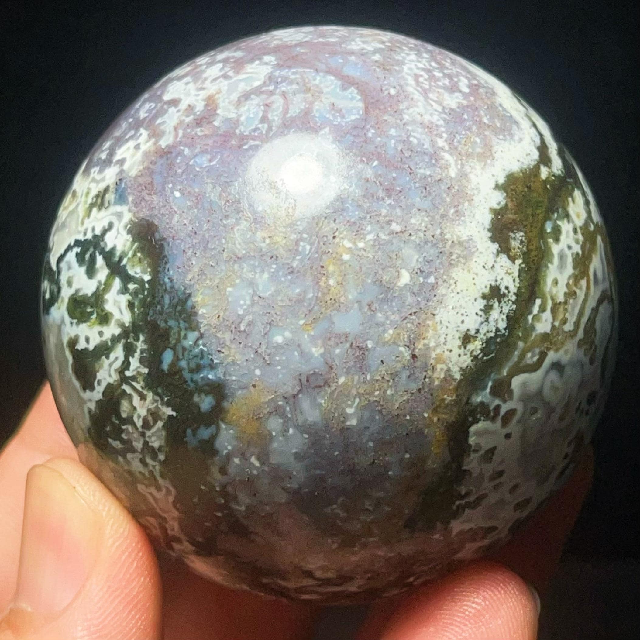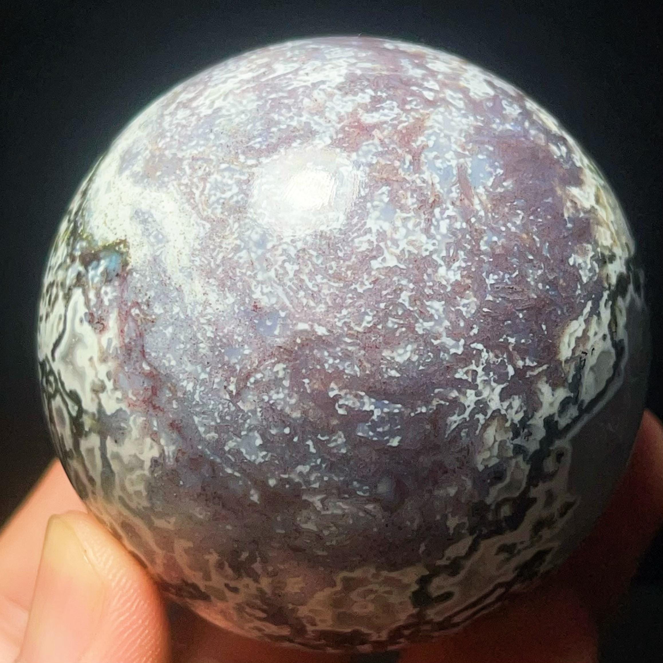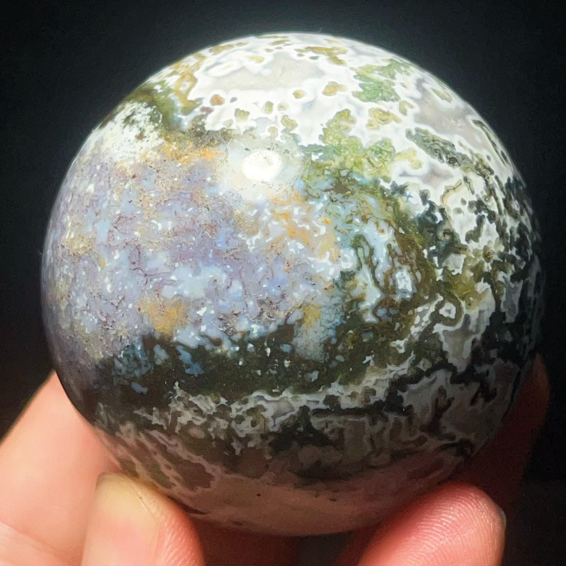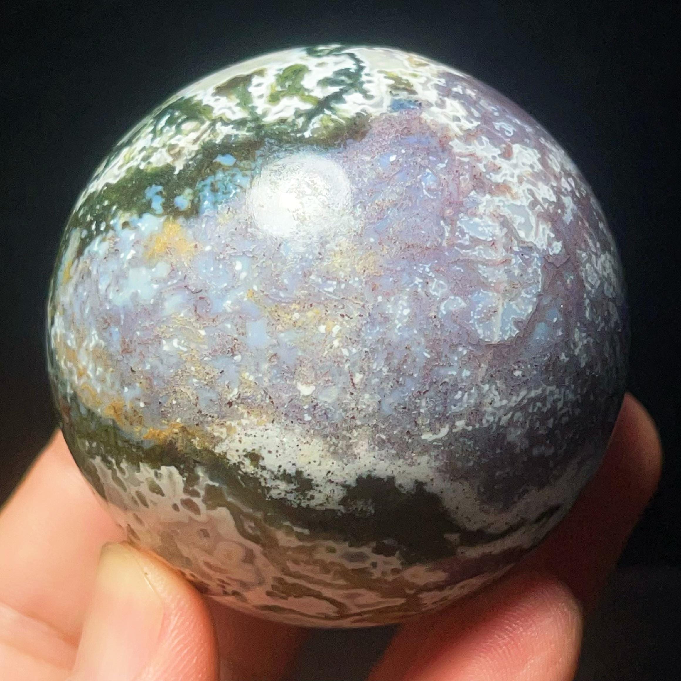Natural Aquatic Agate Sphere: Carved Crystal Palm Stone, Energy Healing L6606