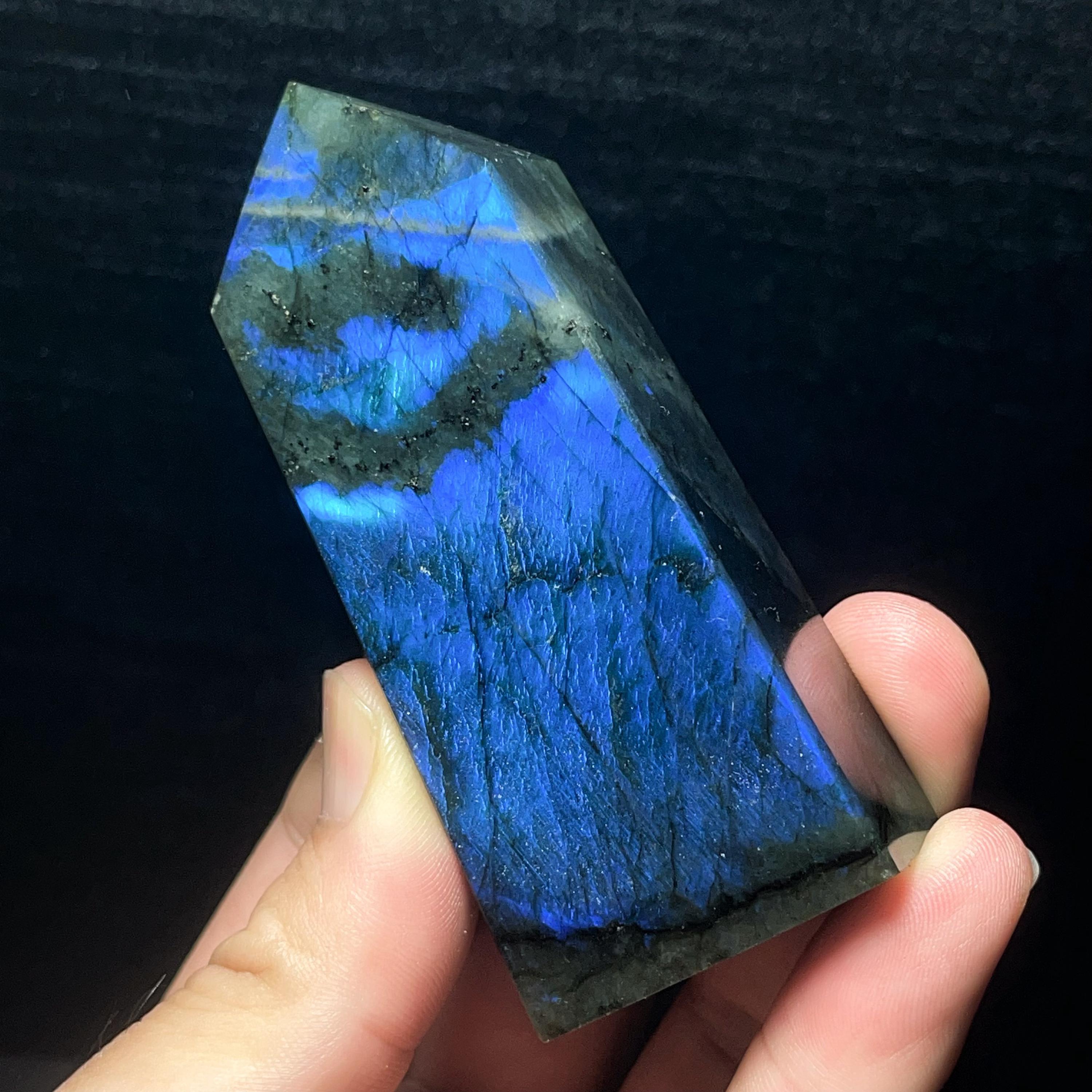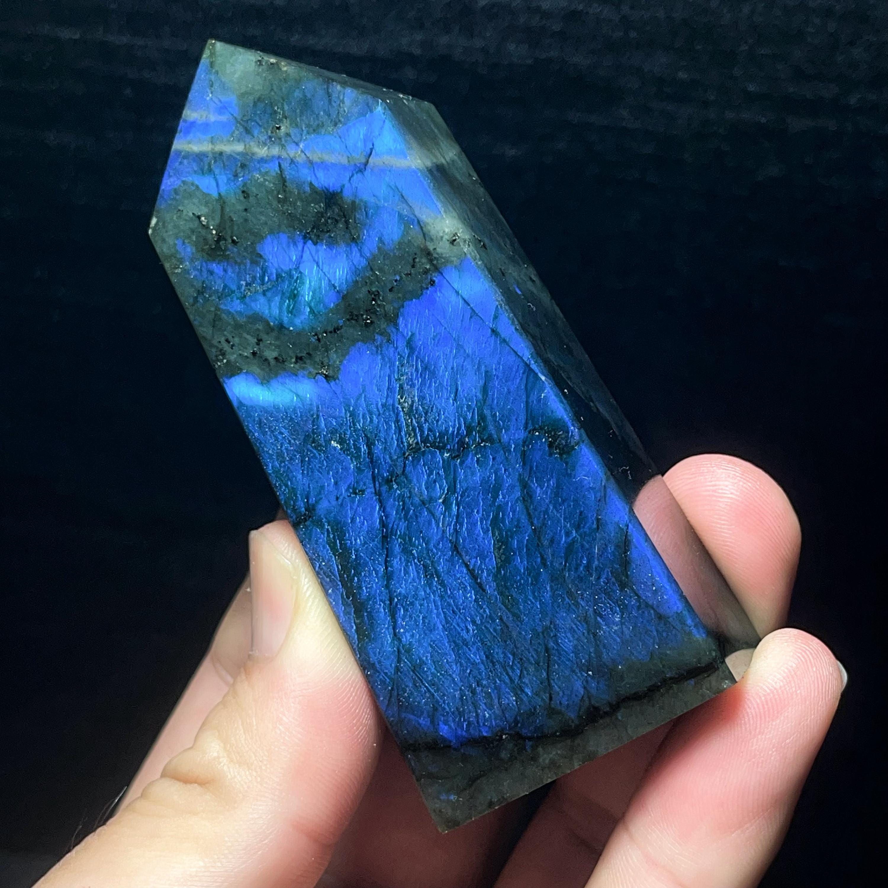 Natural Labradorite Point Tower: Carved Healing Crystal Wand L6668