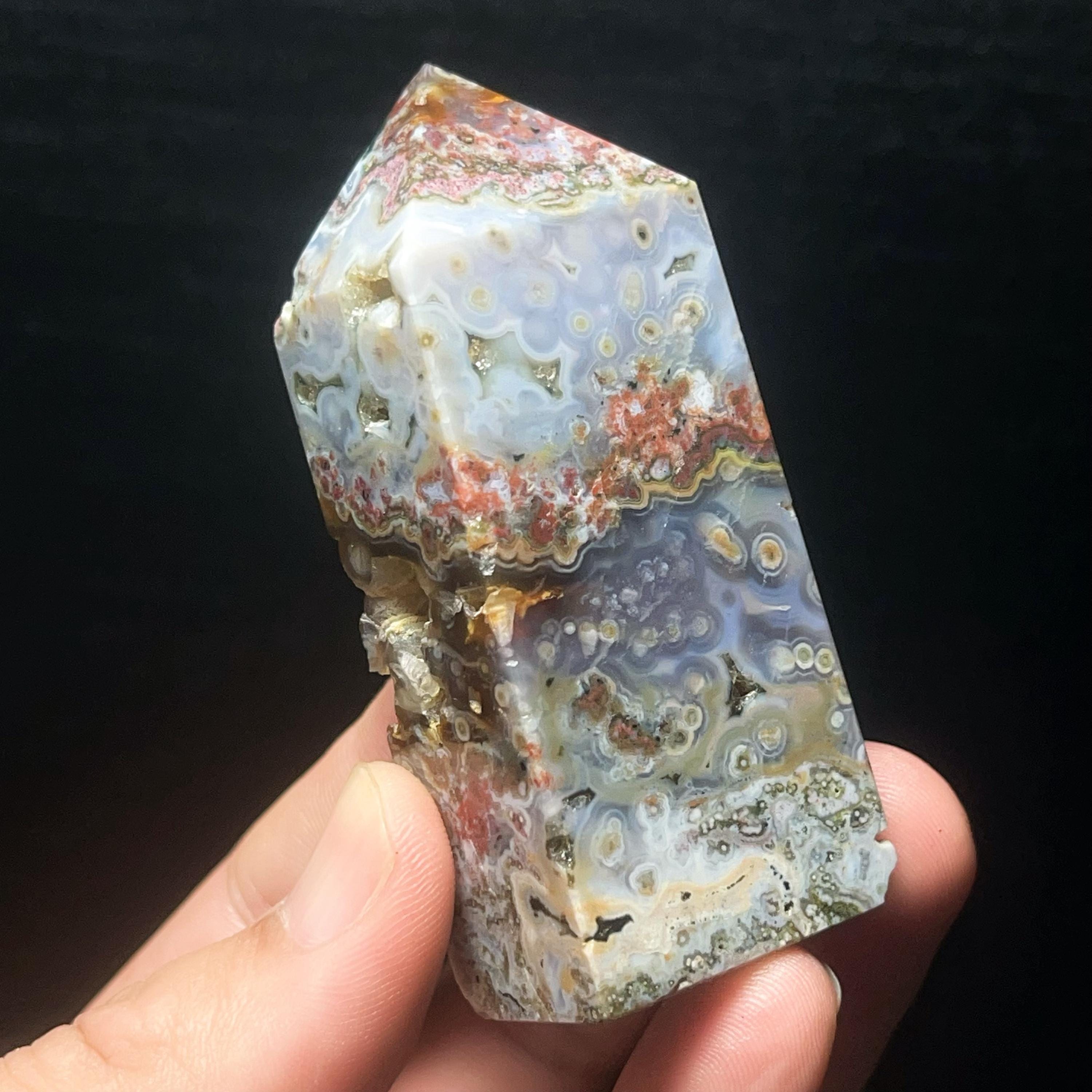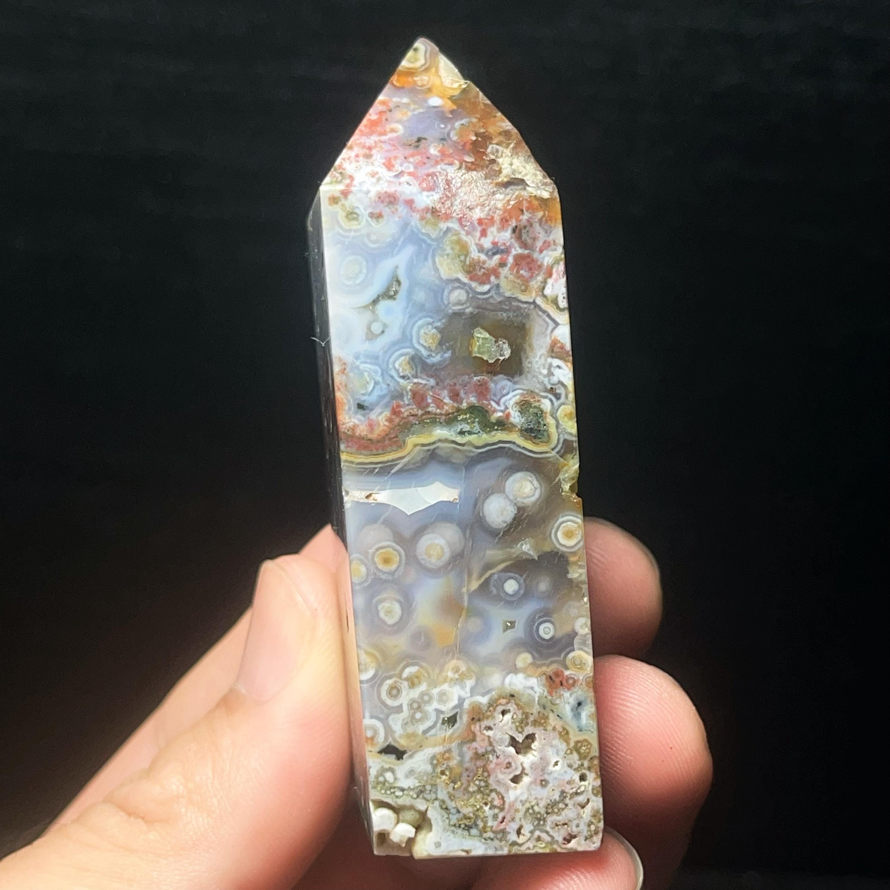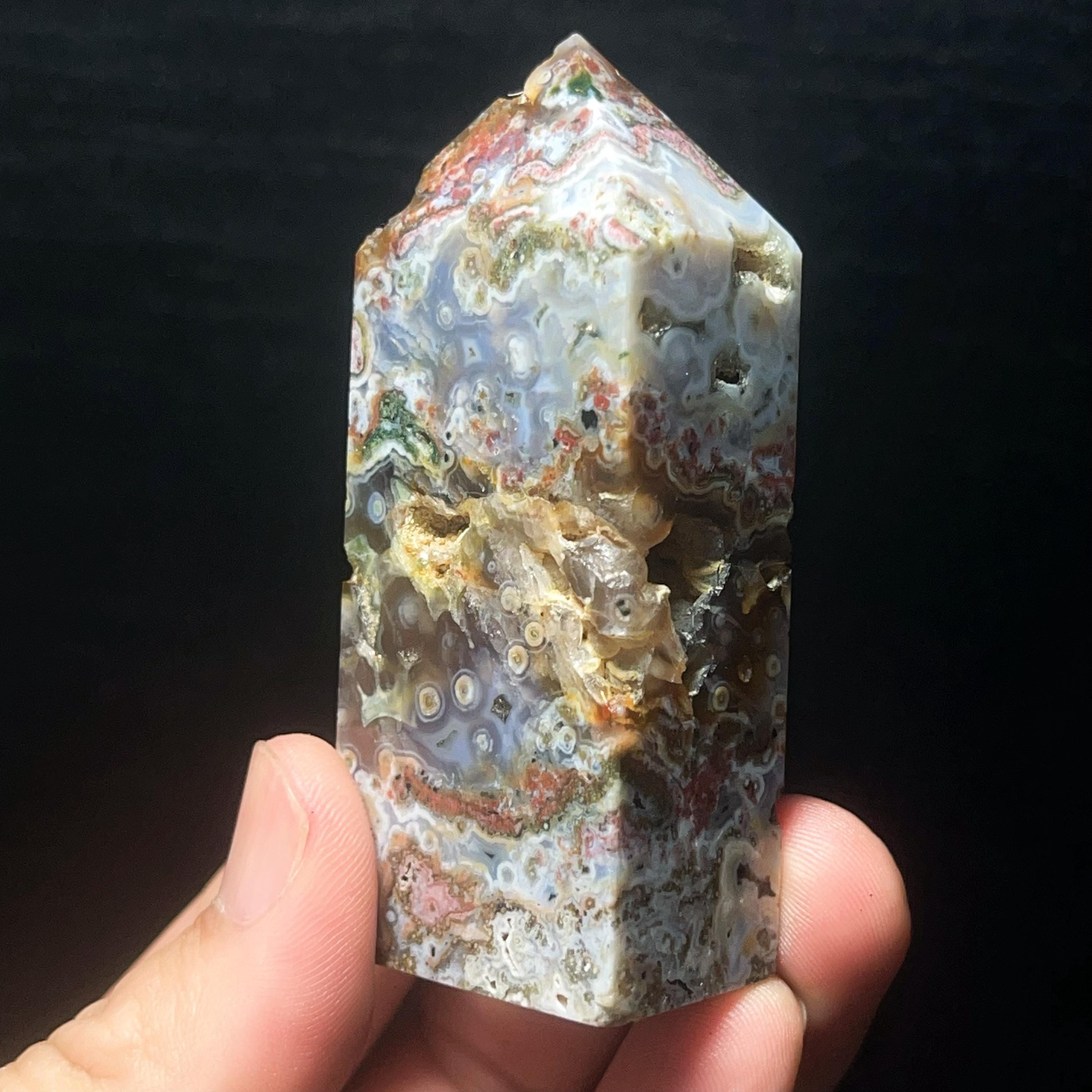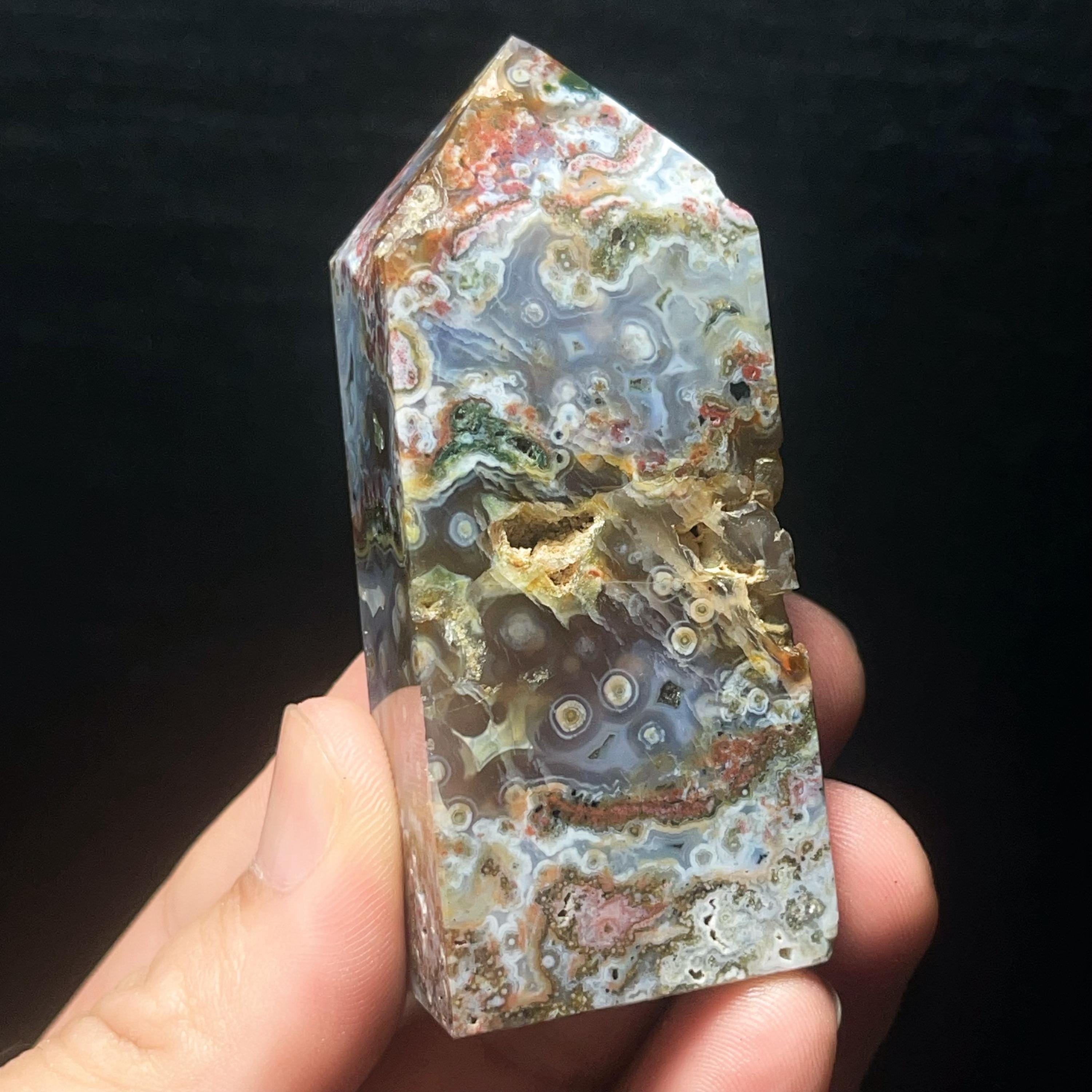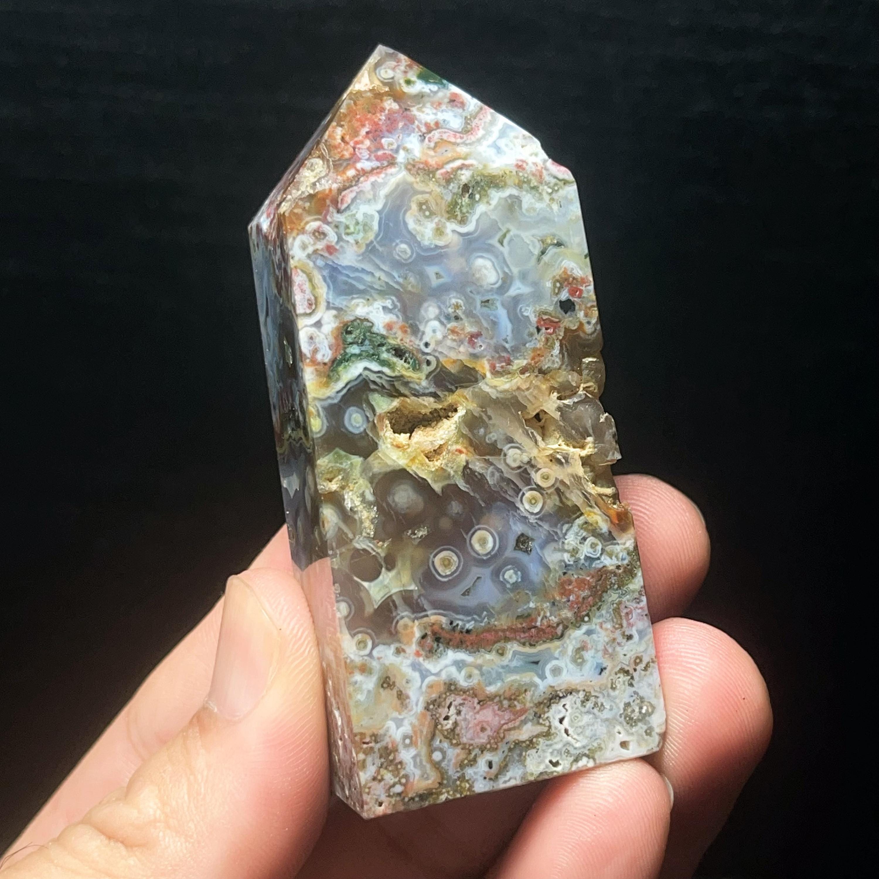 Ocean Jasper Tower, Rare, Orbicular Ocean Jasper Tower, High Quality Crystal Point, Green Ocean Jasper with Orbs Special Gift/ L6595