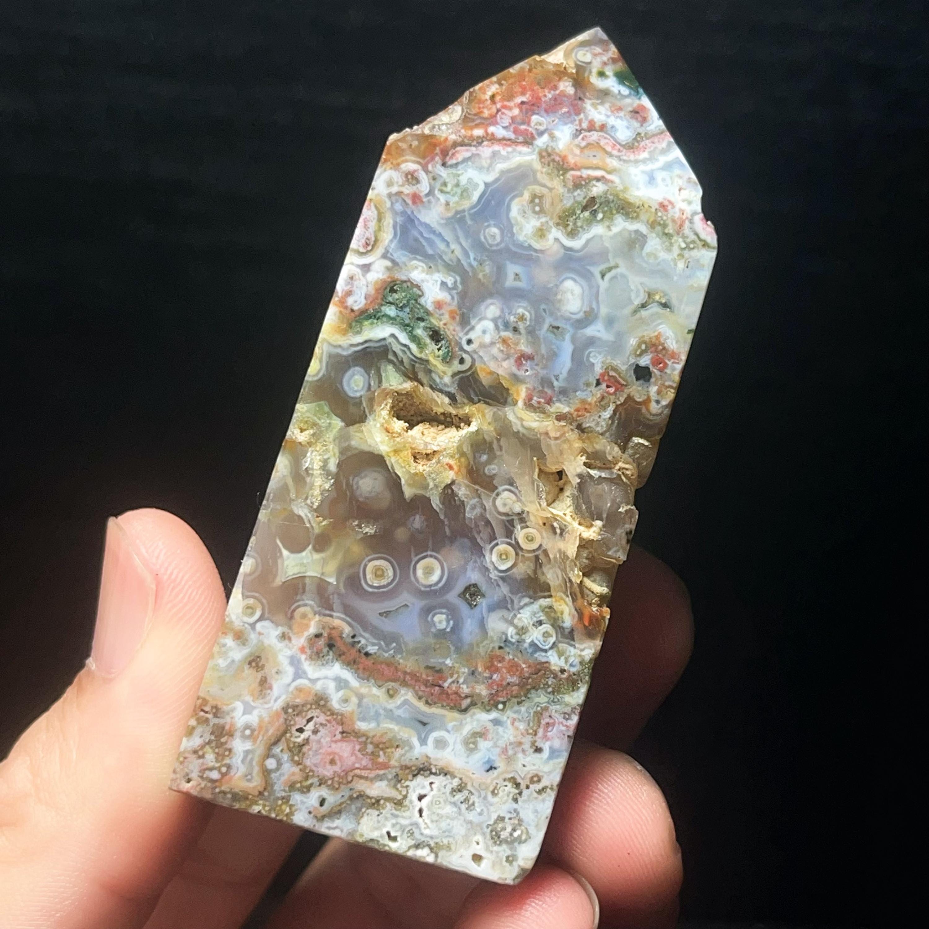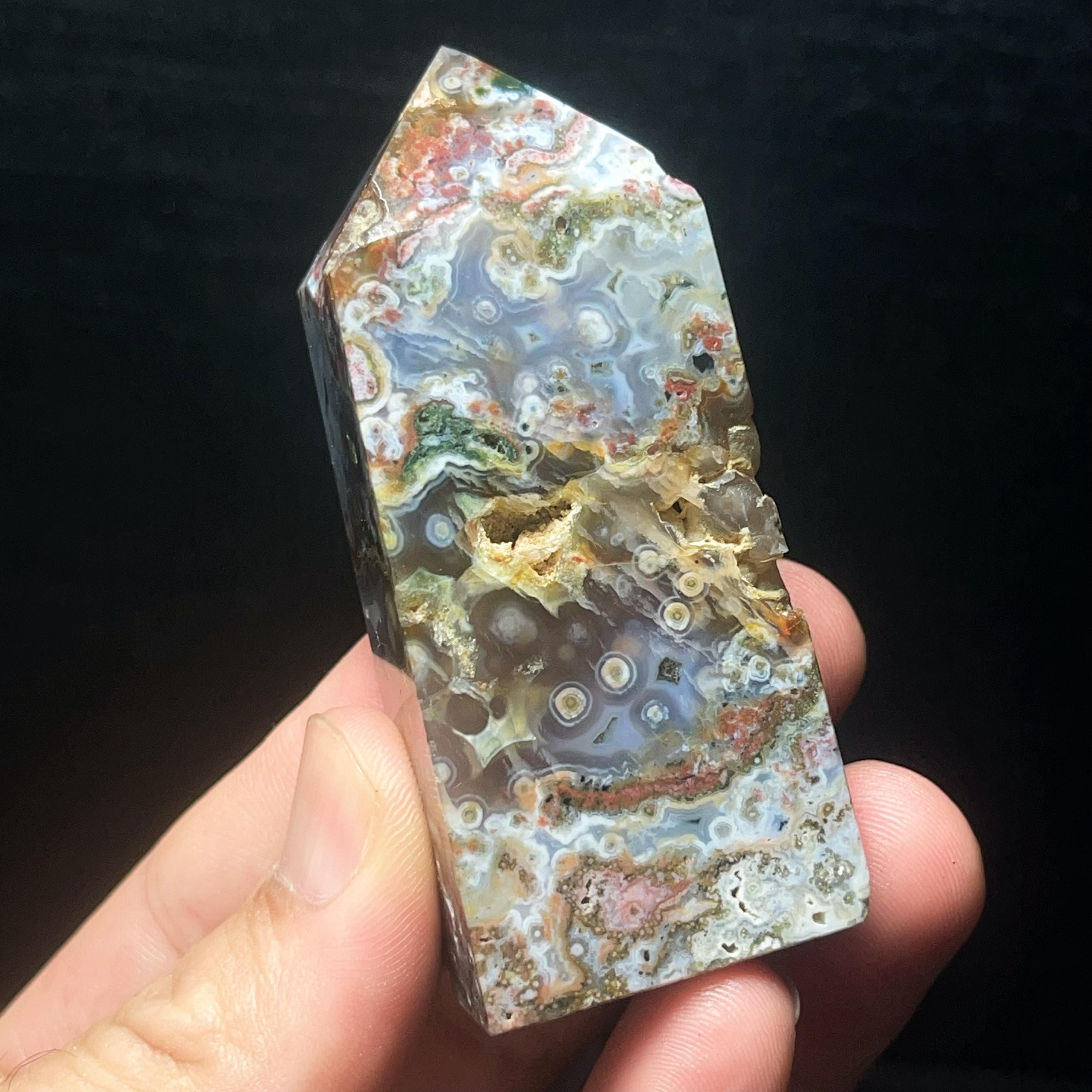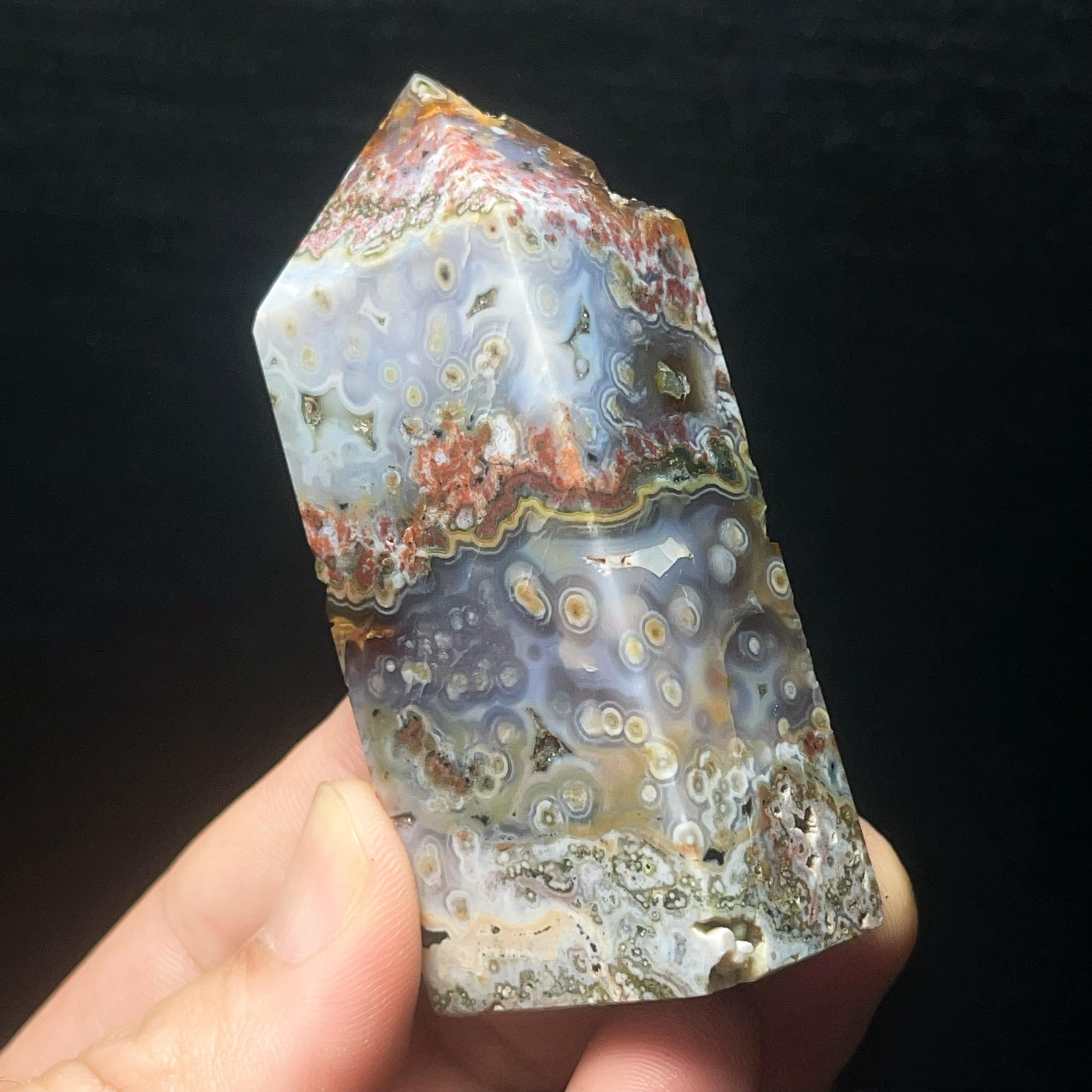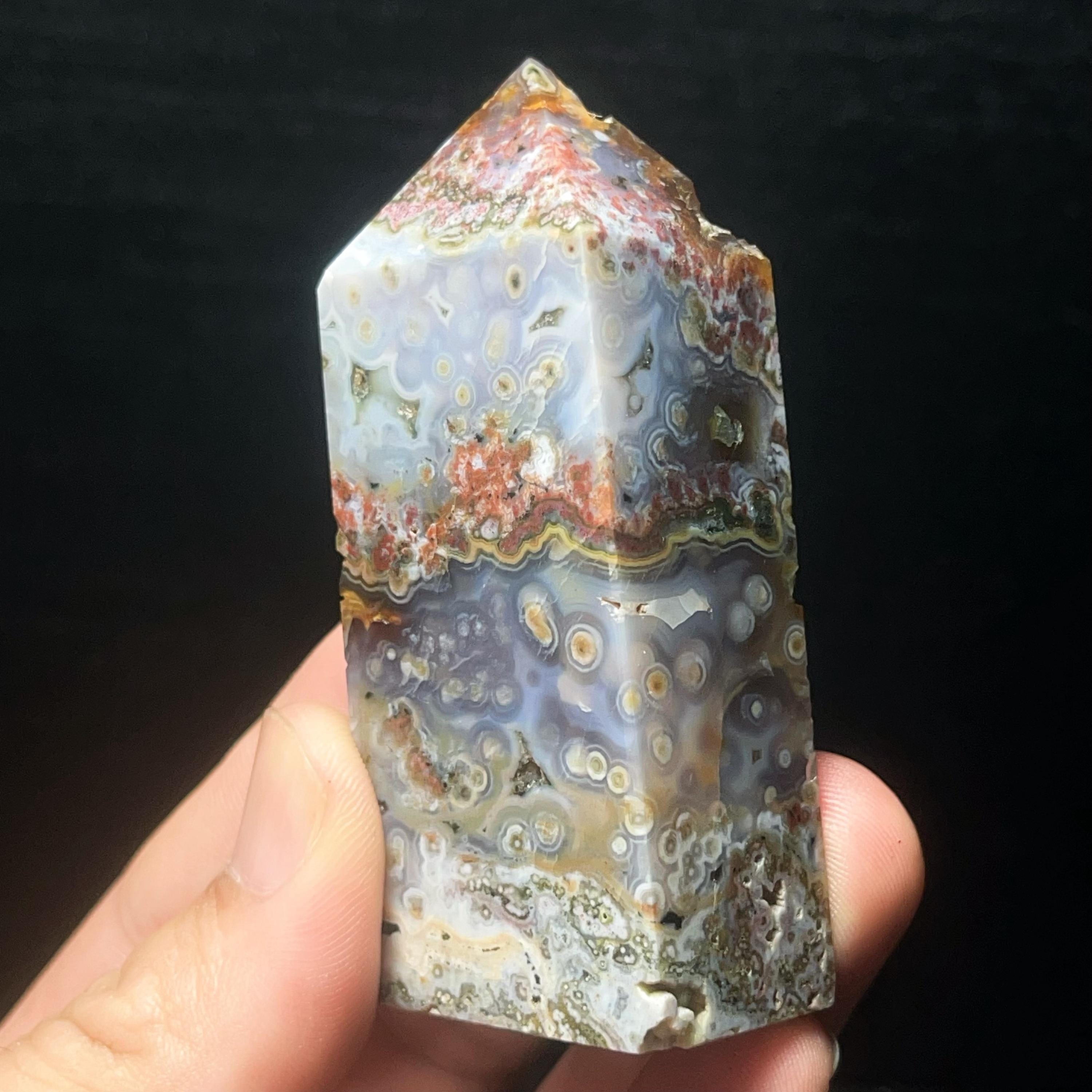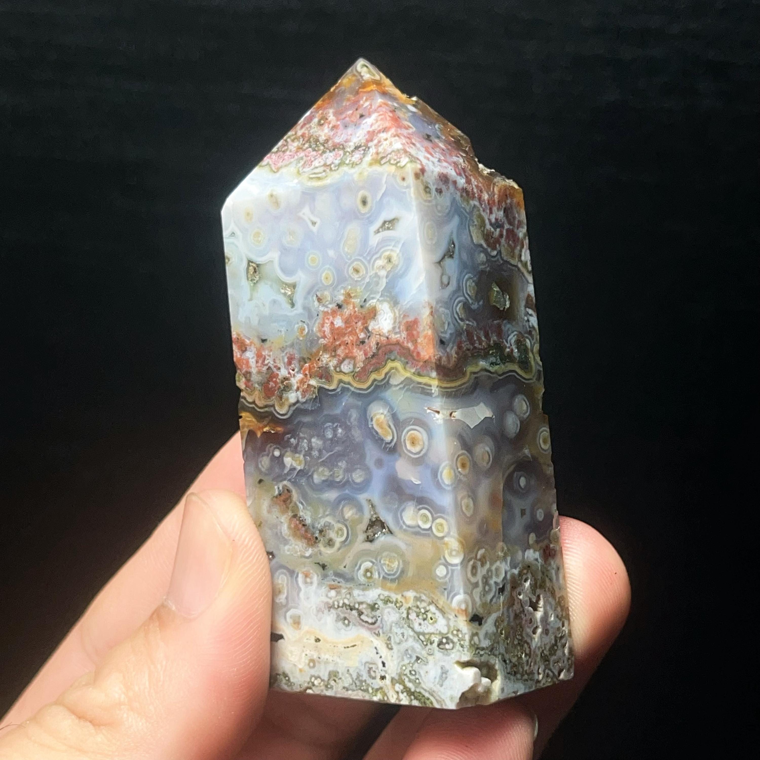 Ocean Jasper Tower, Rare, Orbicular Ocean Jasper Tower, High Quality Crystal Point, Green Ocean Jasper with Orbs Special Gift/ L6595