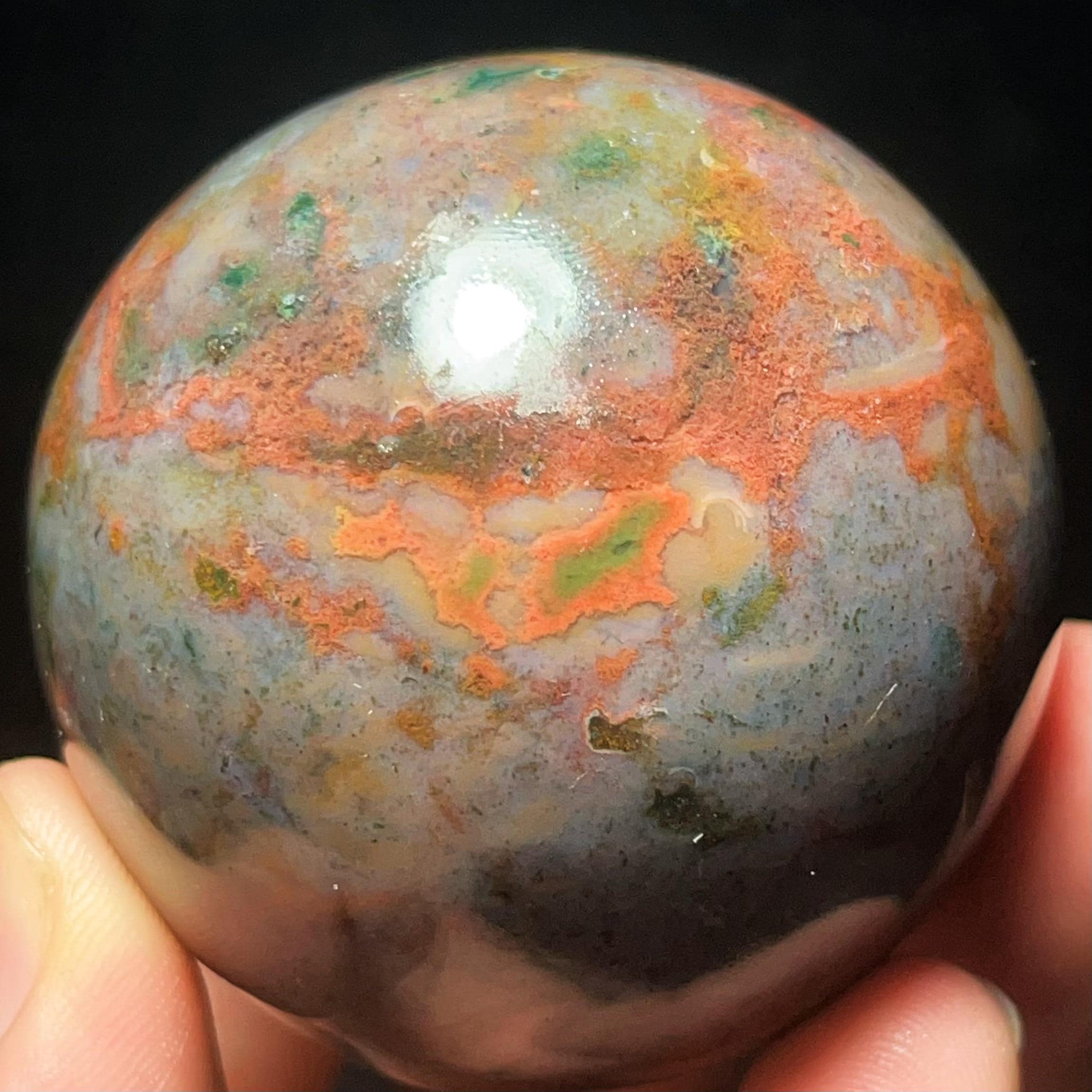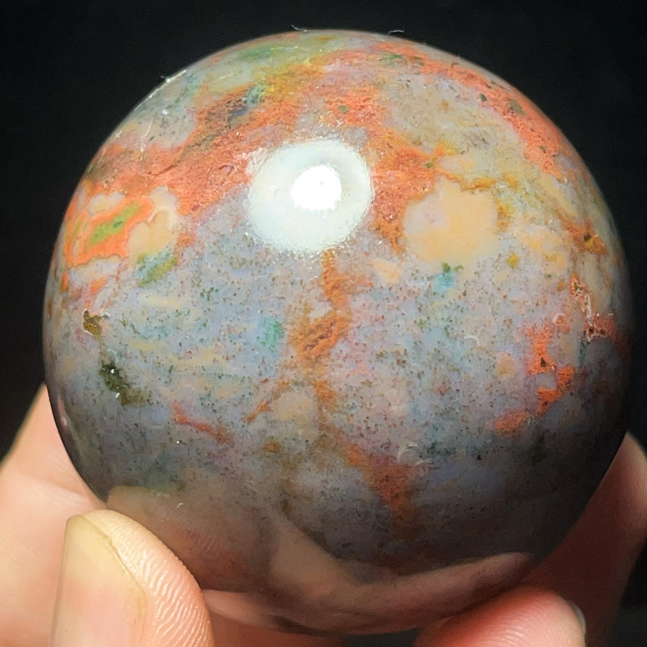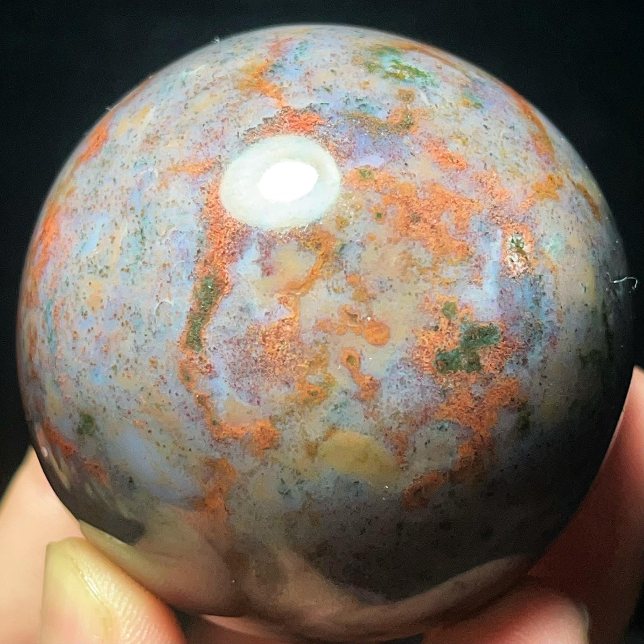 Natural Orbicular Ocean Jasper Sphere: Chakra Reiki Meditation Stone L6652