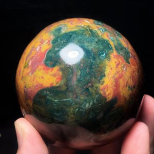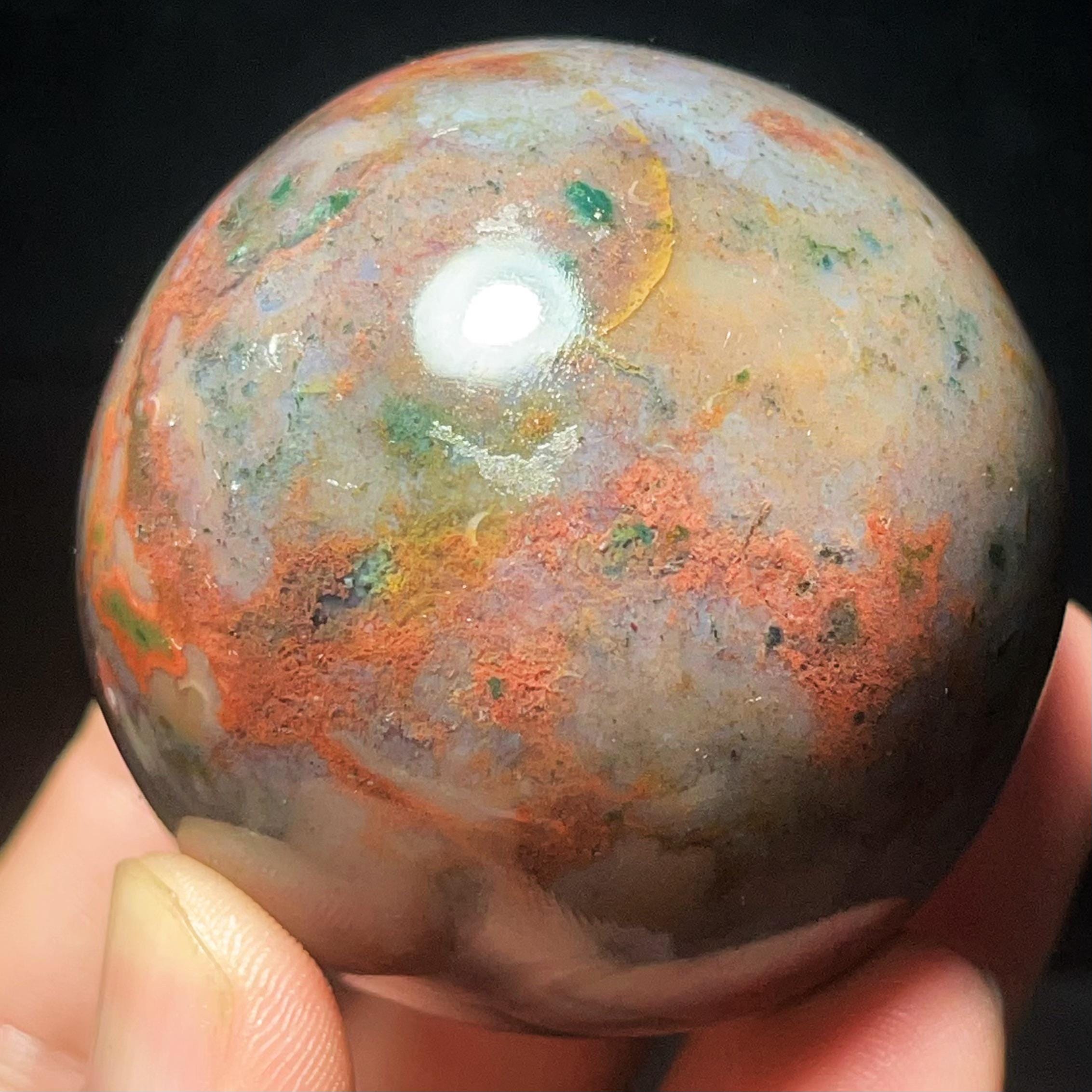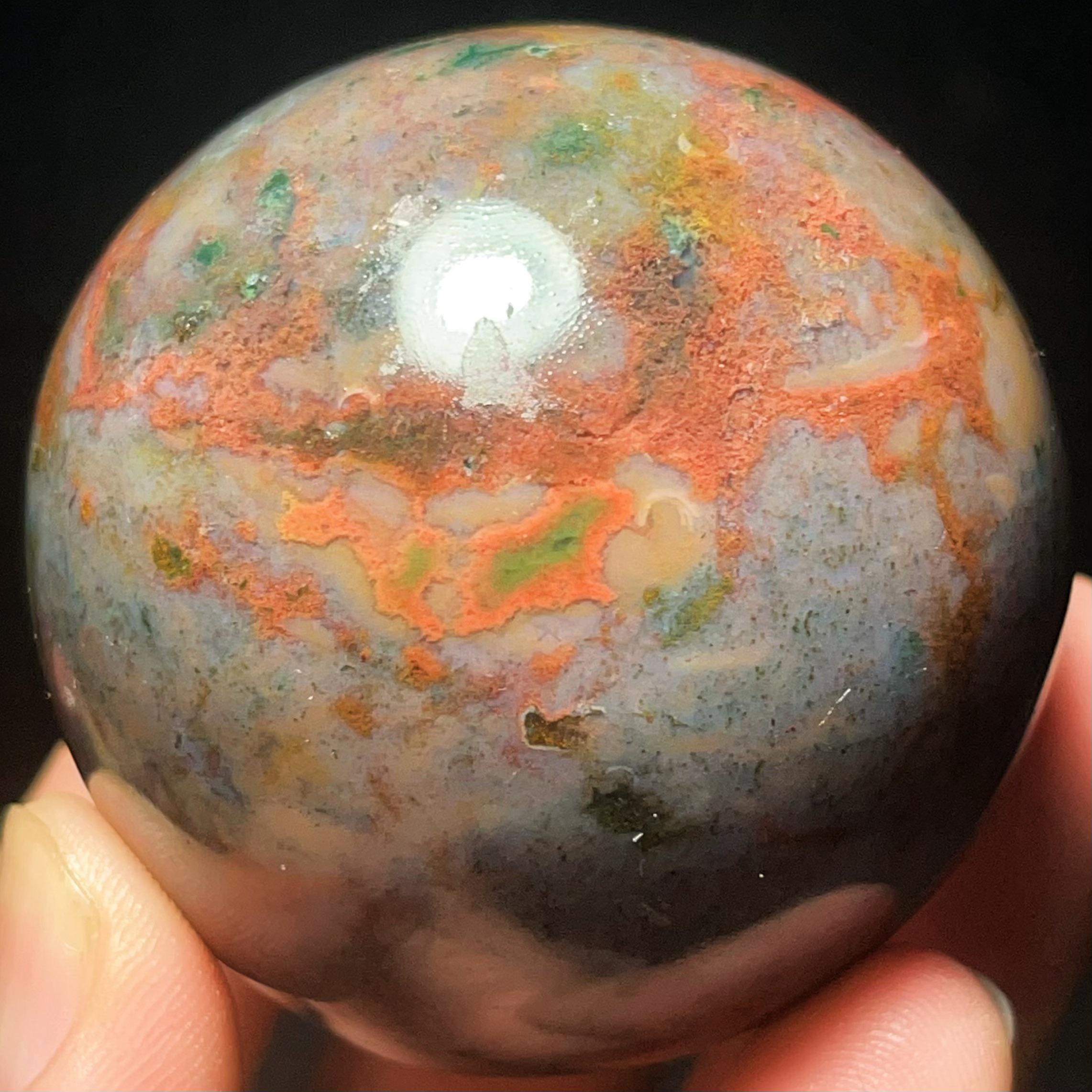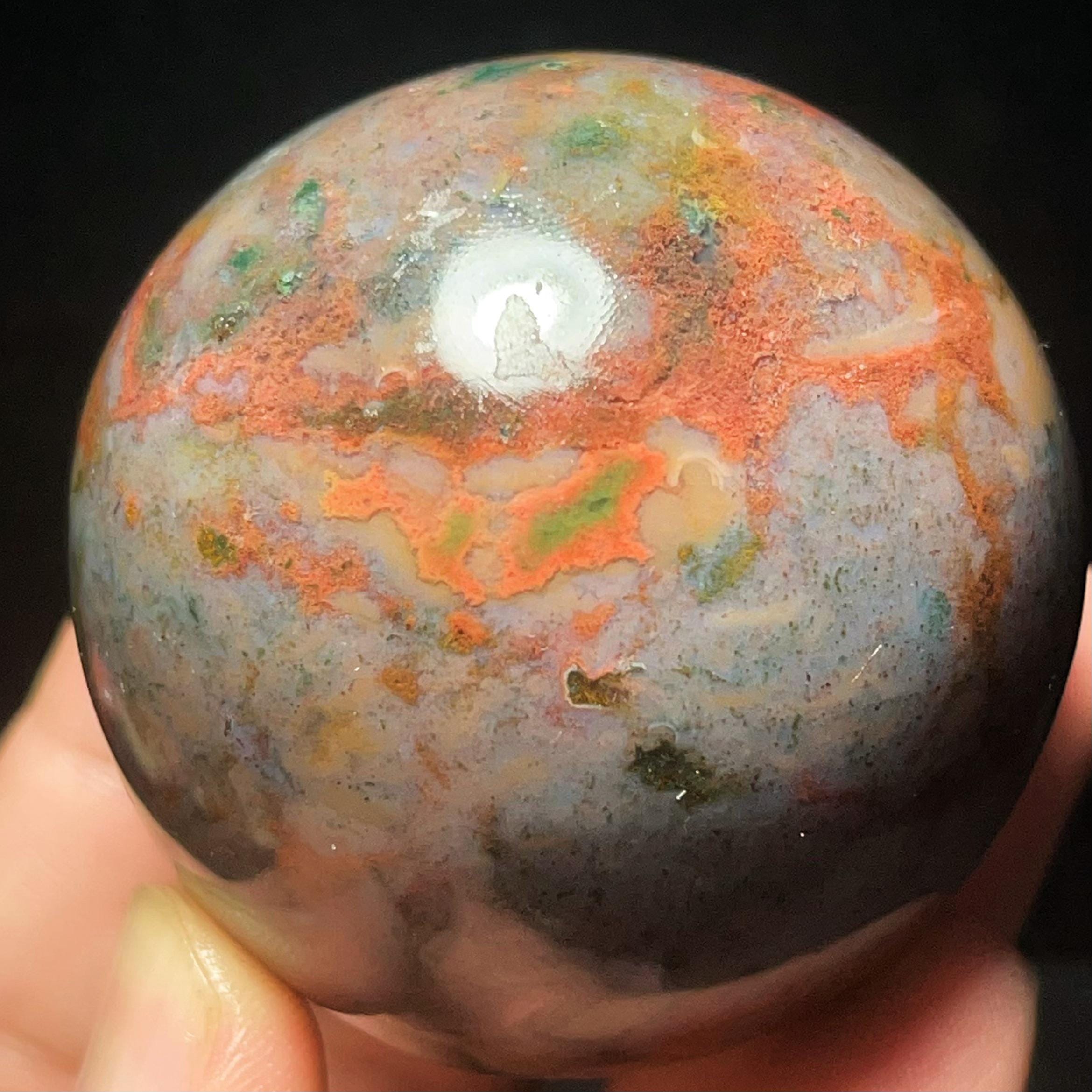 Natural Orbicular Ocean Jasper Sphere: Chakra Reiki Meditation Stone L6652