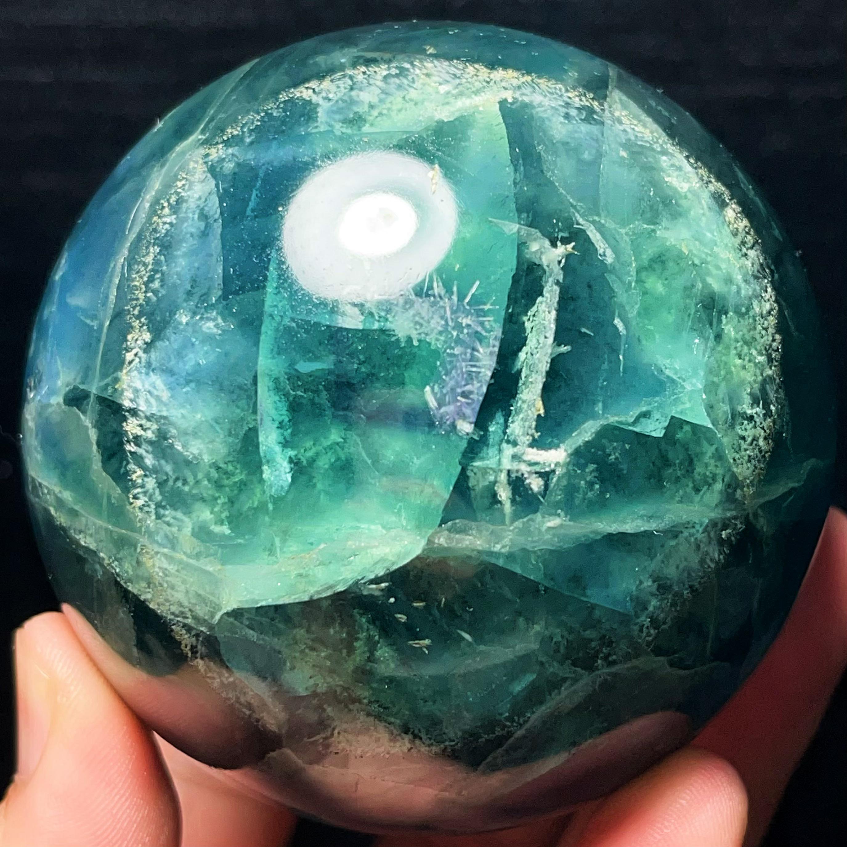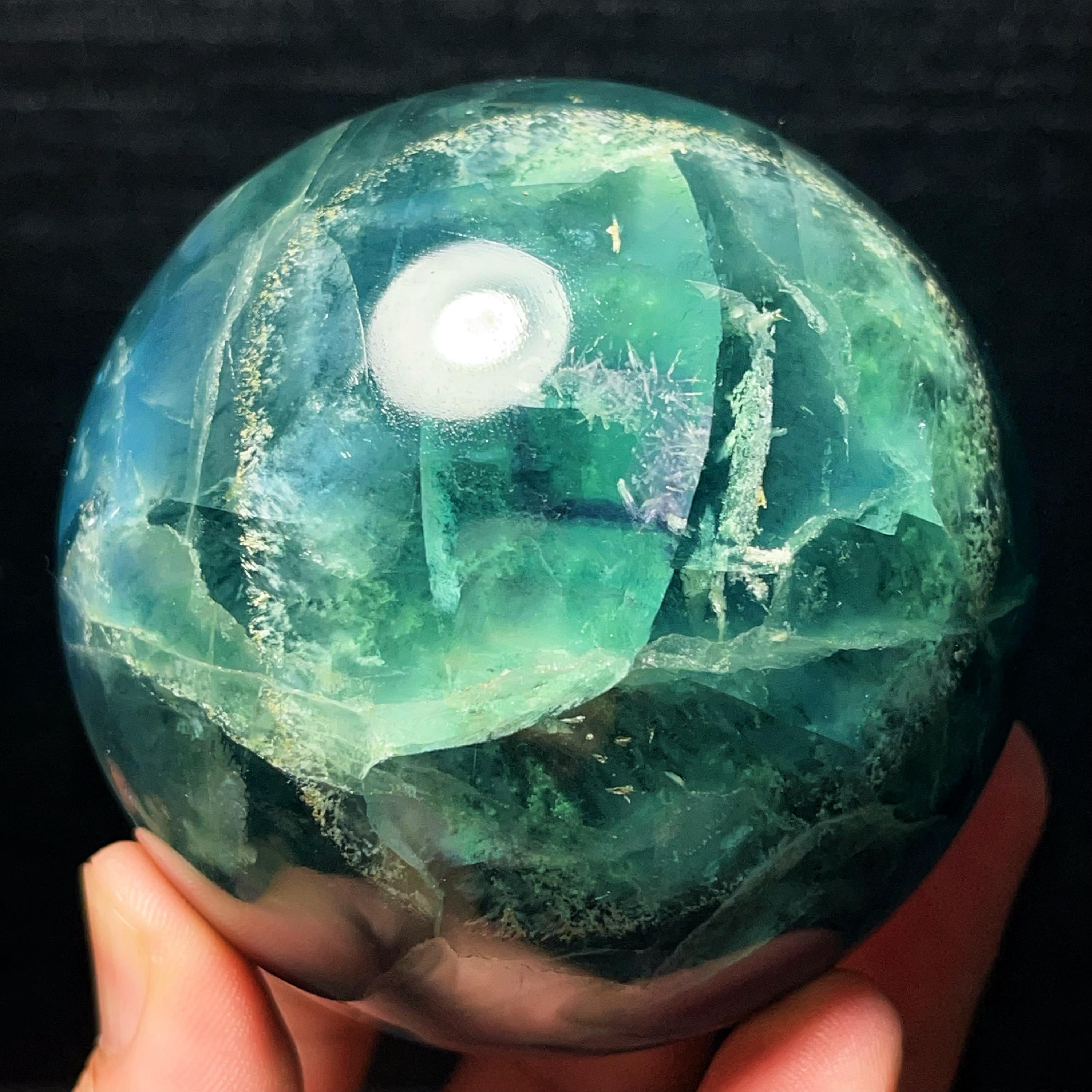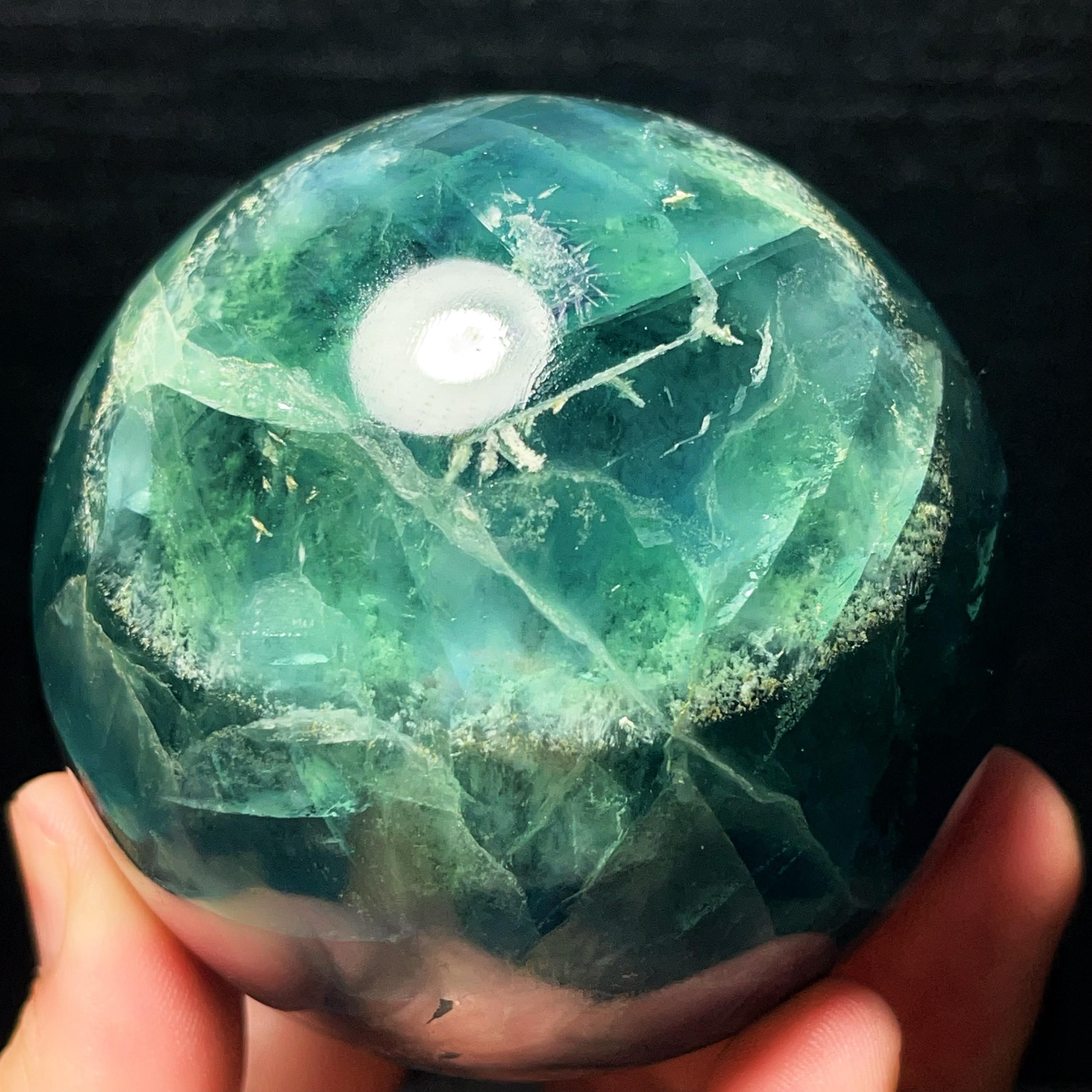 Large Green Fluorite Sphere: Reiki Healing Crystal Ball (80MM, 856g L6710