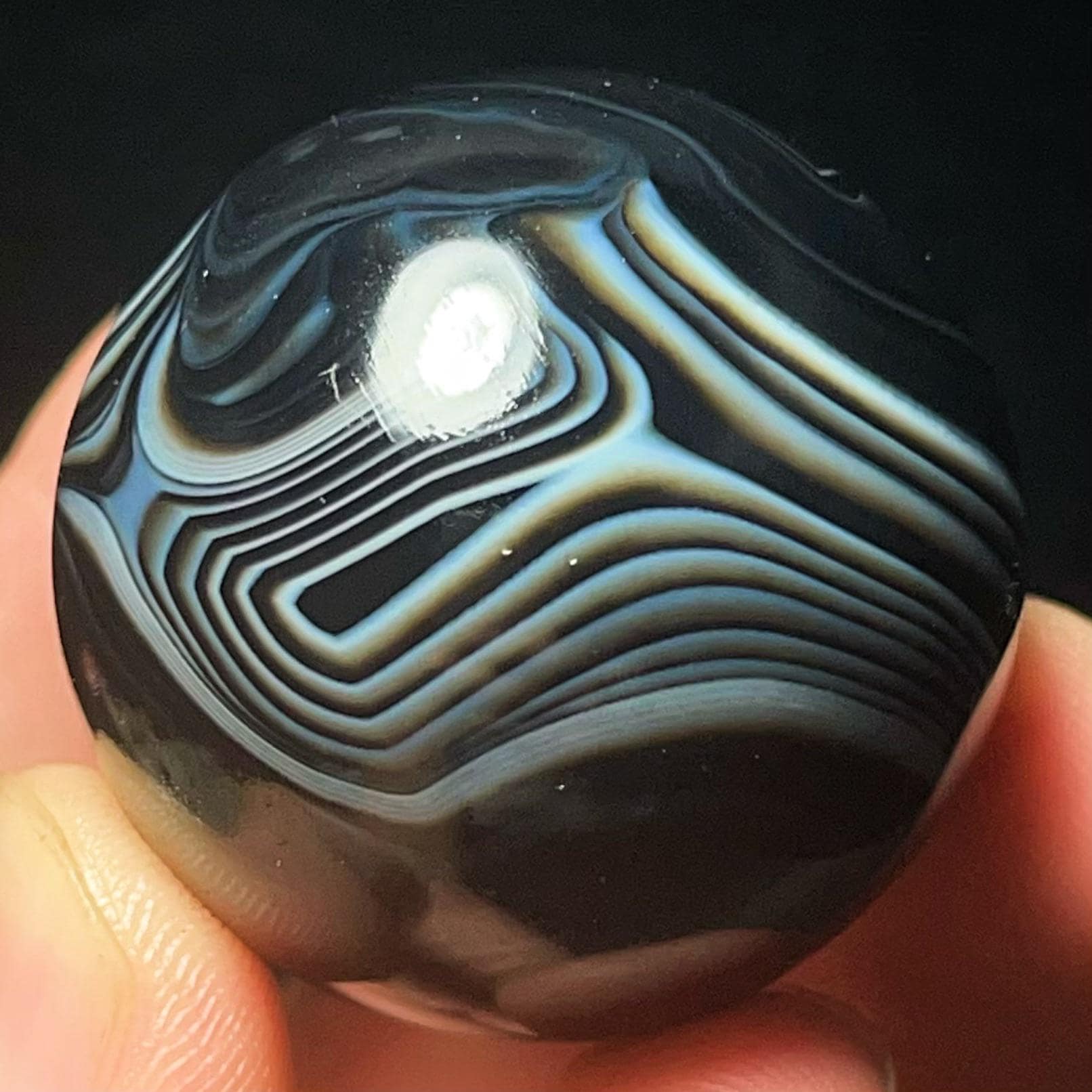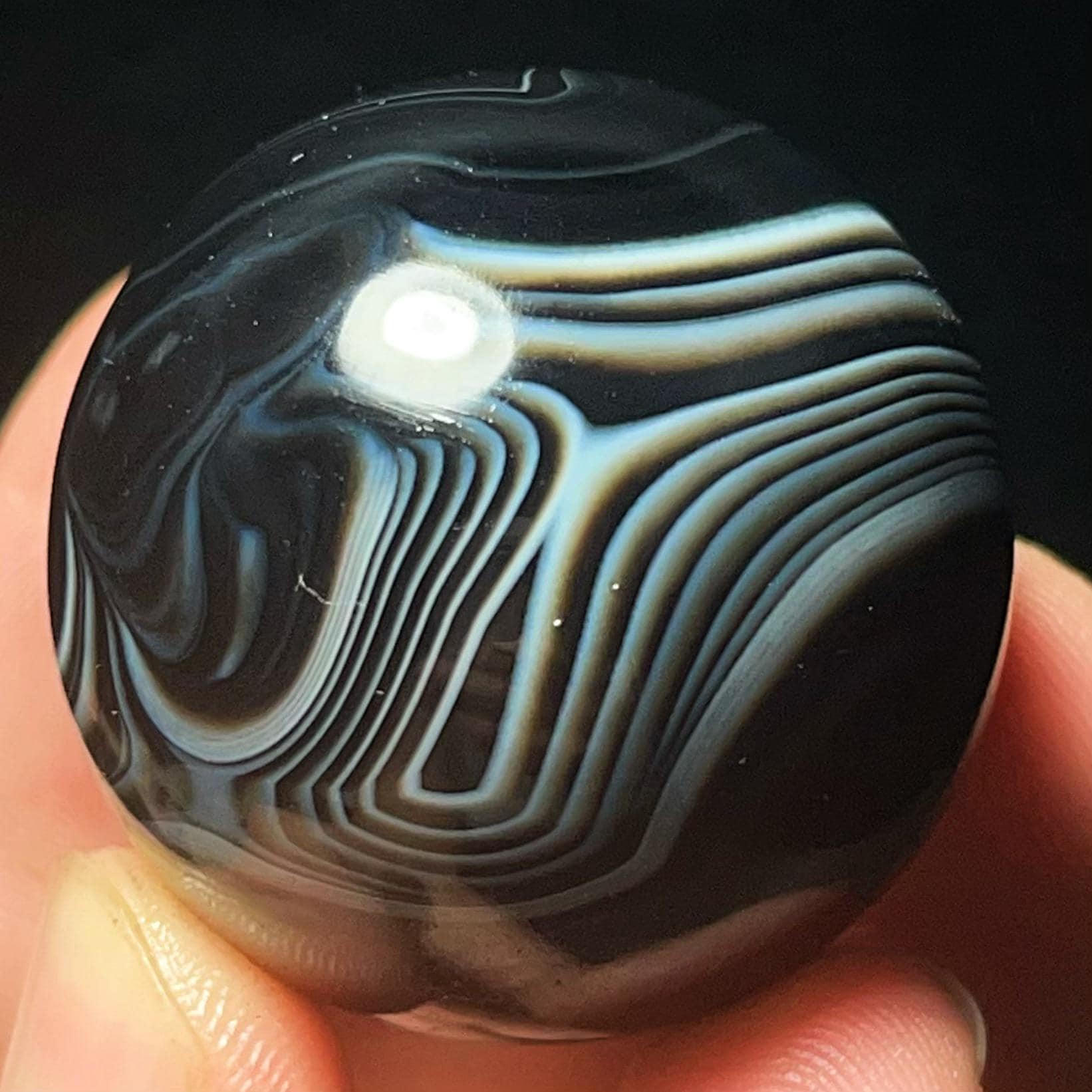 Polished Banded Agate Sphere: Natural Madagascar Crystal, 36mm