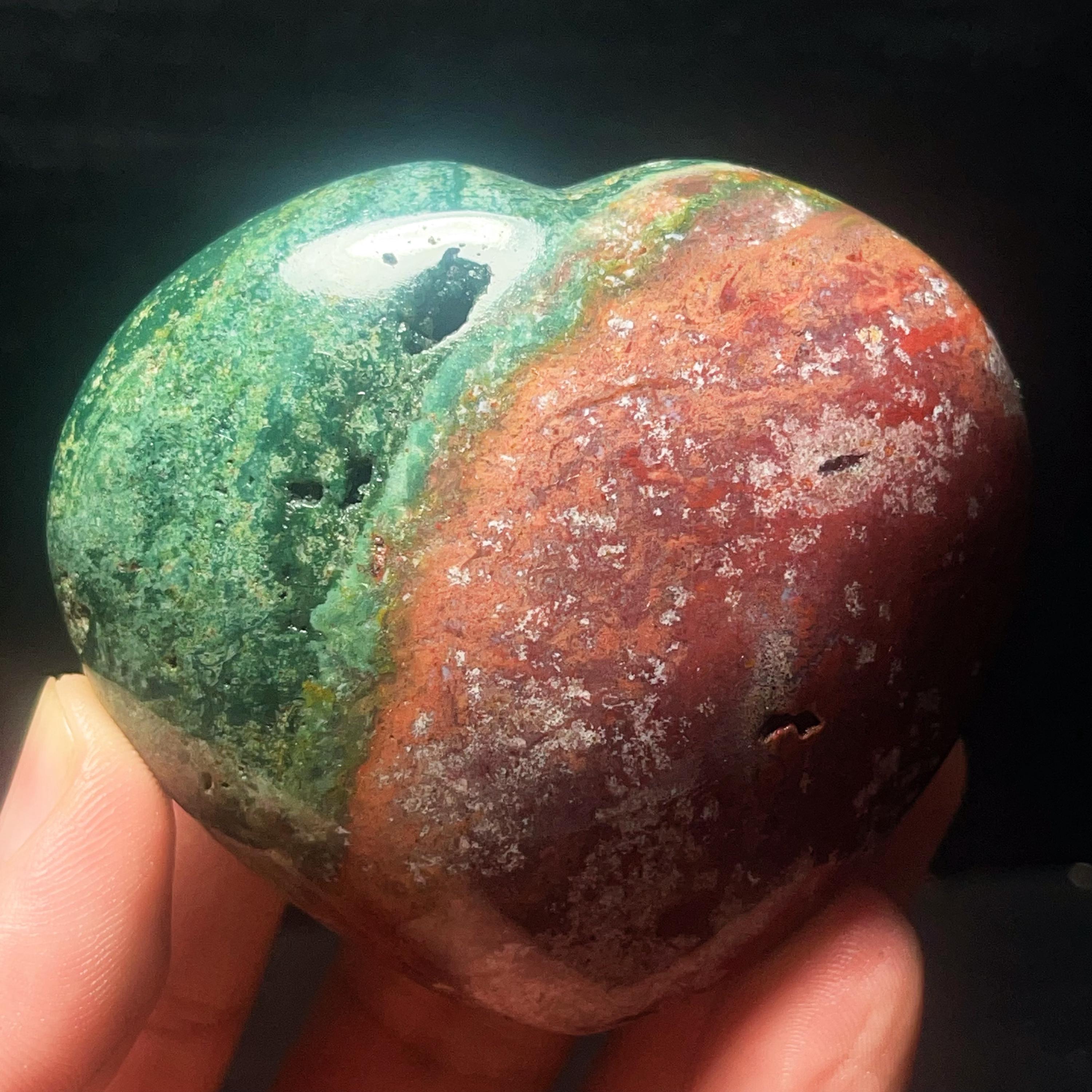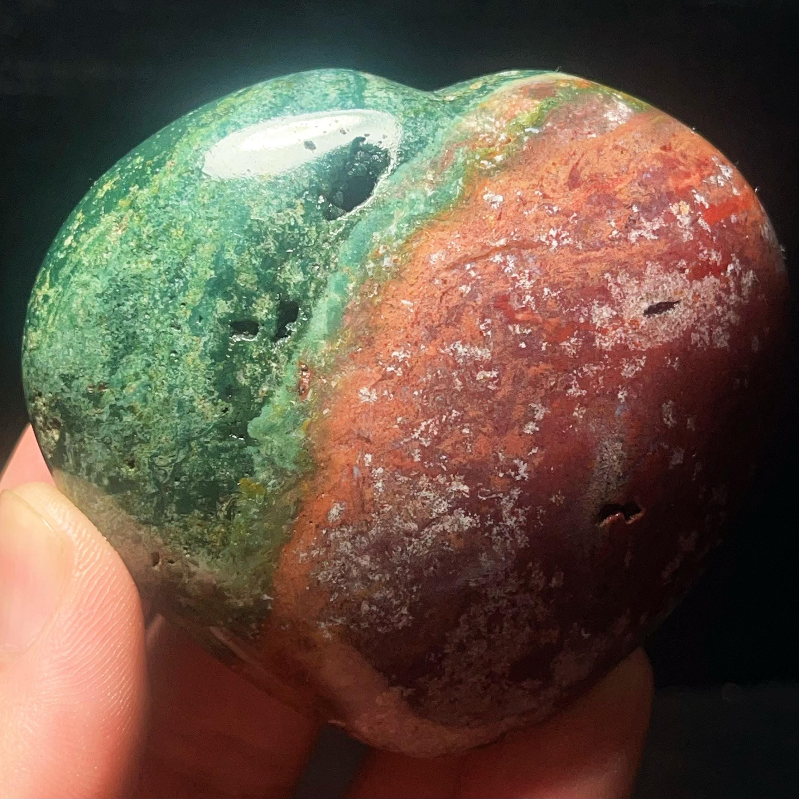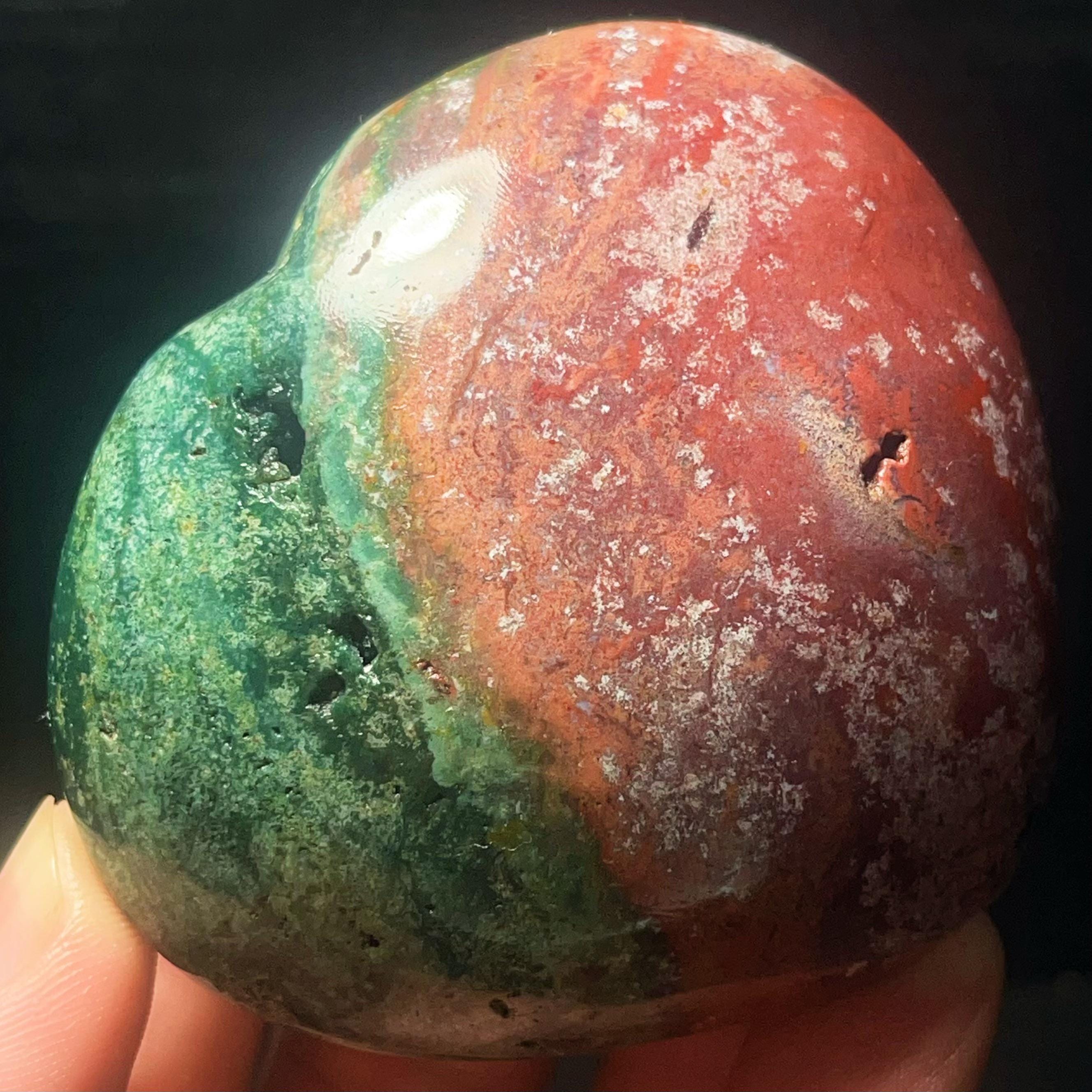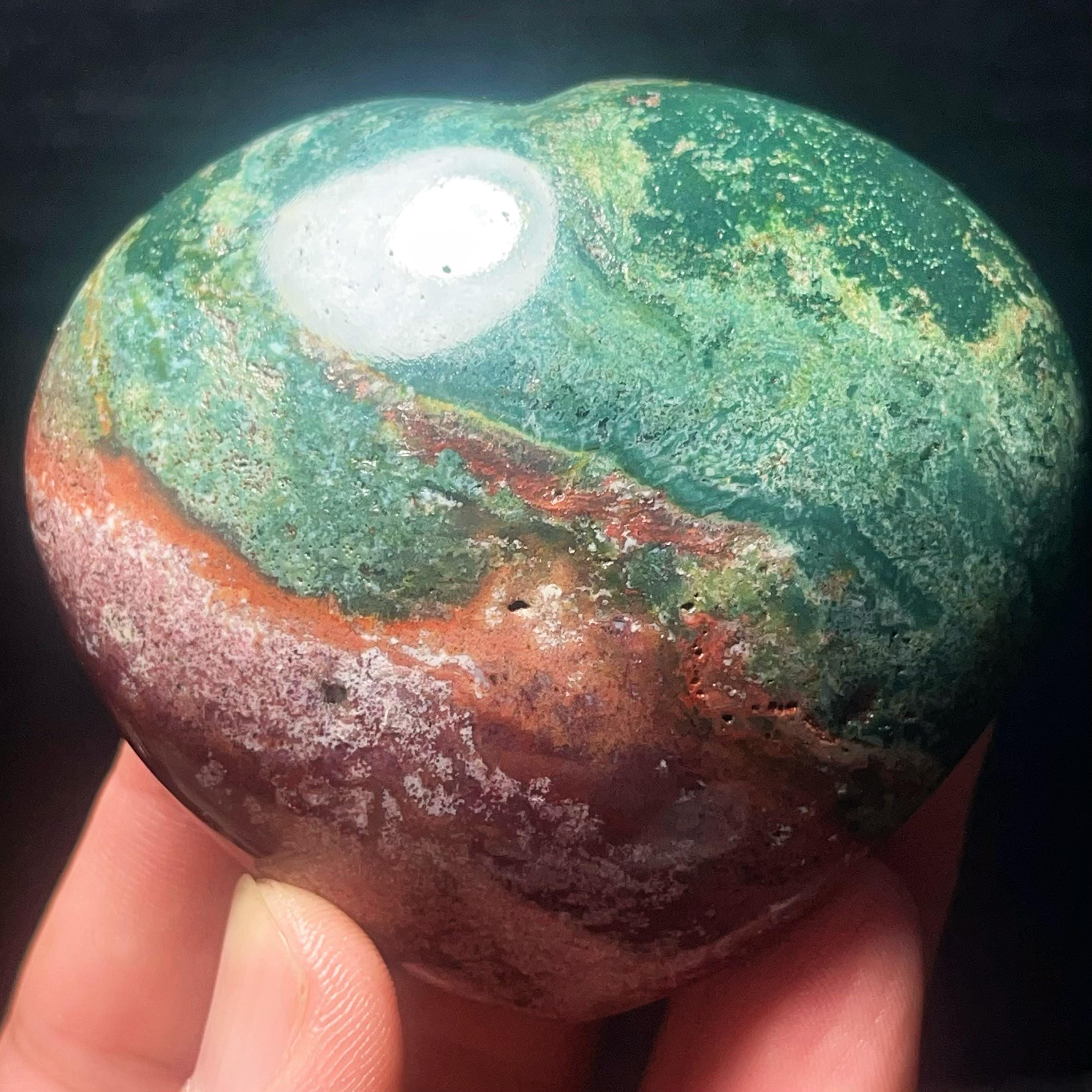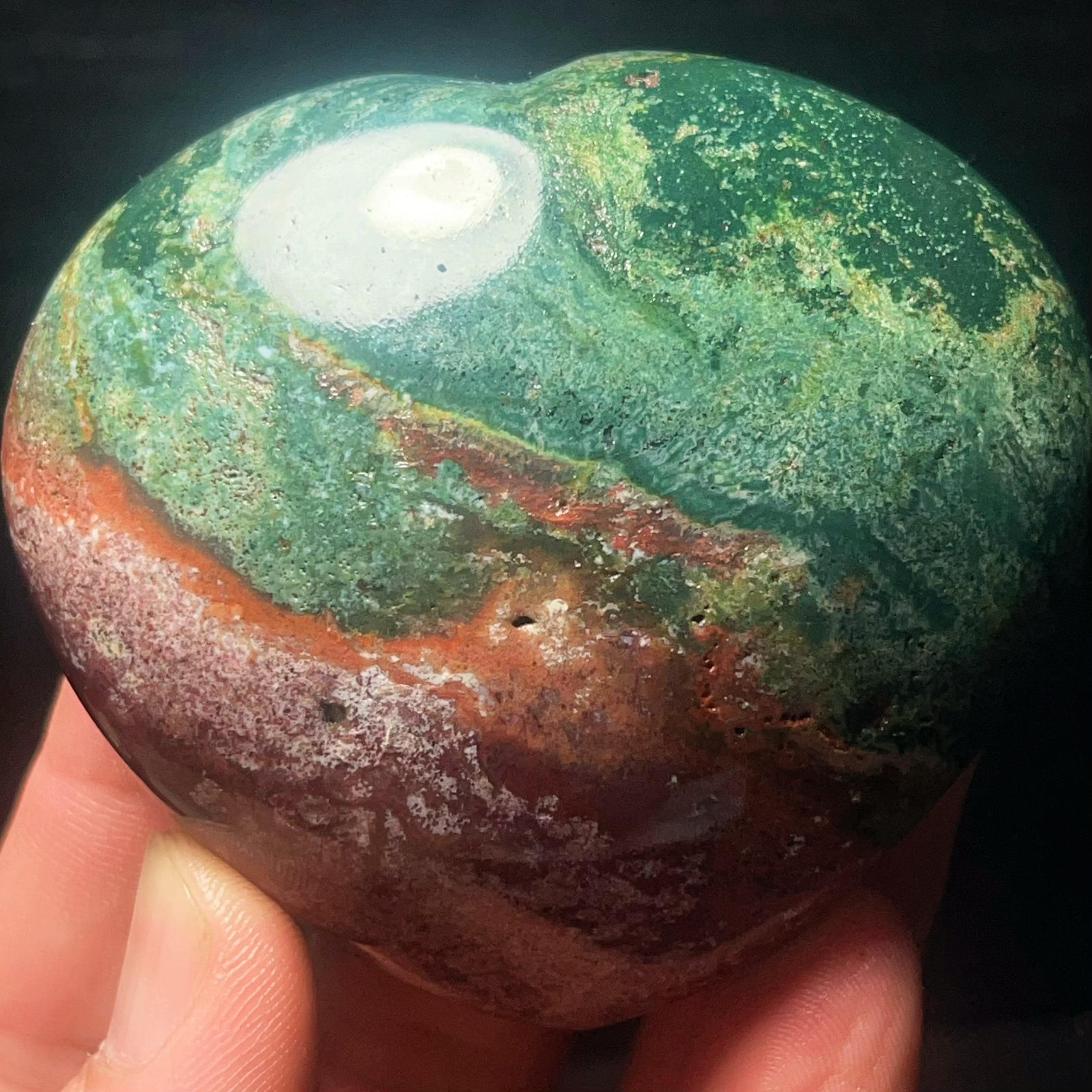Natural Ocean Jasper Heart: Carved Palm Stone, Reiki Chakra Healing L6724