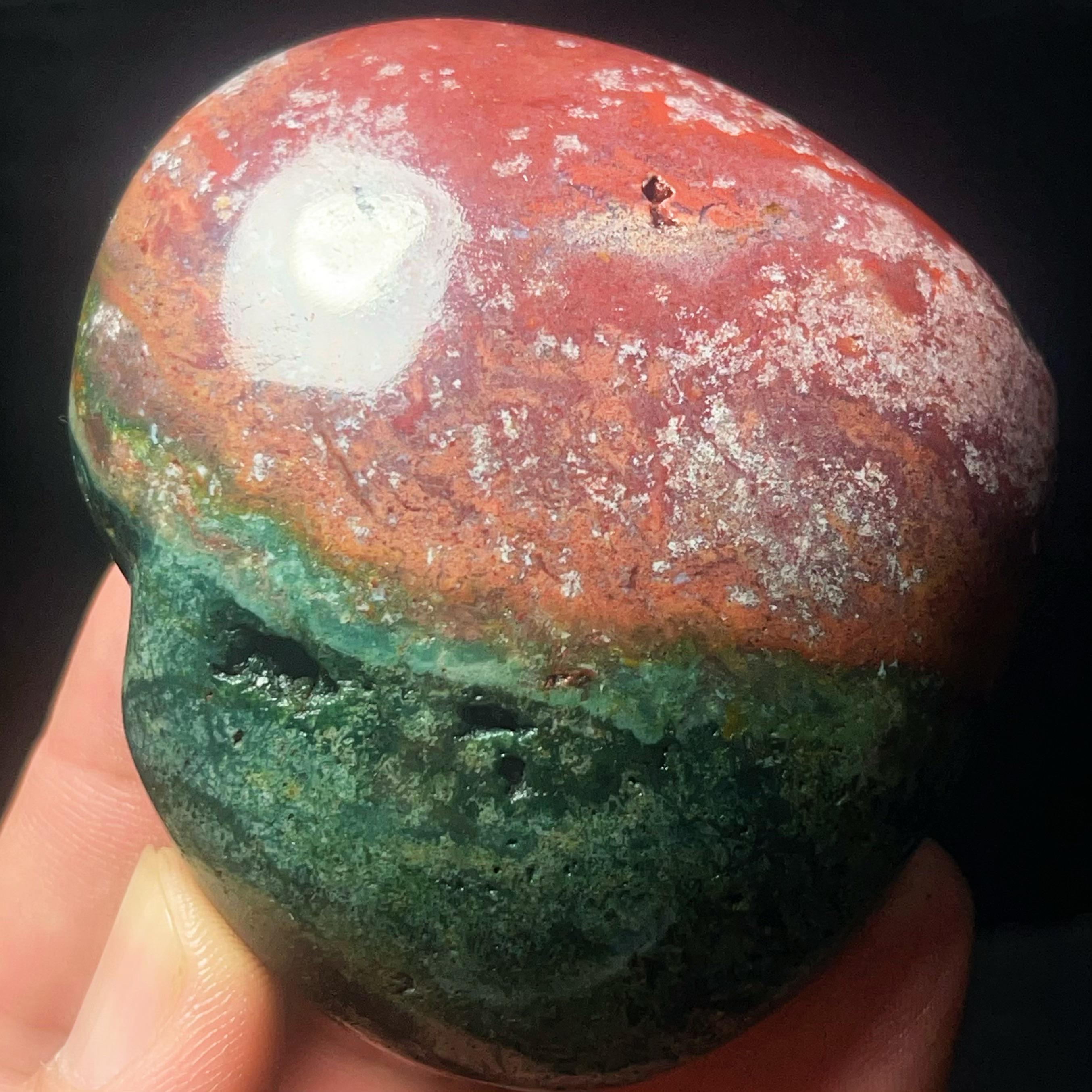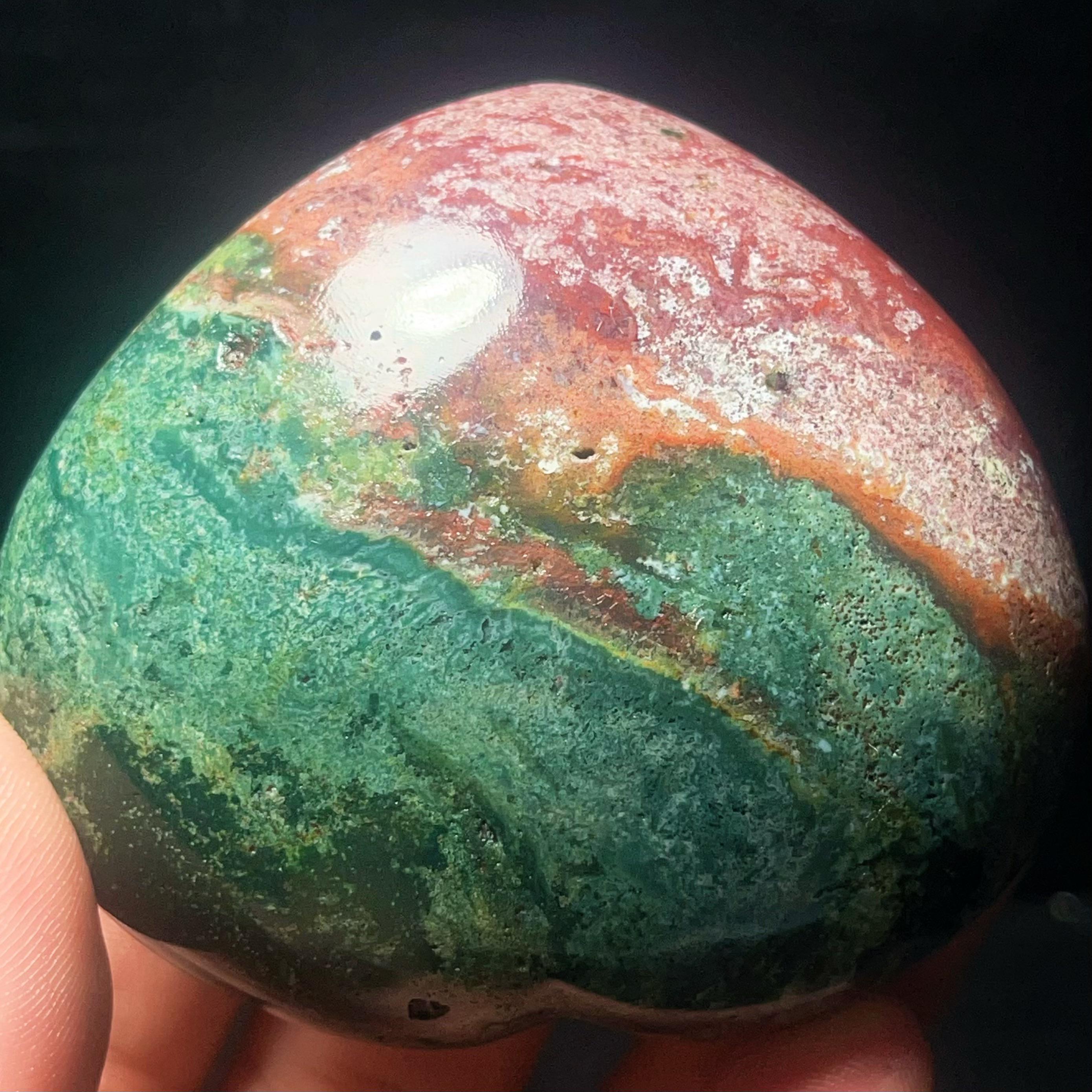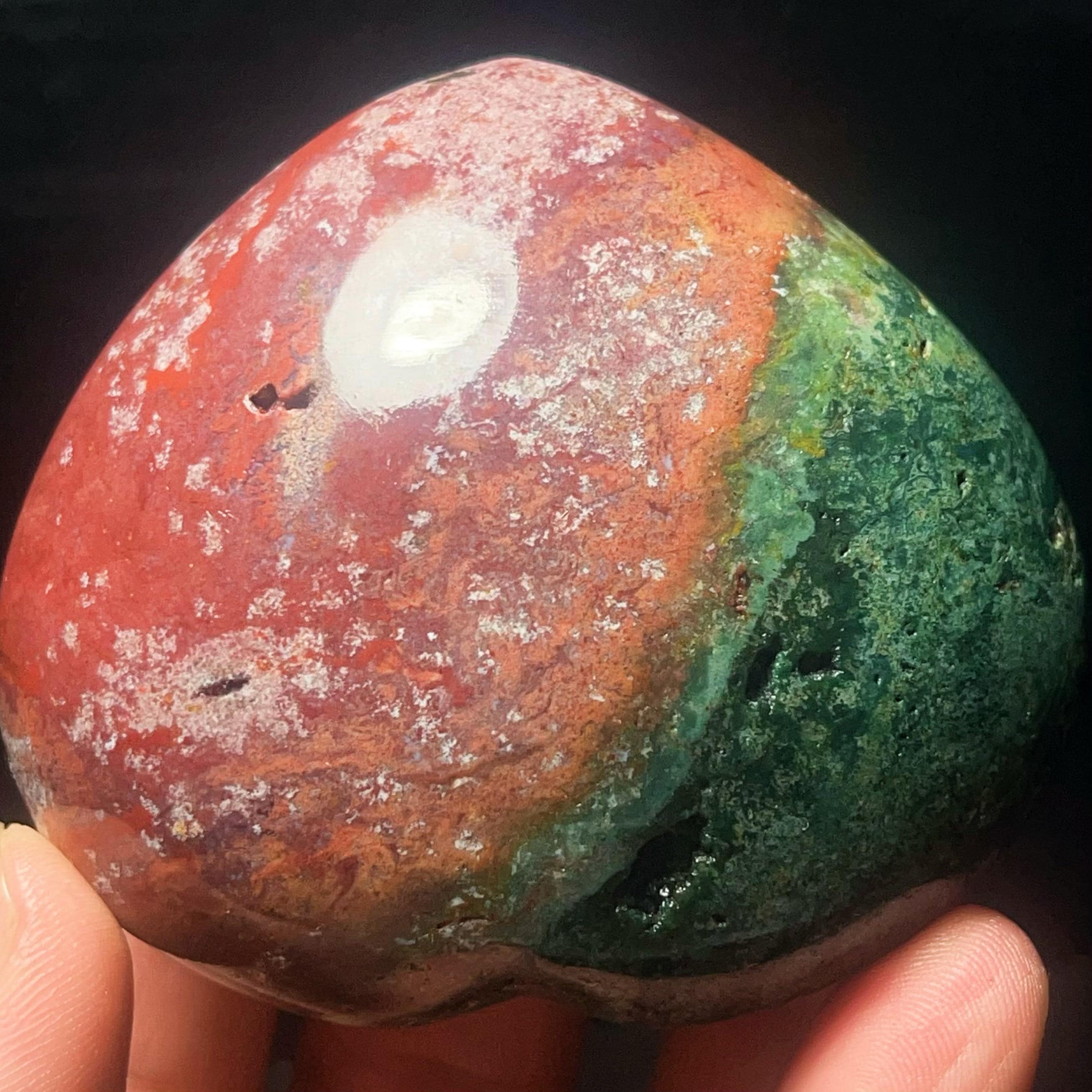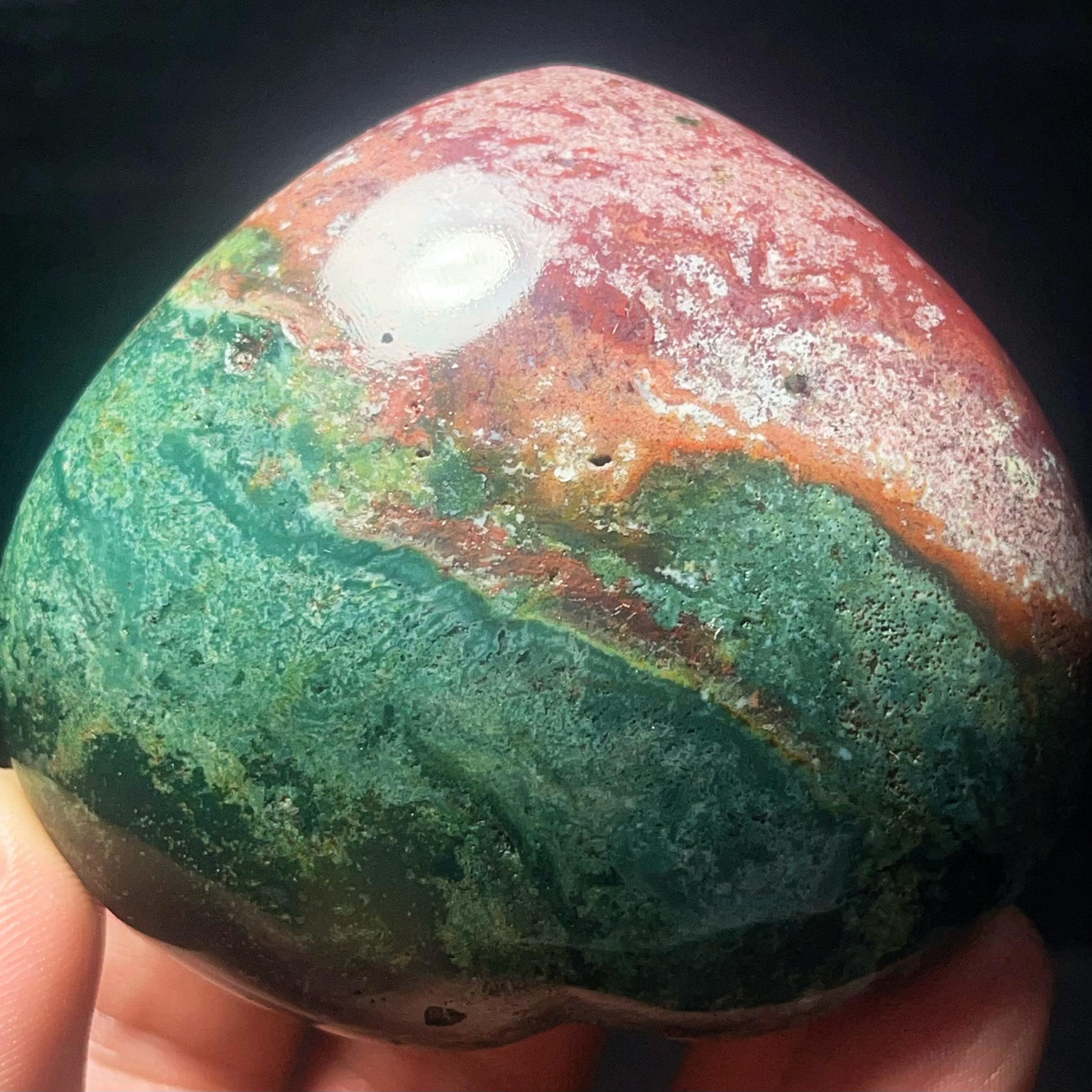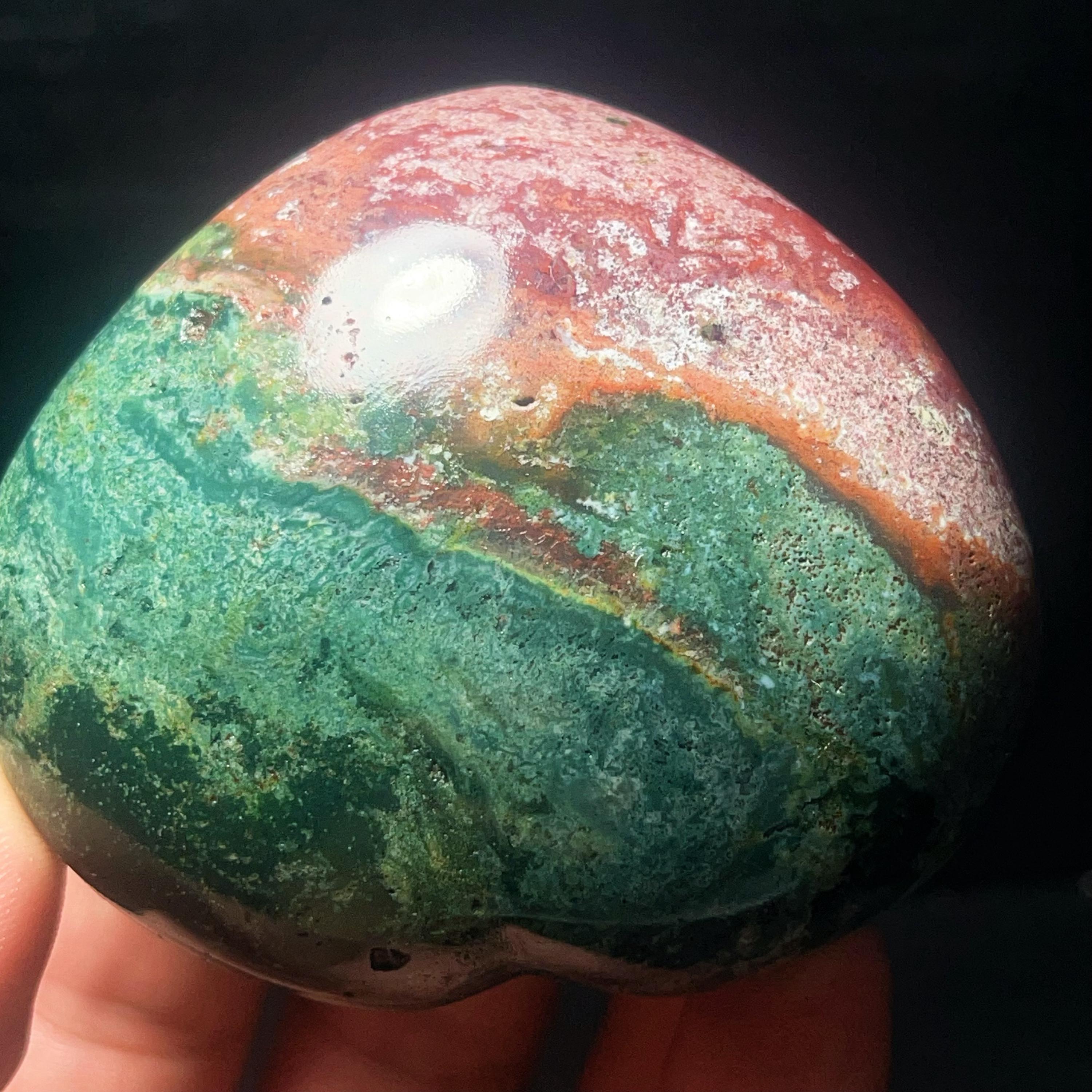 Natural Ocean Jasper Heart: Carved Palm Stone, Reiki Chakra Healing L6724