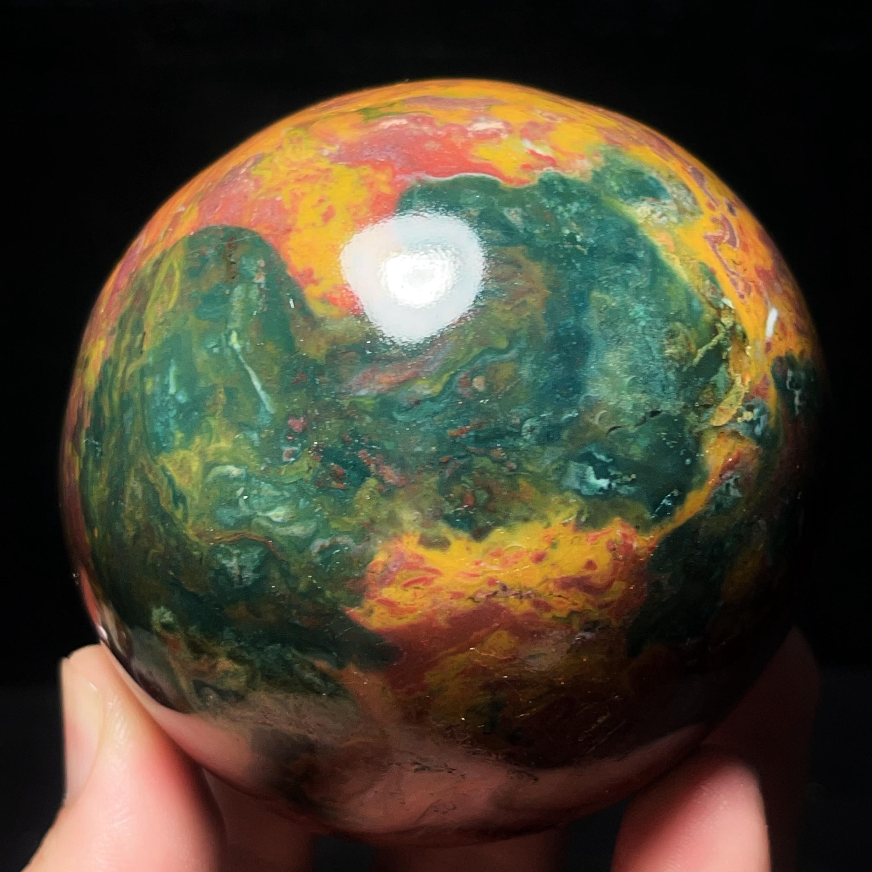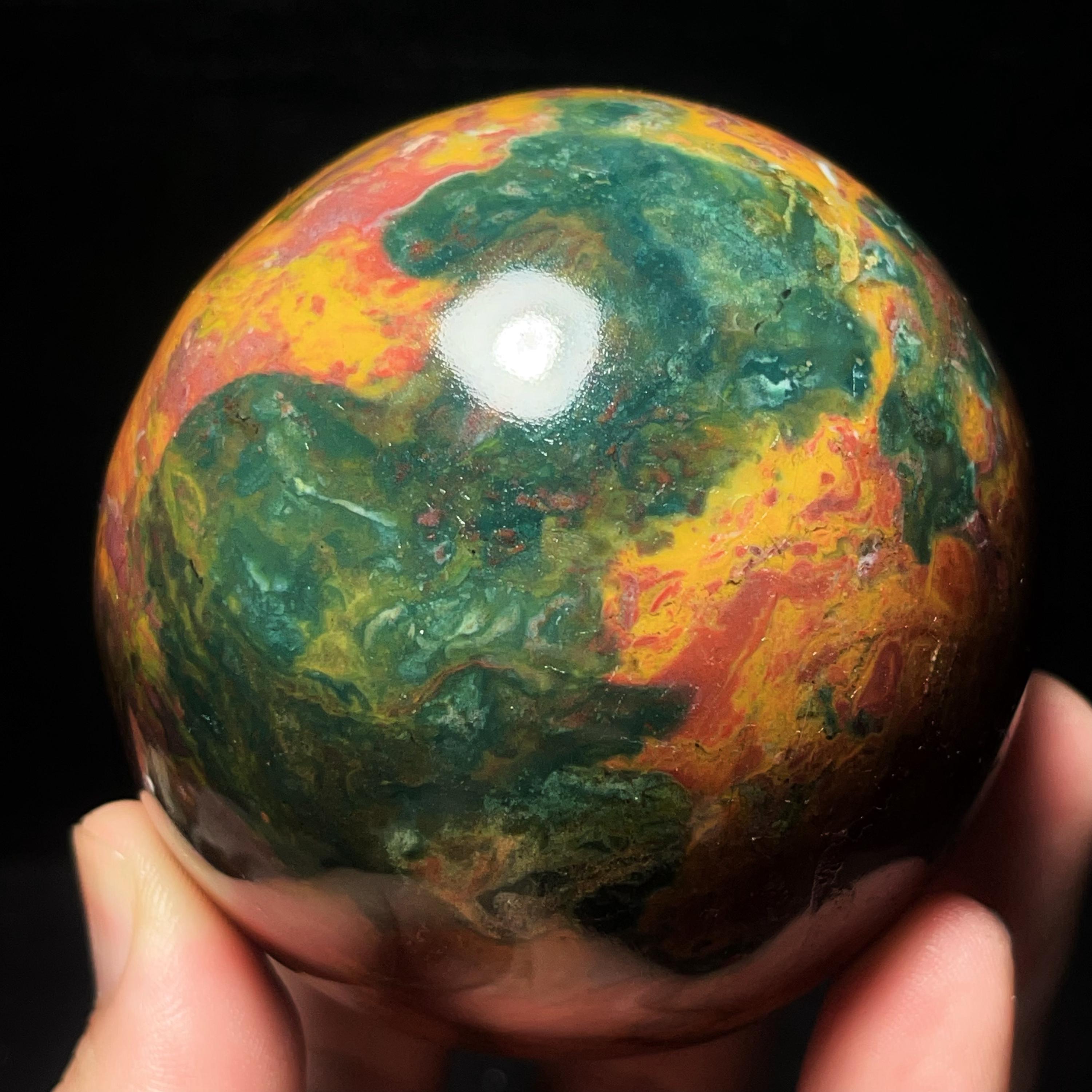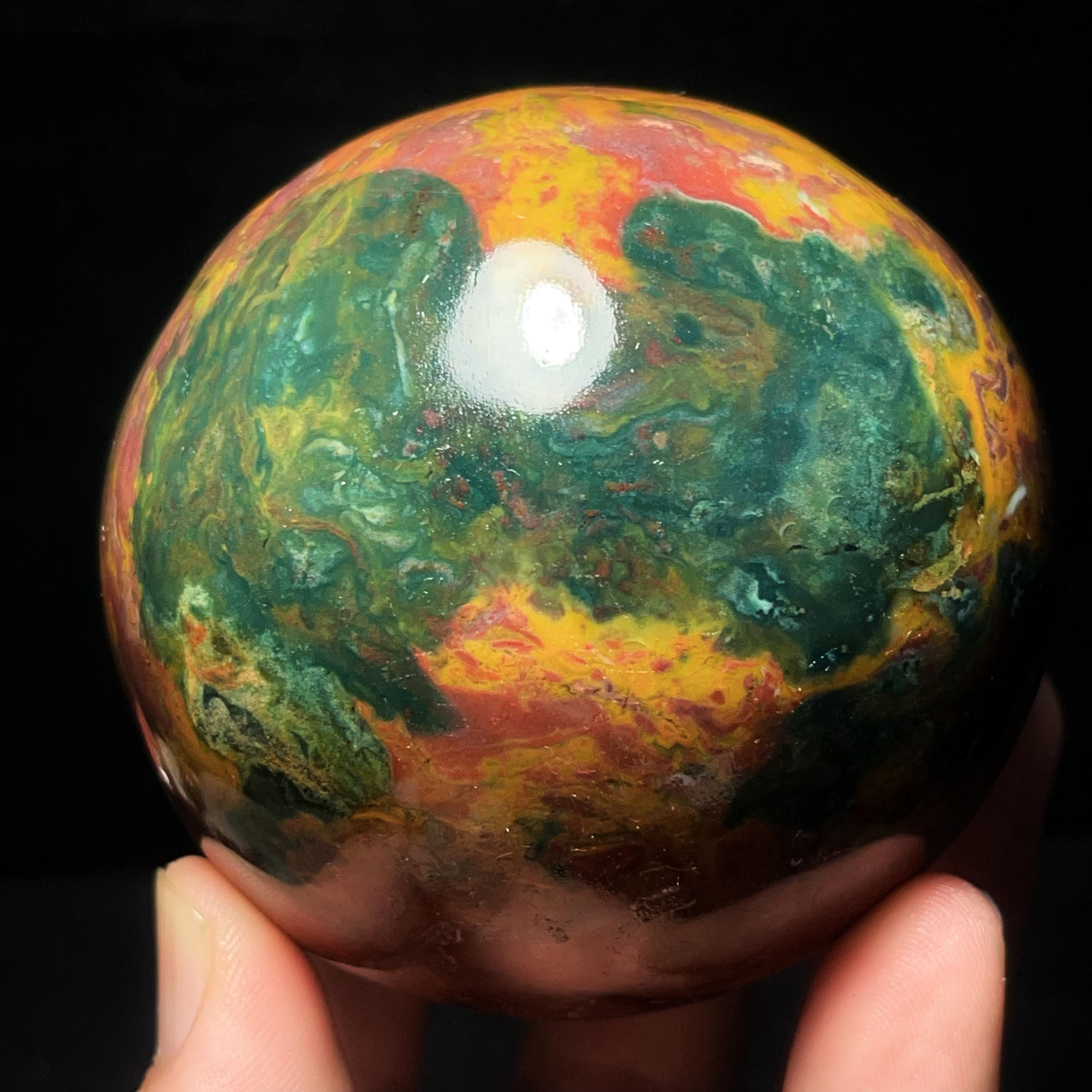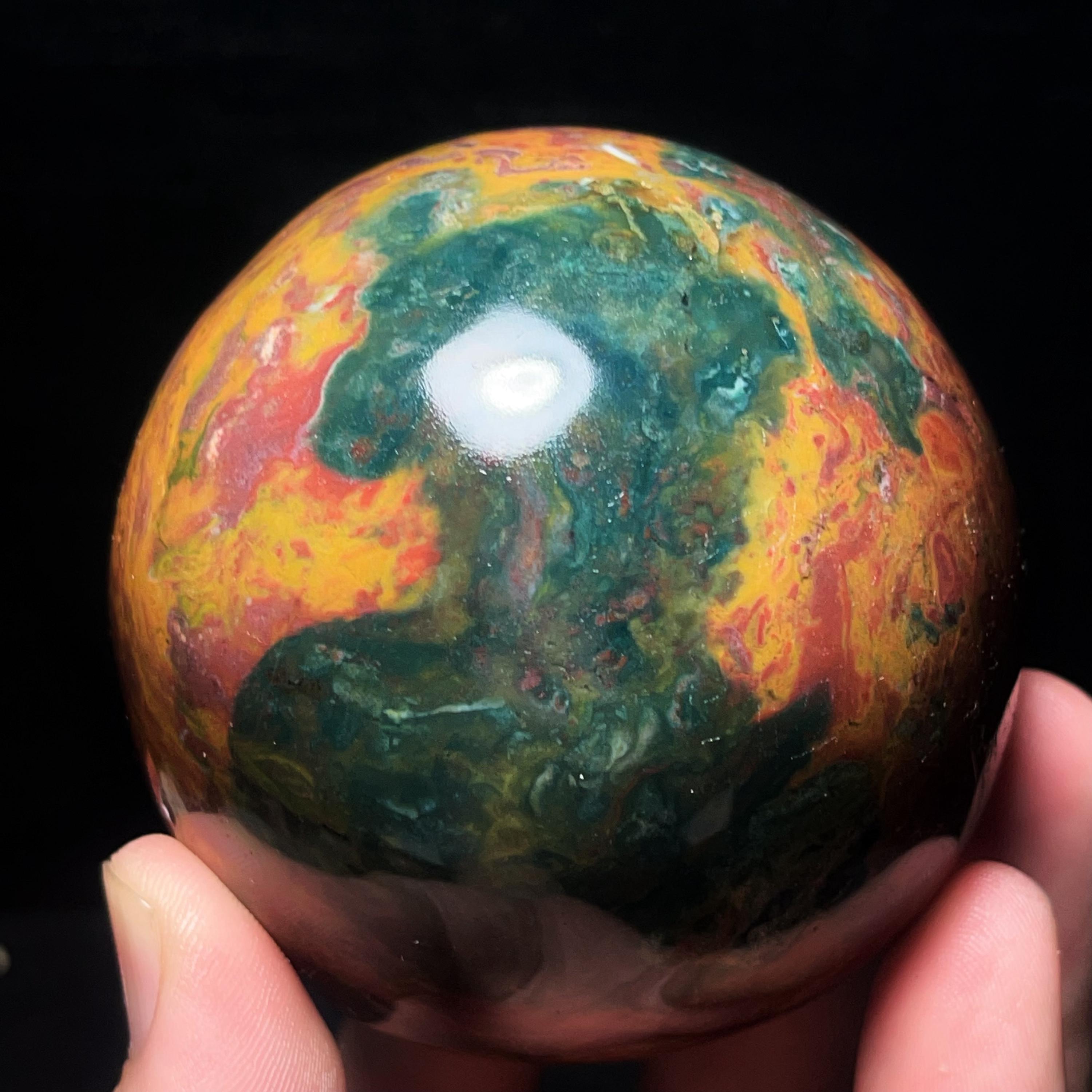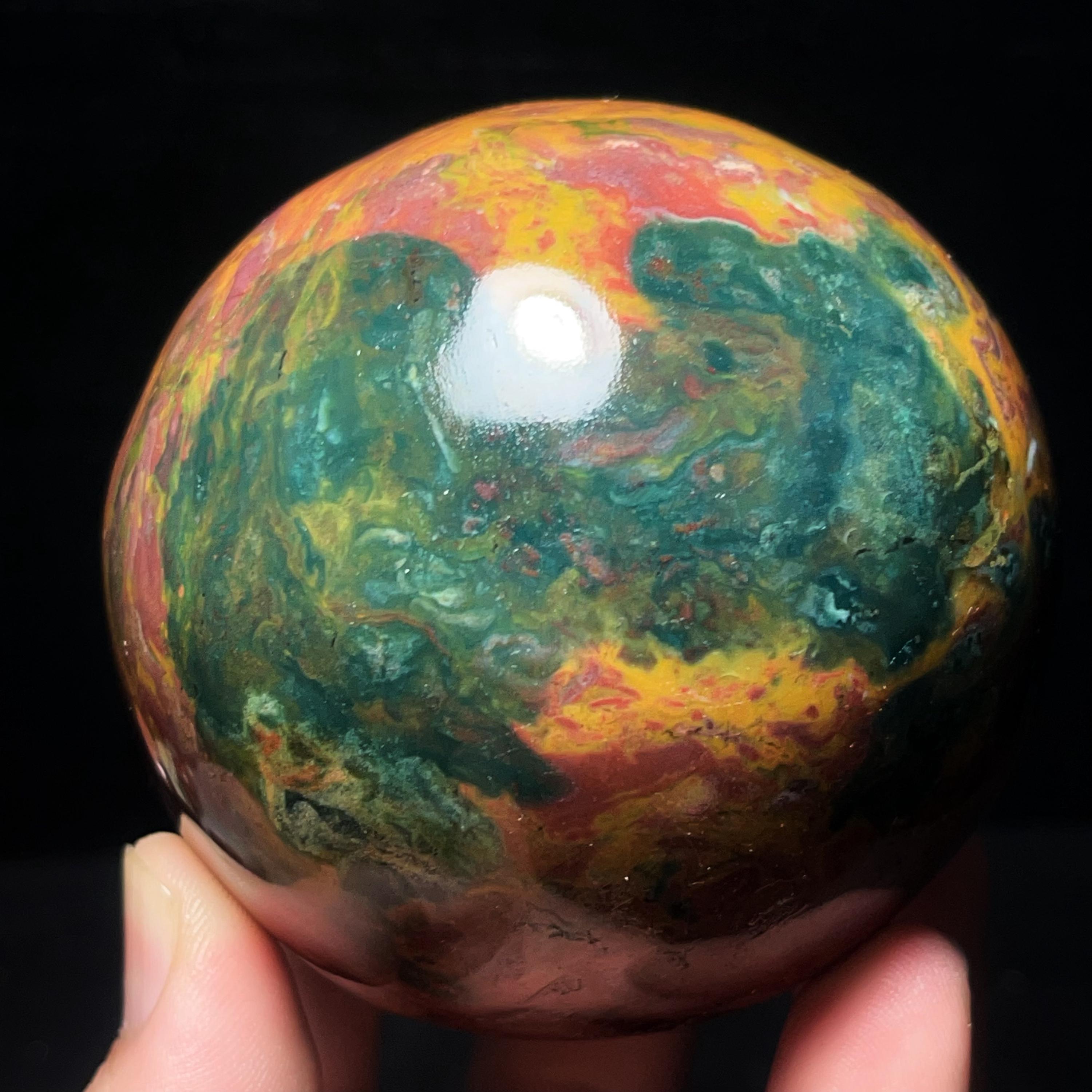 Natural Orbicular Ocean Jasper Sphere: Chakra Reiki Meditation Stone L6743