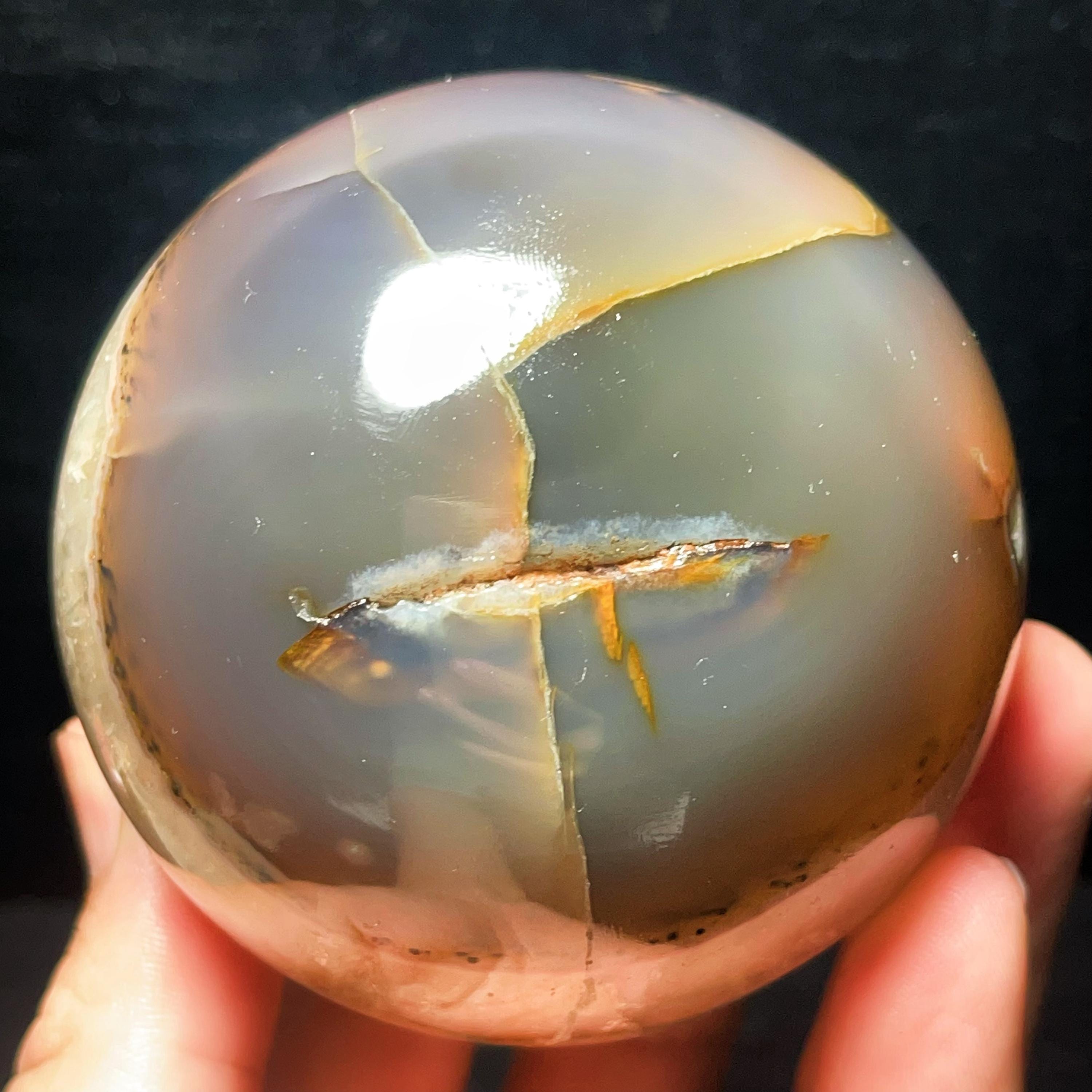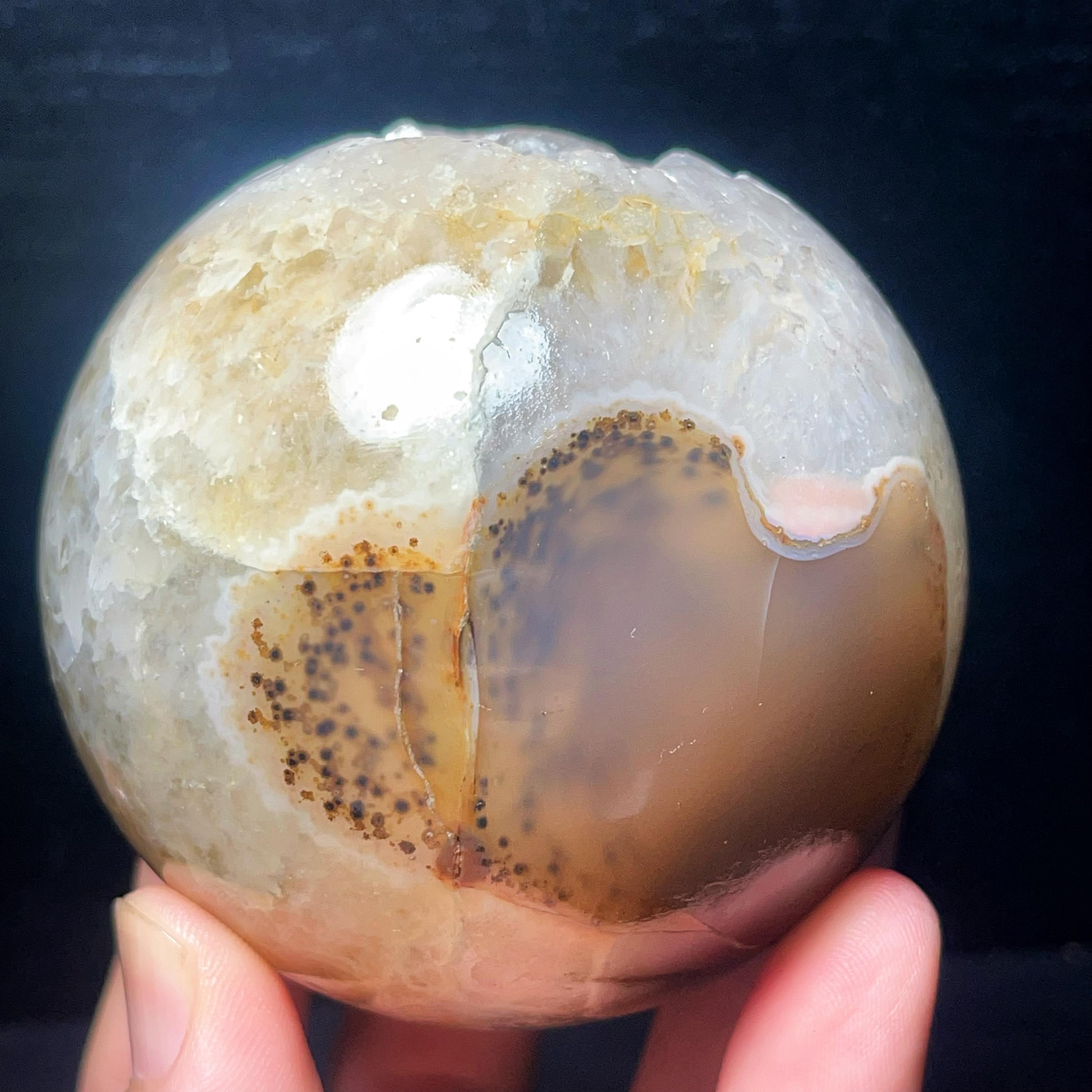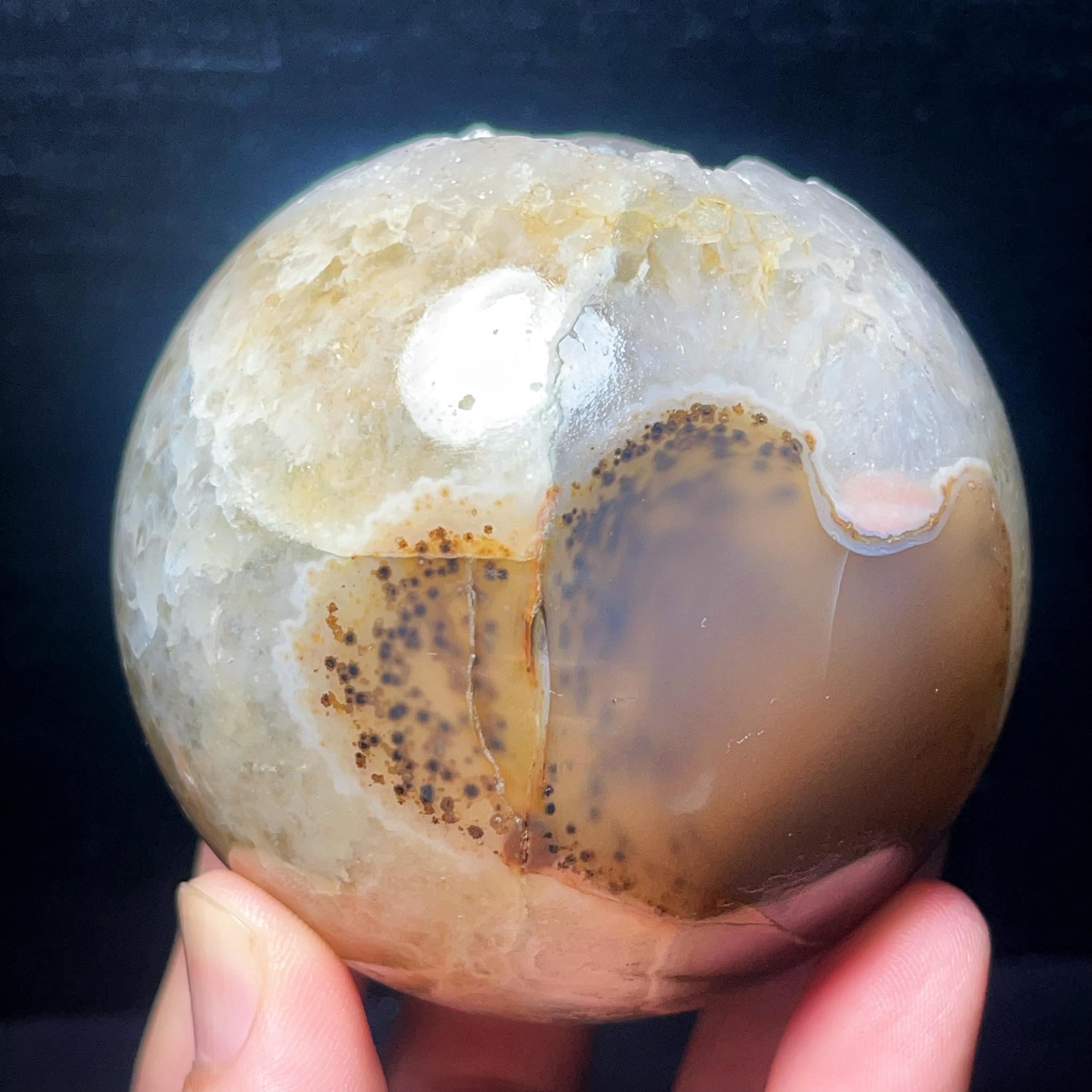 Natural Agate Cave Ball: Reiki Healing Crystal Sphere L6737
