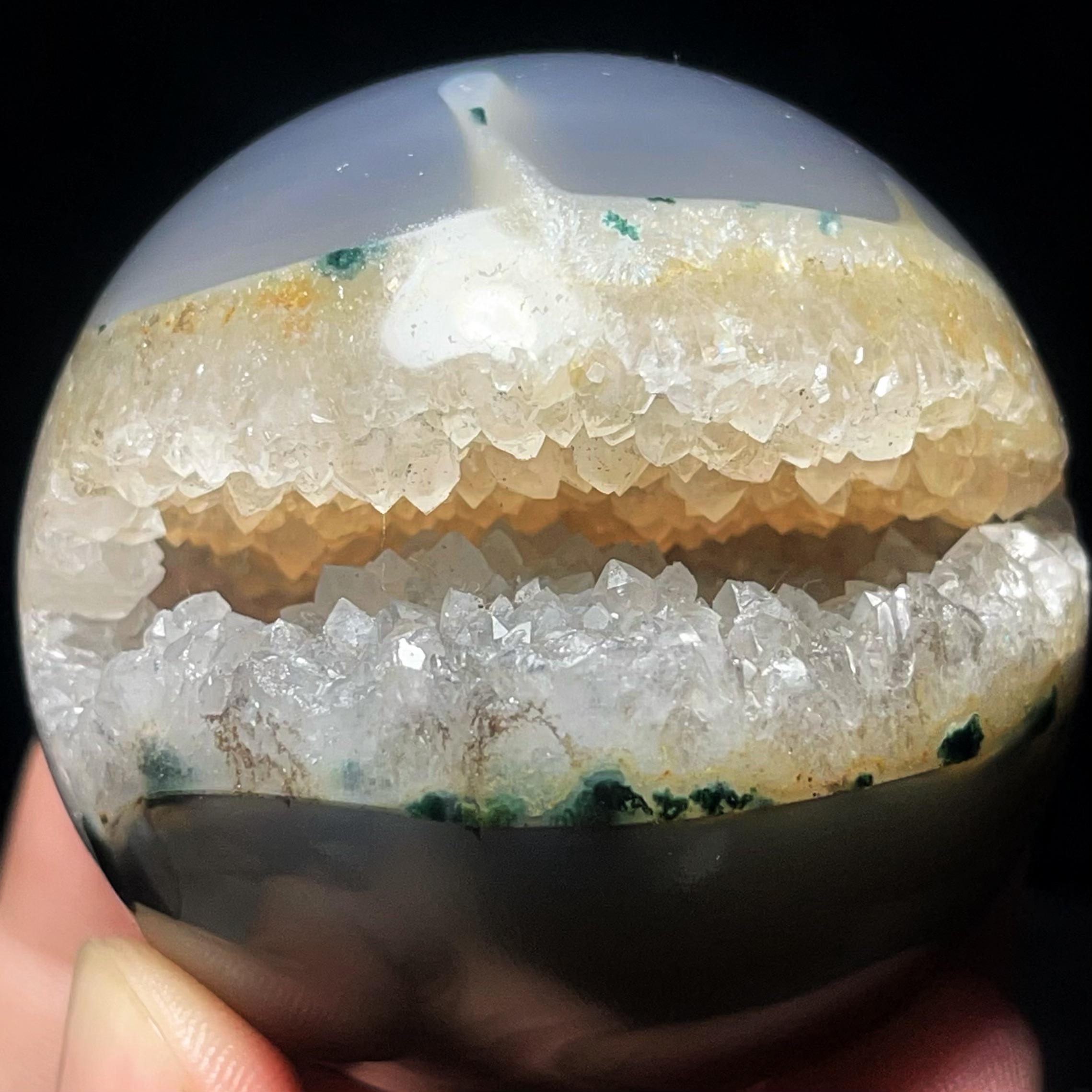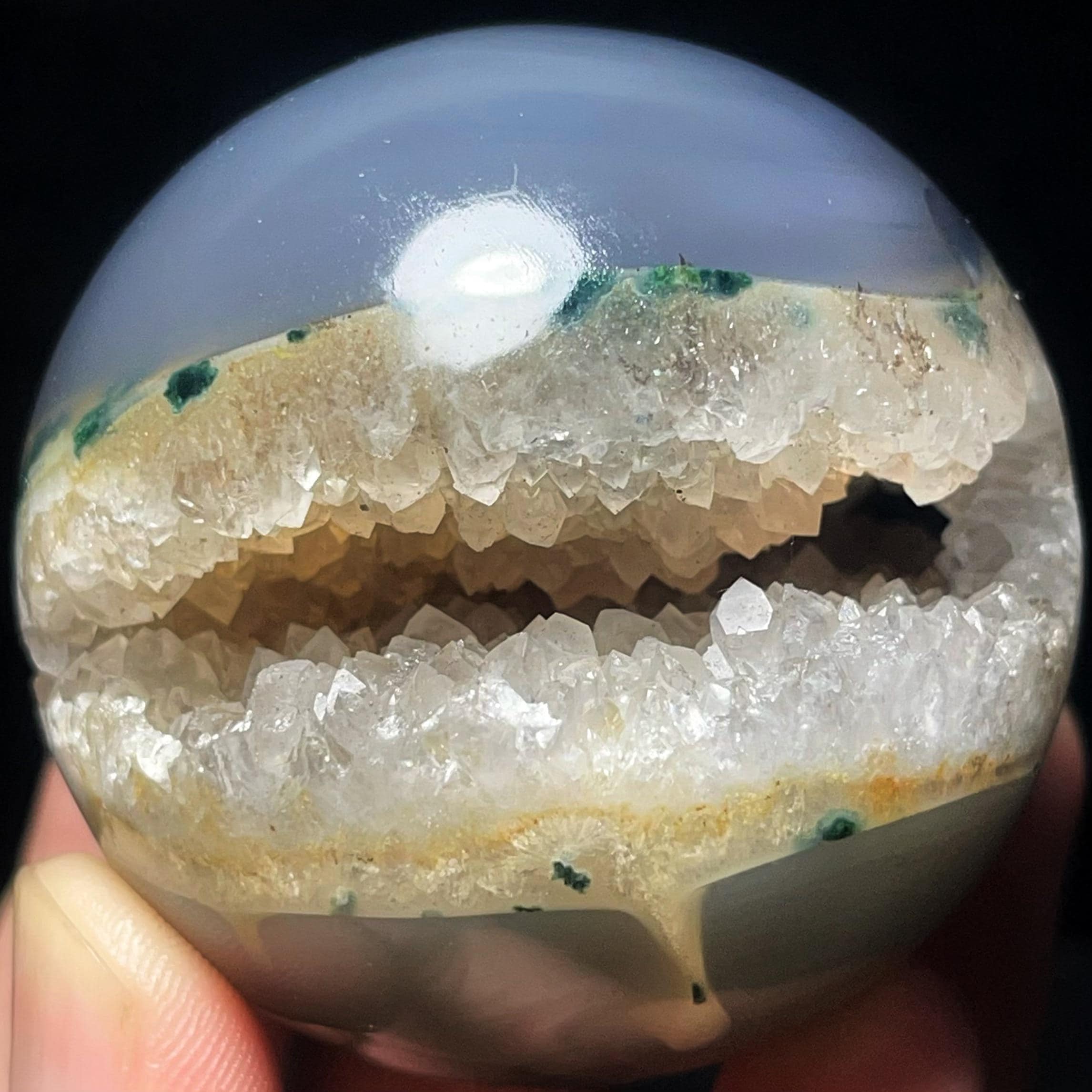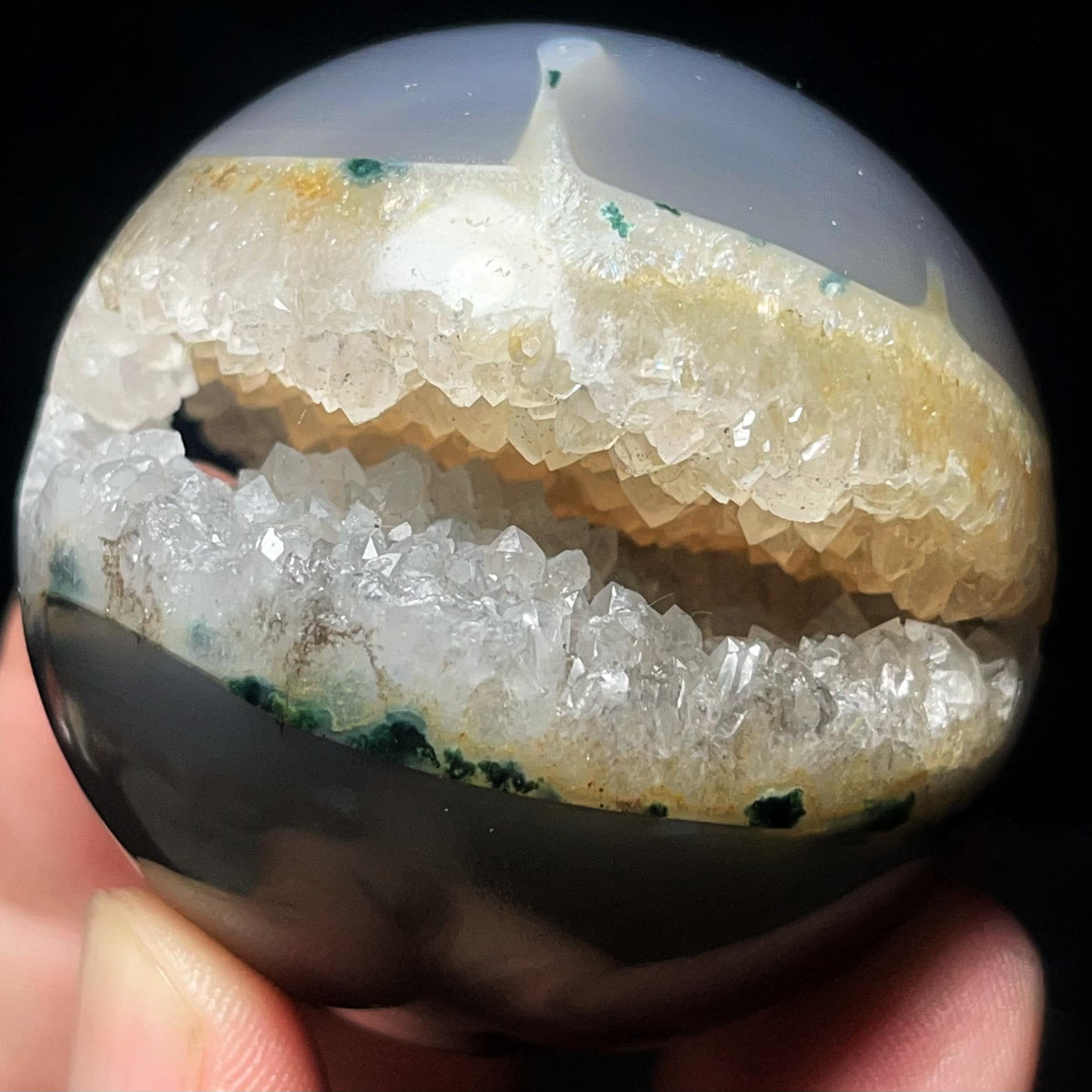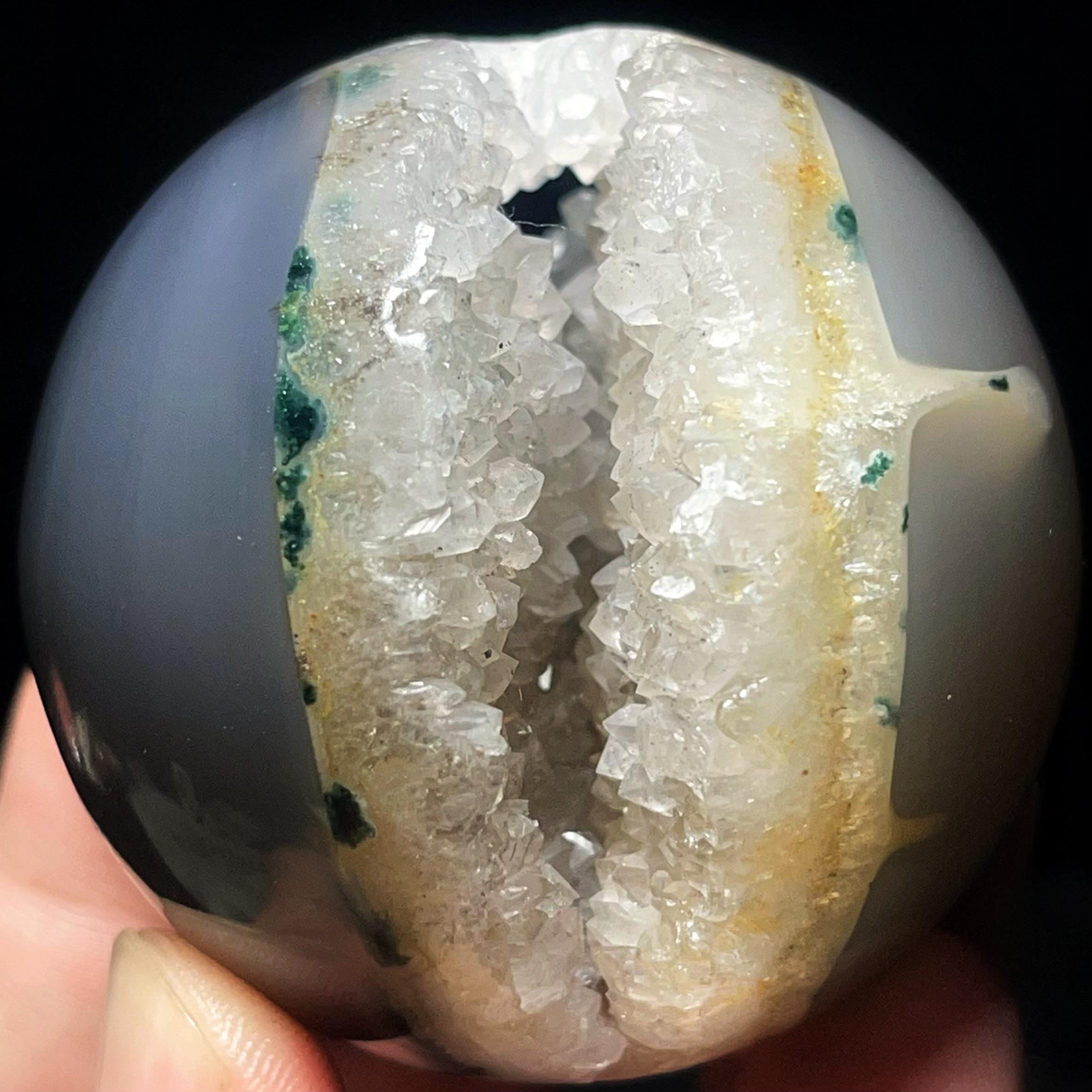 Natural Agate Cave Ball: Reiki Healing Crystal Sphere L6746