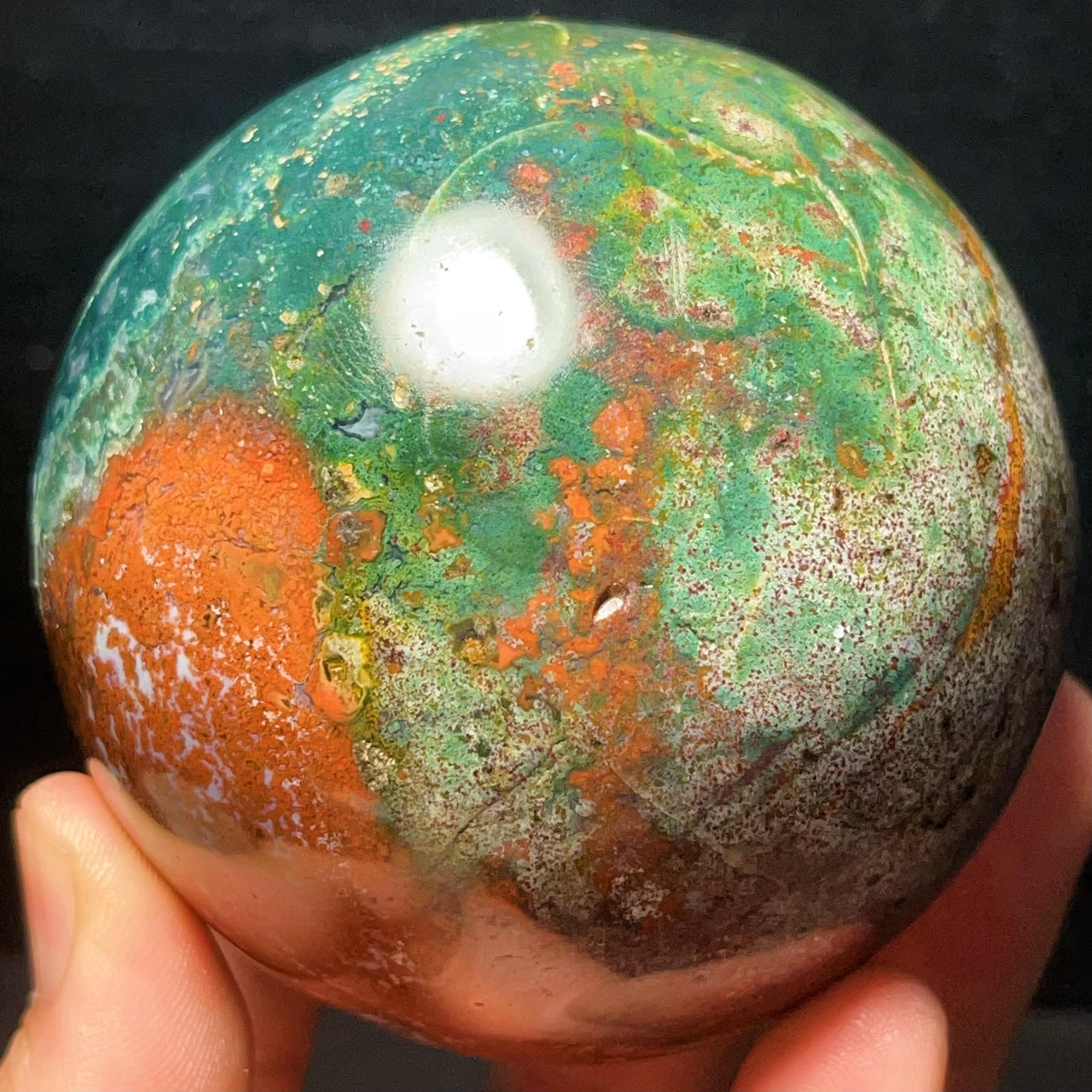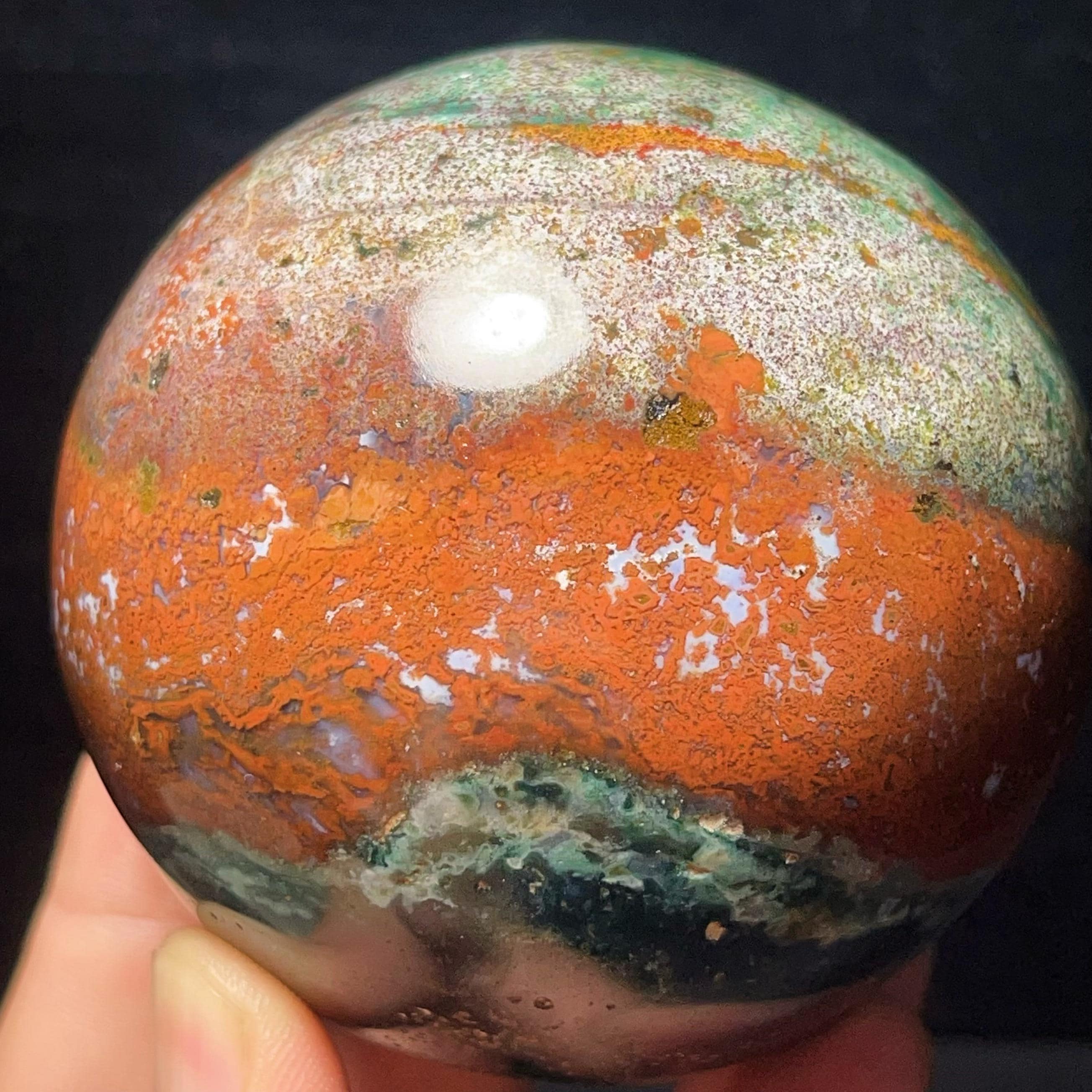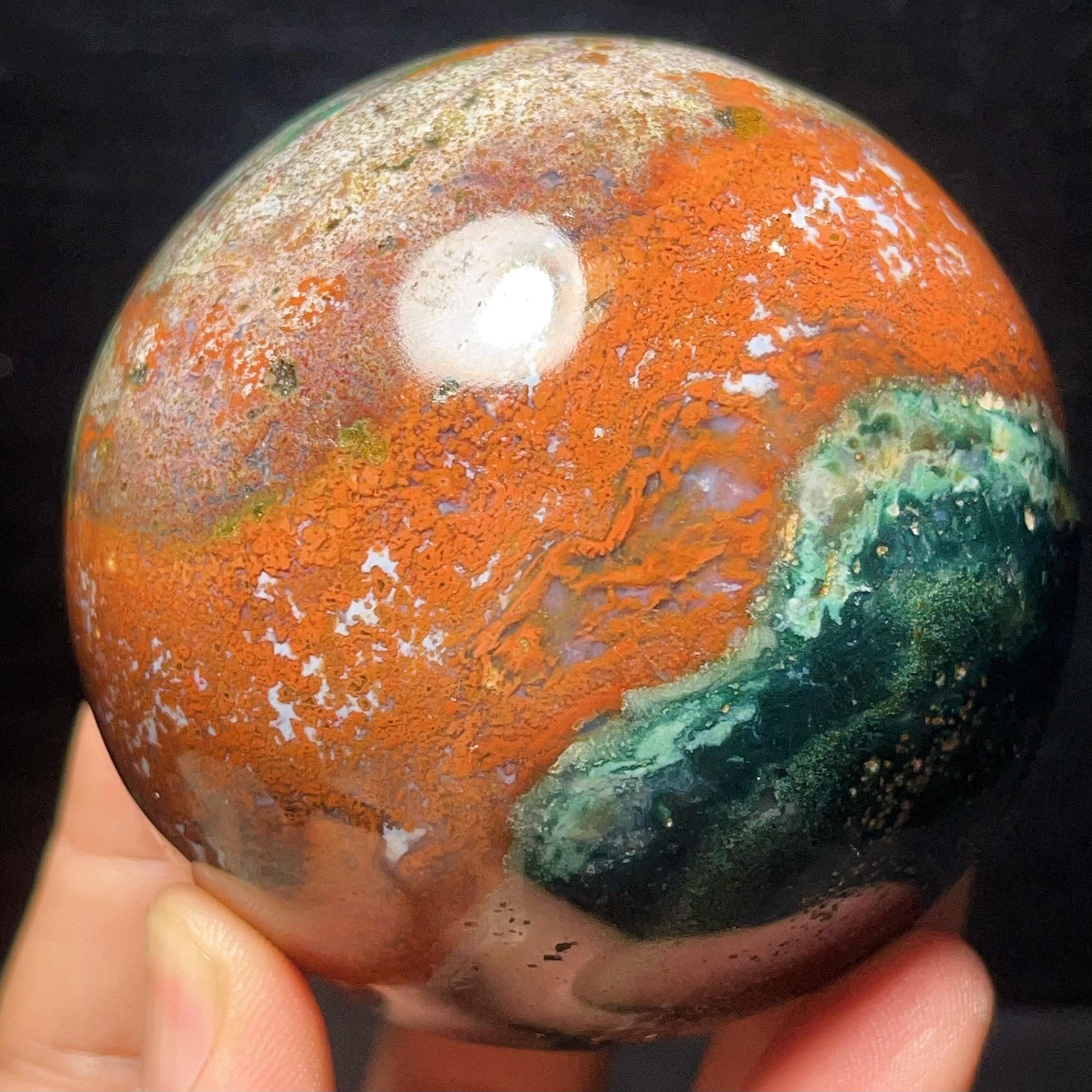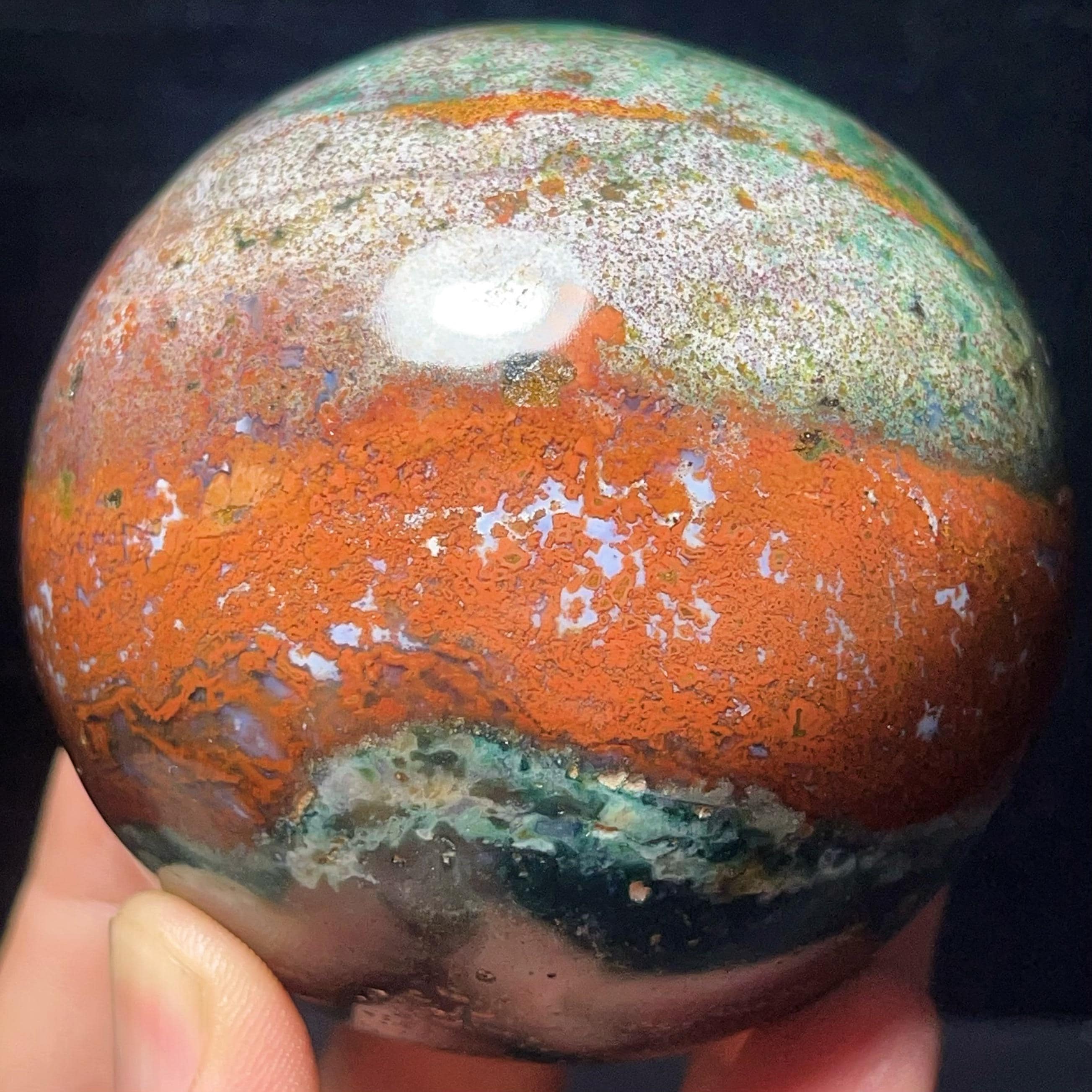 Natural Orbicular Ocean Jasper Sphere: Chakra Reiki Meditation Stone L7004