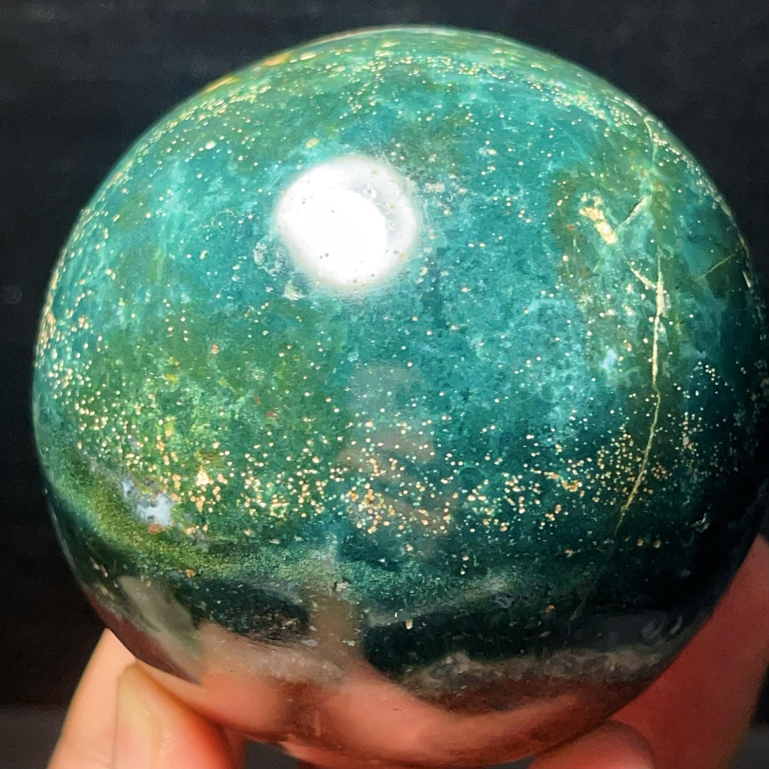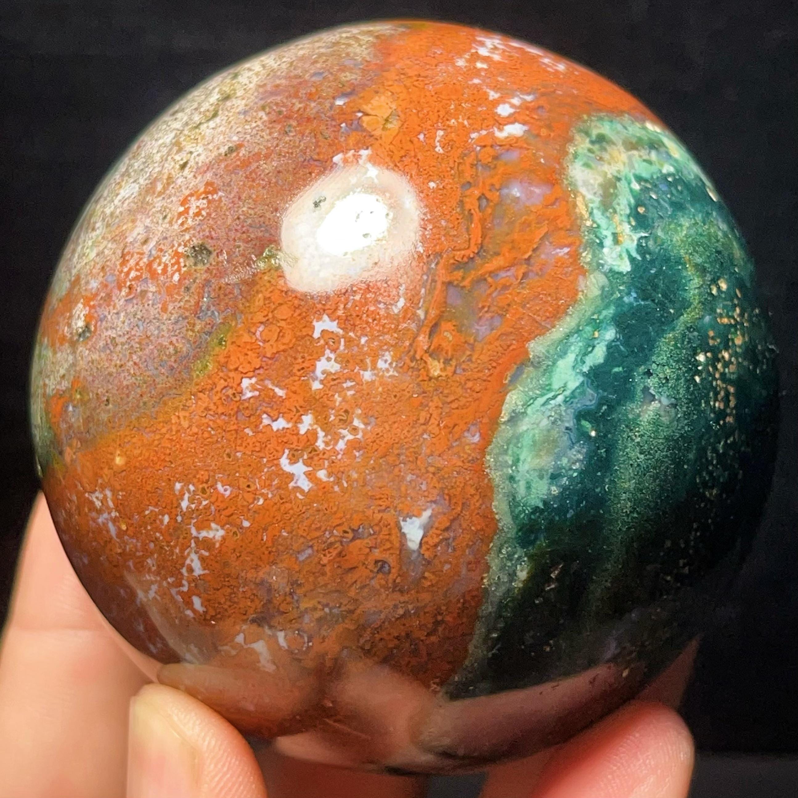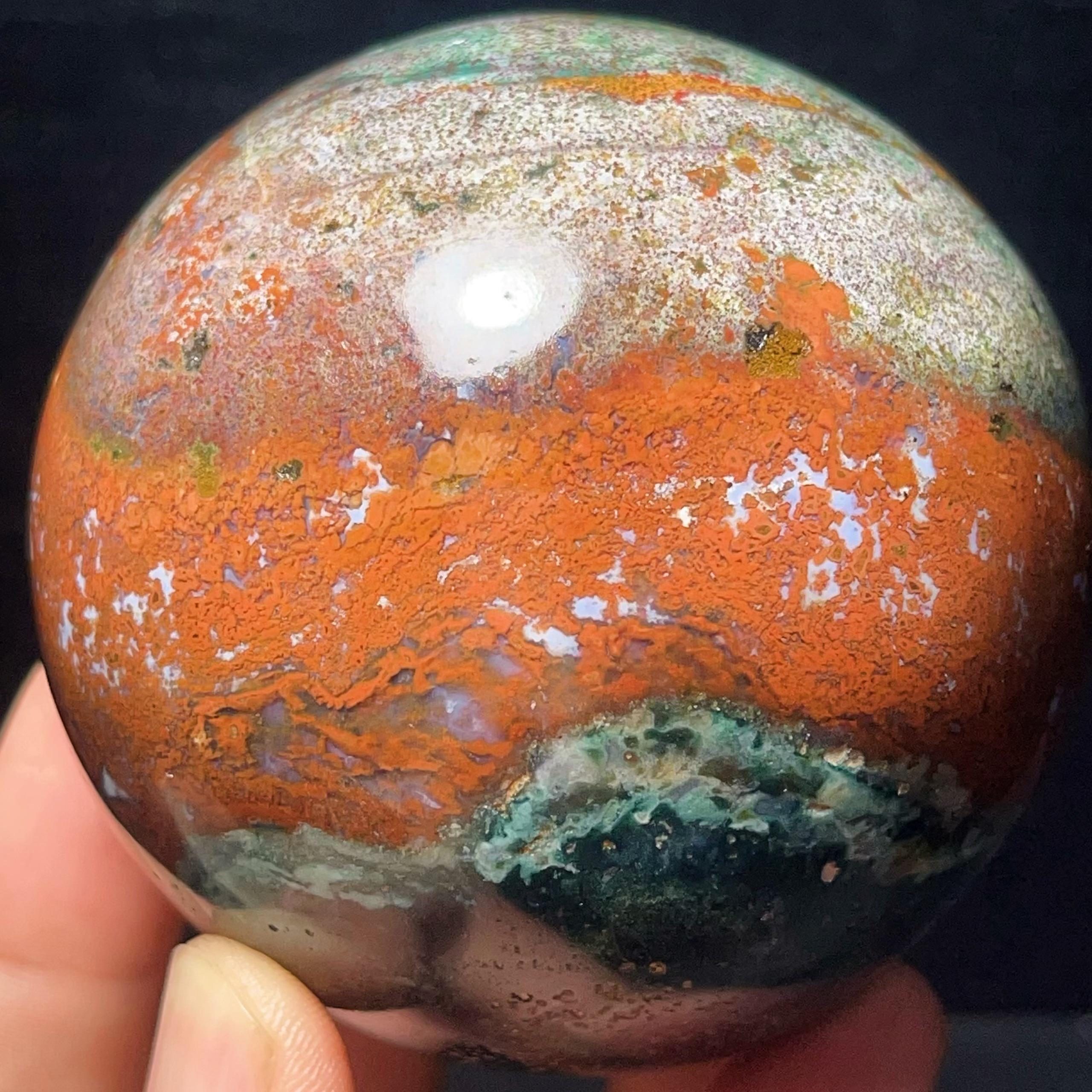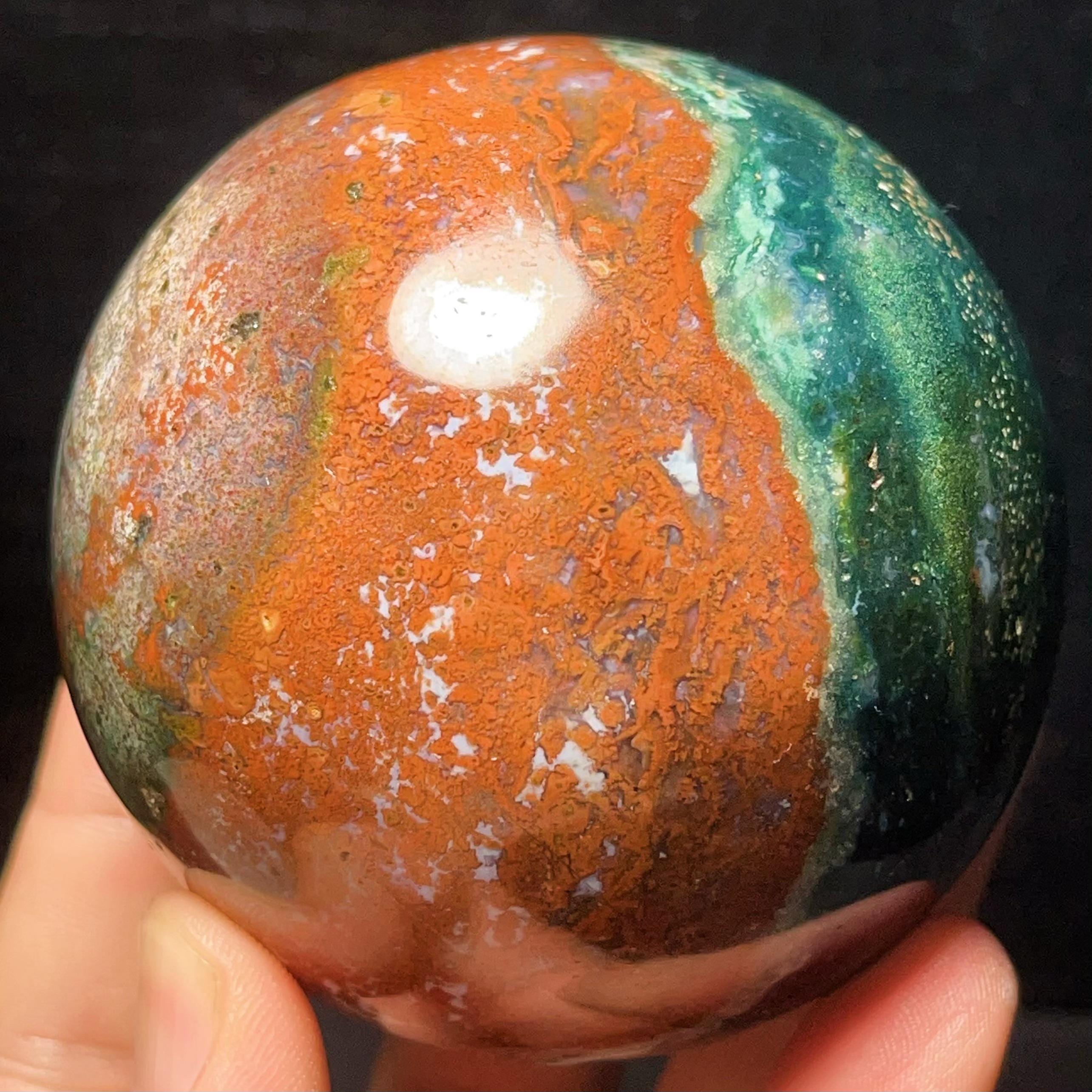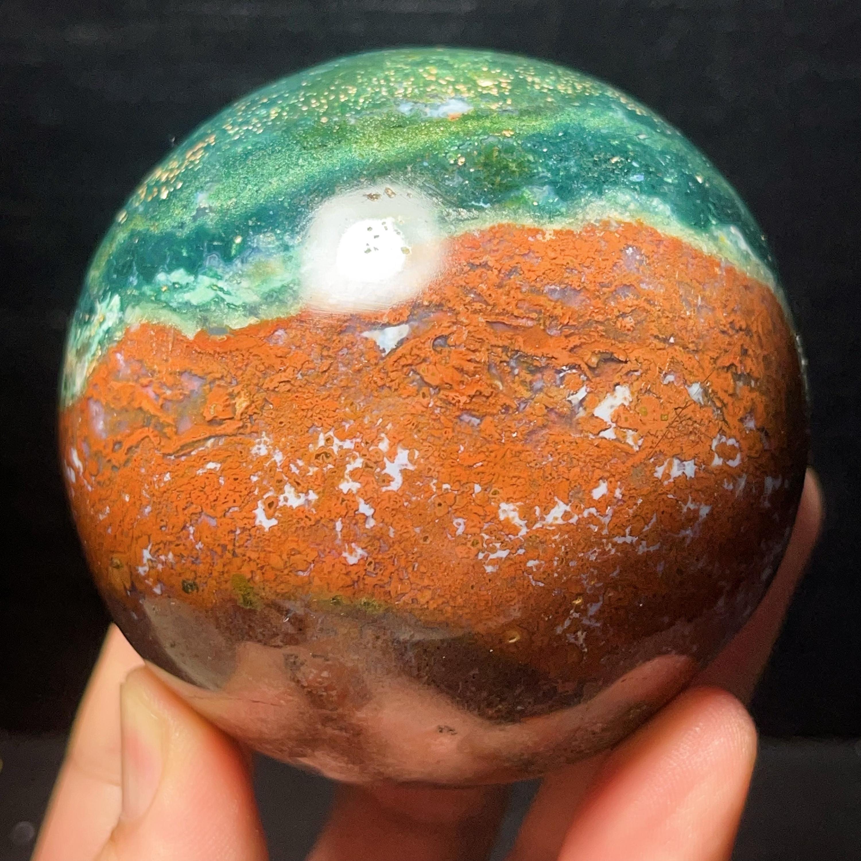 Natural Orbicular Ocean Jasper Sphere: Chakra Reiki Meditation Stone L7004