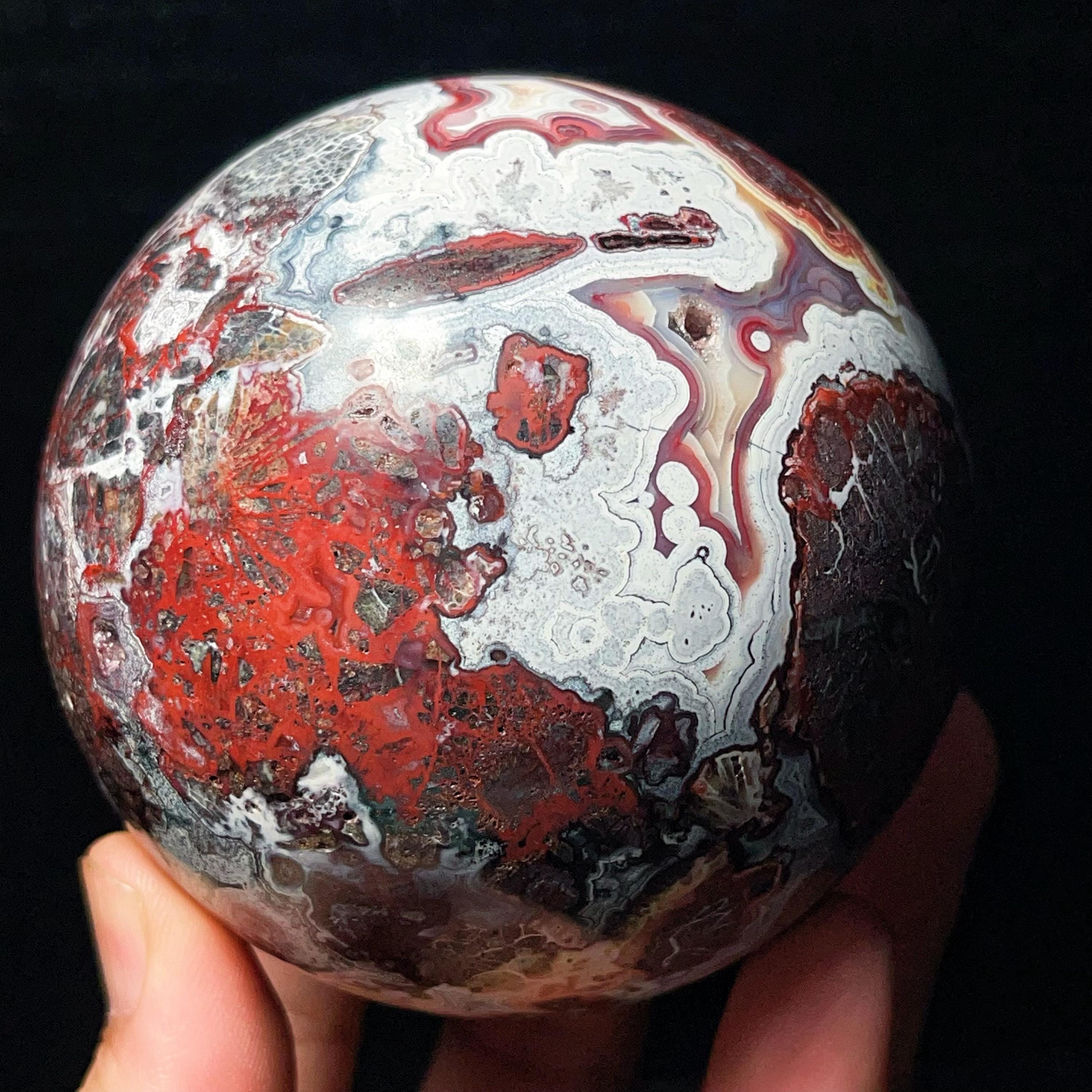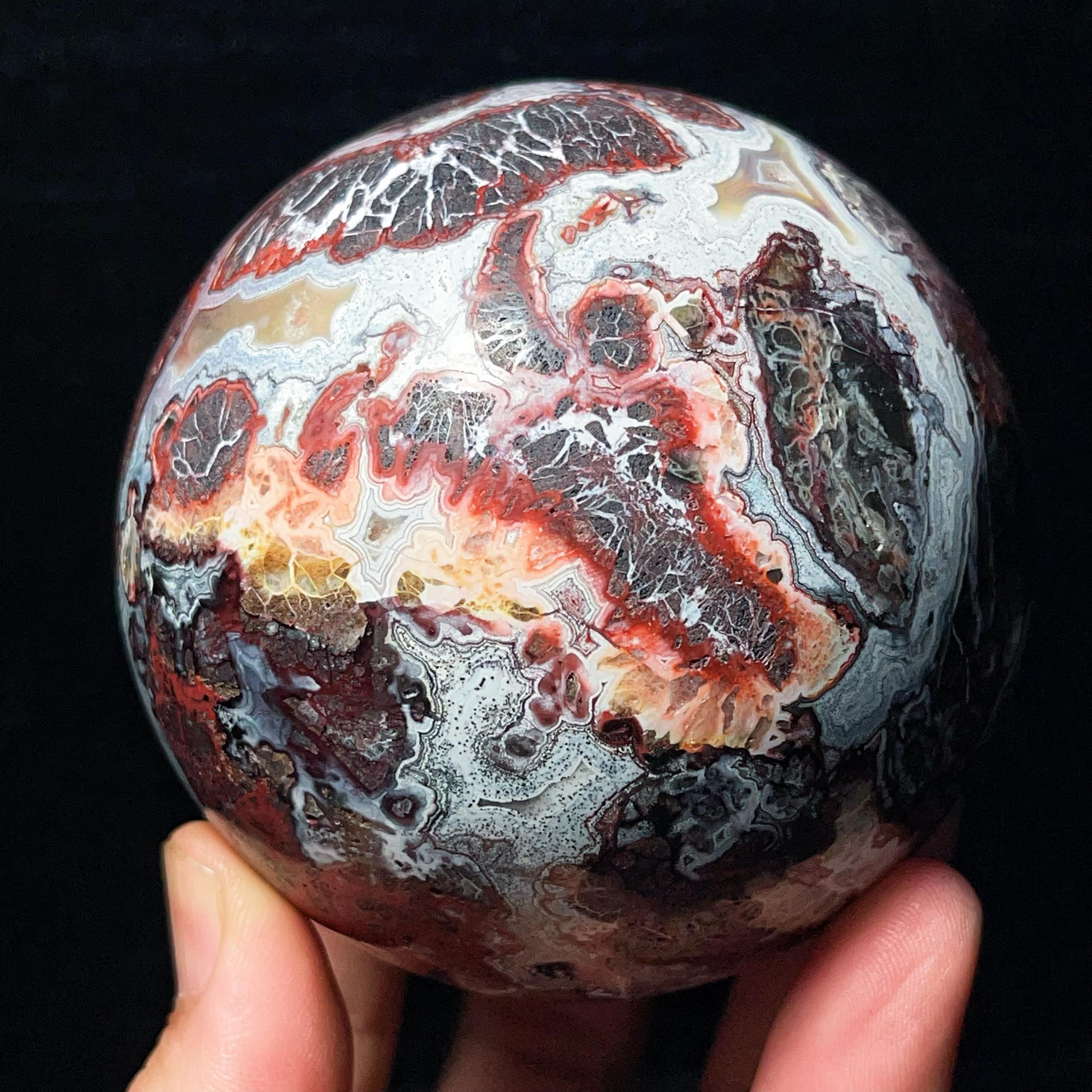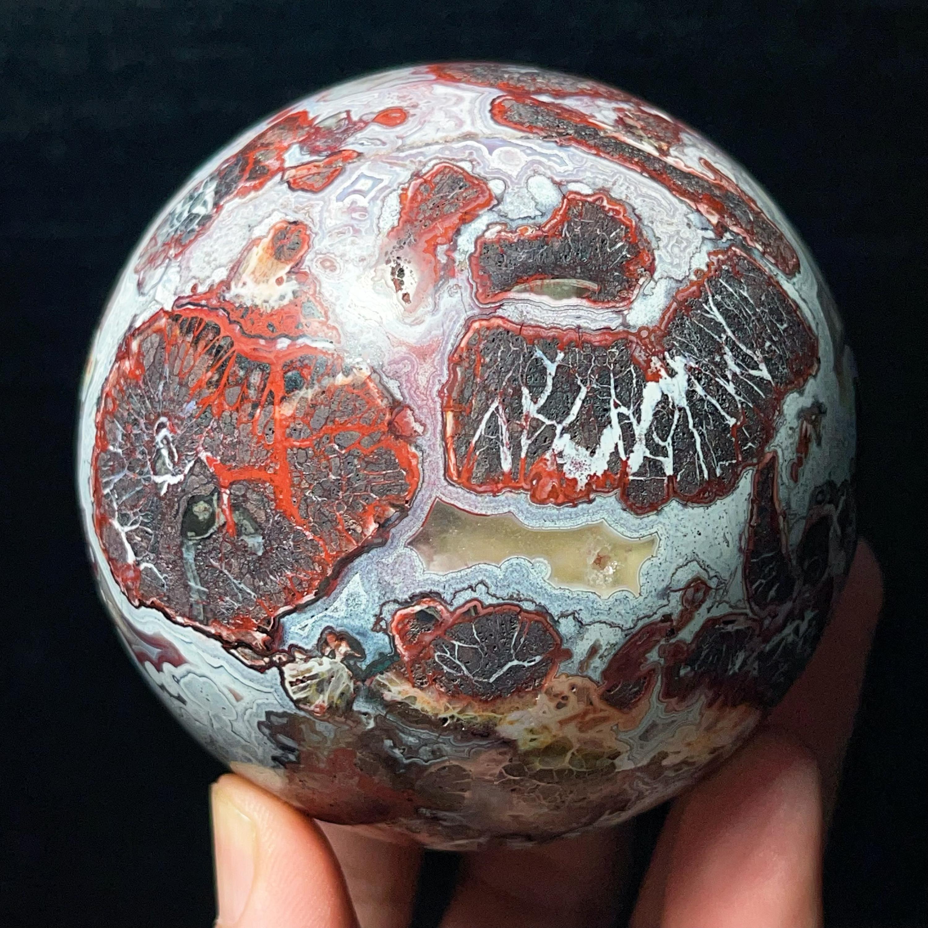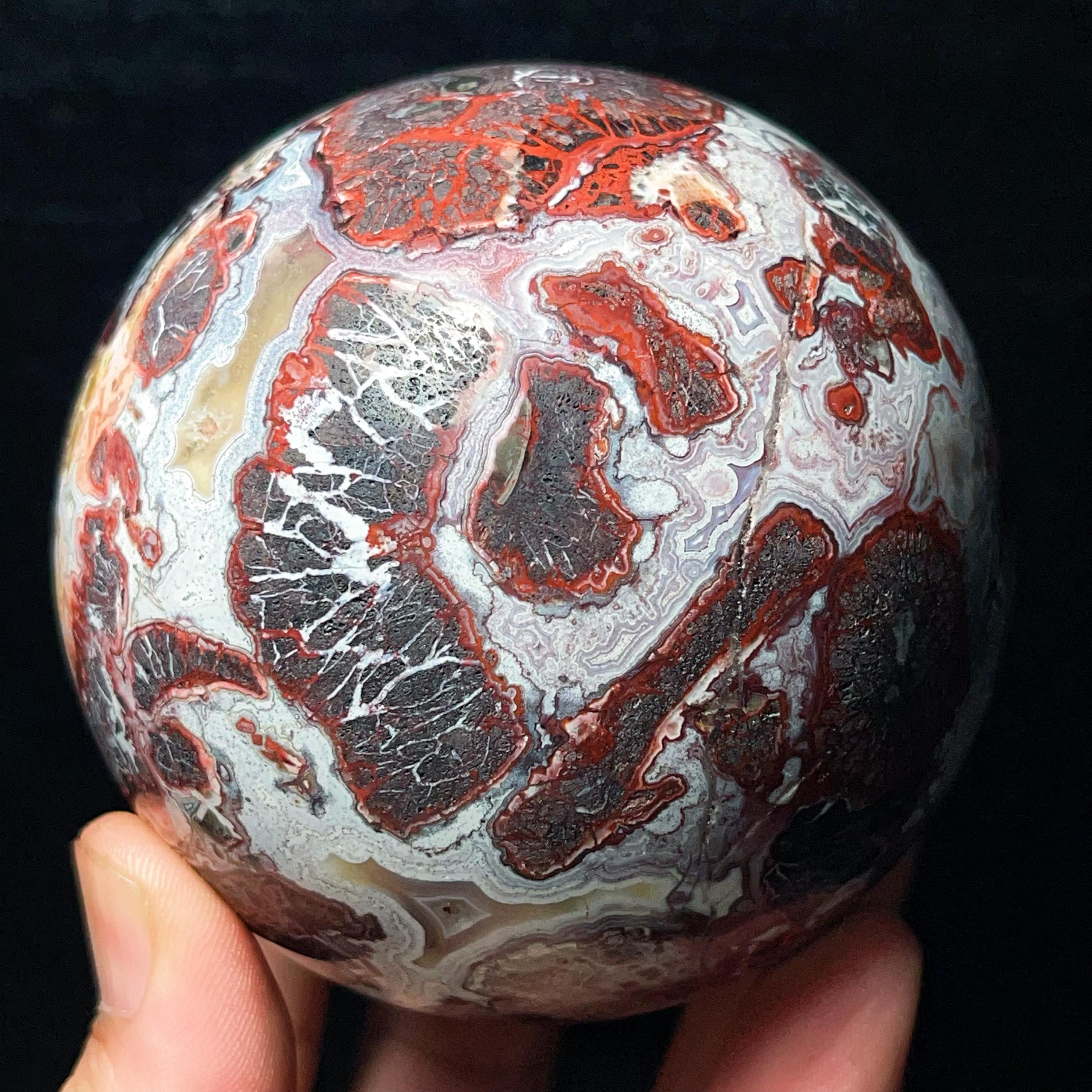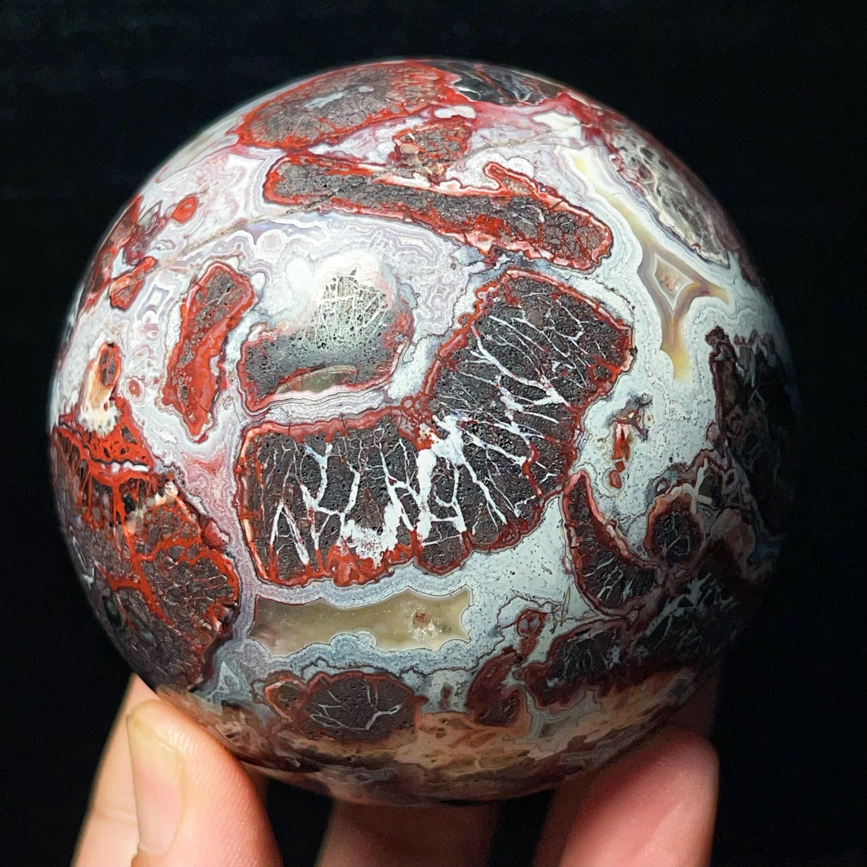 Natural Mexican Agate Ball: Crazy Onyx Sardonyx Palm Stone L7022