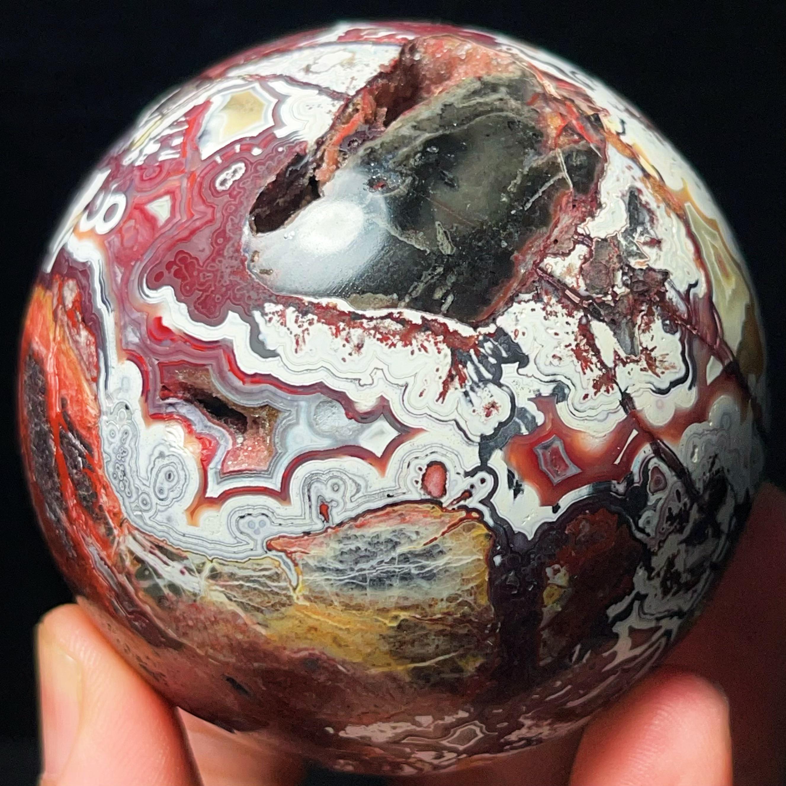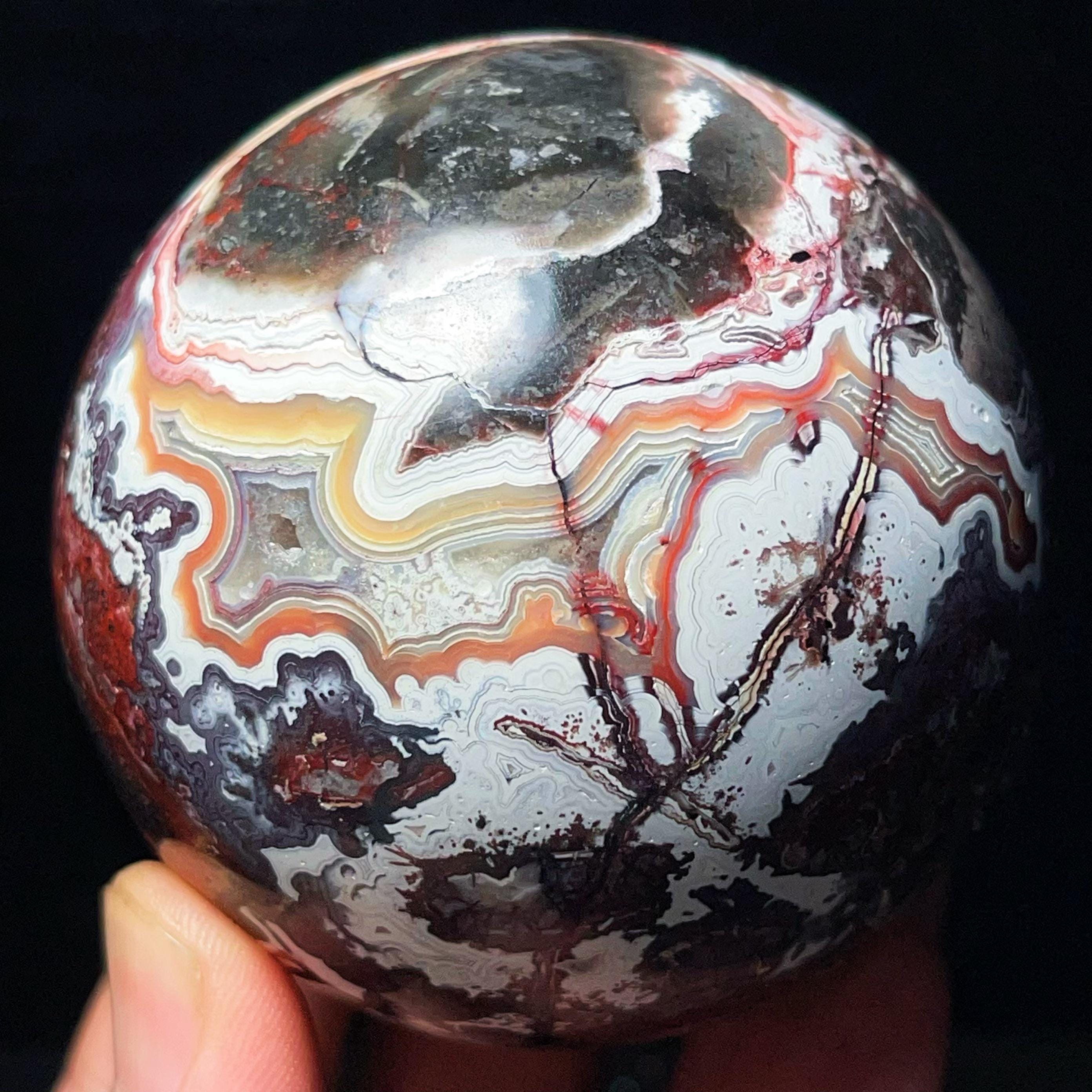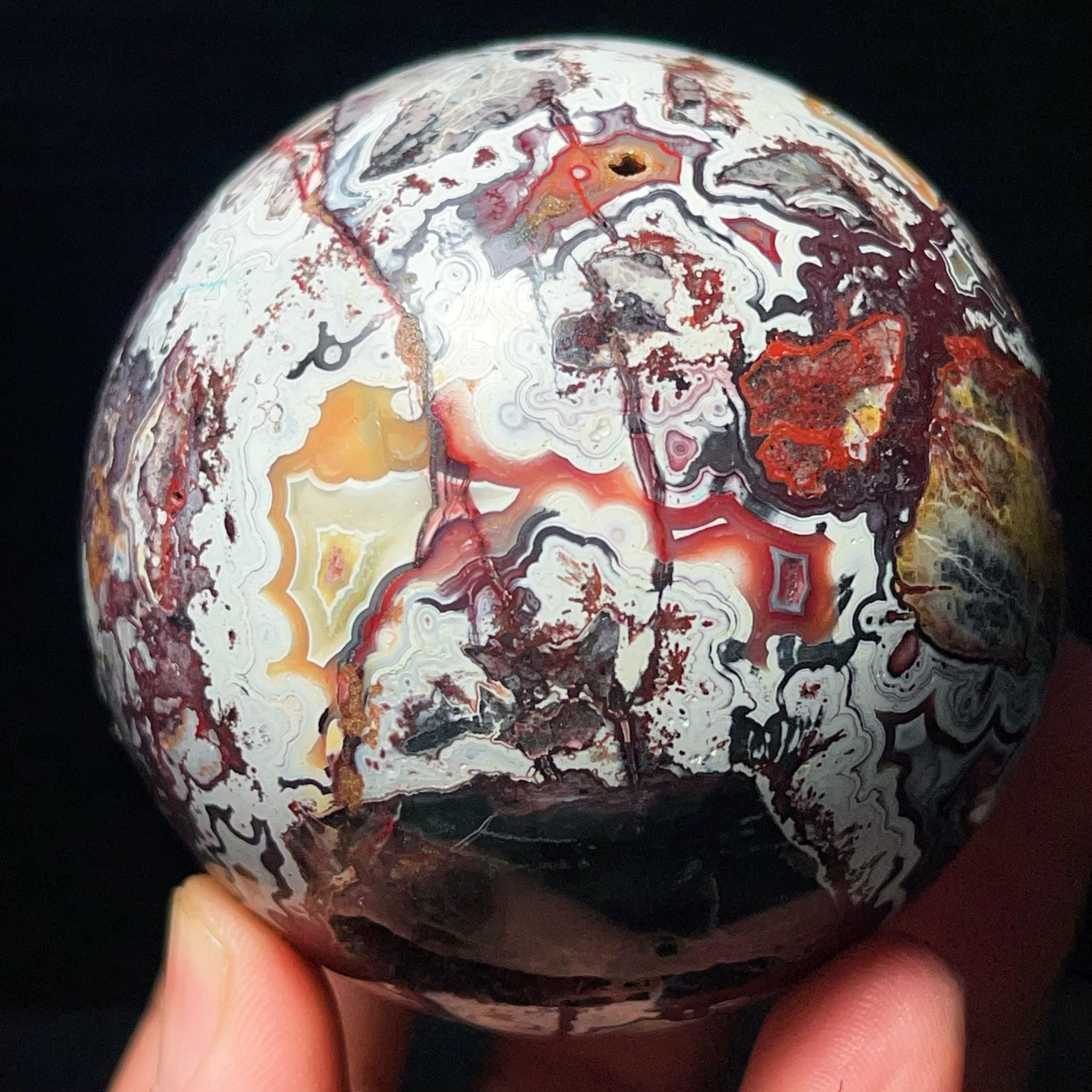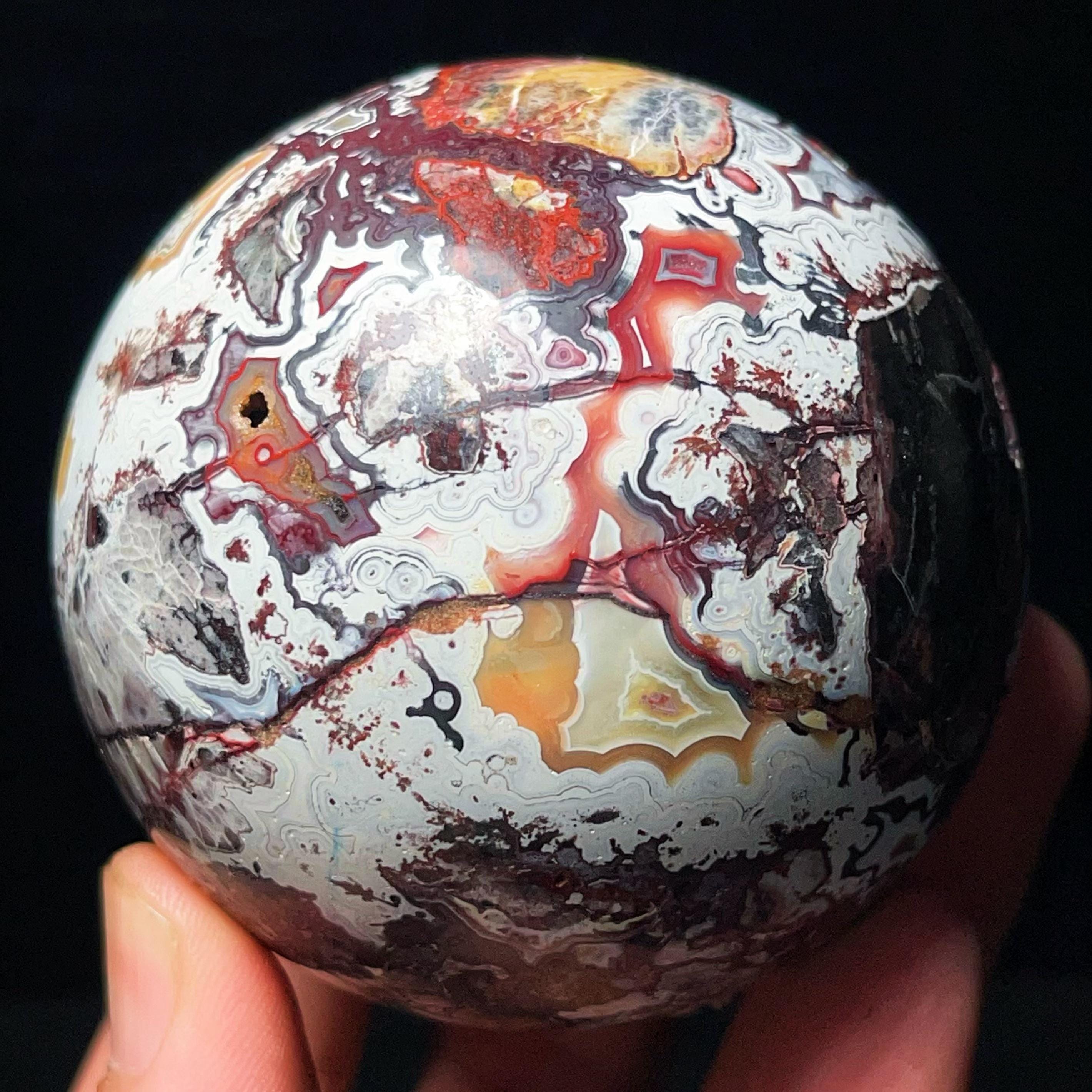 Mexican Agate Ball: Hand Carved Crazy Onyx, Healing Crystal L7028