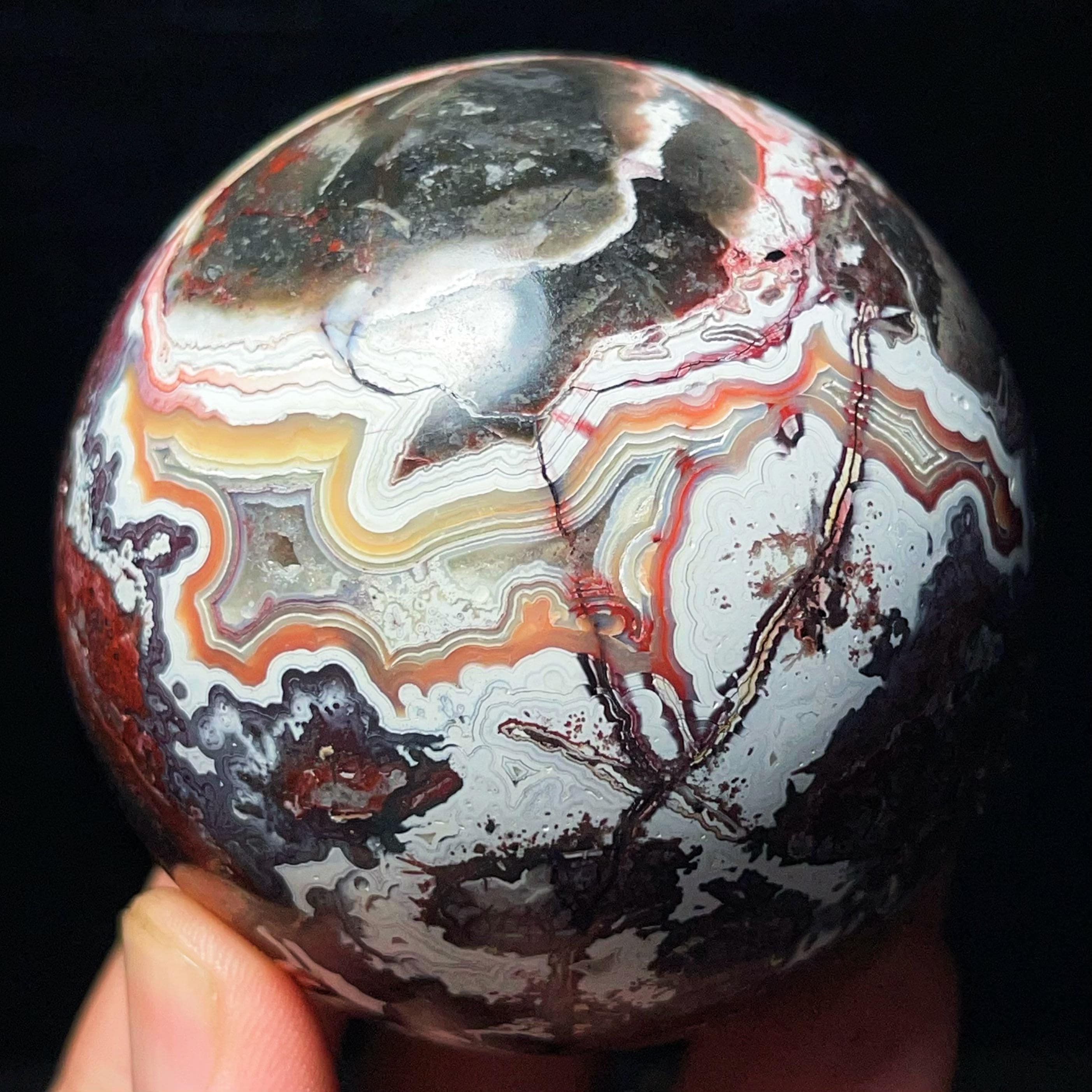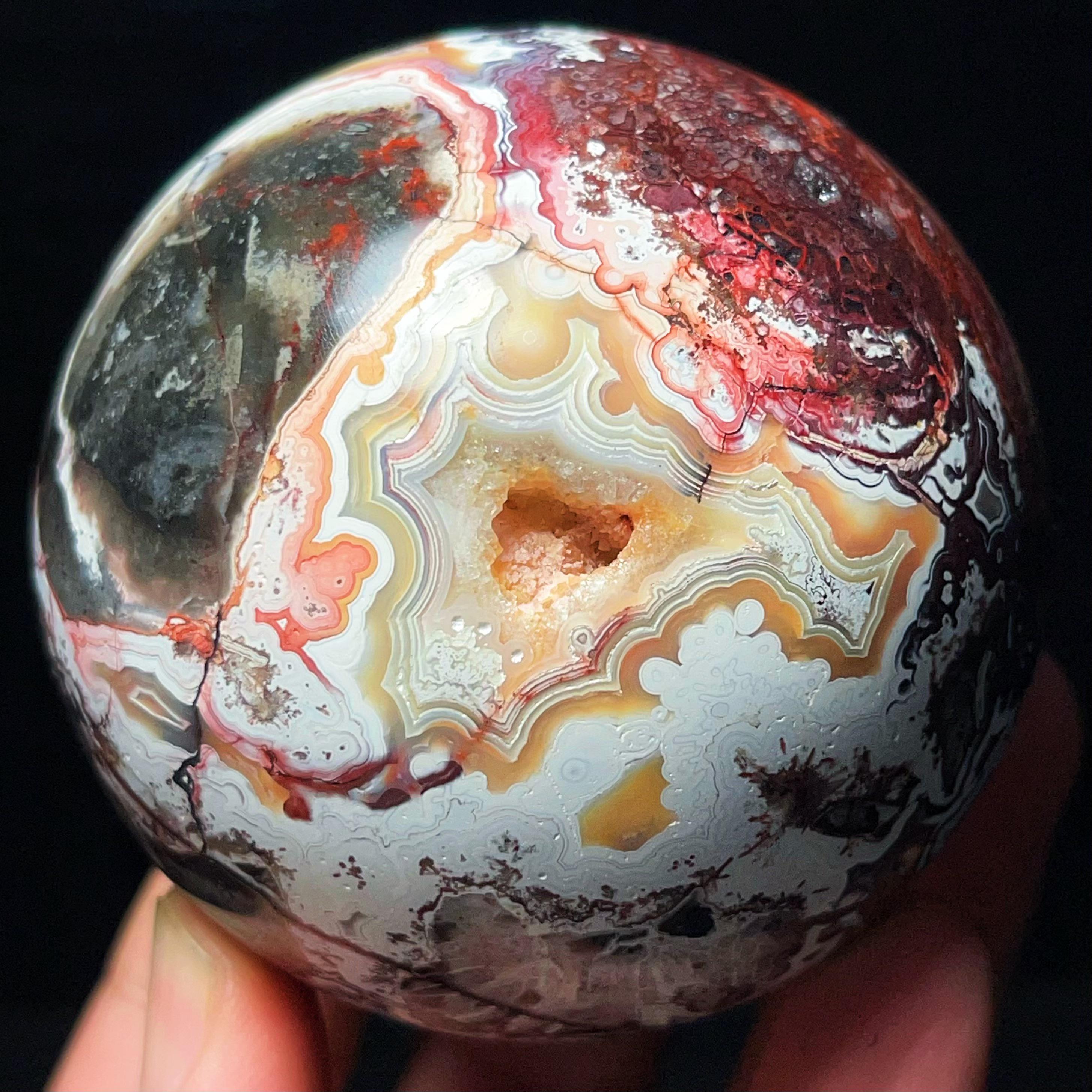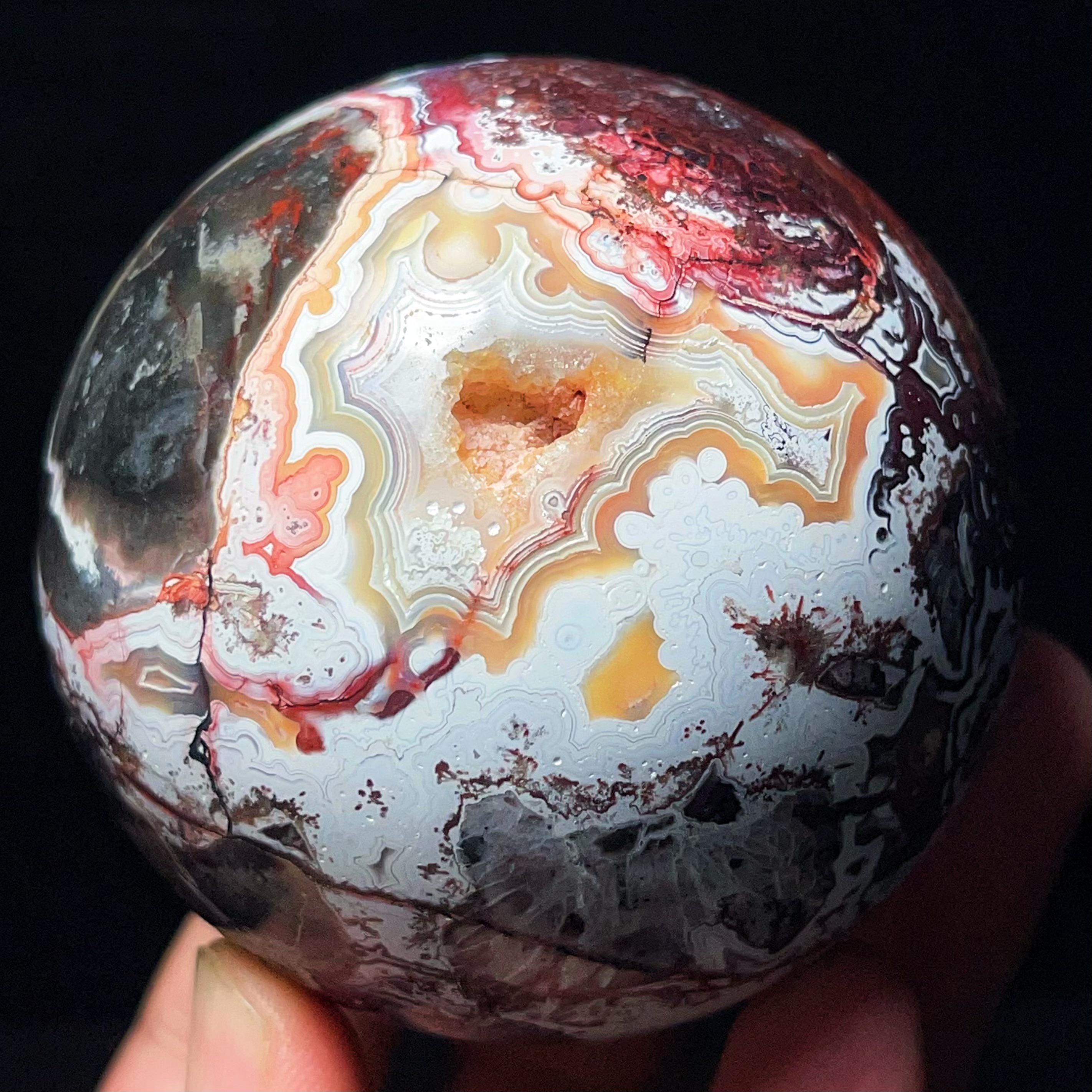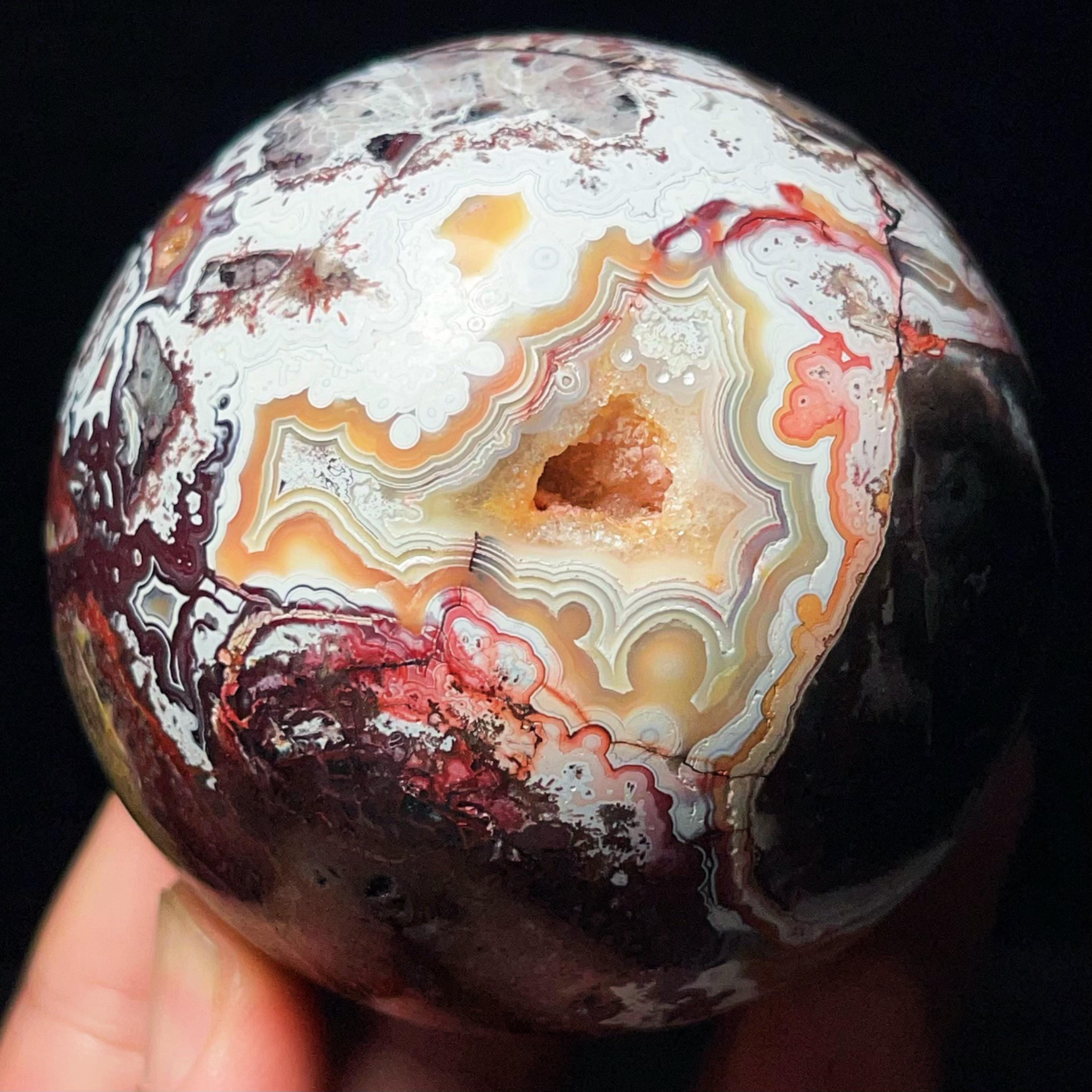 Mexican Agate Ball: Hand Carved Crazy Onyx, Healing Crystal L7028