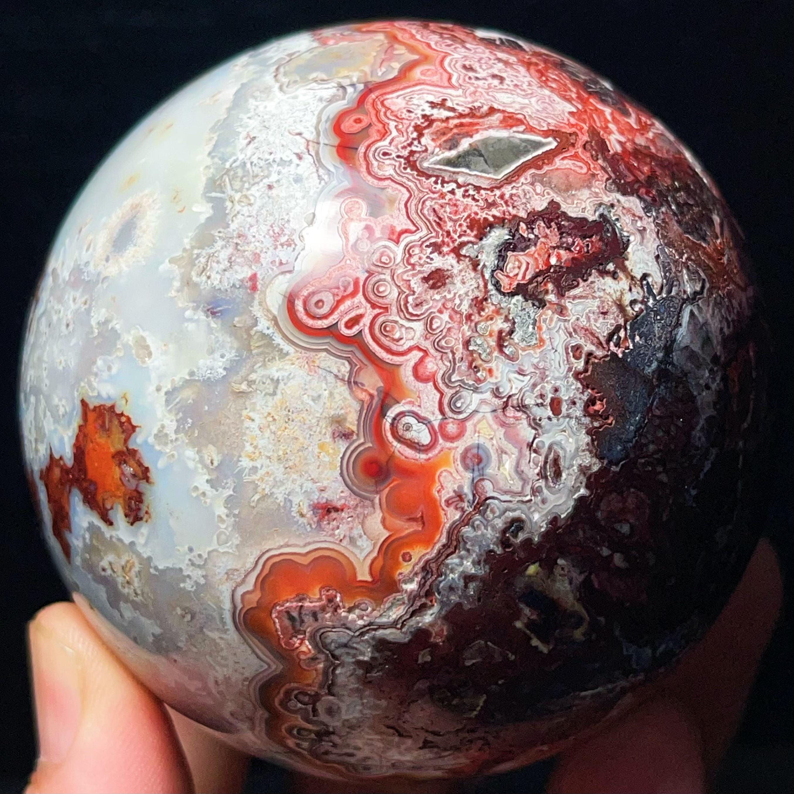 Natural Mexican Agate Ball: Crazy Onyx Sardonyx Palm Stone L7021