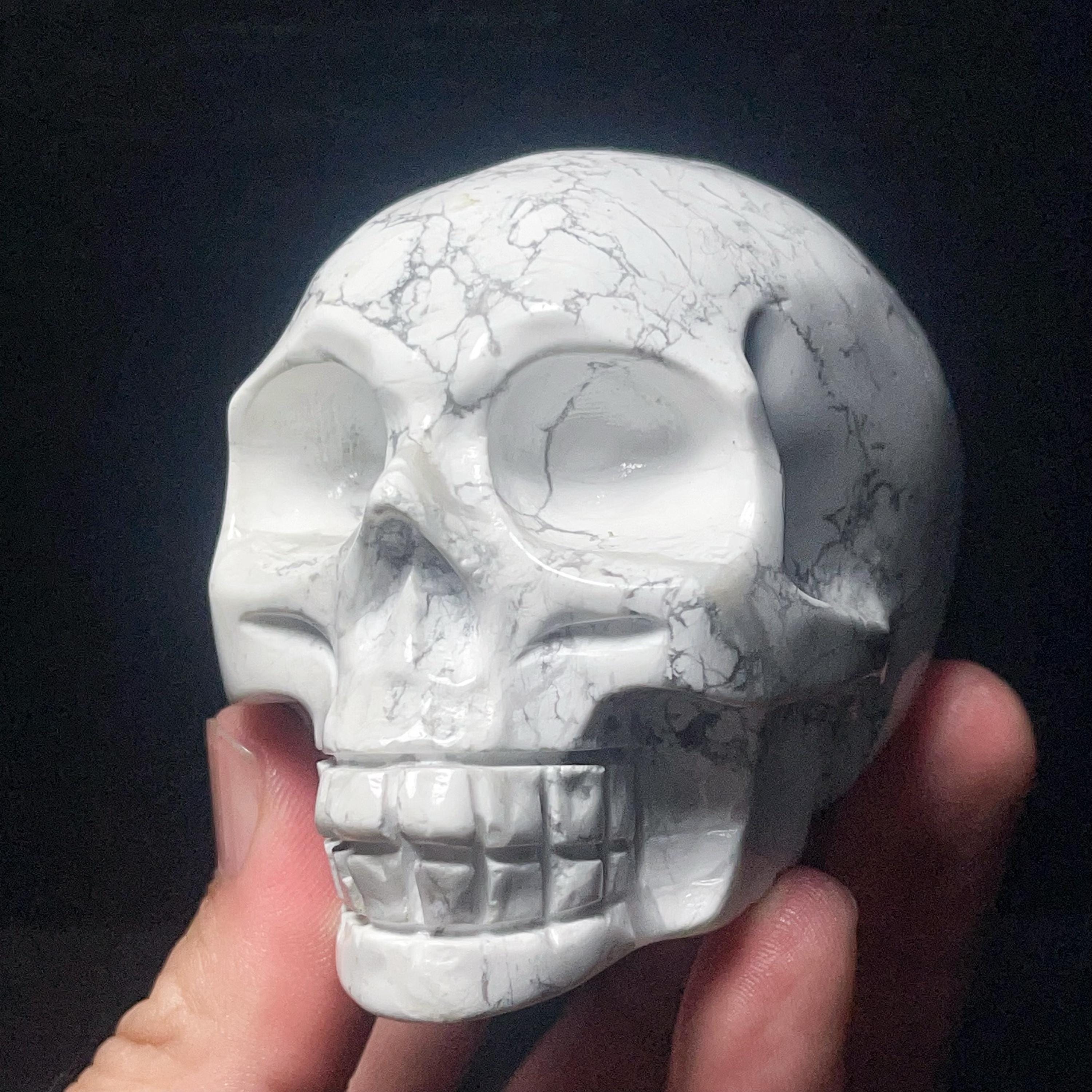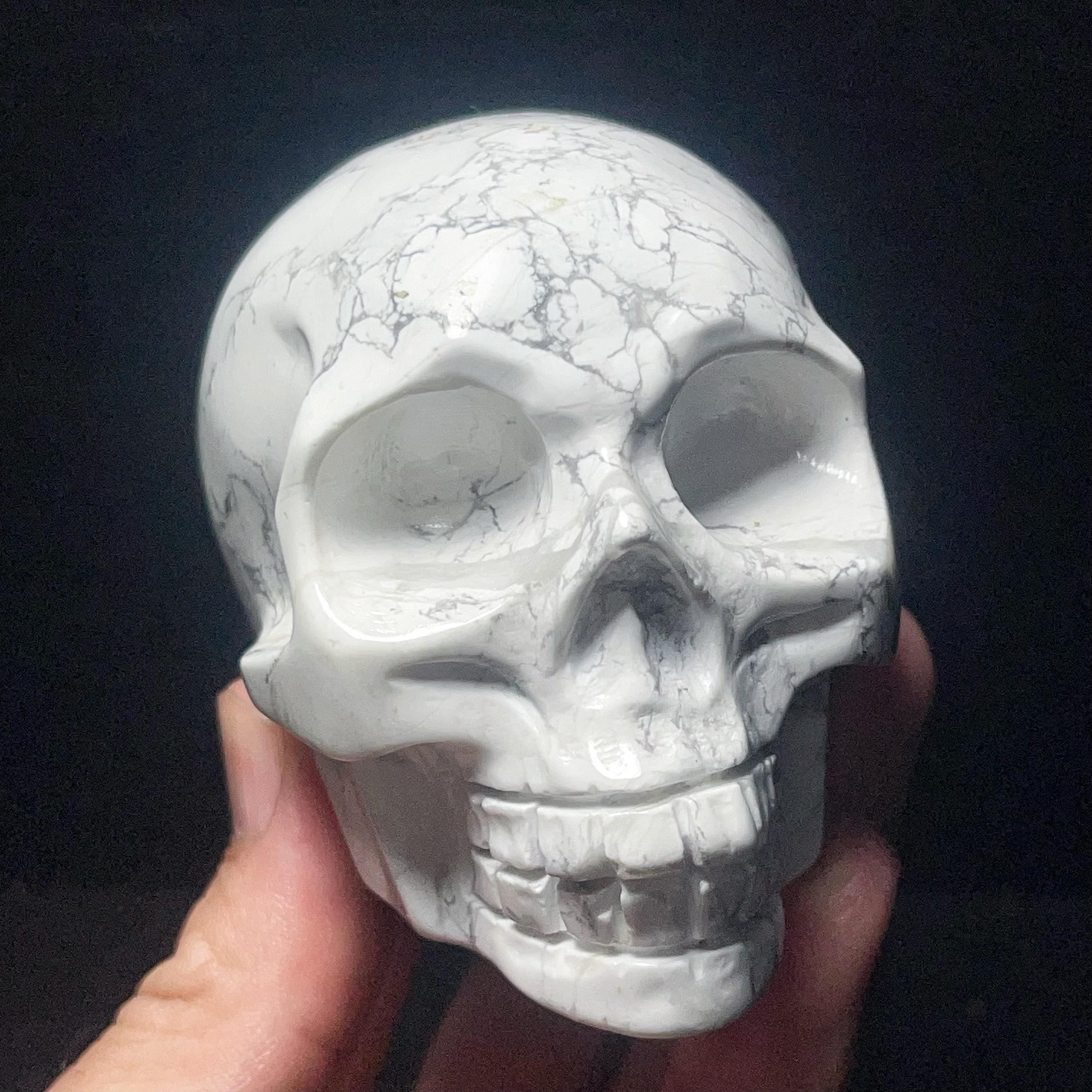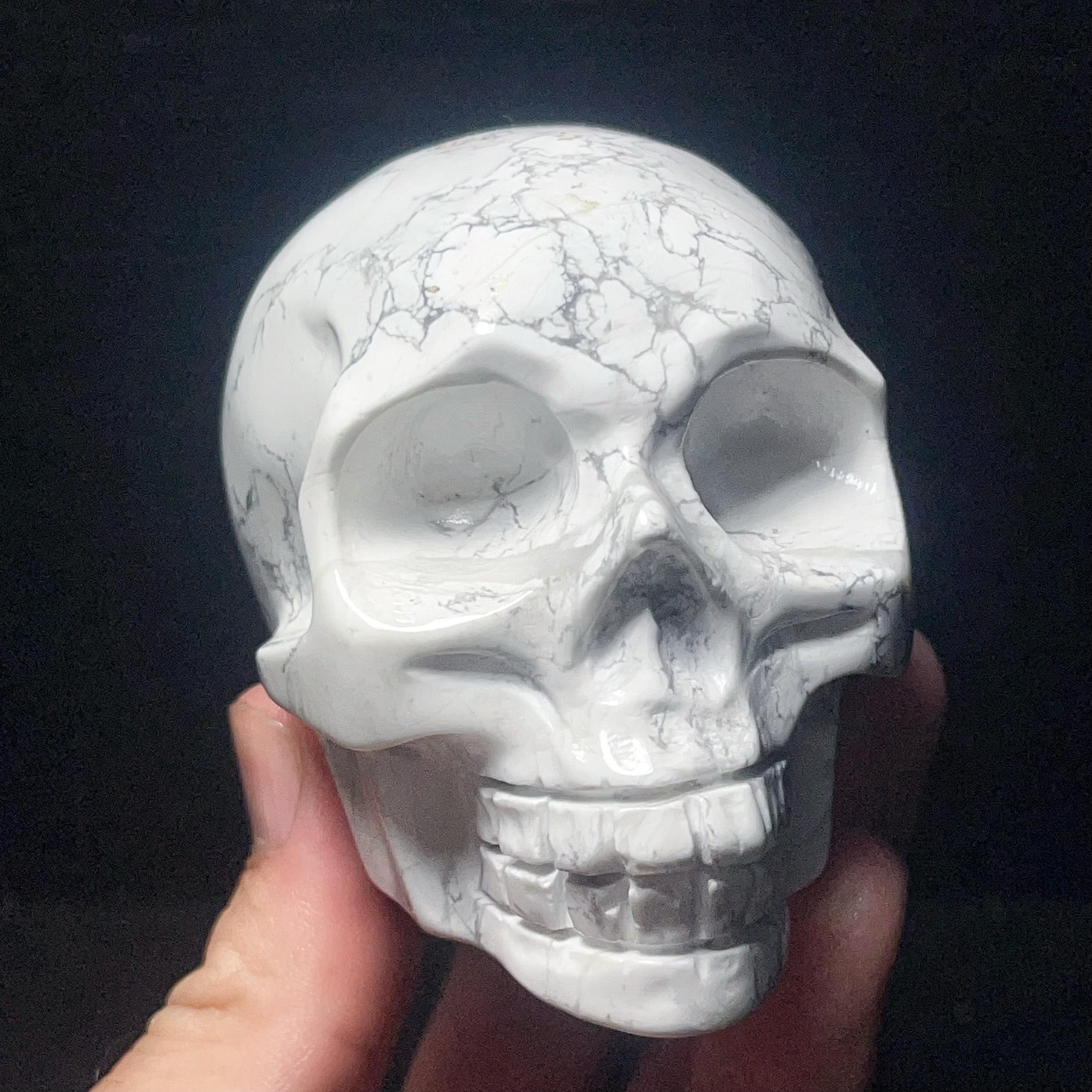 Hand Carved White Turquoise Skull: Crystal Healing Decor L7062