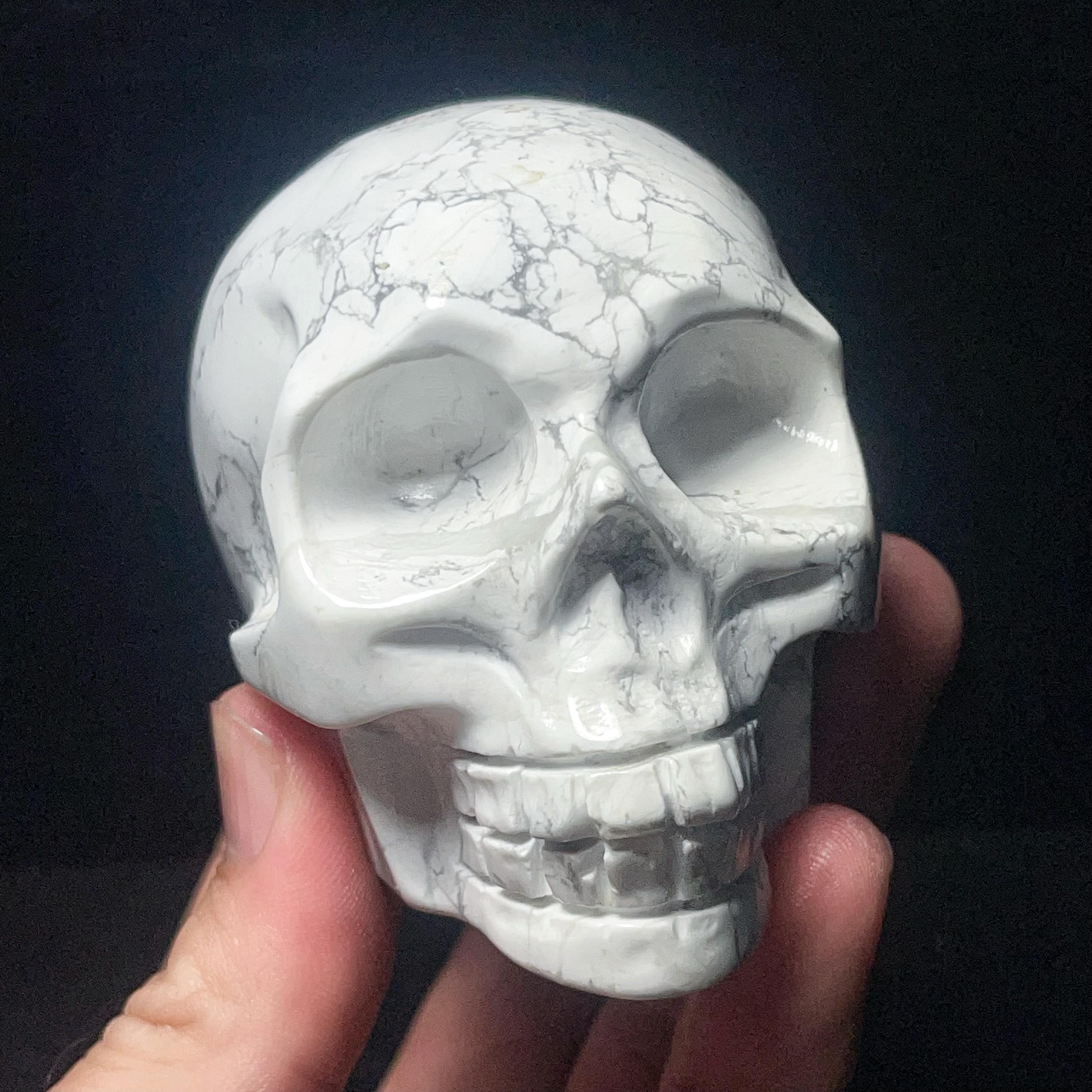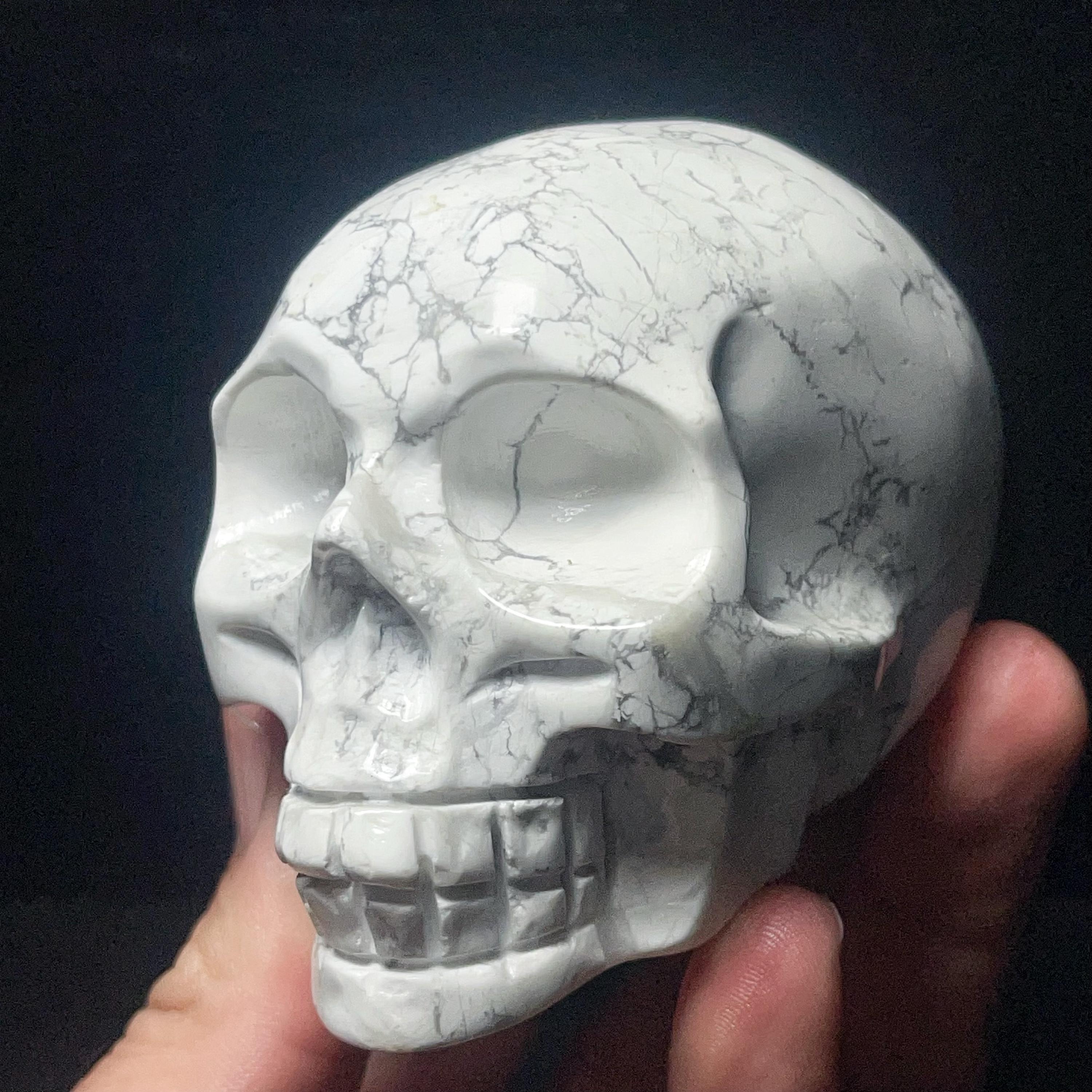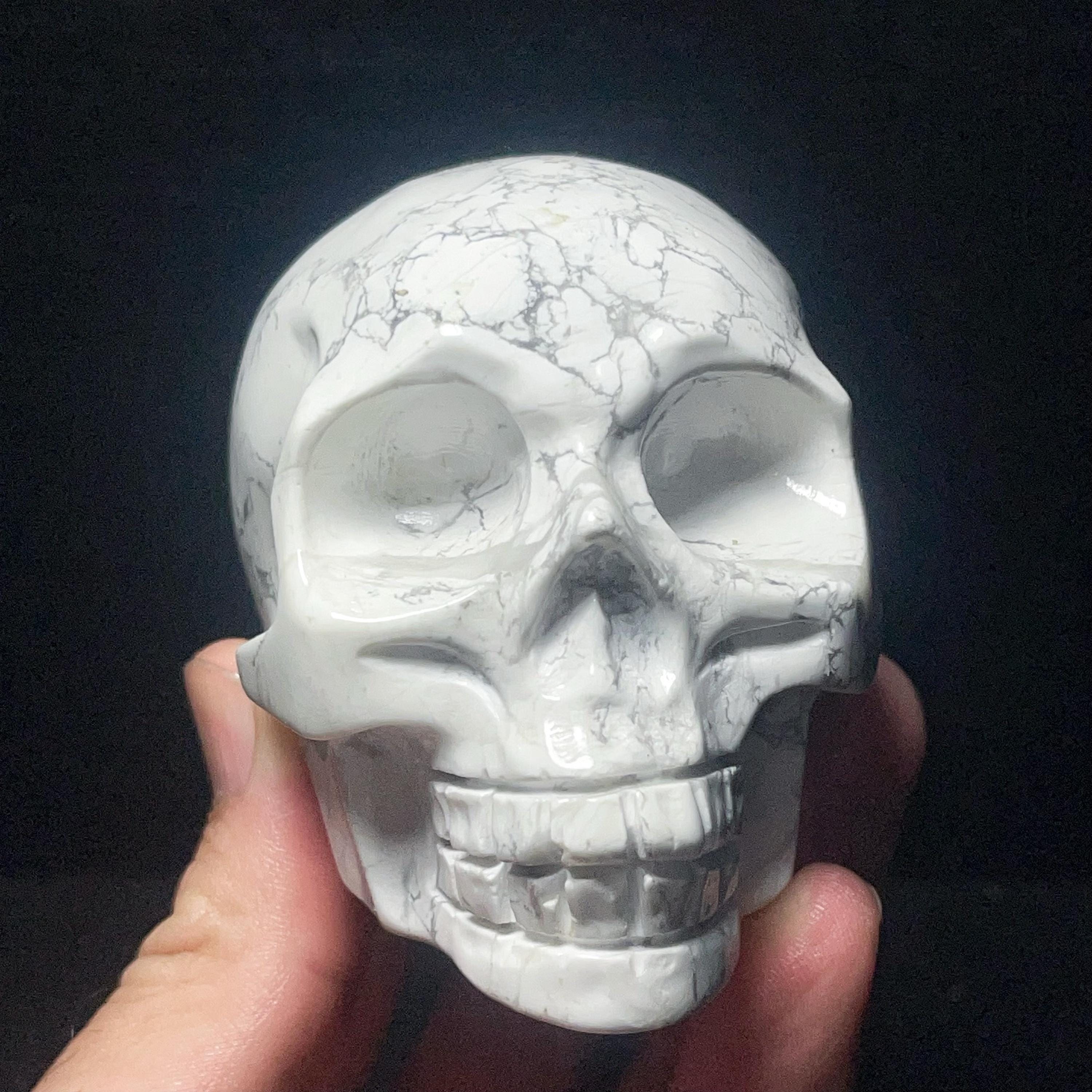 Hand Carved White Turquoise Skull: Crystal Healing Decor L7062