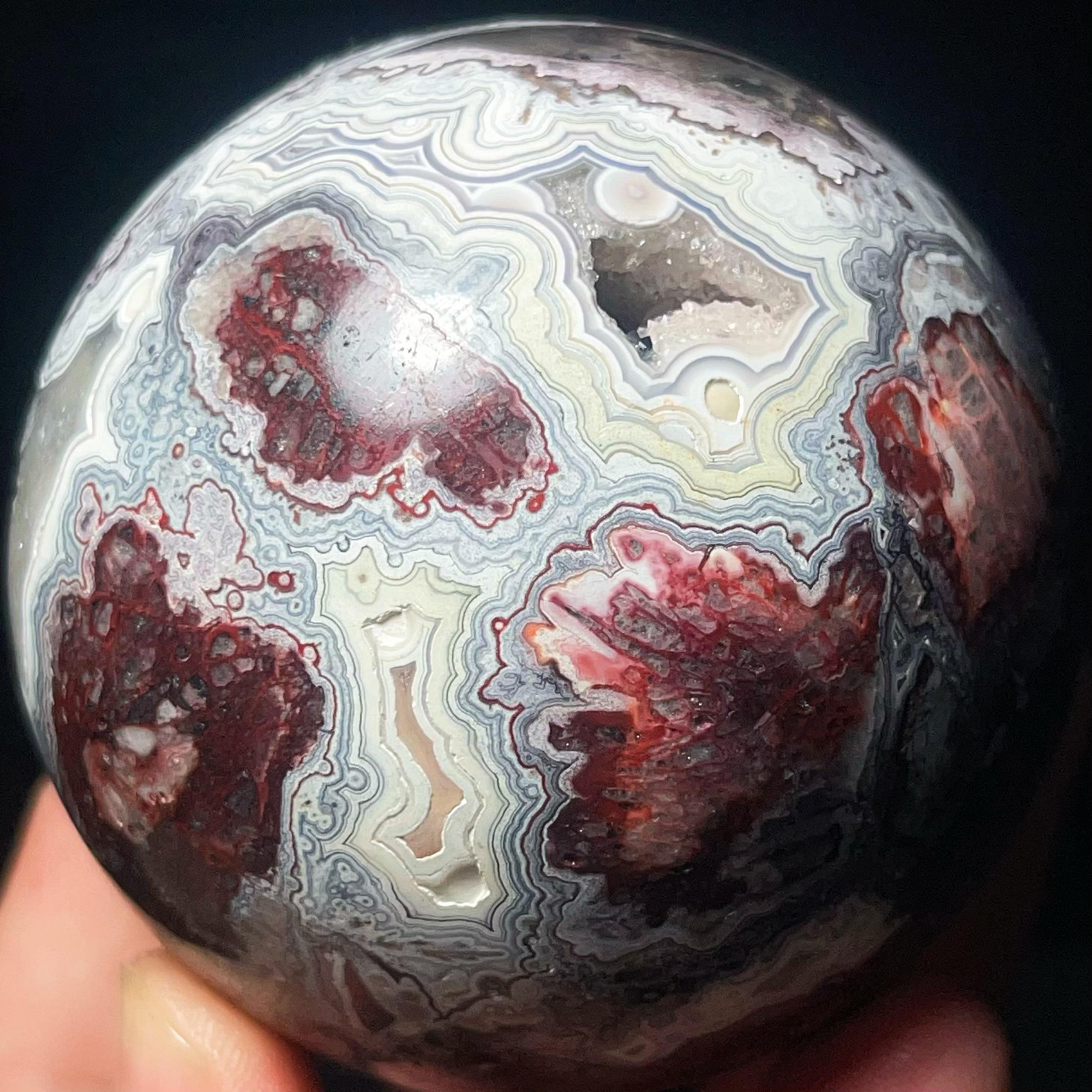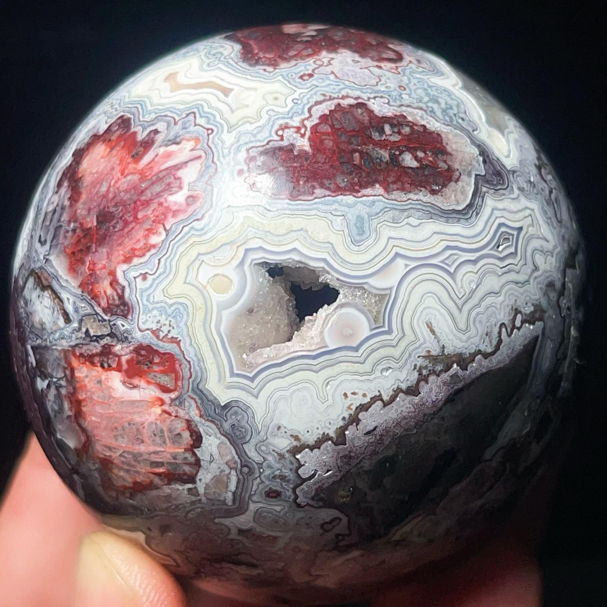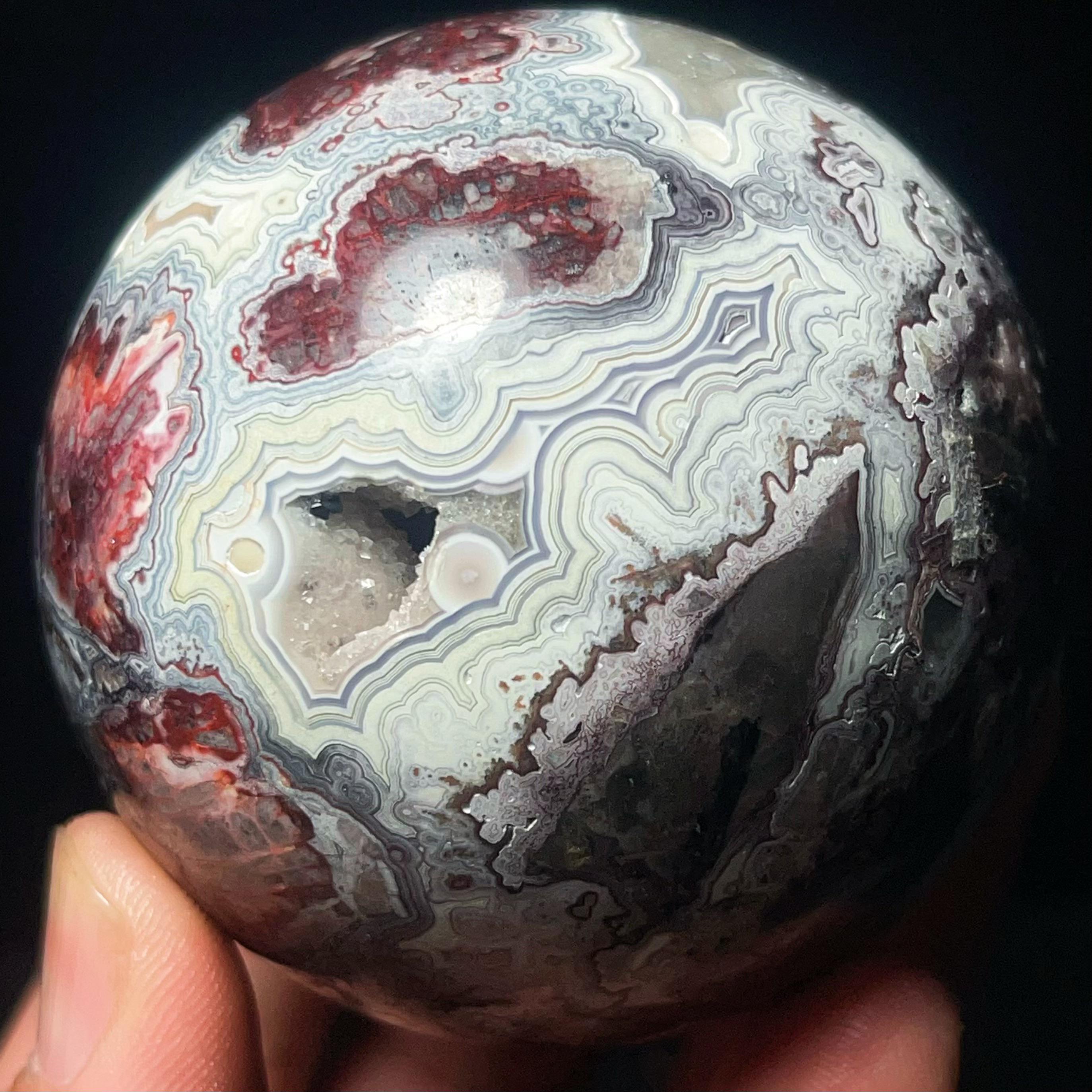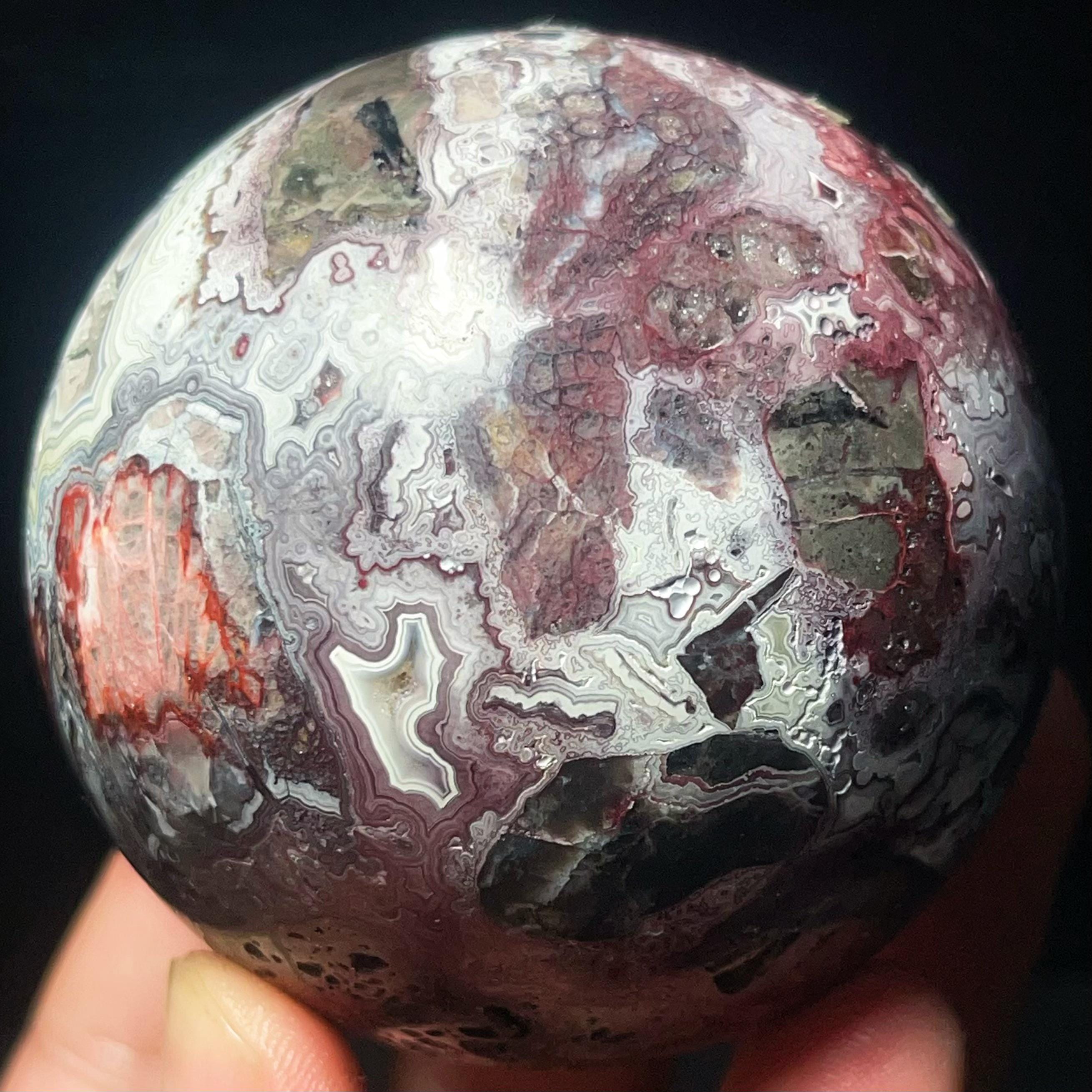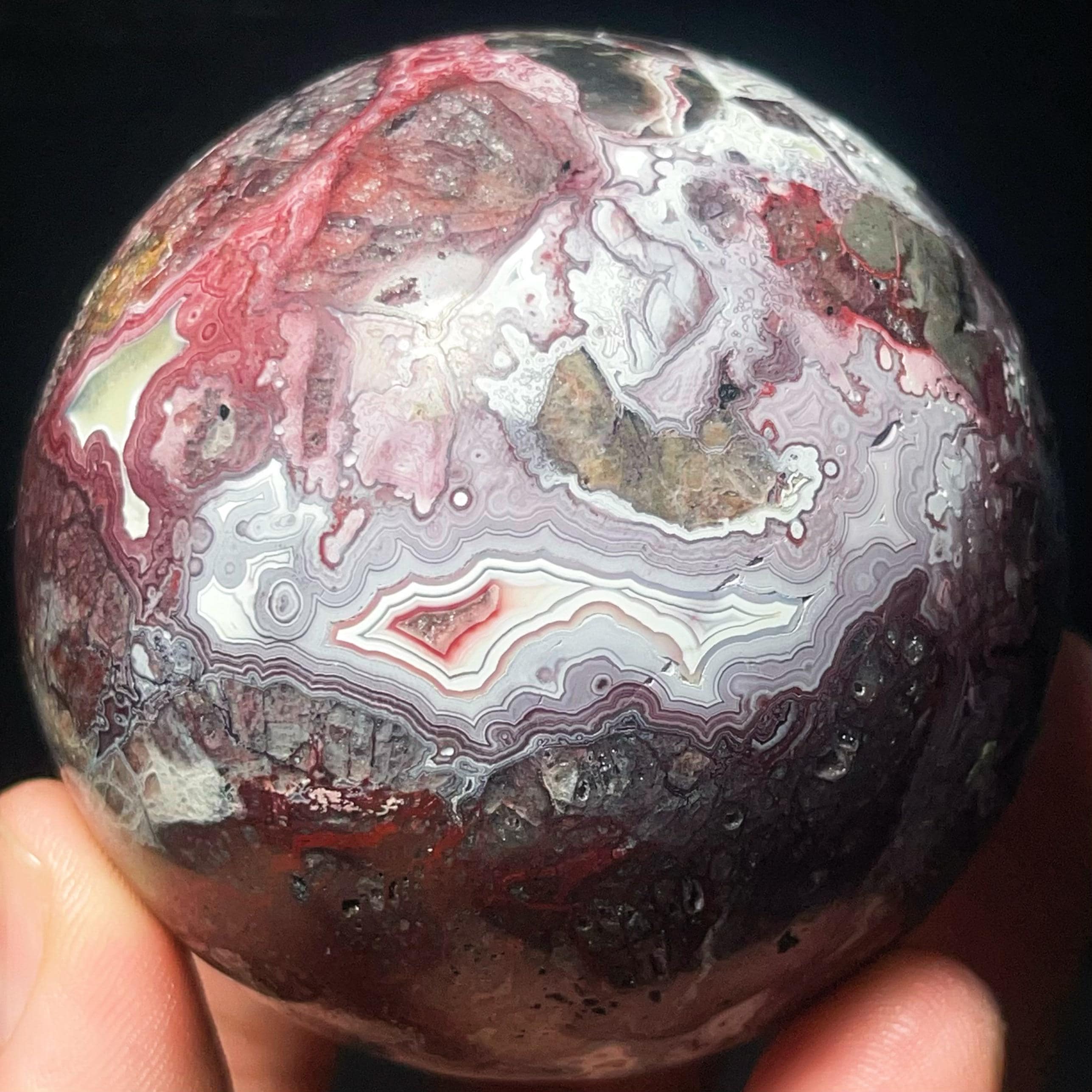 Natural Mexican Agate Ball: Crazy Onyx Sardonyx Palm Stone L7042