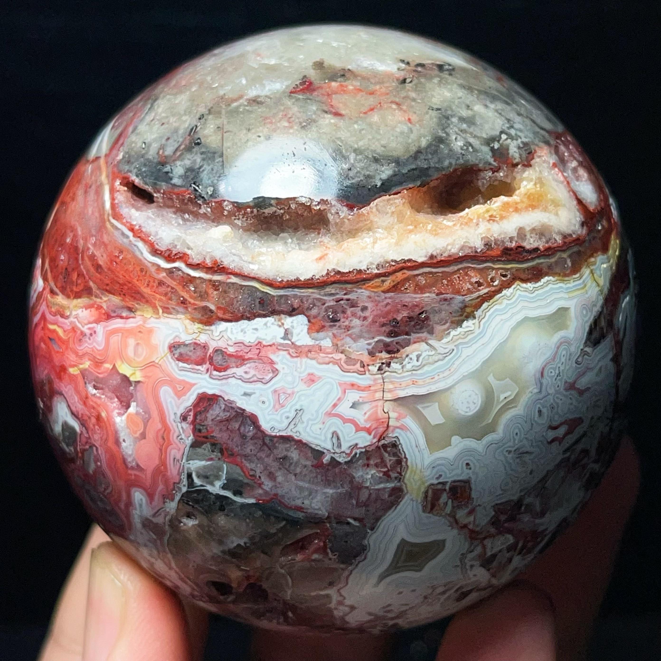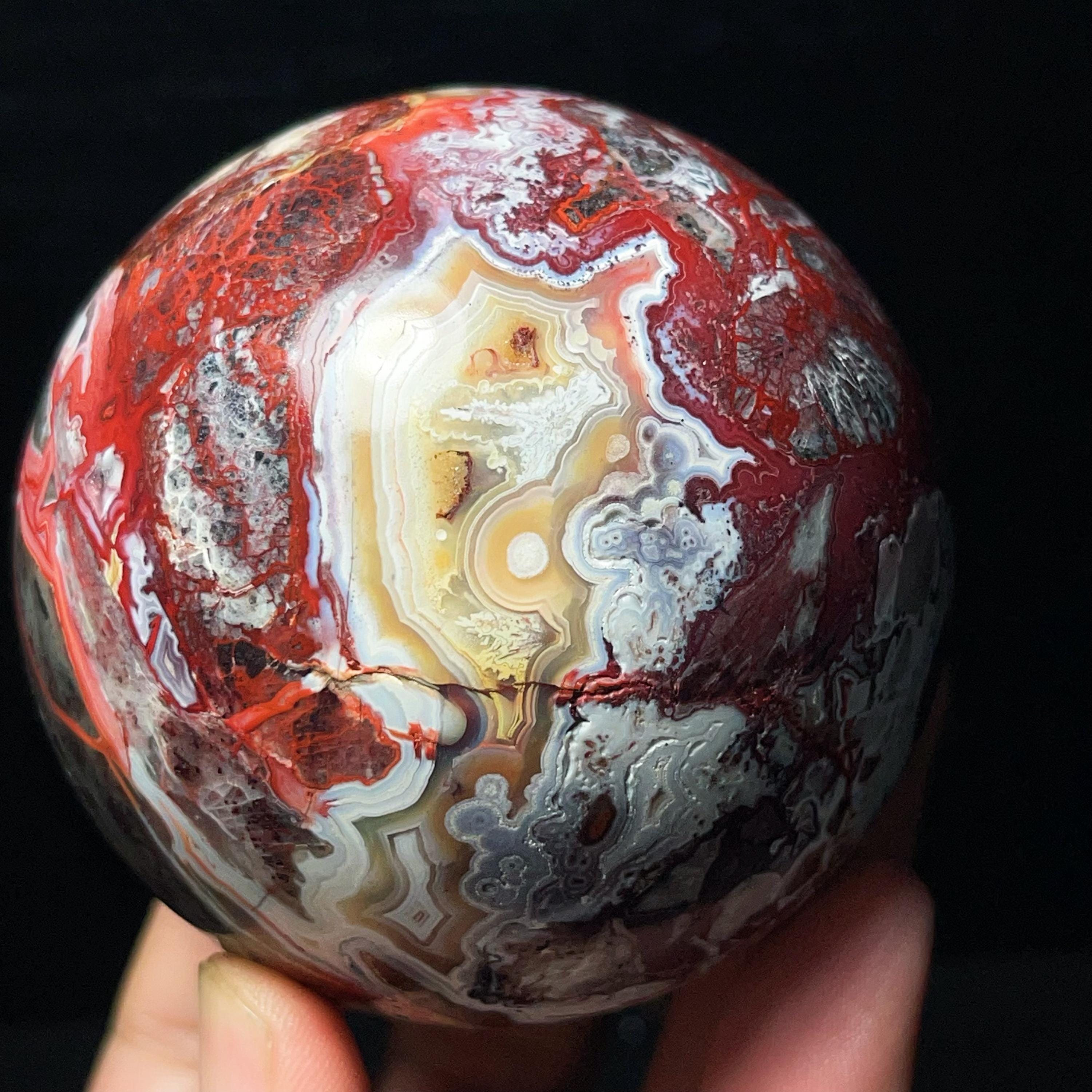 Natural Mexican Agate Ball: Crazy Onyx Sardonyx Palm Stone L7024