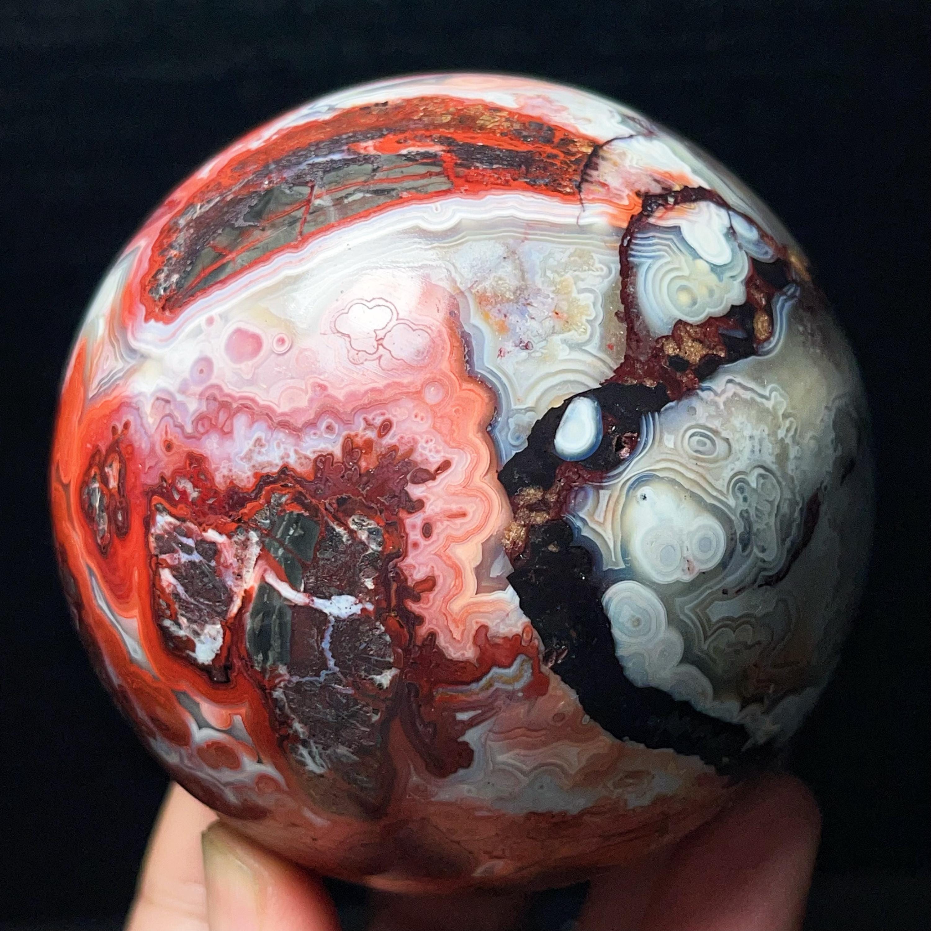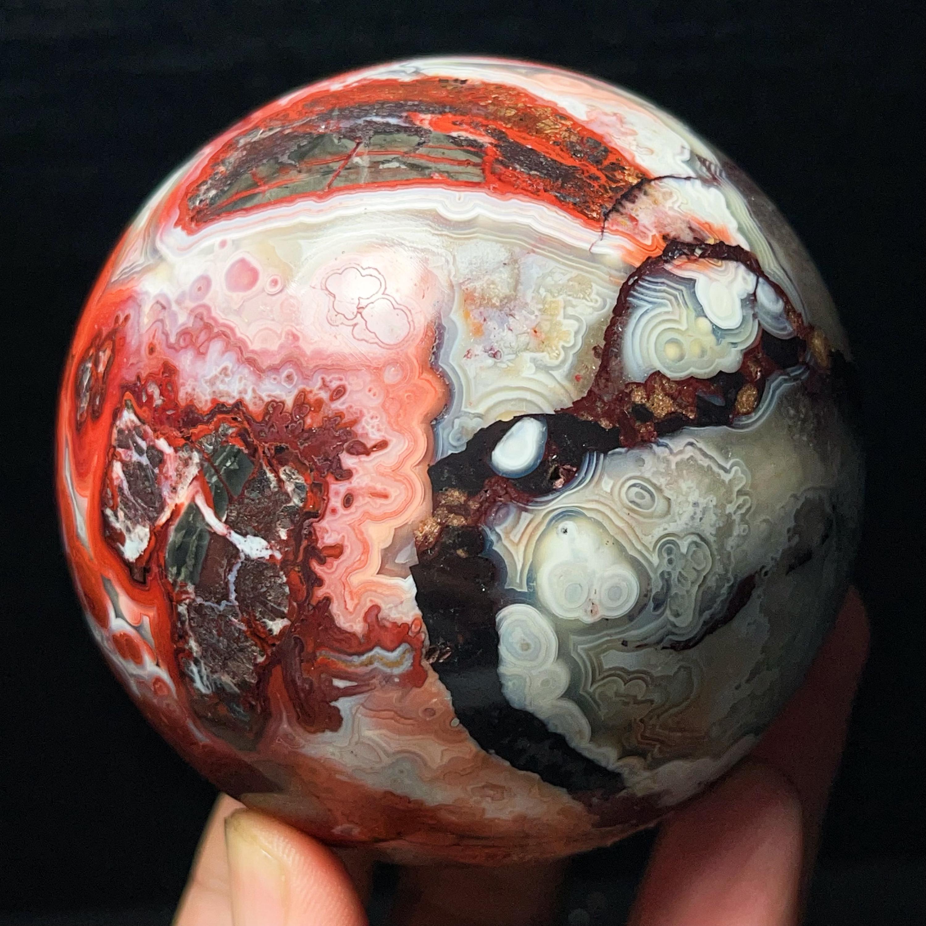 Natural Mexican Agate Ball: Crazy Onyx Sardonyx Palm Stone L7026